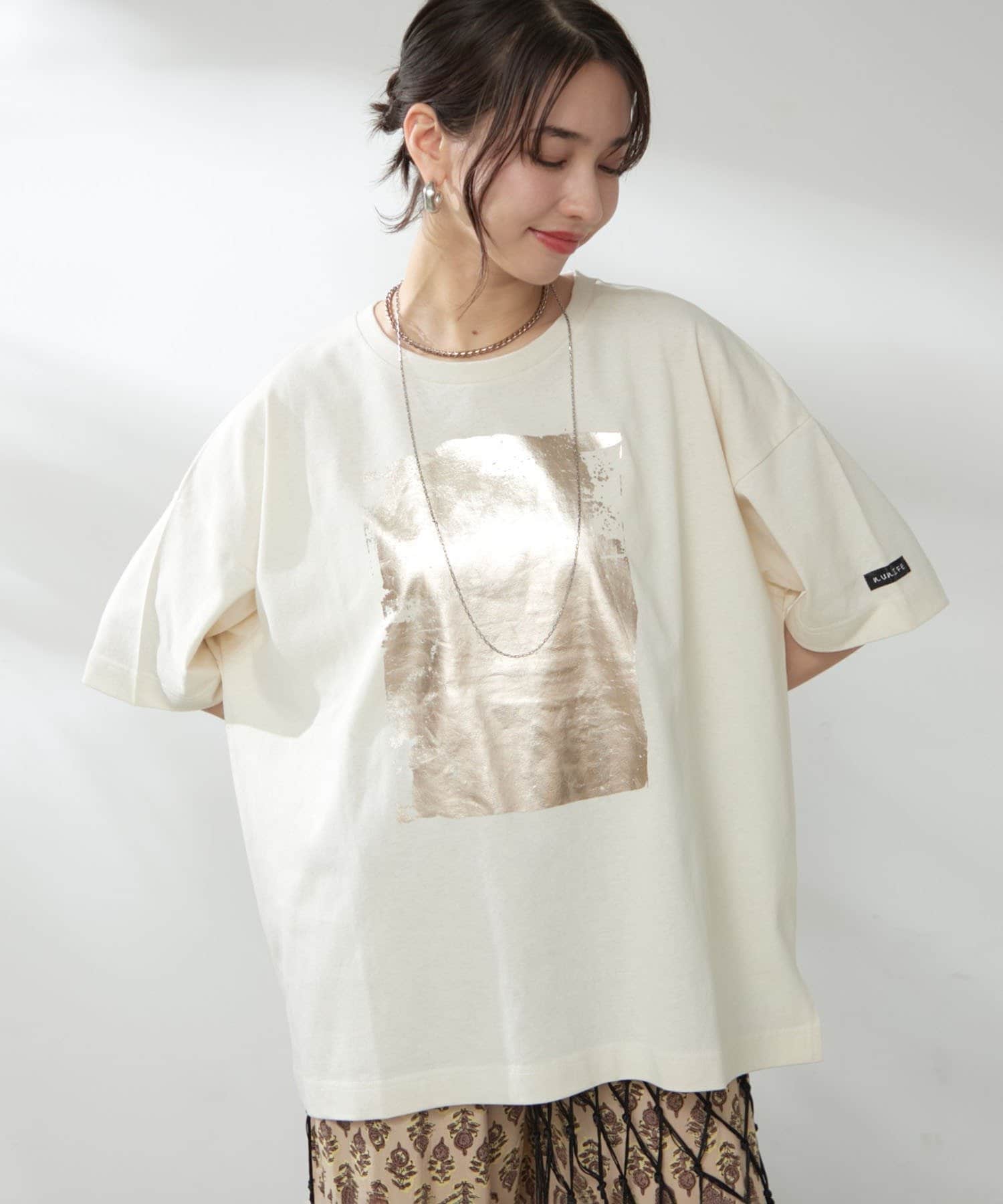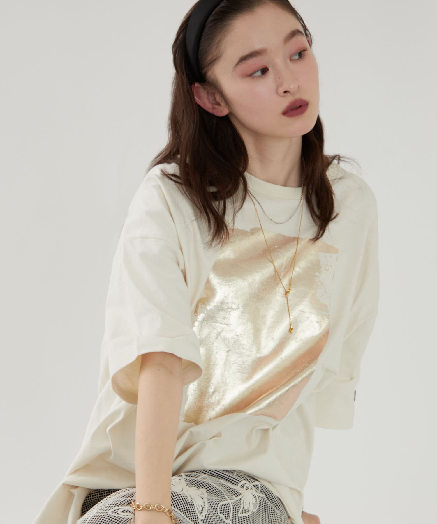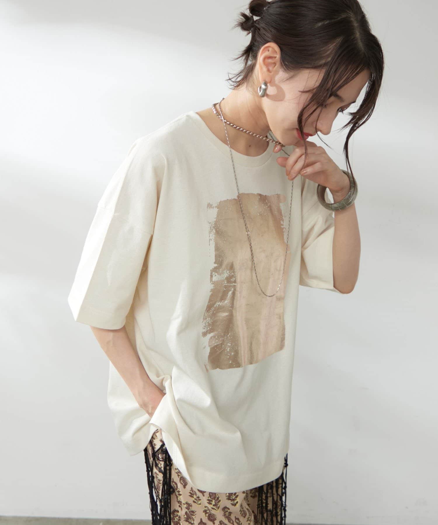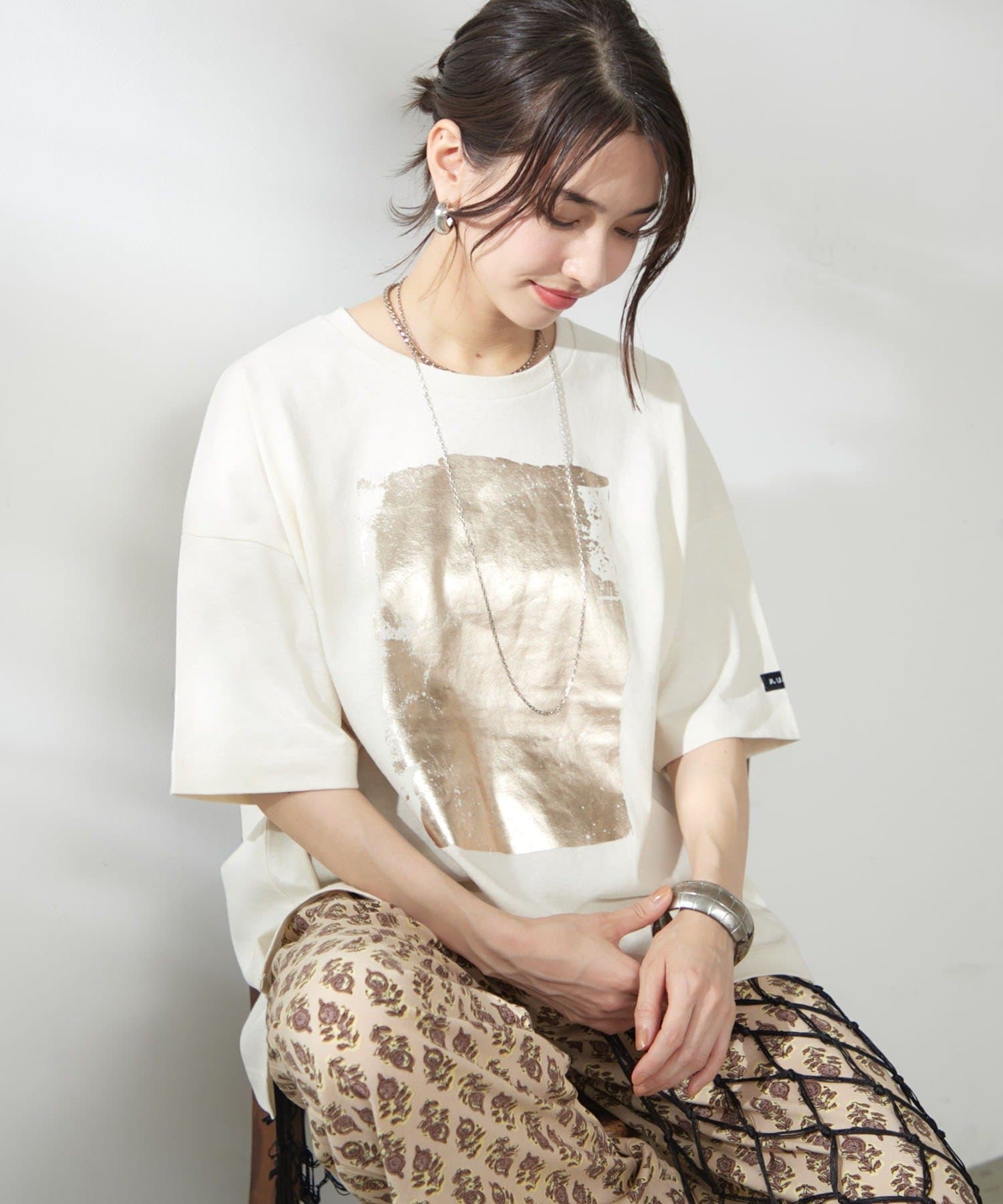 トレンドライクな箔押しプリントT。WEBで大人気デザインのアイテムです。