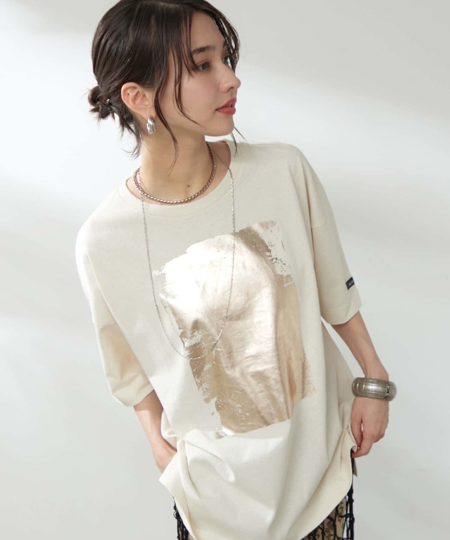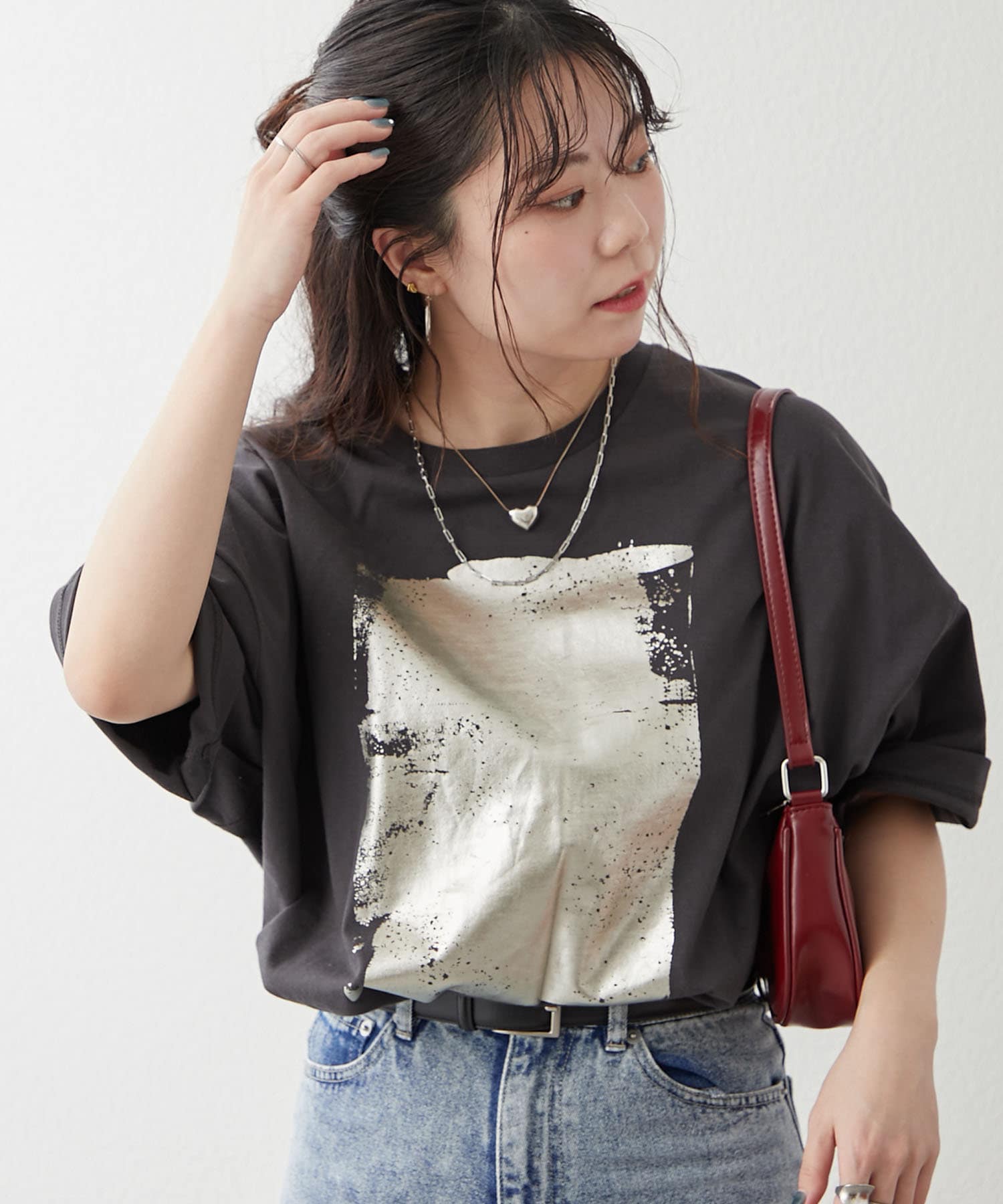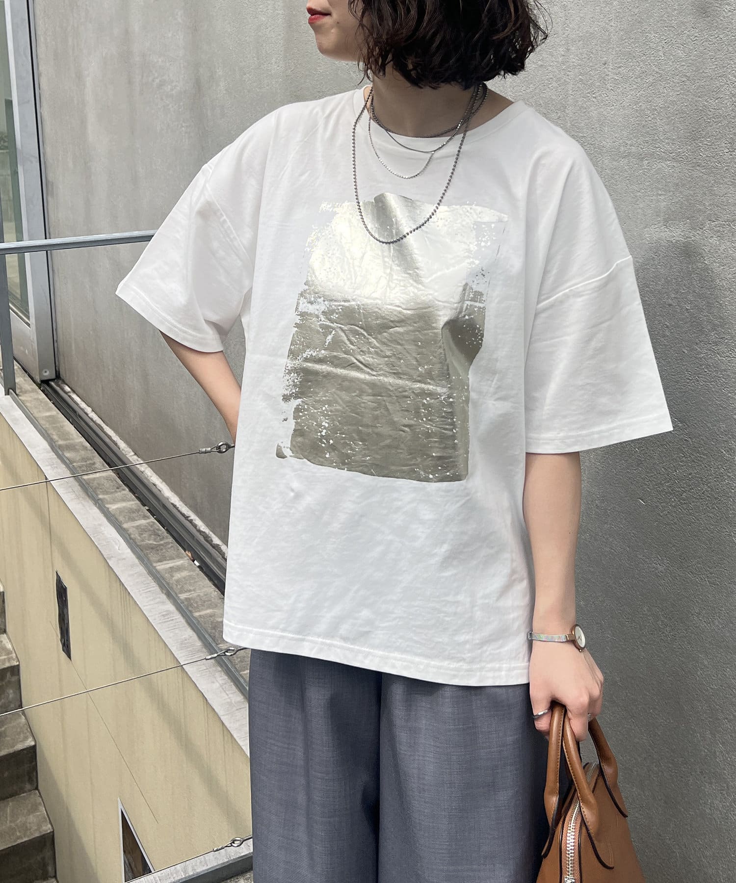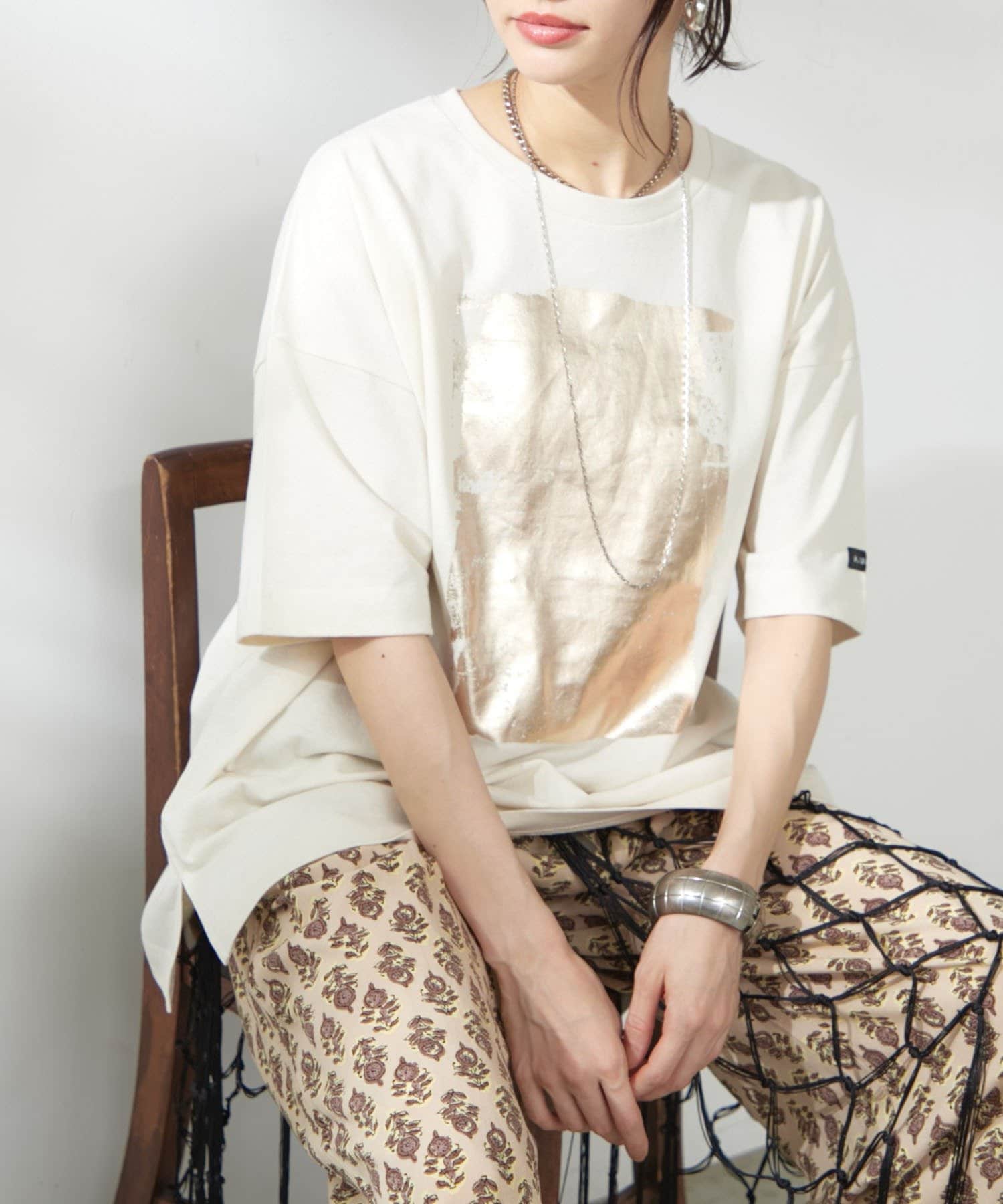 トレンドライクな箔押しプリントT。WEBで大人気デザインのアイテムです。