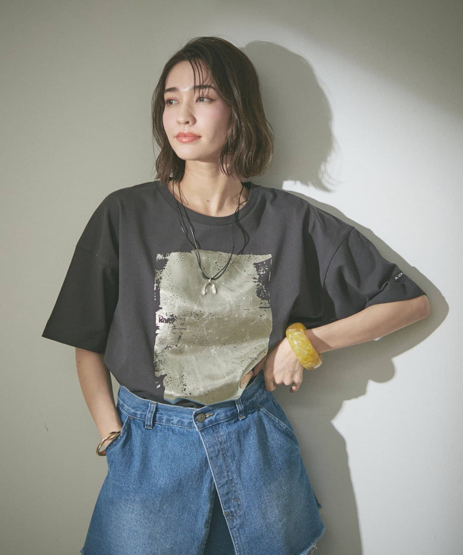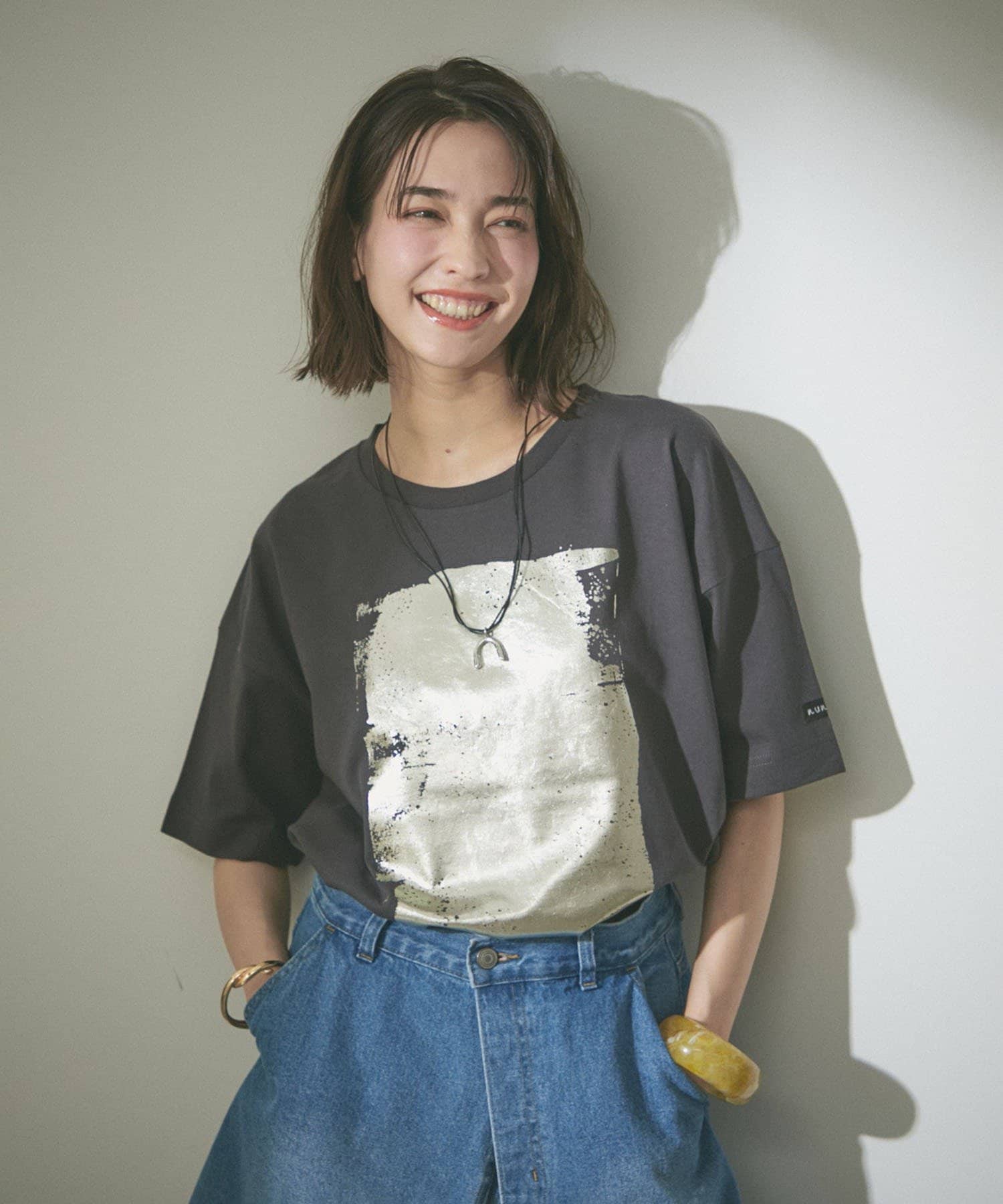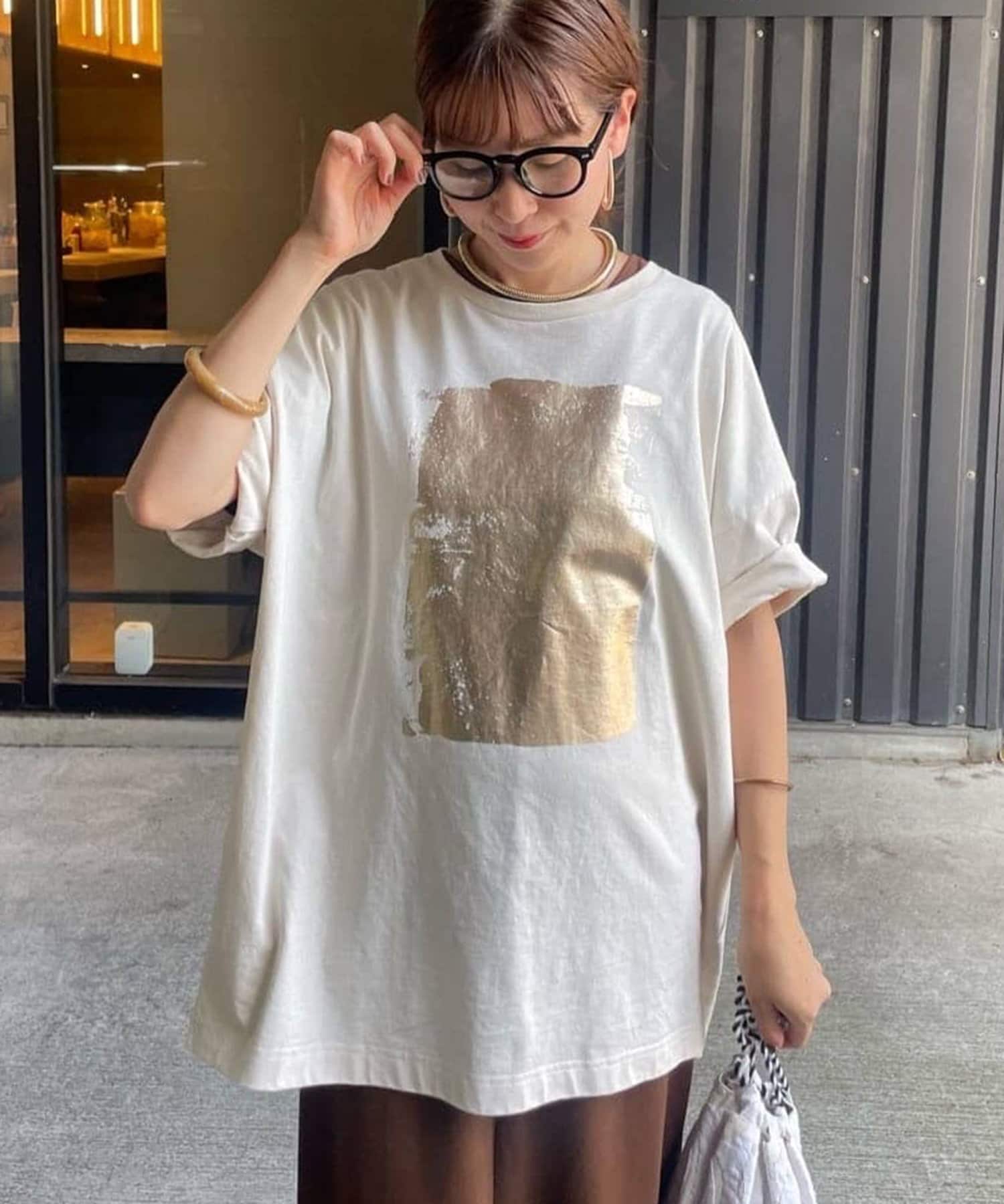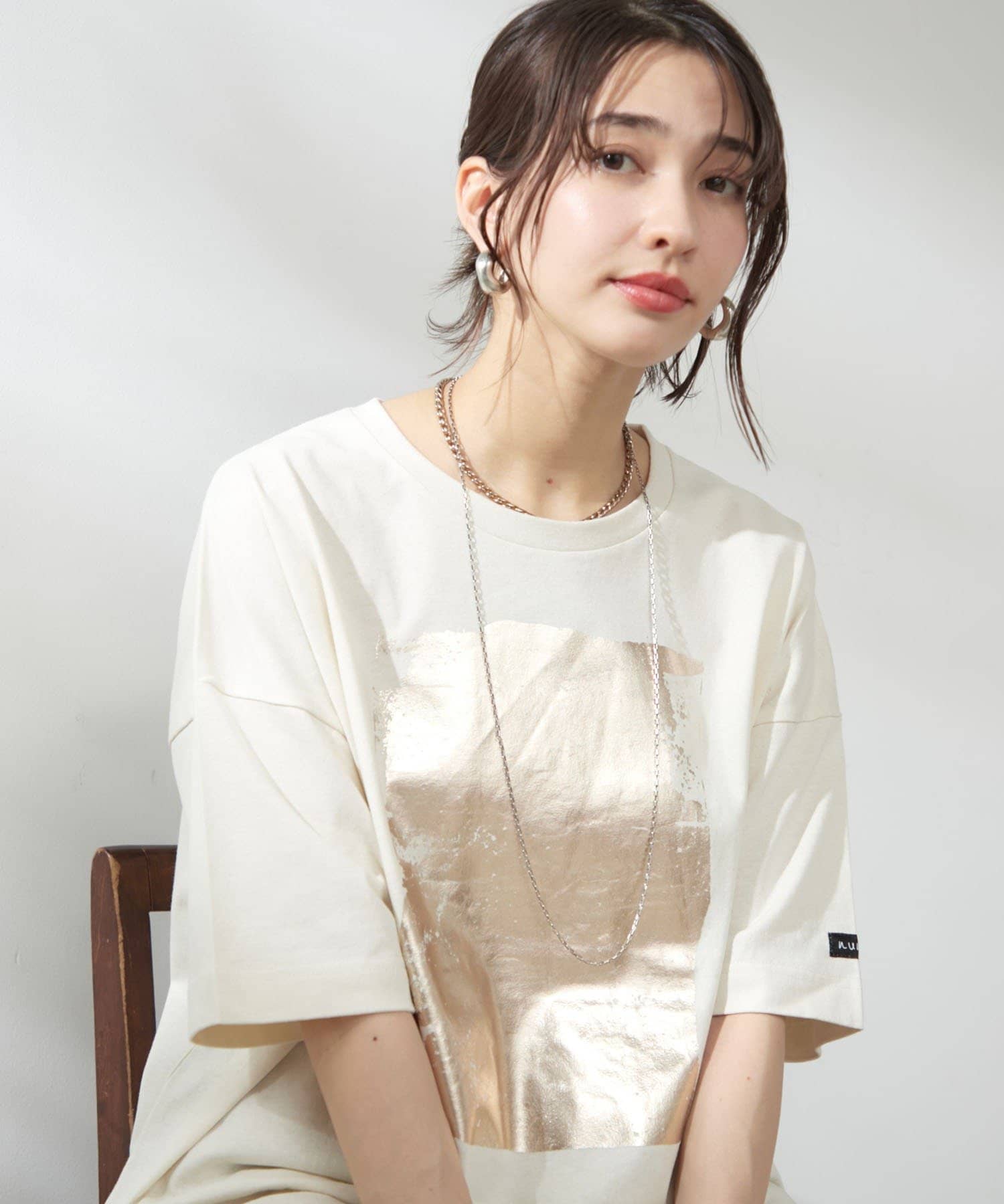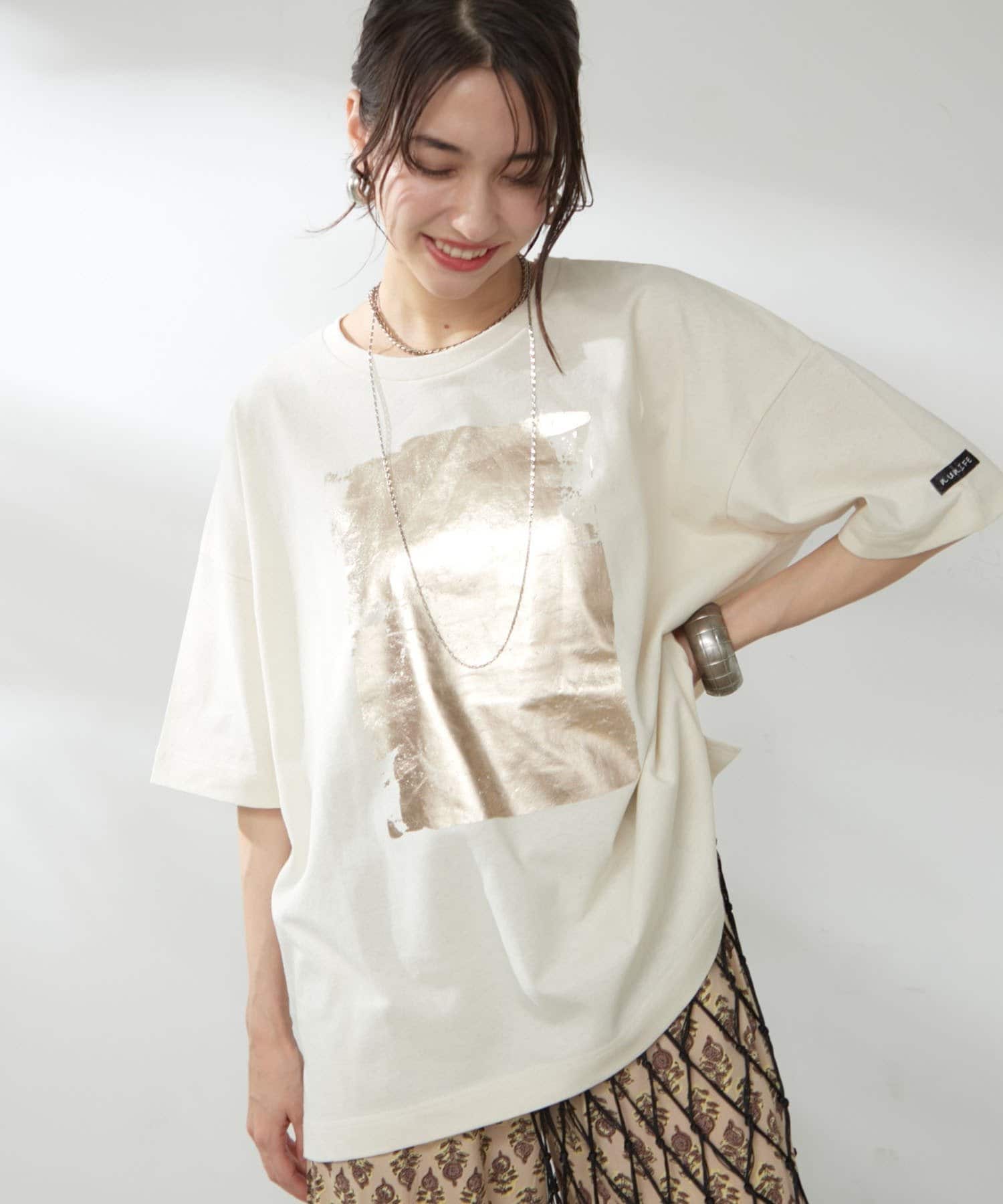 トレンドライクな箔押しプリントT。WEBで大人気デザインのアイテムです。