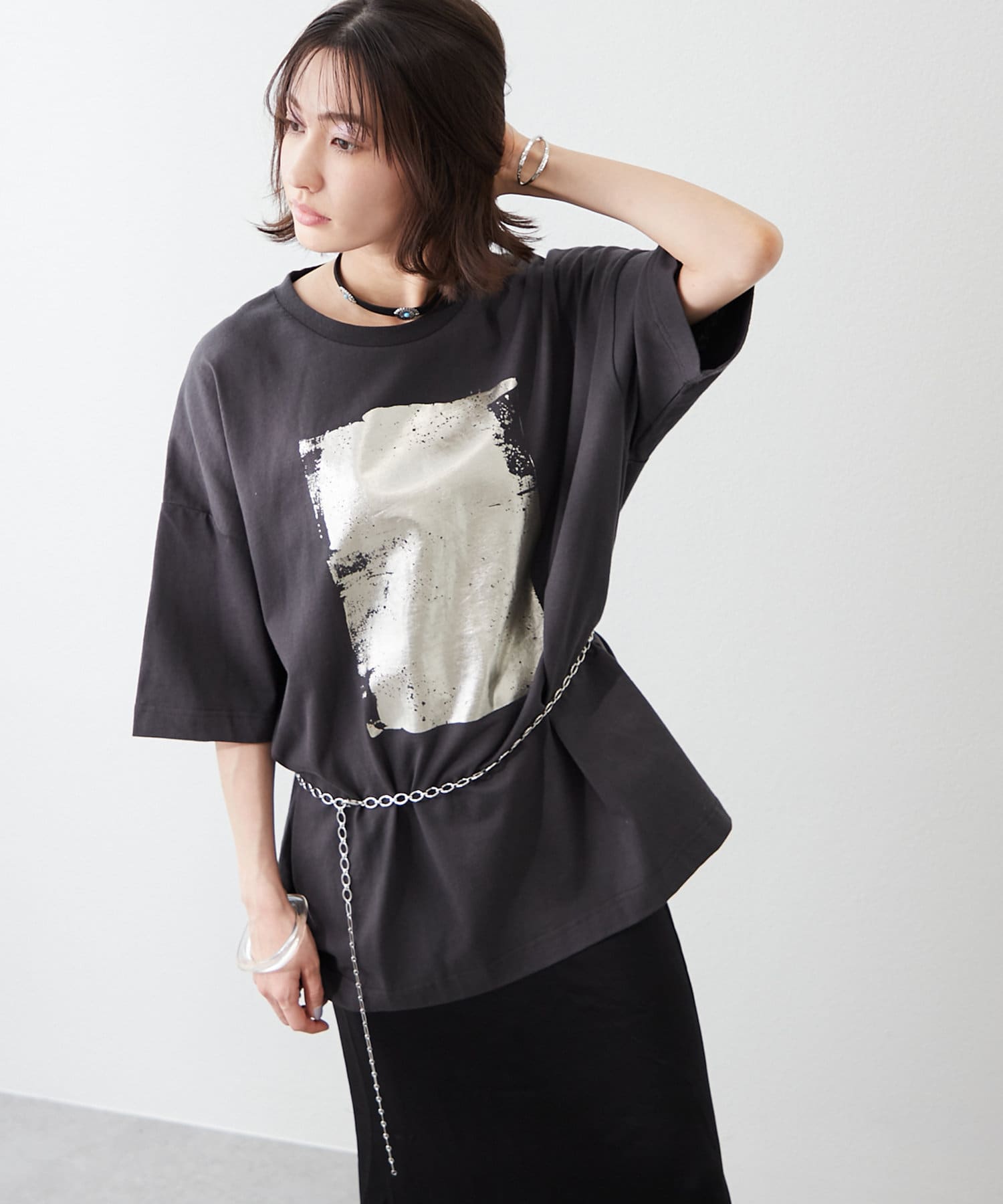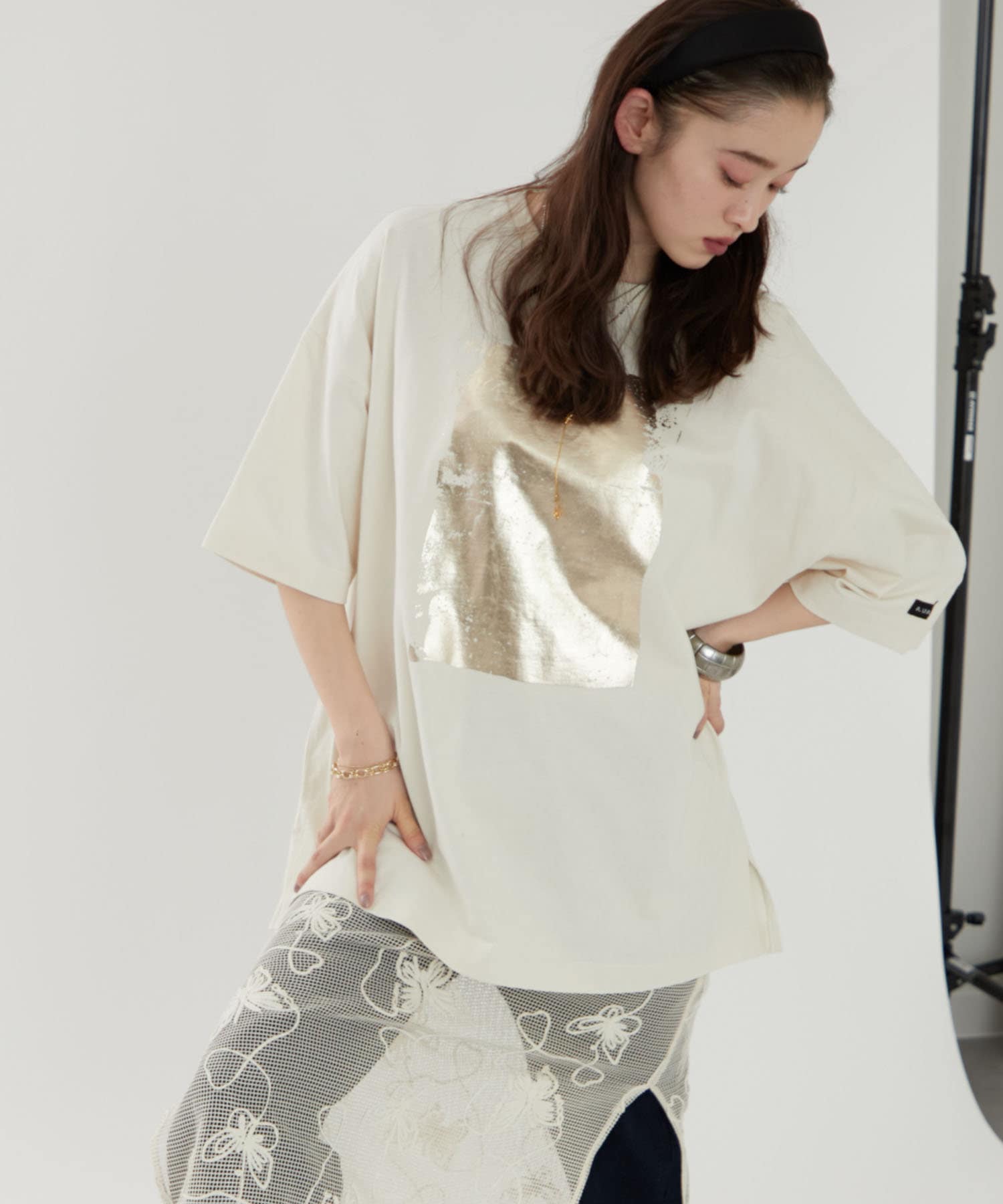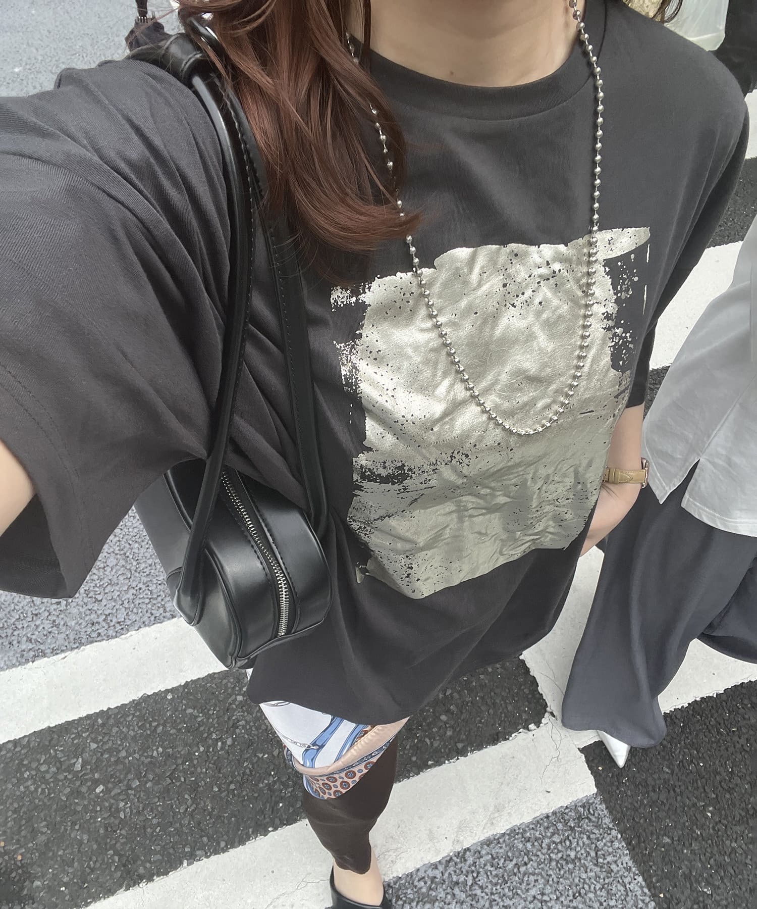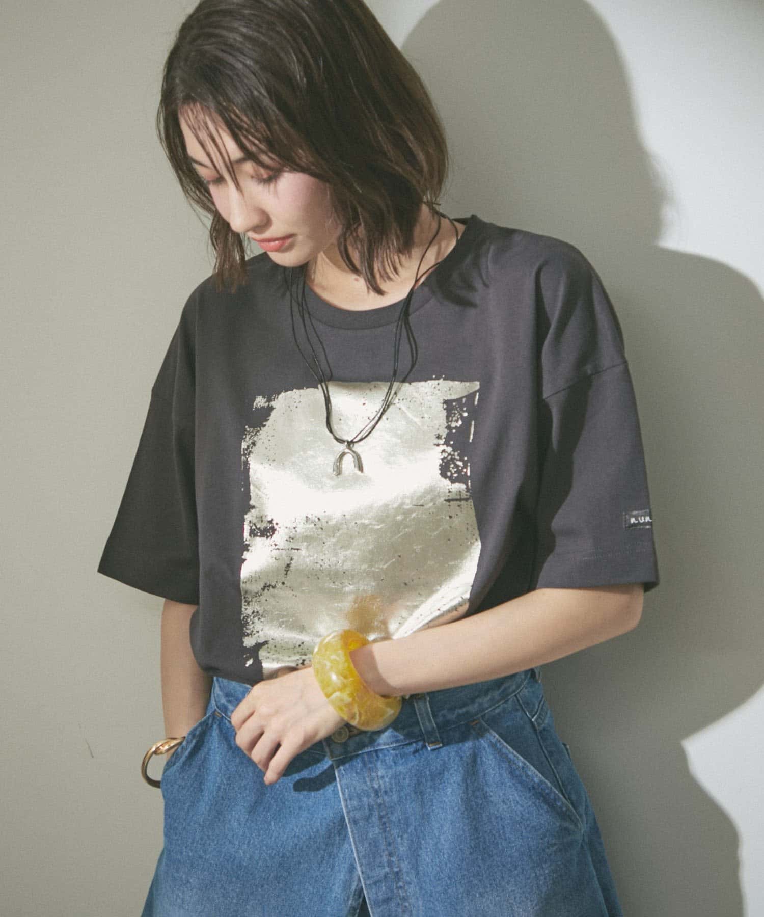 トレンドライクな箔押しプリントT。WEBで大人気デザインのアイテムです。