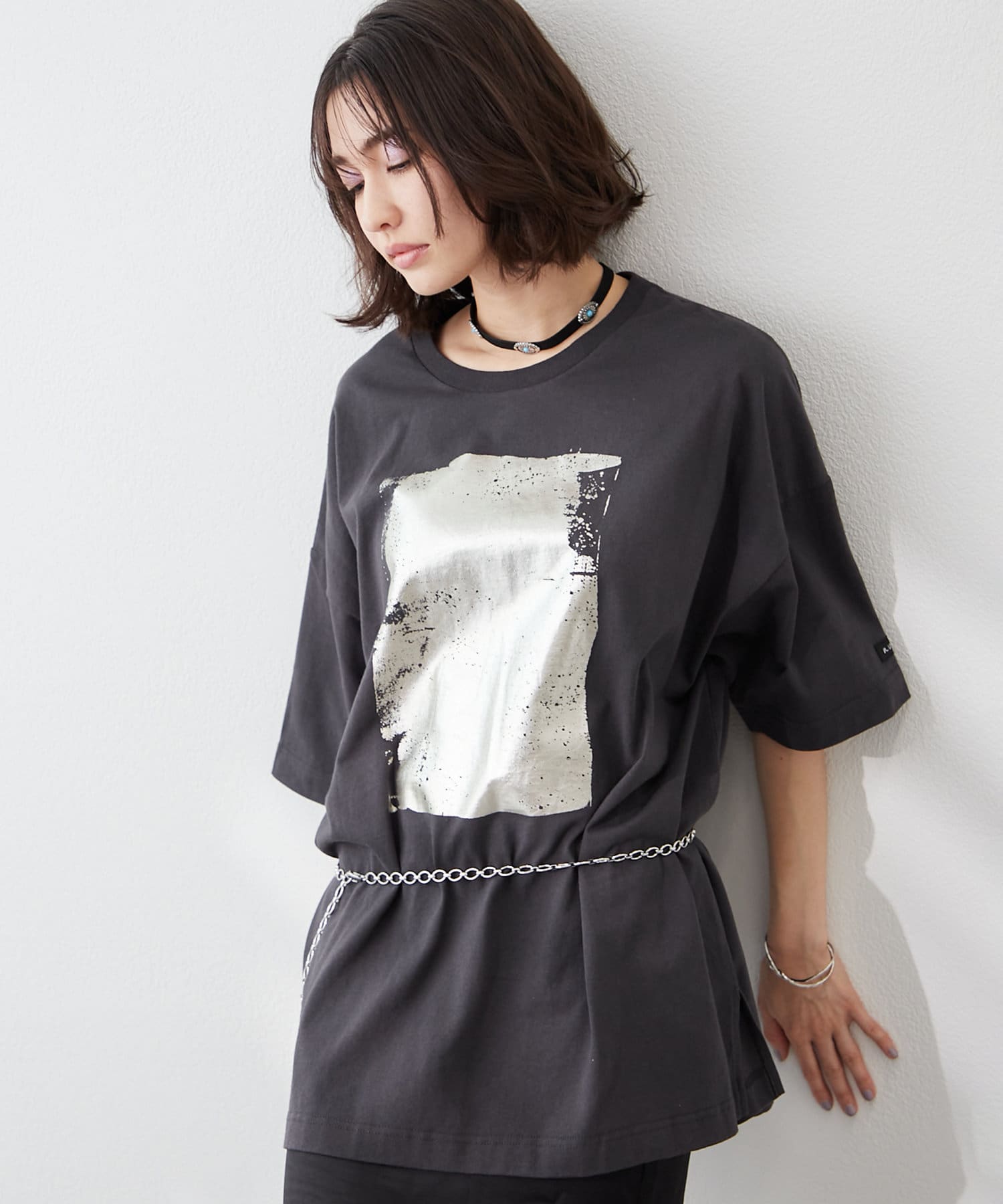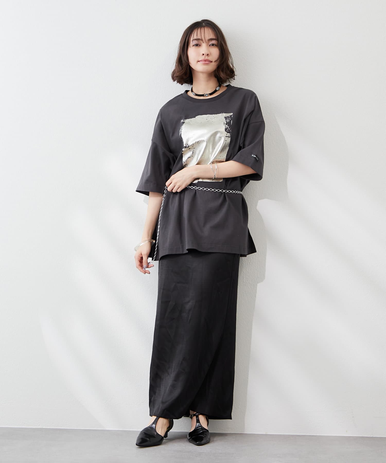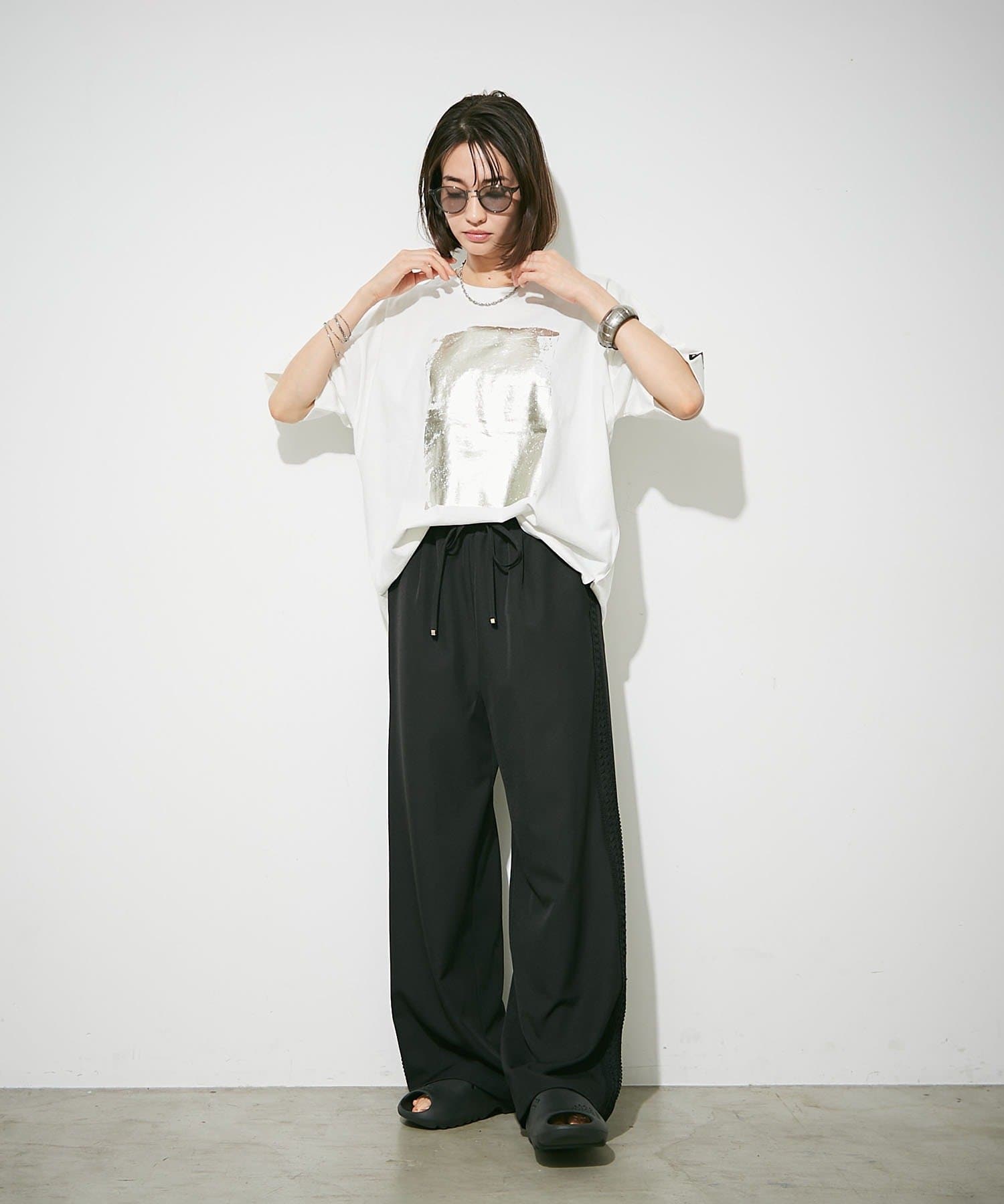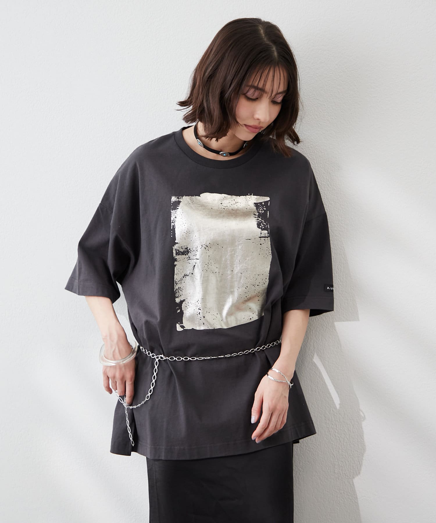 トレンドライクな箔押しプリントT。WEBで大人気デザインのアイテムです。