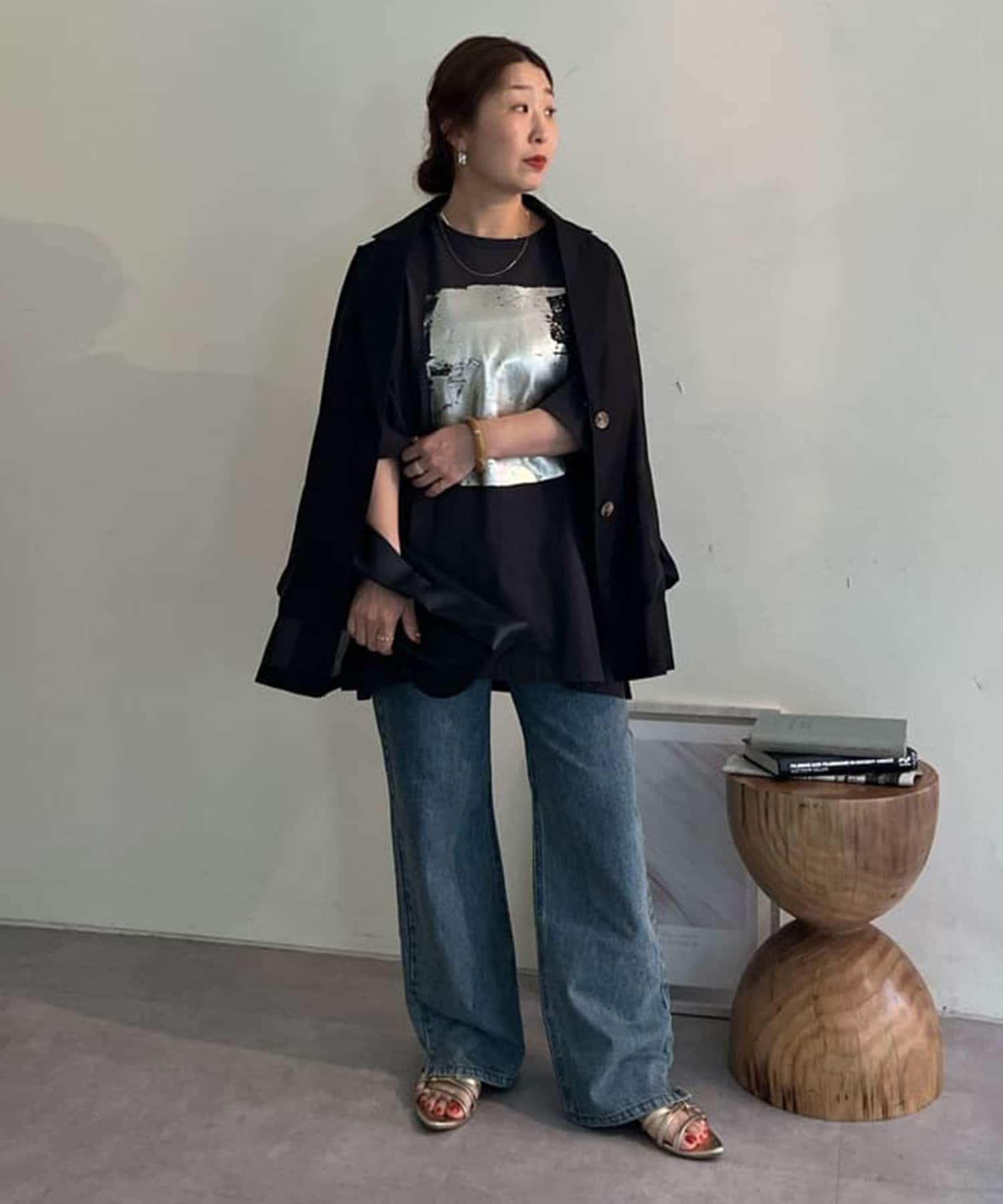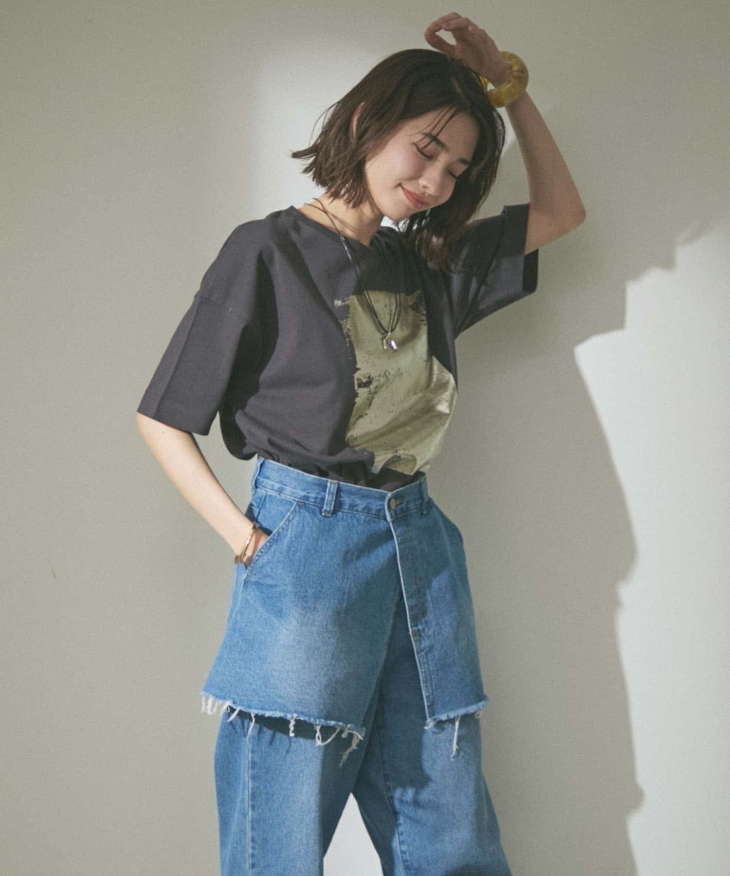ワイドデニムでティアードスカートなどで合わせたゆったりめなスタイリングも◎