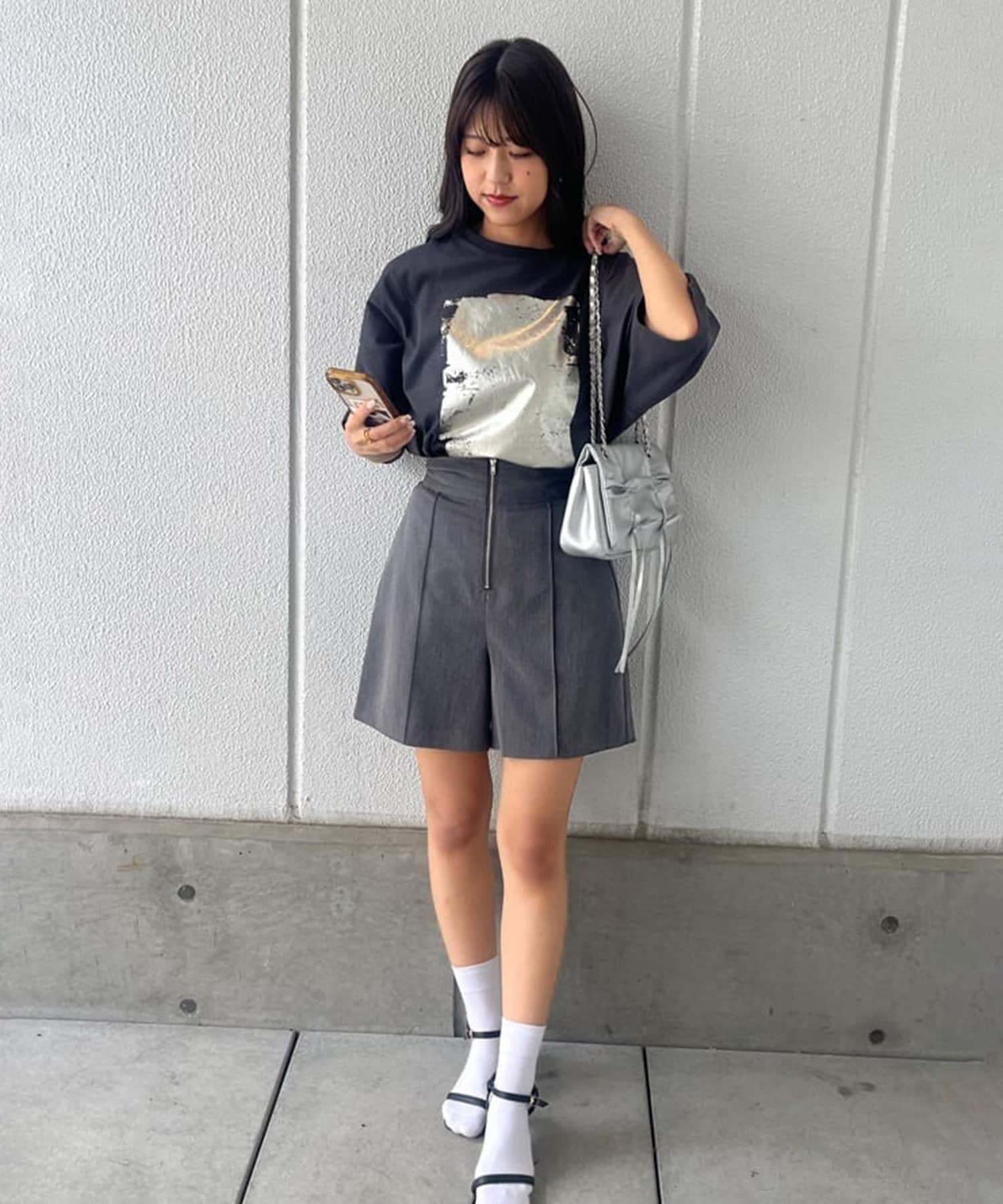 大きめなシルエットなのでミニボトムで合わせたミニワンピ風に着るのもおすすめです。