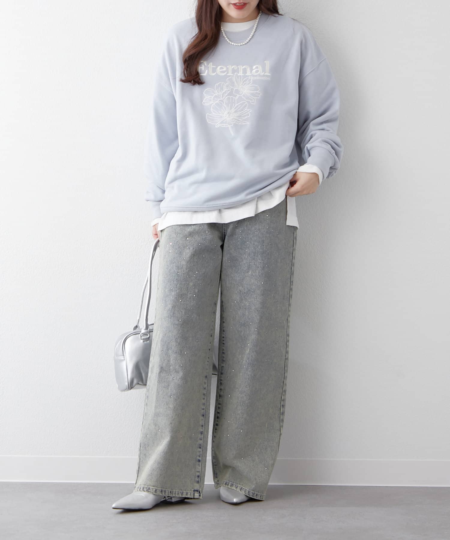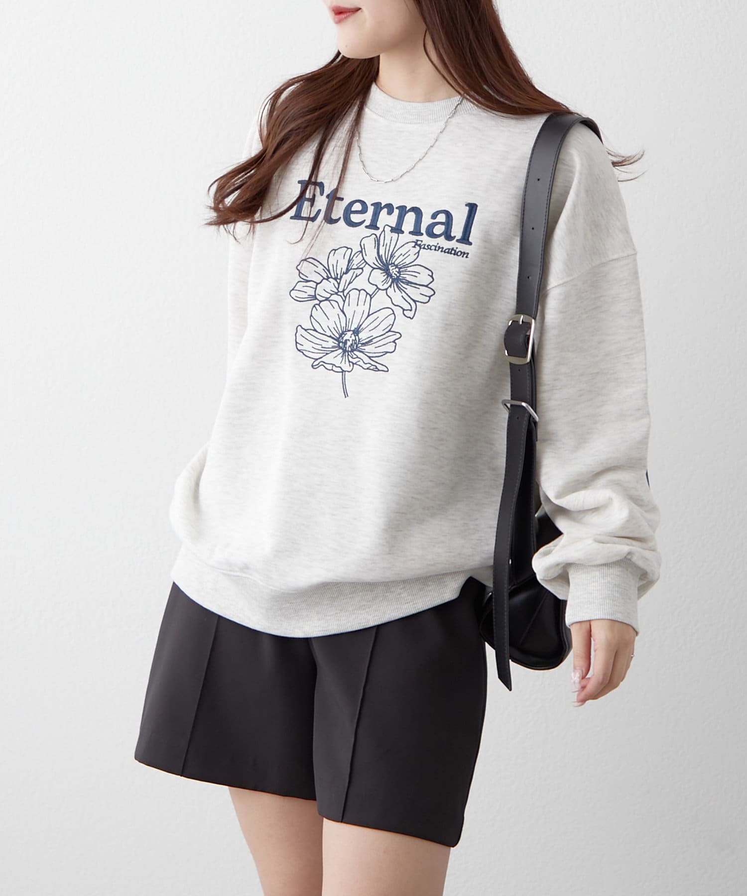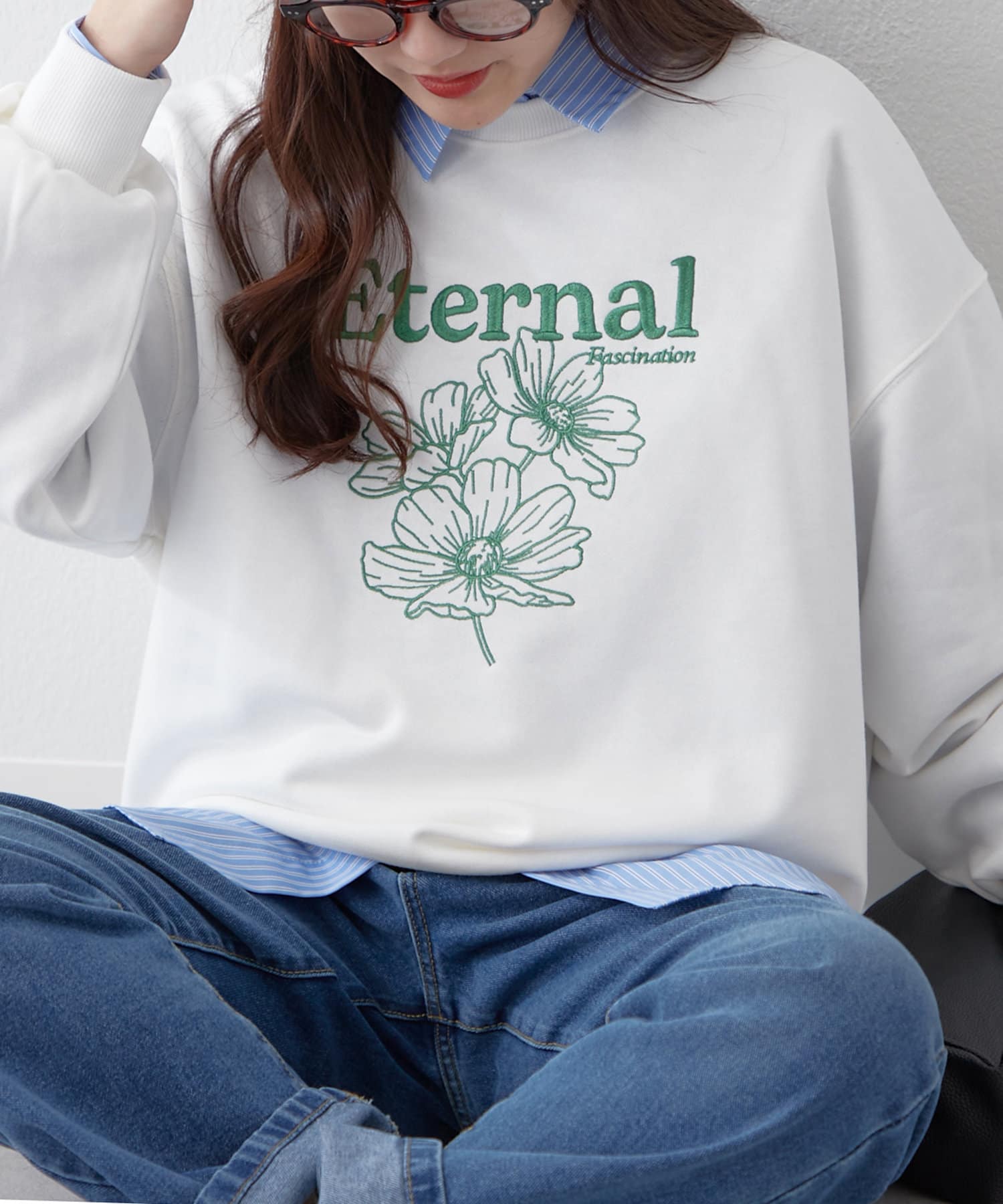 ・存在感あるお花とロゴの刺繍が目を惹くスウェット。