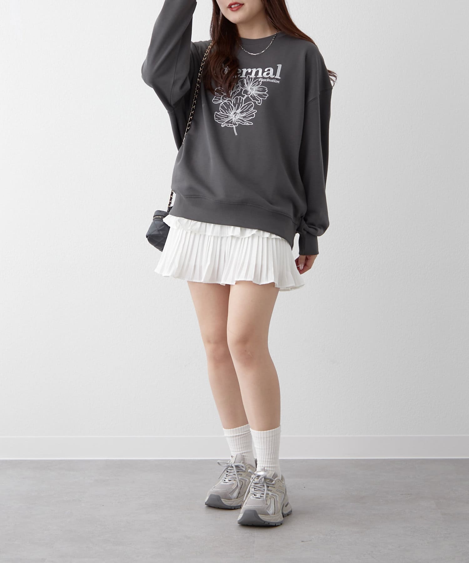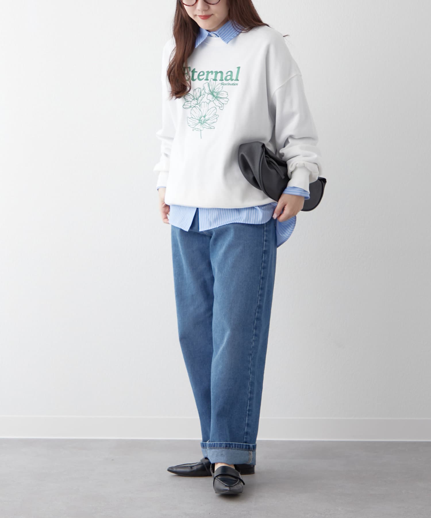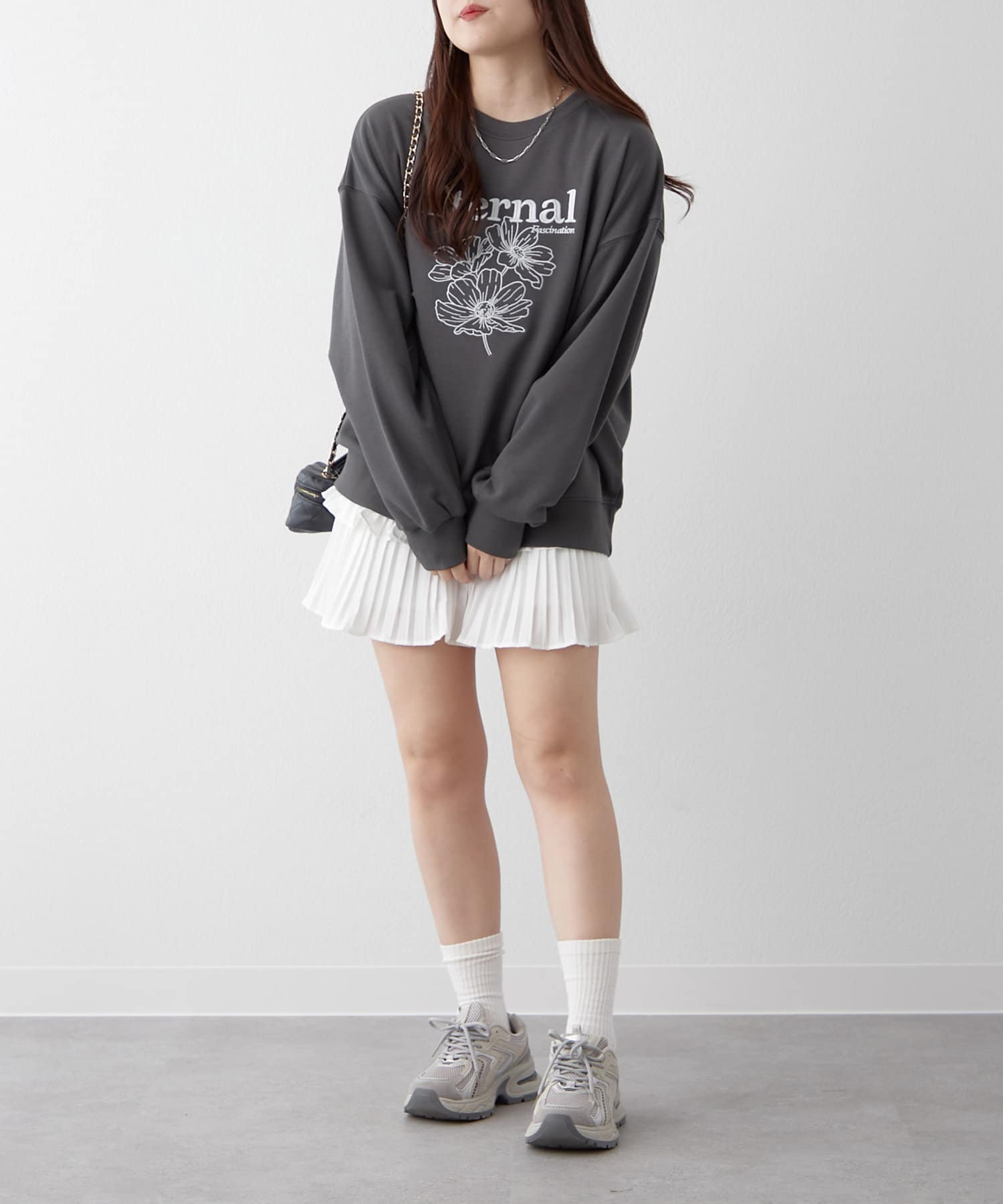 ・存在感あるお花とロゴの刺繍が目を惹くスウェット。