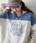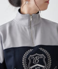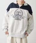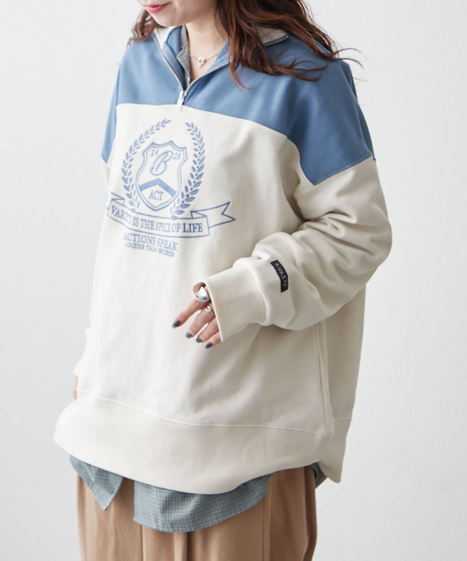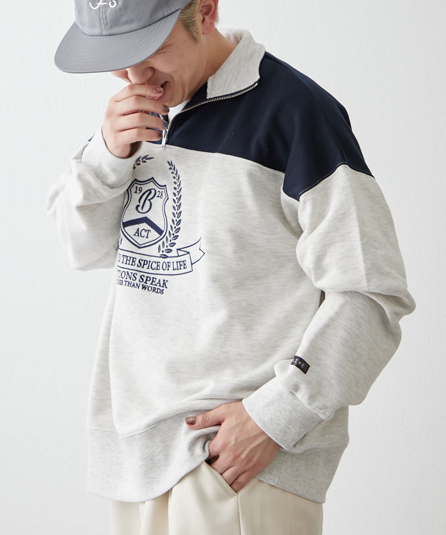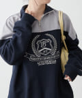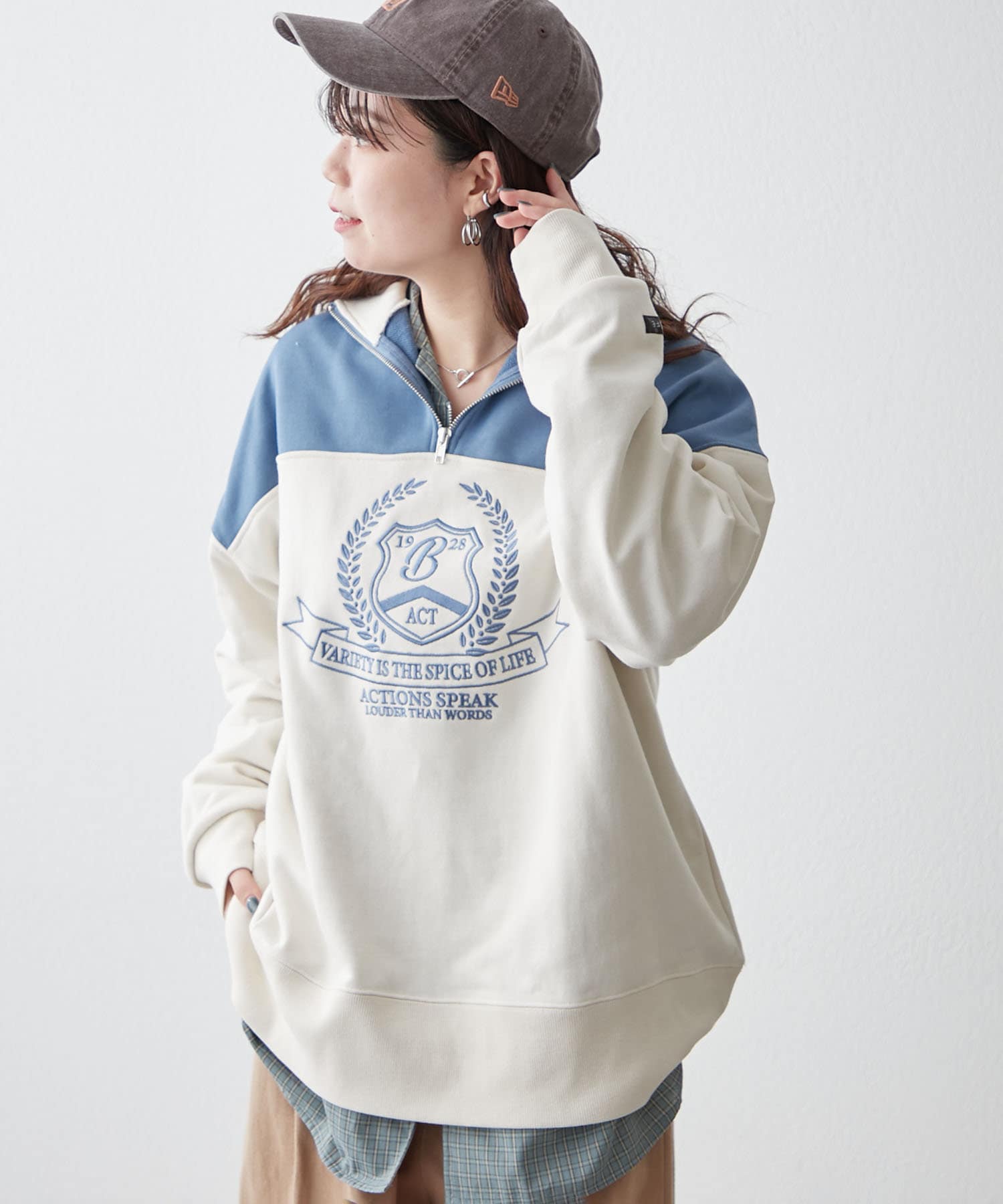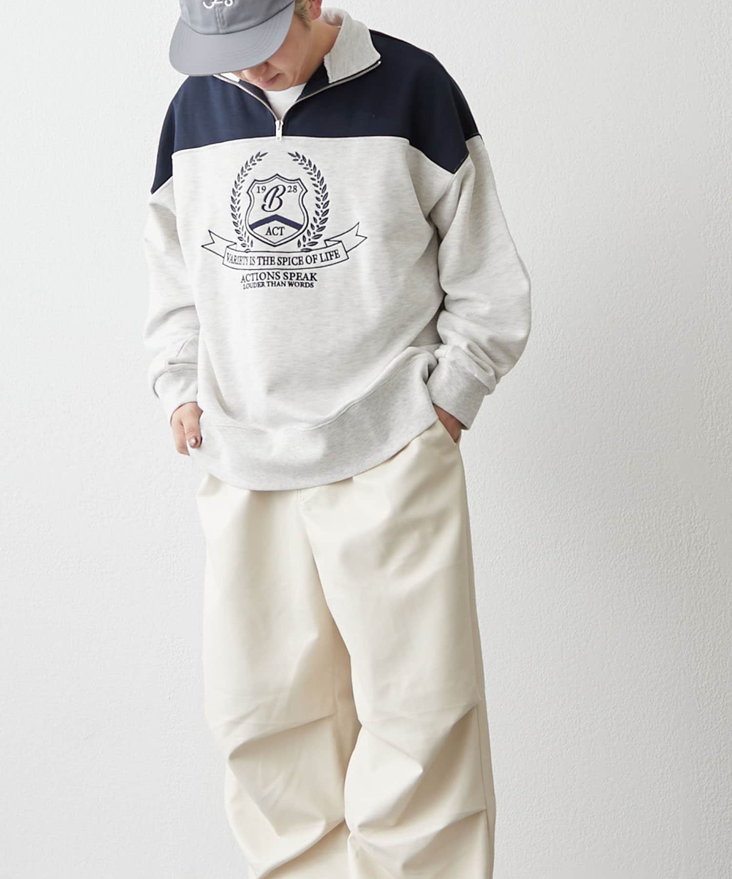 ・立体刺繍と配色がポイントのハーフジッププルオーバー。