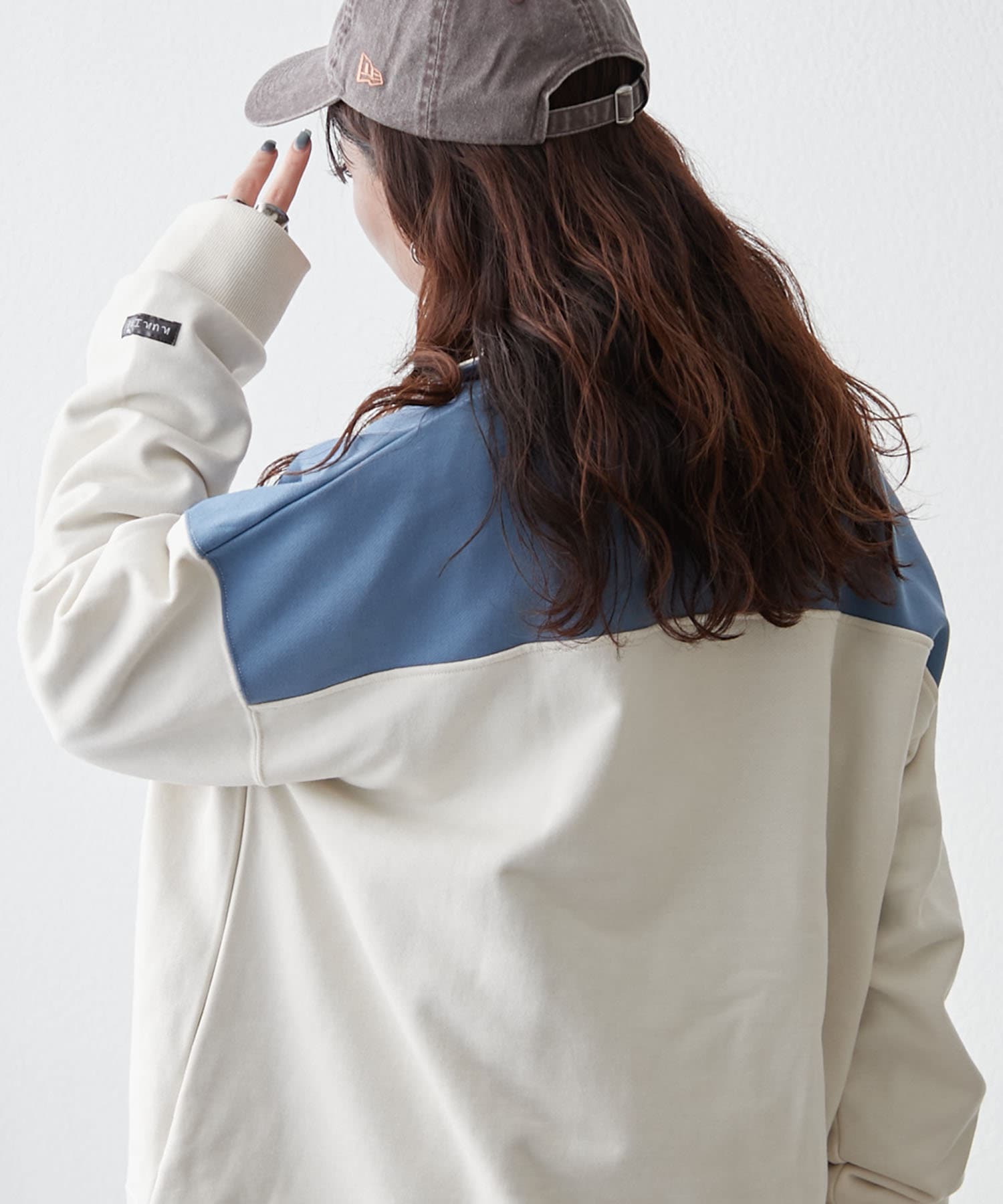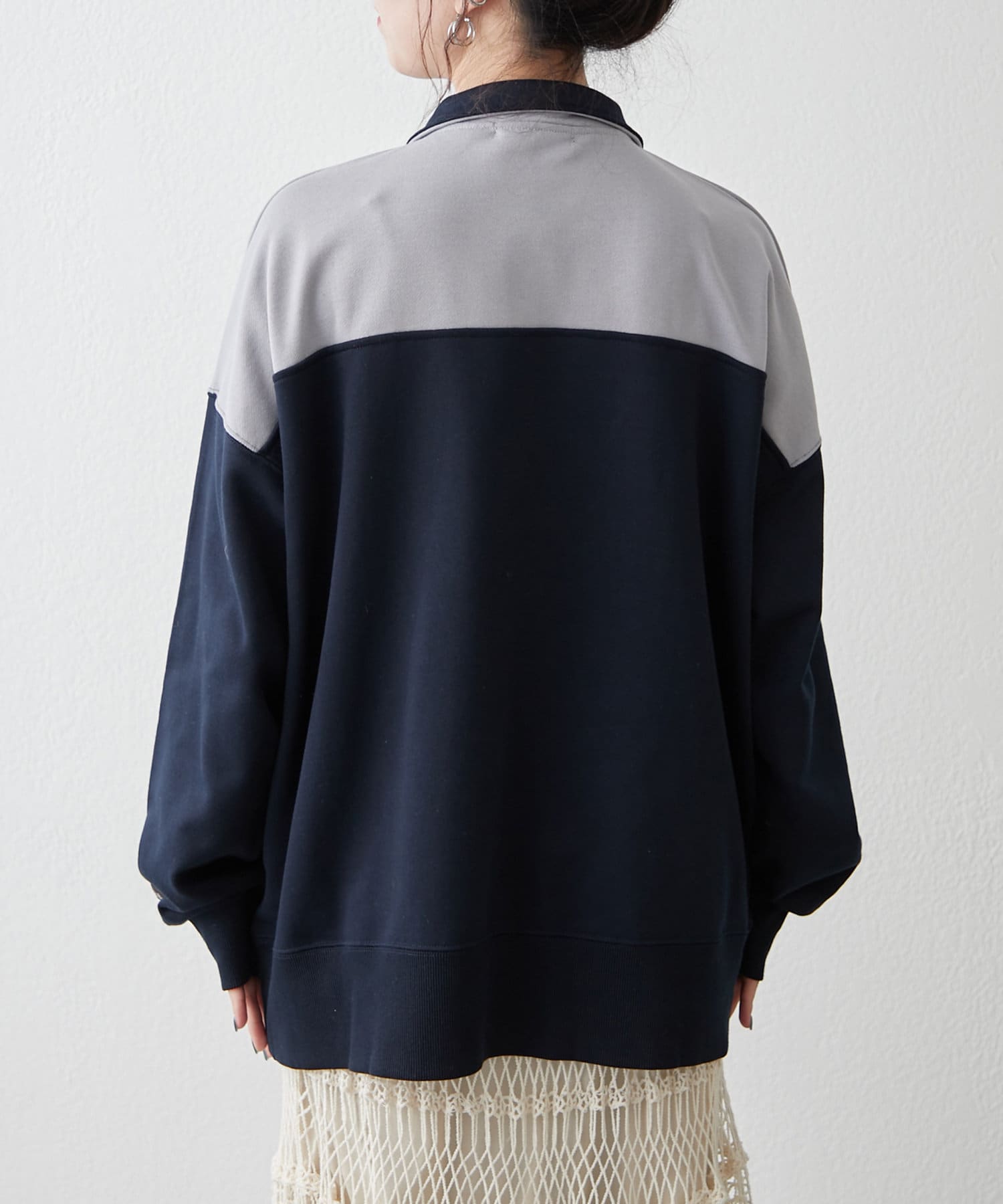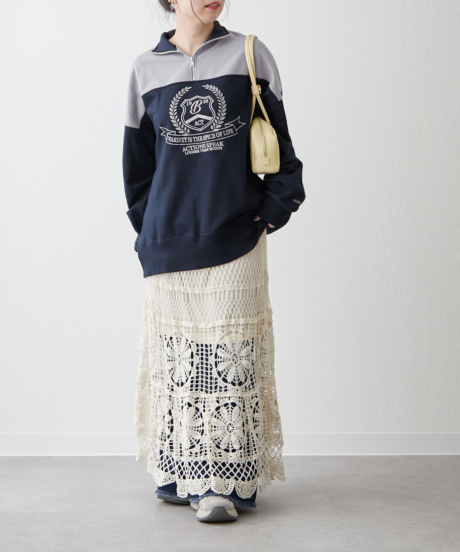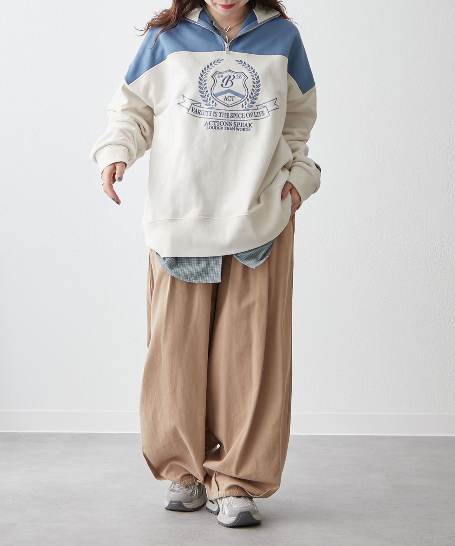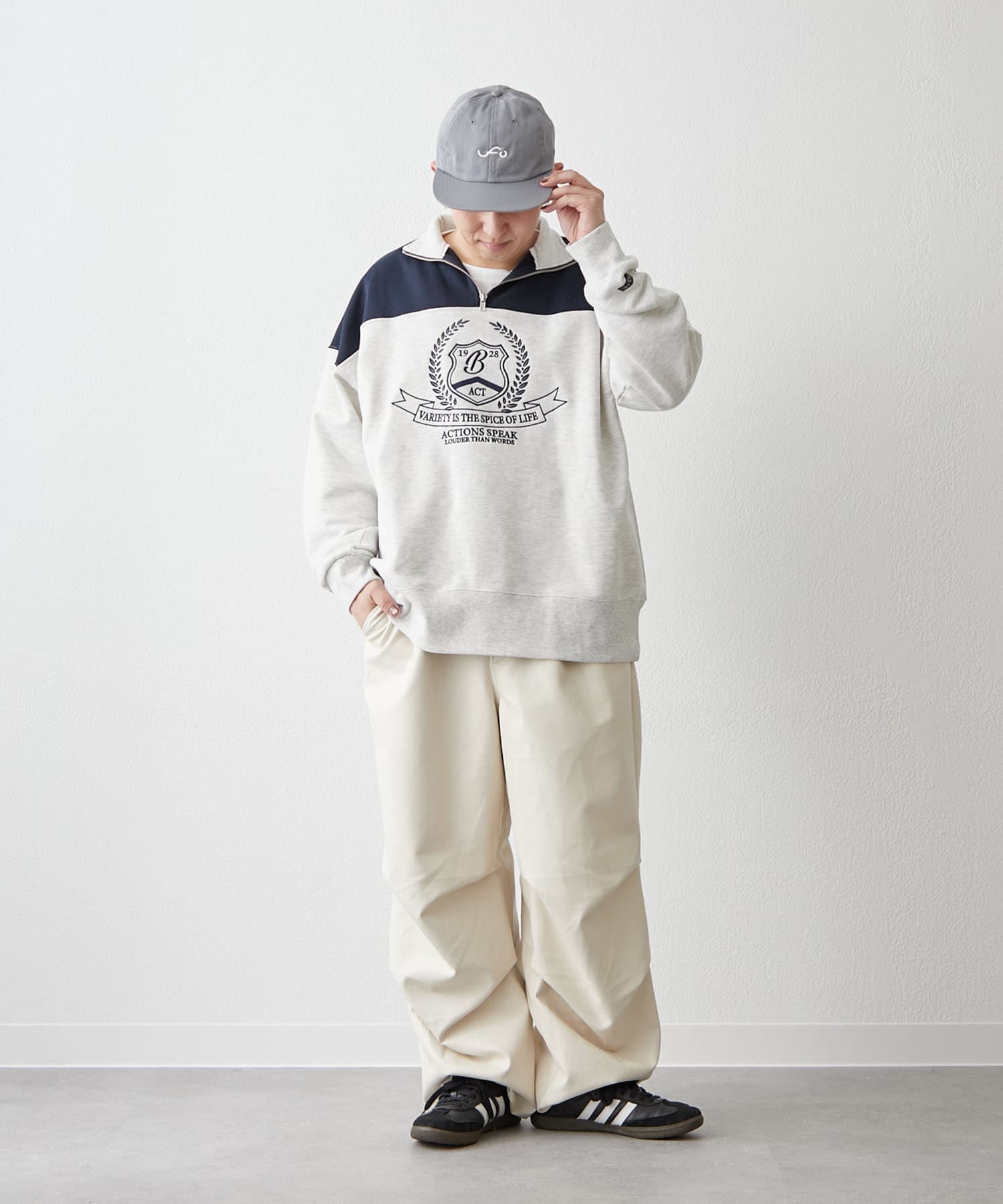 ・立体刺繍と配色がポイントのハーフジッププルオーバー。