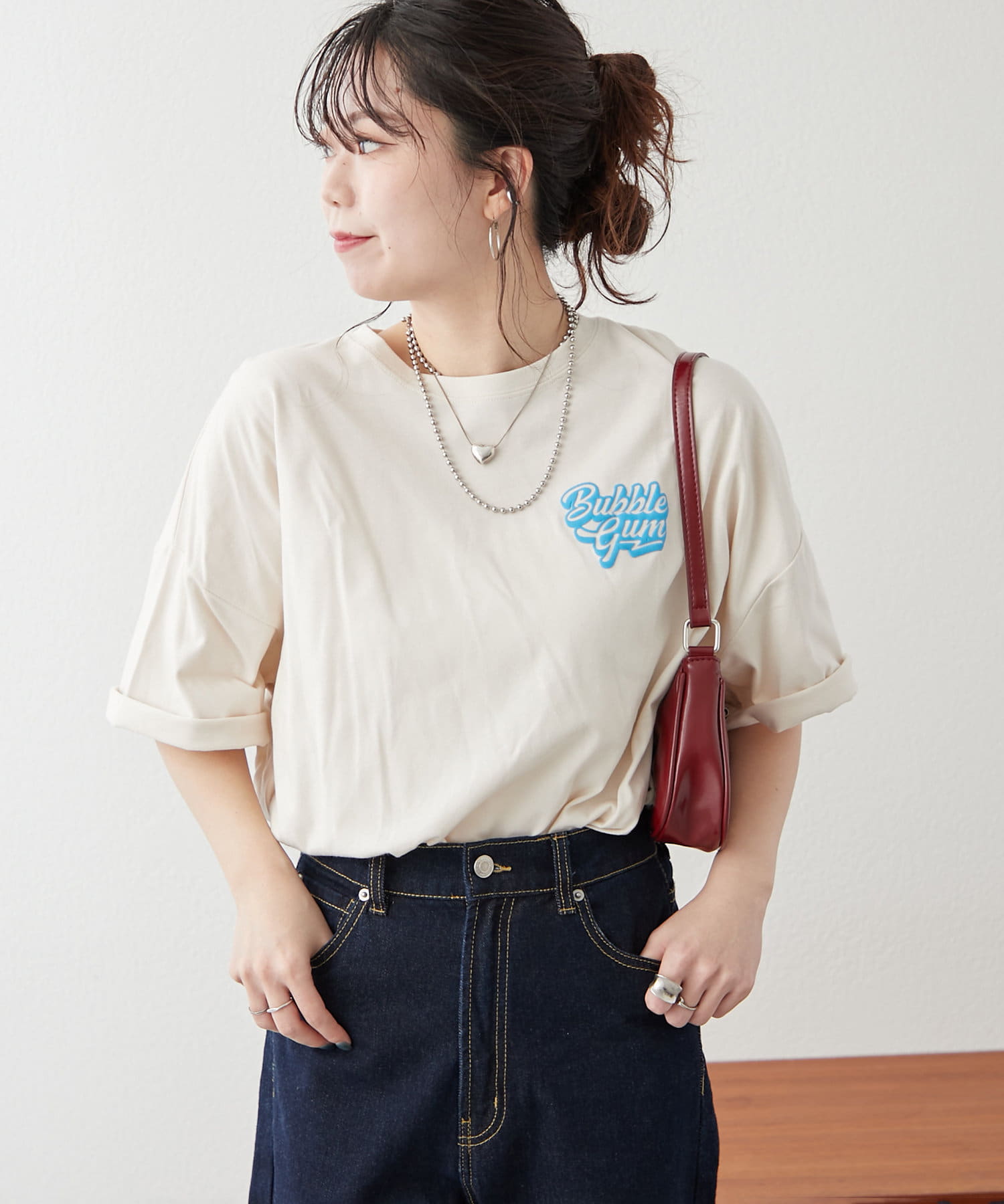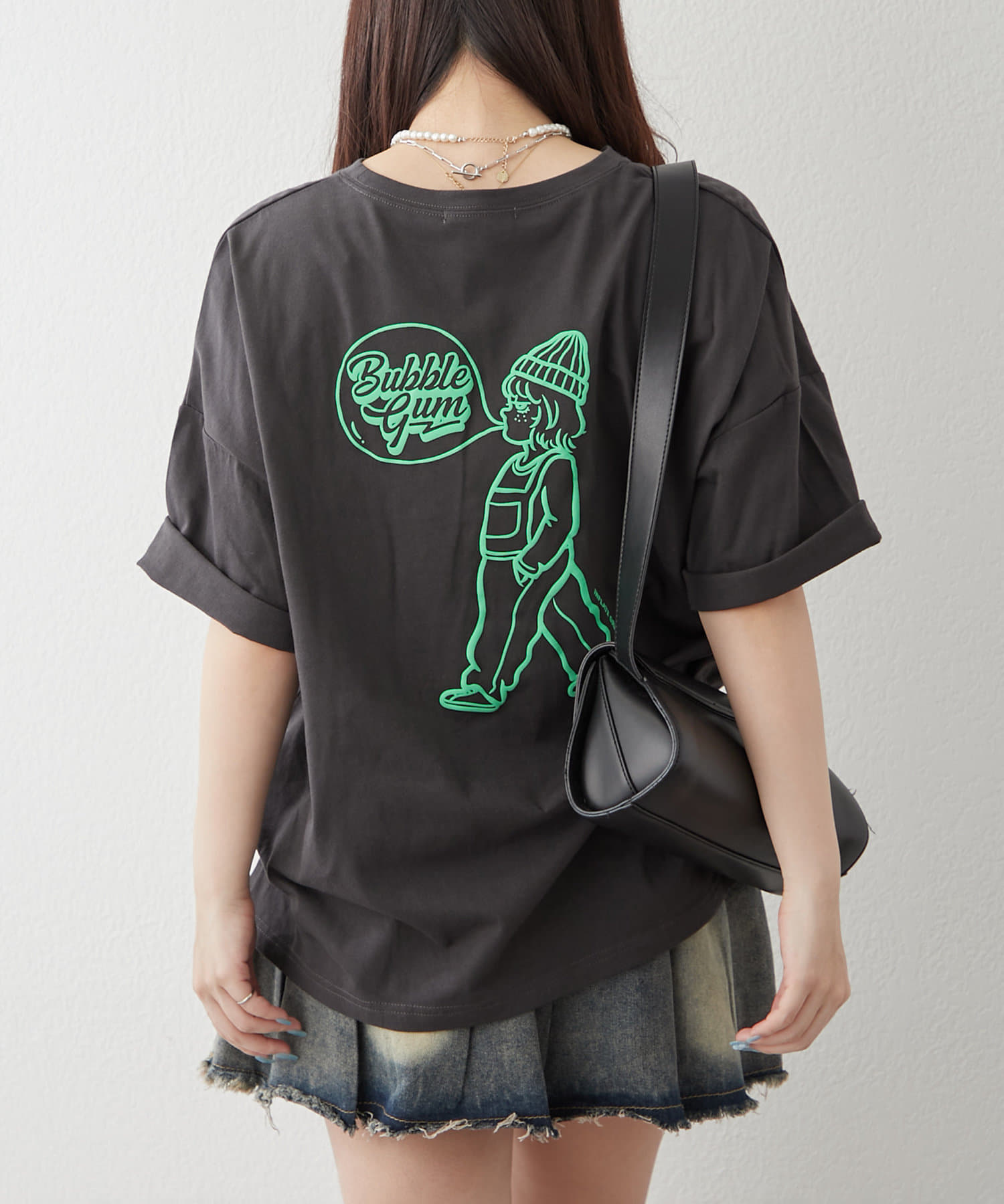 ・キャッチーな女の子のプリントがポイントのTシャツ