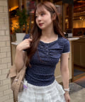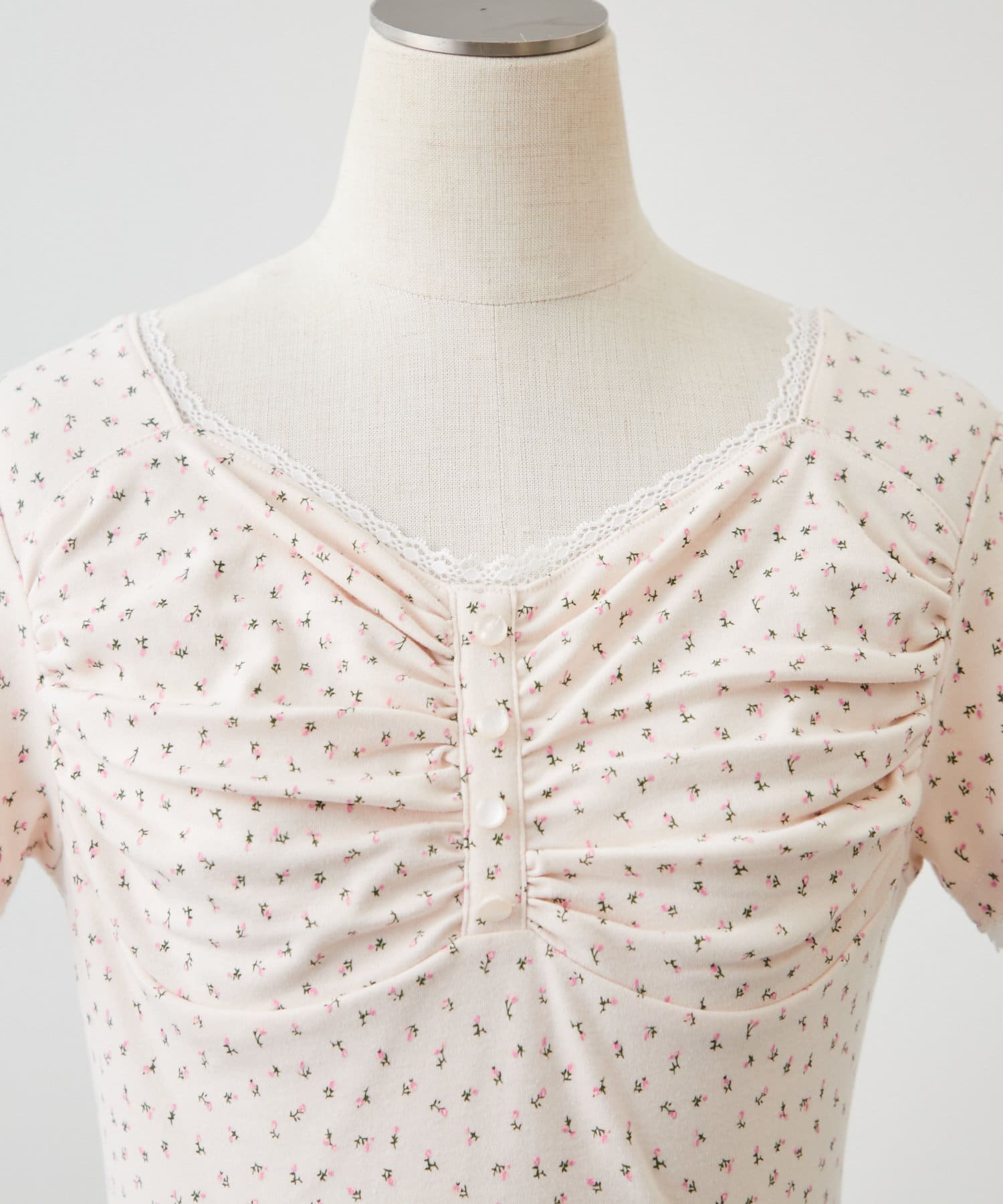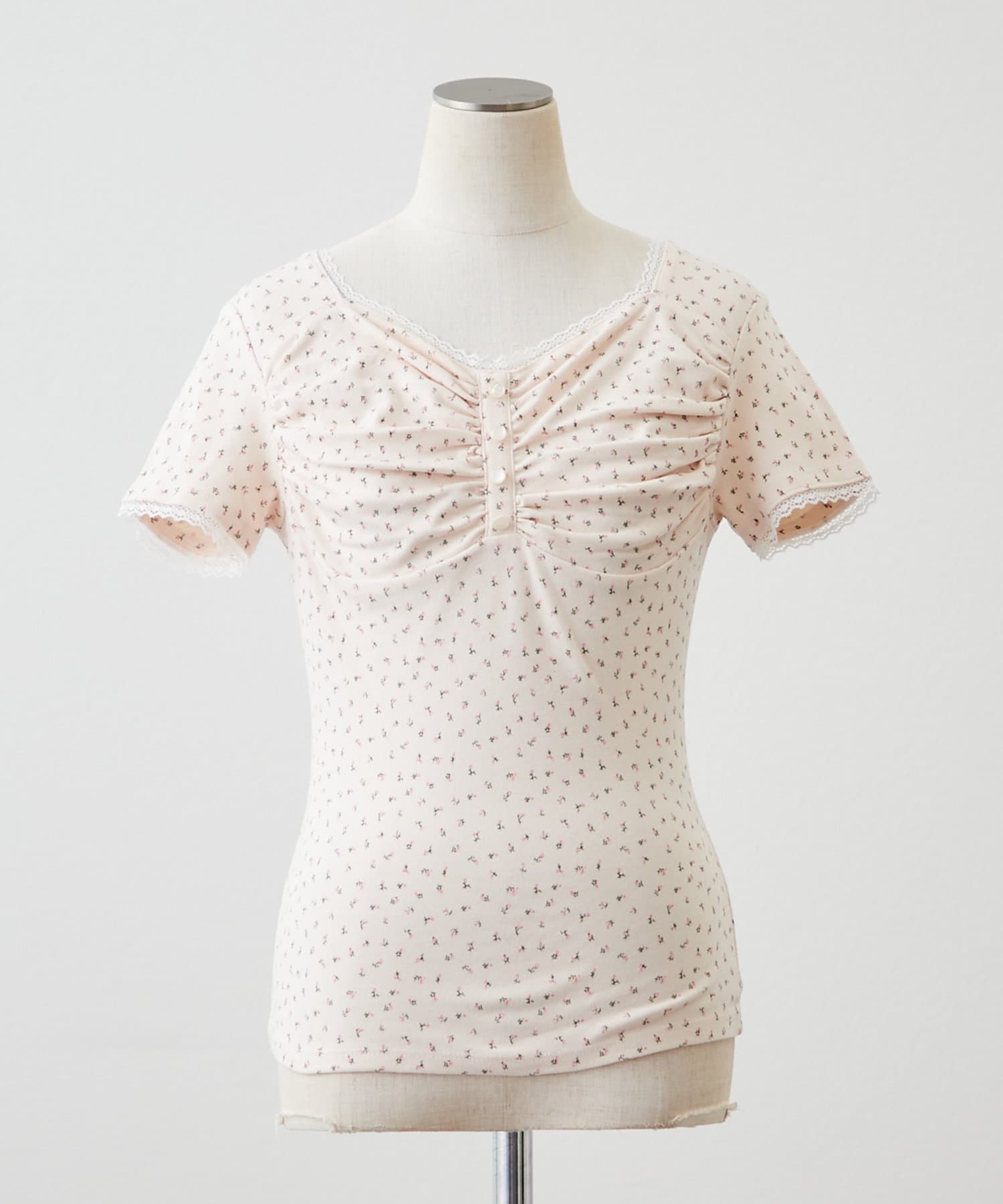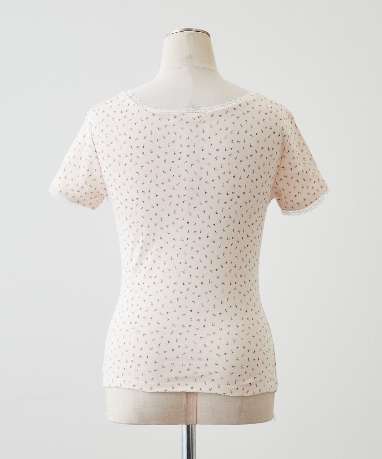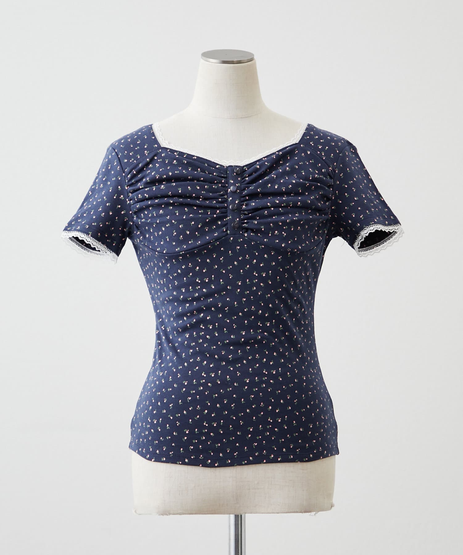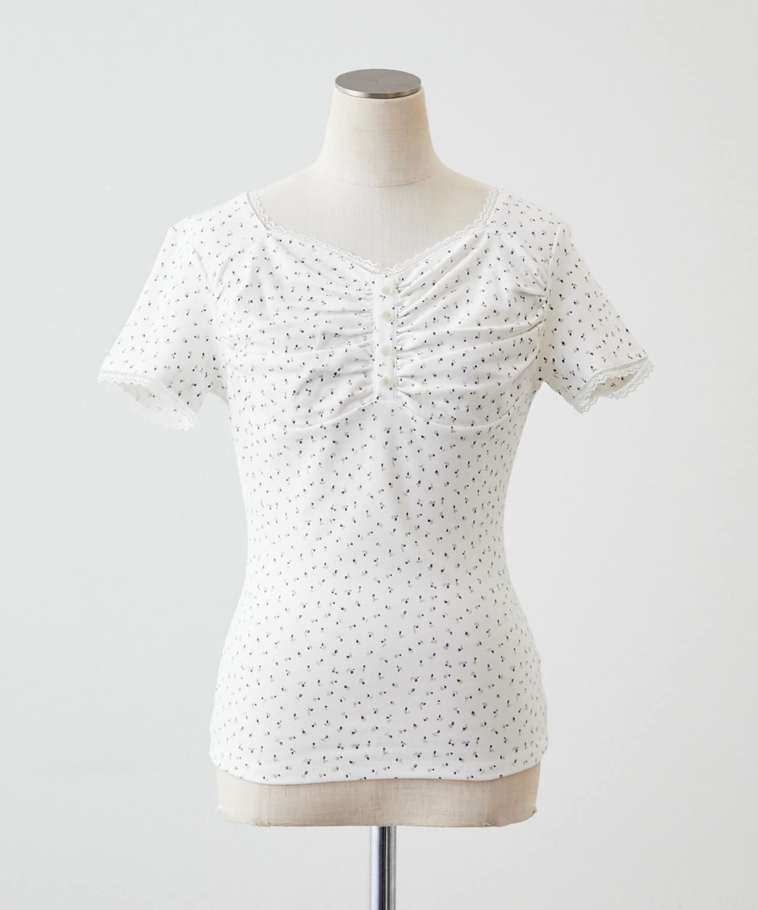 ◇目を惹く小花柄がアクセントの半袖トップス◇