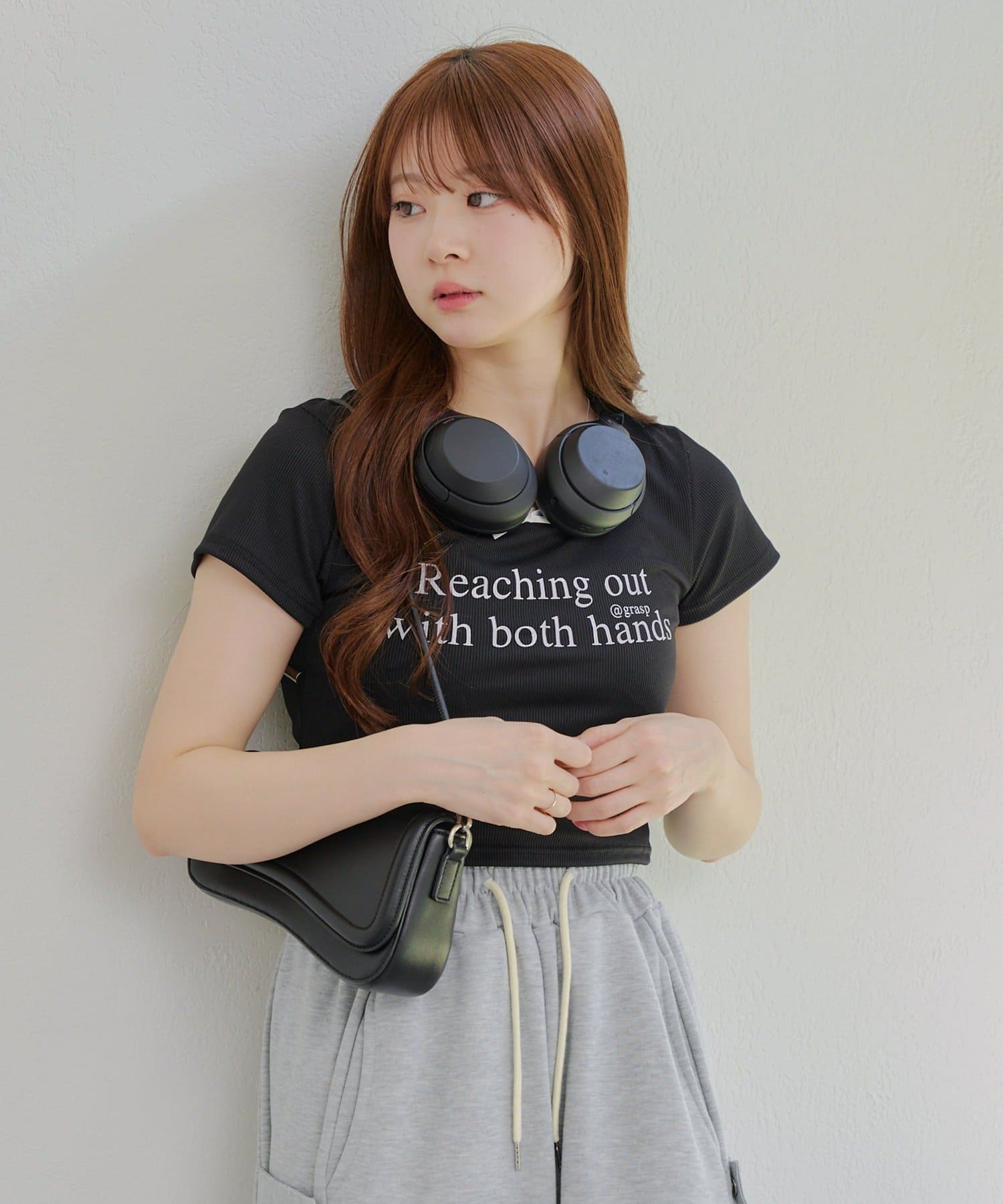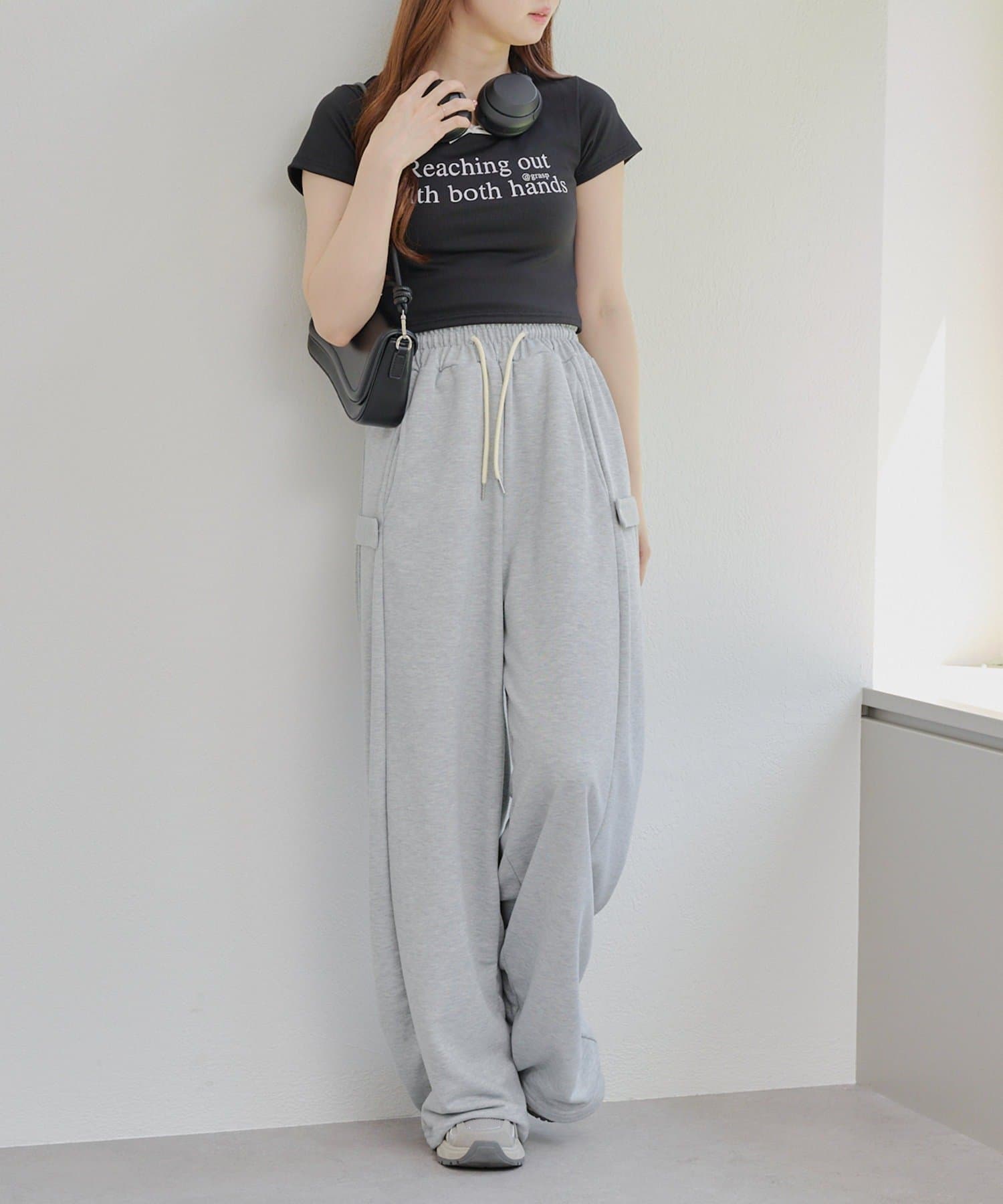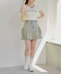 ・短丈のトップスなのでボトムスに迷うことなく合わせやすいアイテムです。