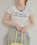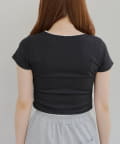短丈のトップスなのでボトムスに迷うことなく合わせやすいアイテムです。