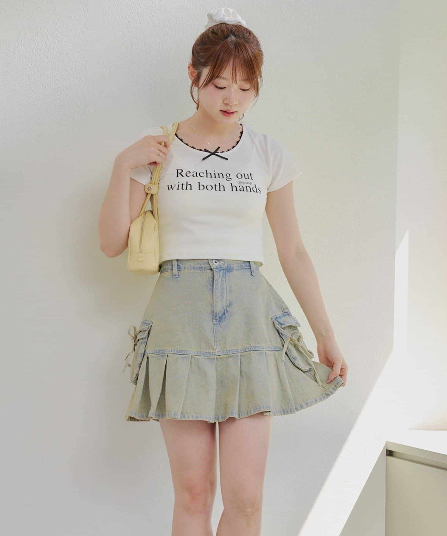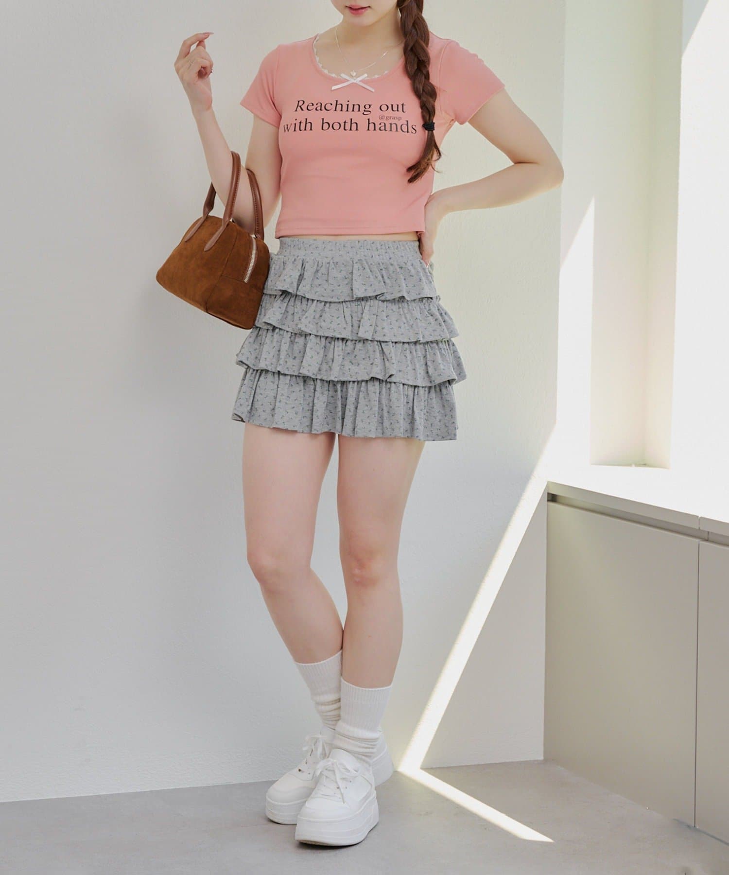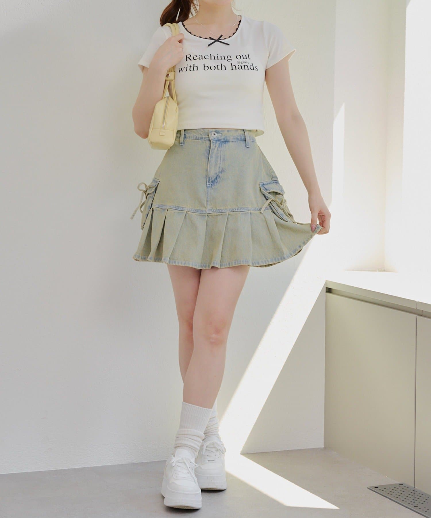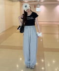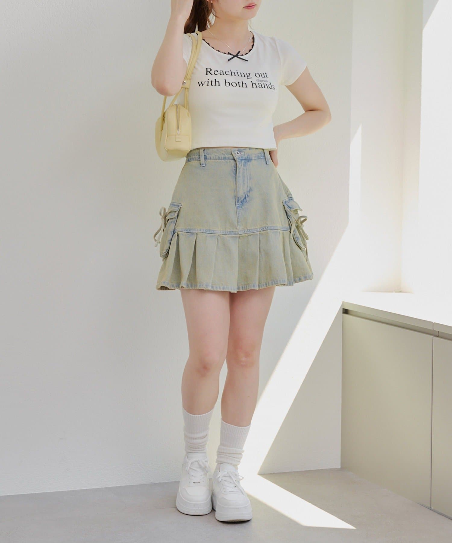 ・プリーツやフリルのボトムと合わせるとトレンドのバレエコアスタイルが完成します。