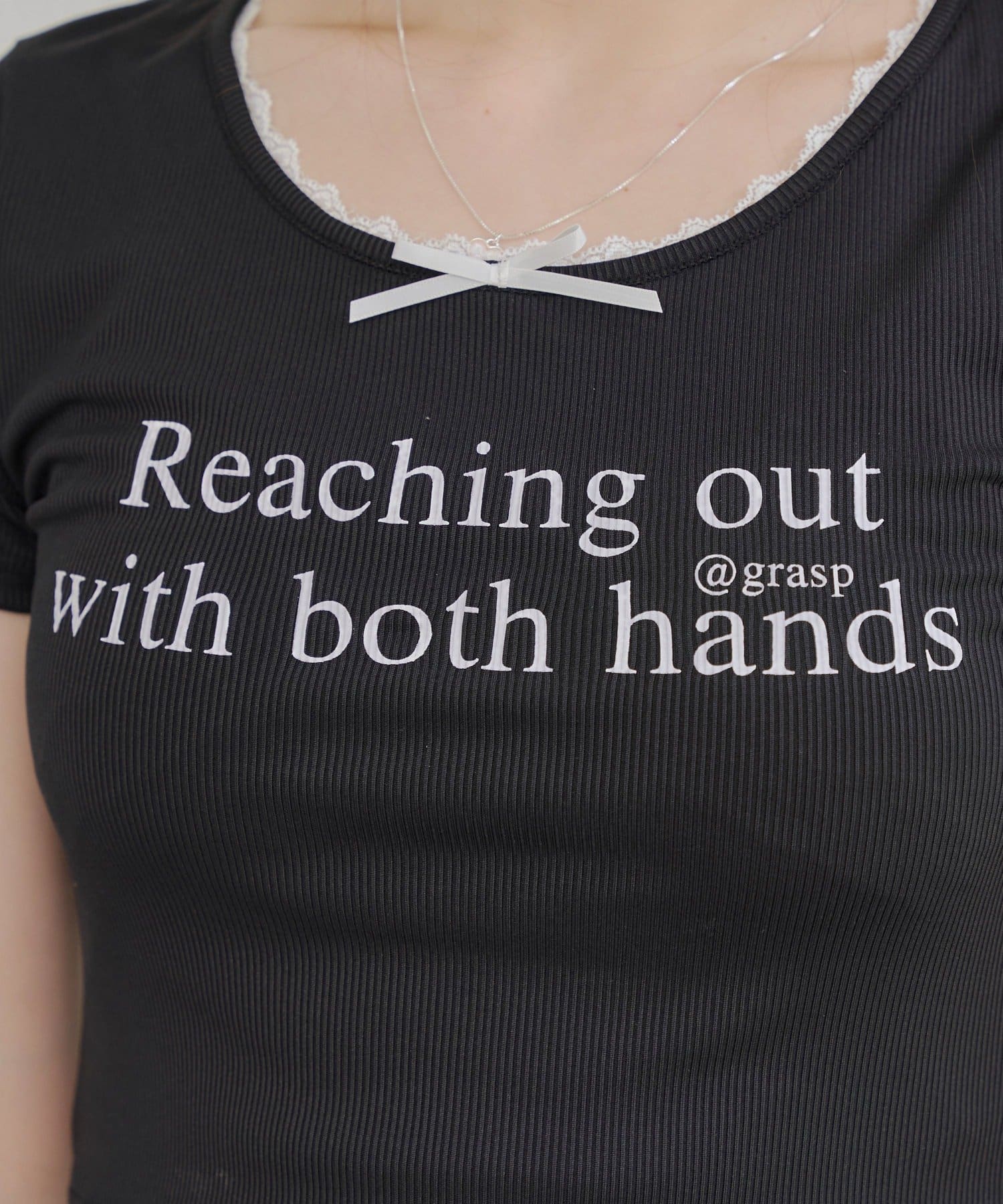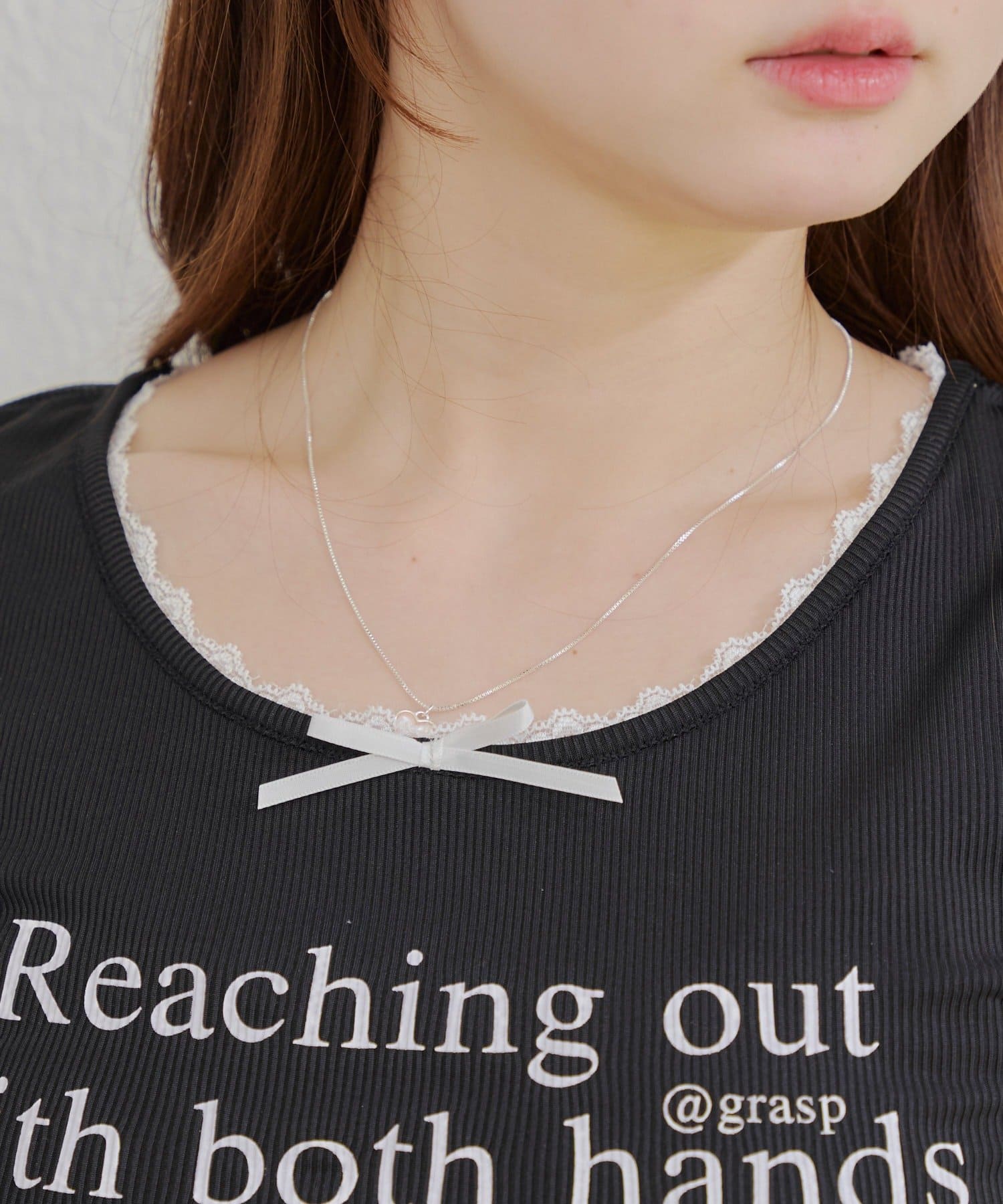 ・首周りのさりげないレースが顔回りを華やかにスッキリと見せてくれます◎