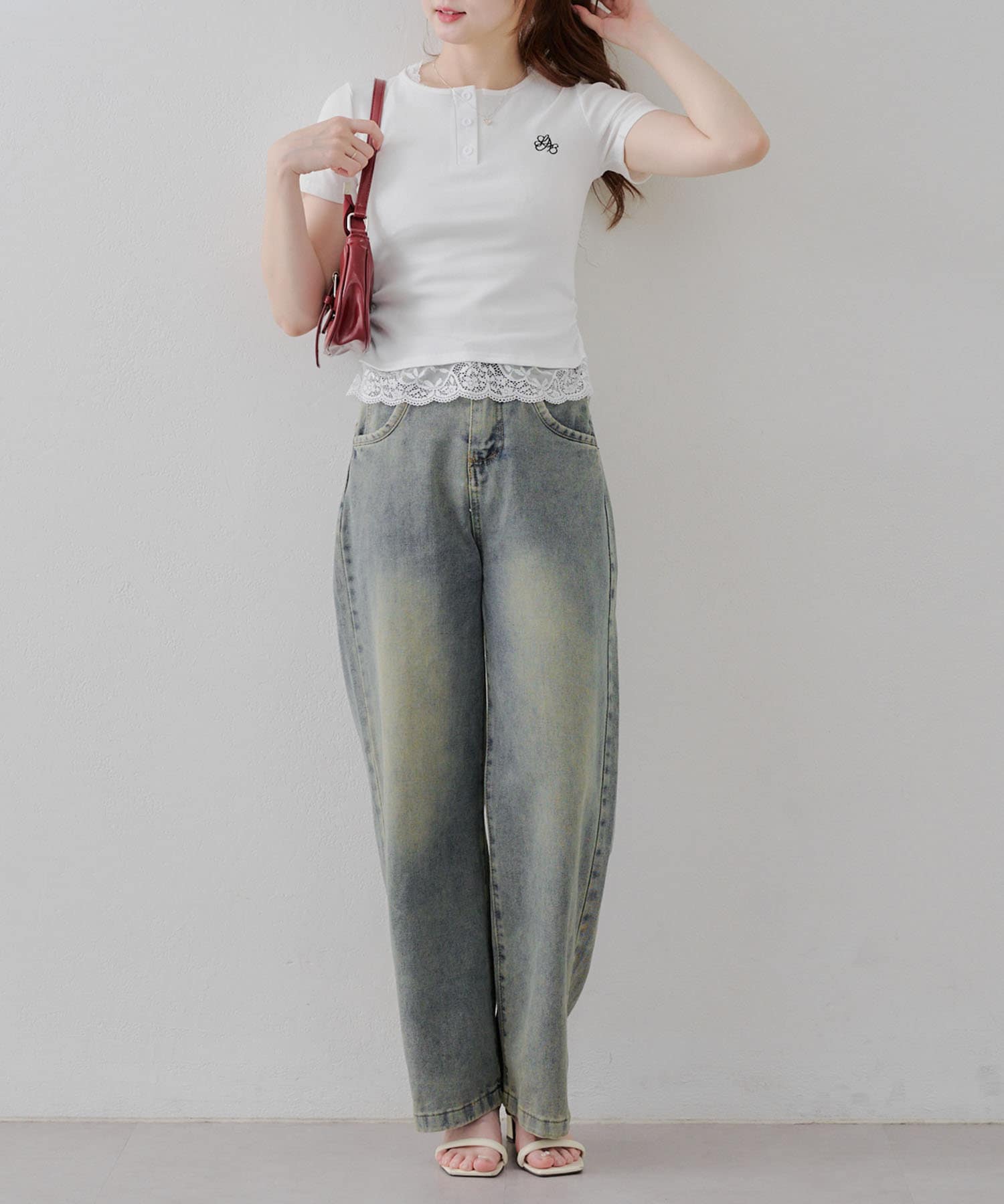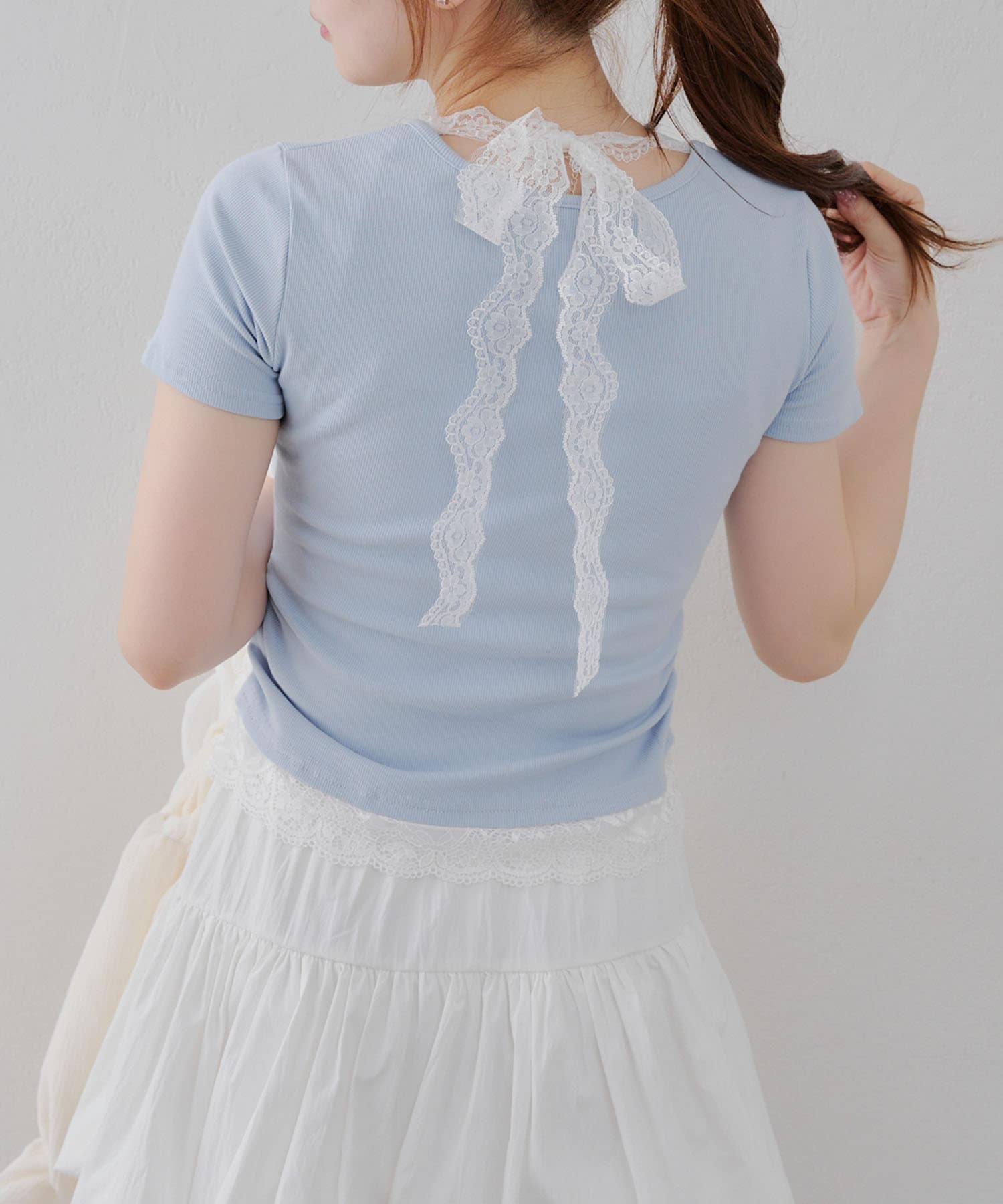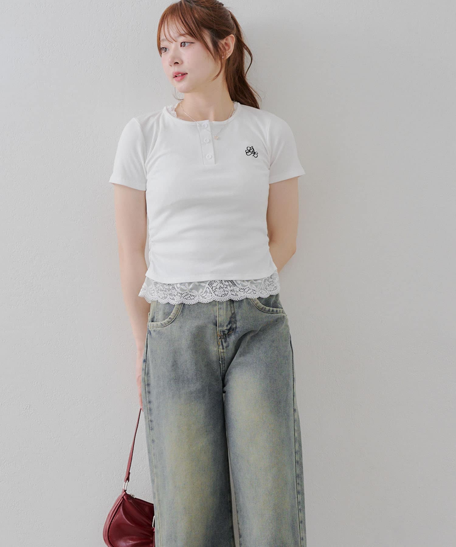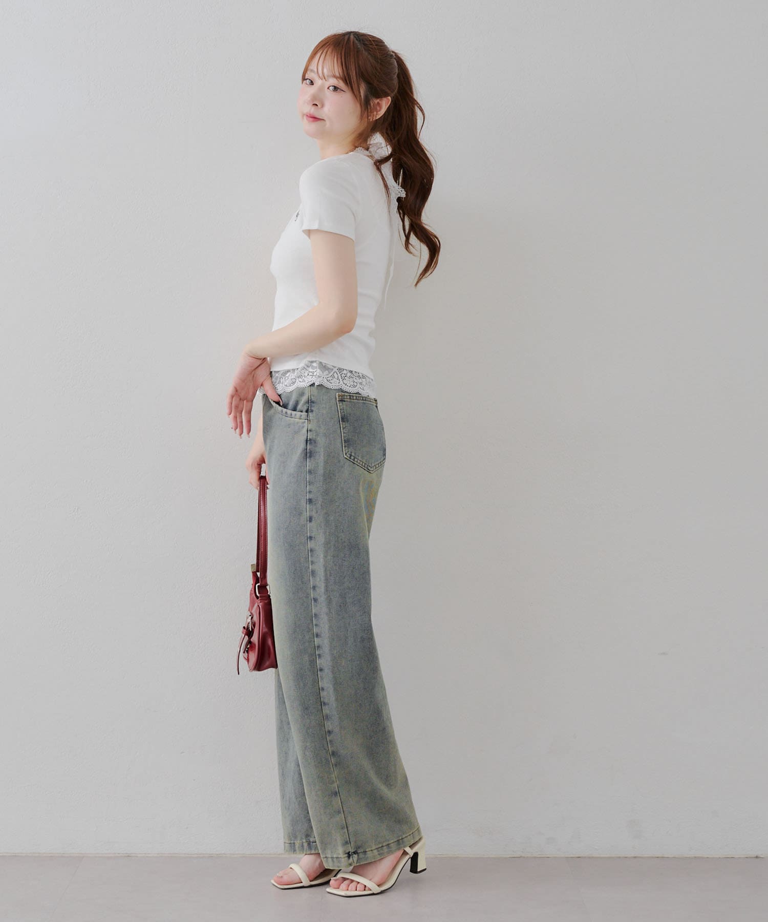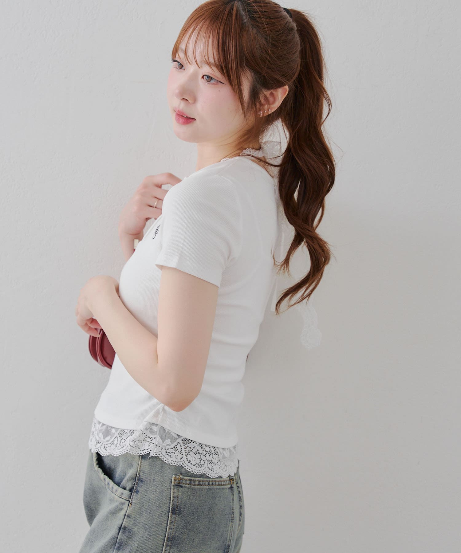 ・レース付きでぐっとお洒落になるテレコプルオーバー