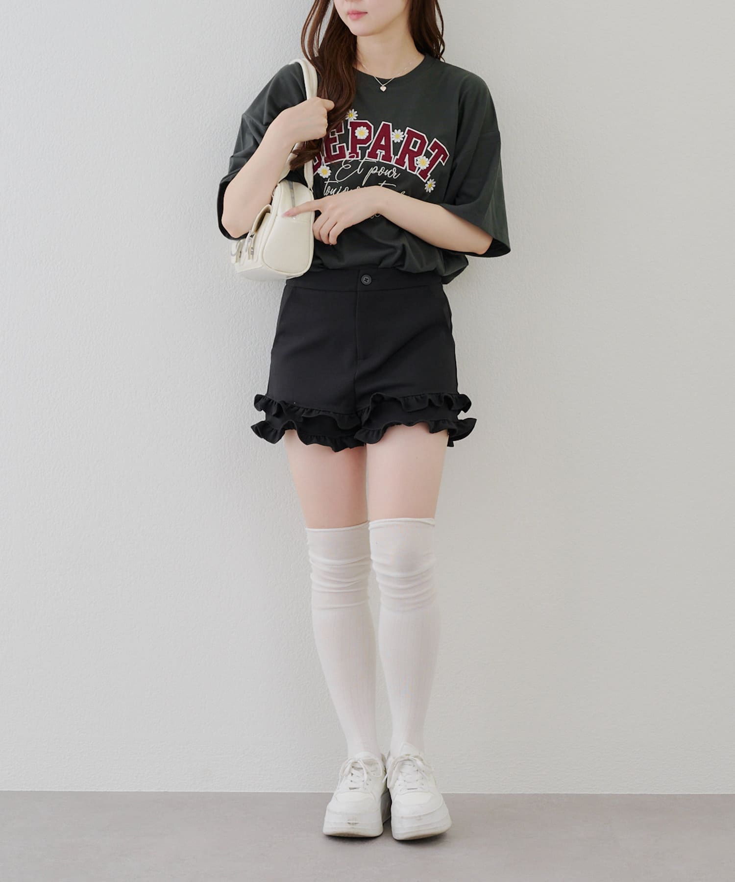 ・フルレングスのボトムでも、ミニボトムでも合わせやすいTシャツ