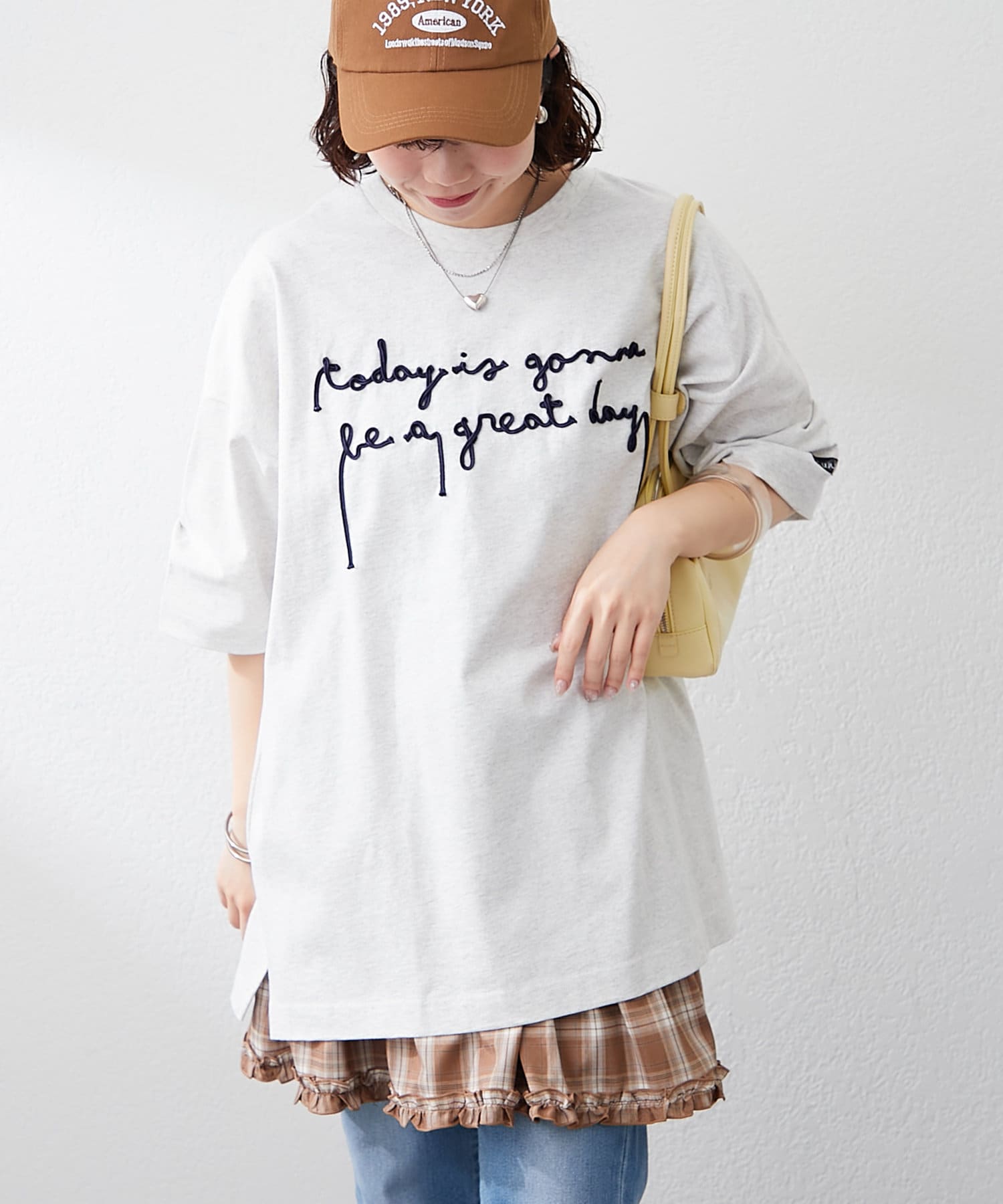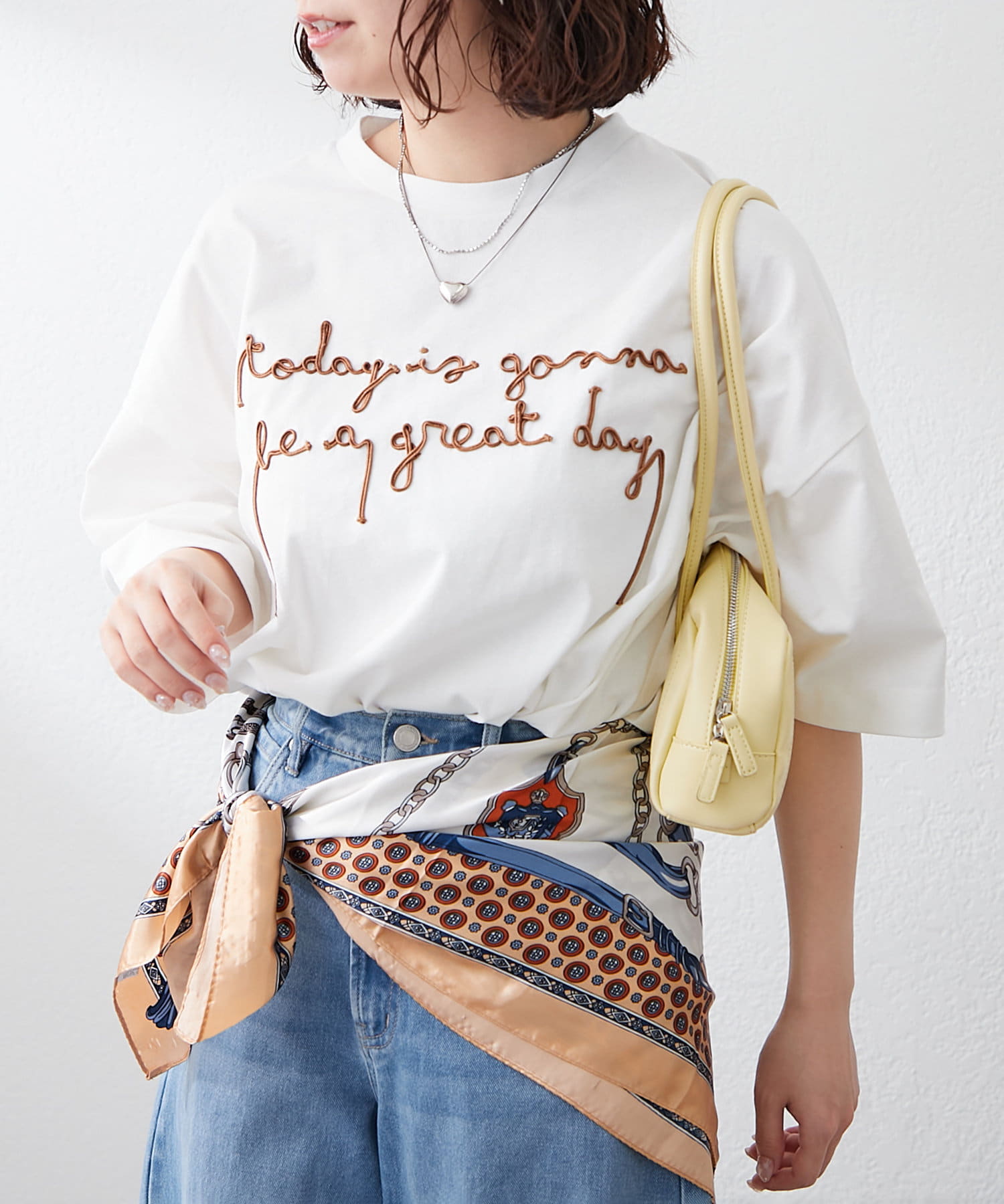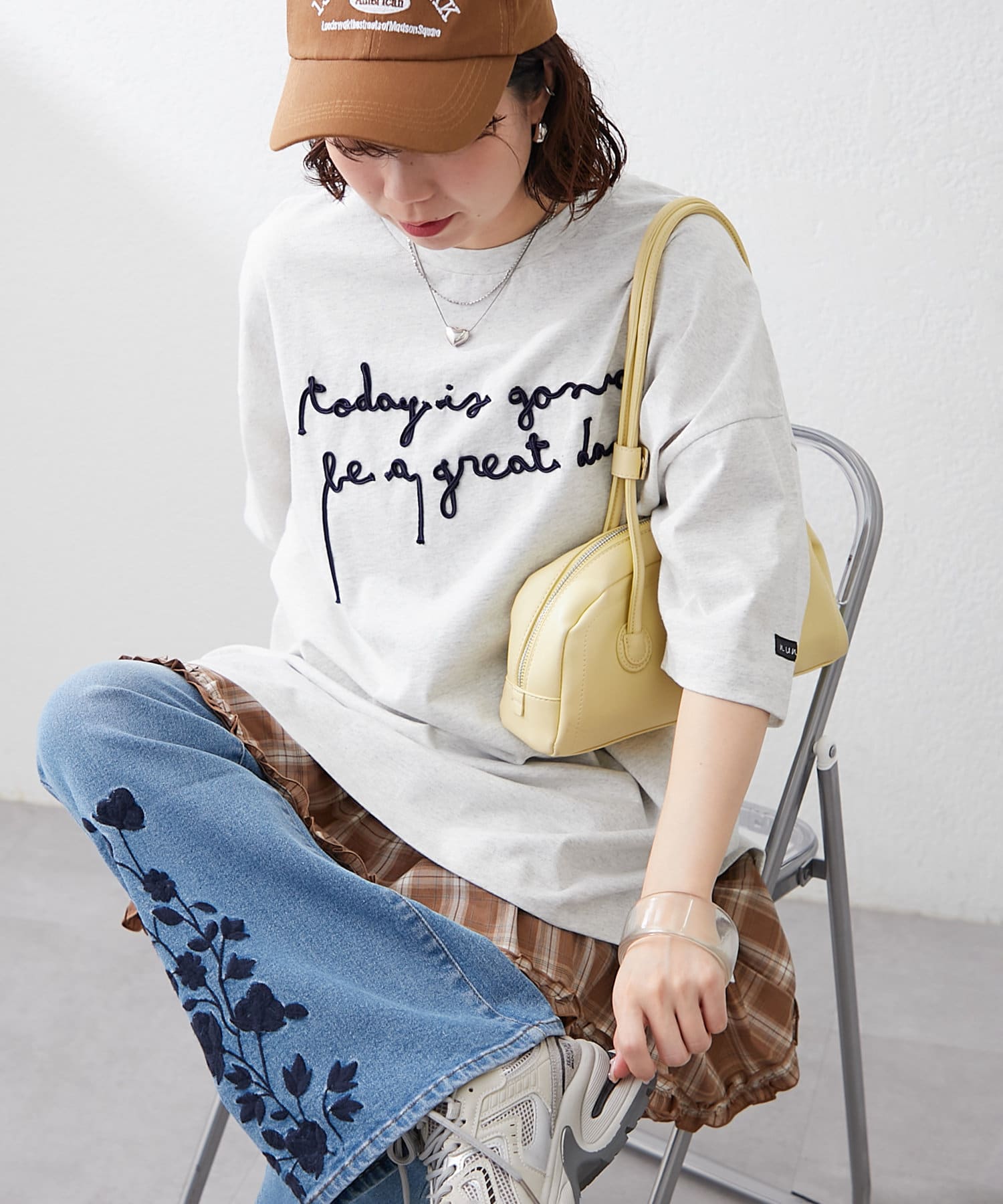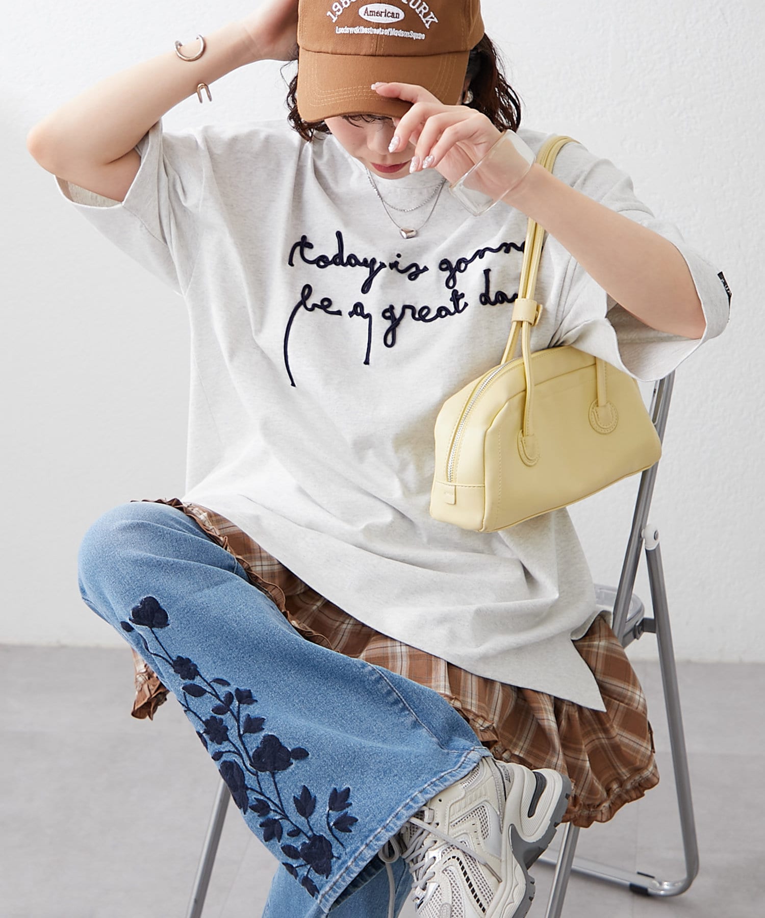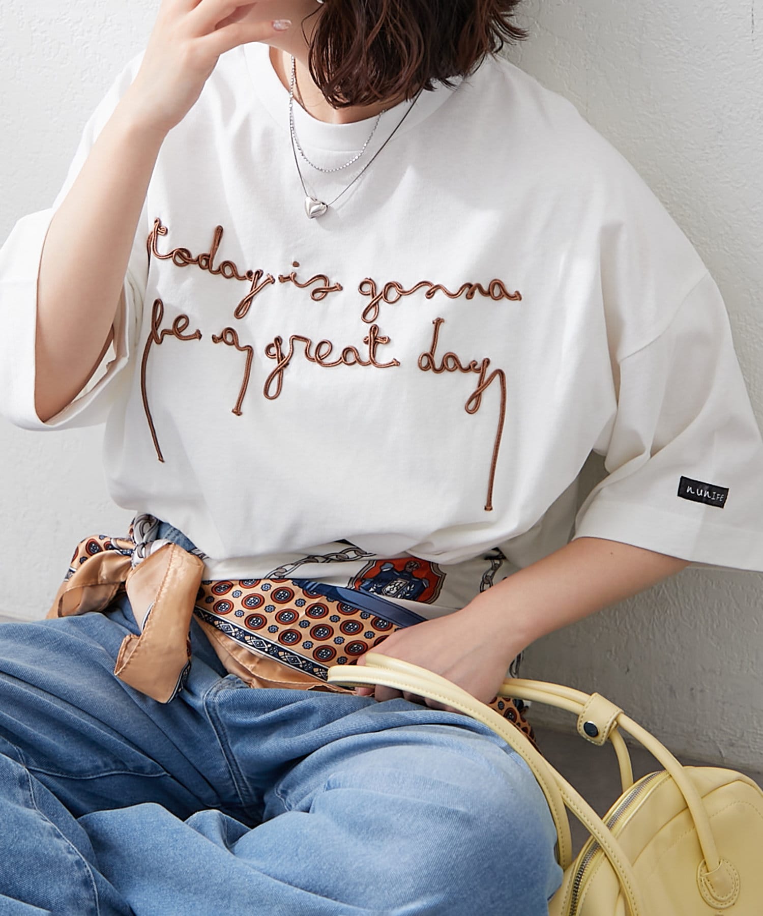 【NUNIFE】コード刺繍BIGTシャツ ユニセックス