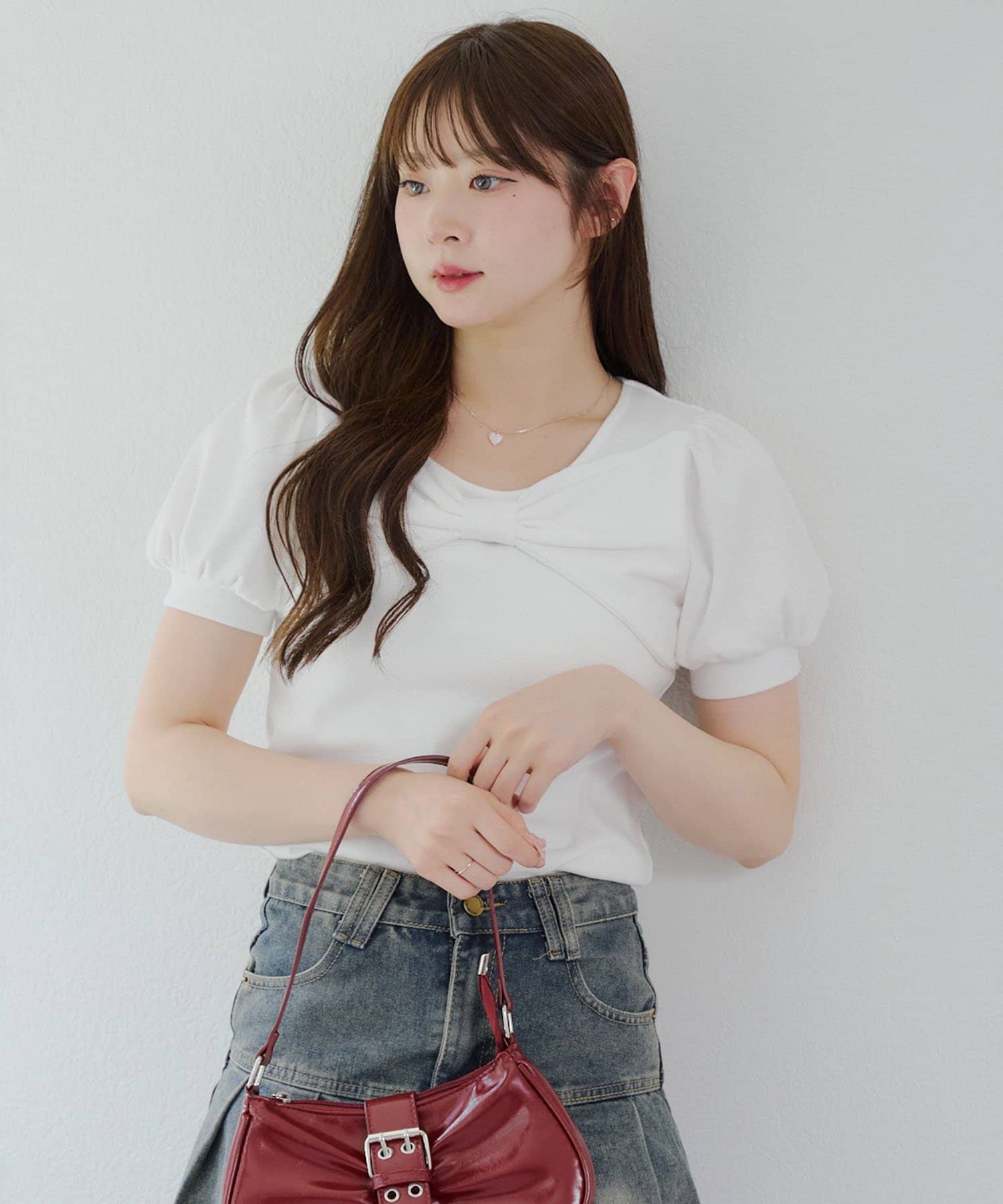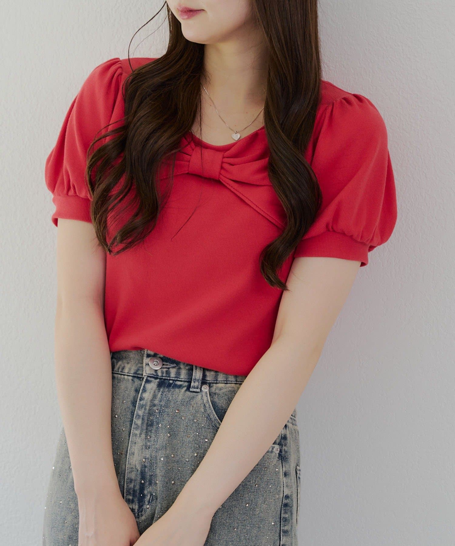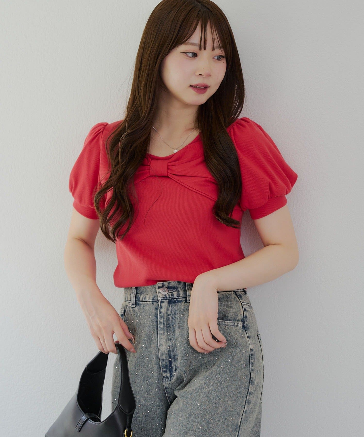 ・胸元の大きなリボンデザインがコーデの主役になる一枚♪
