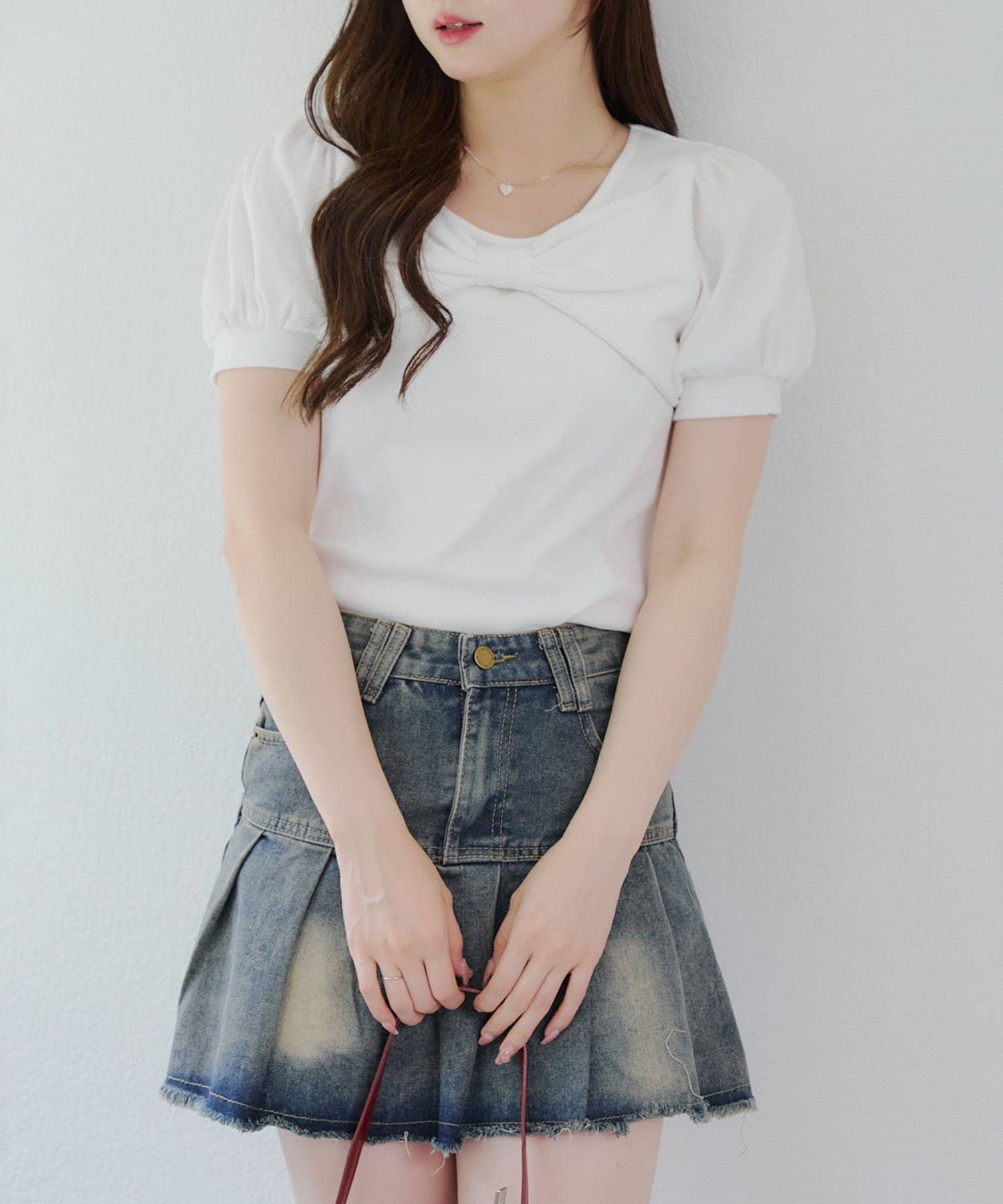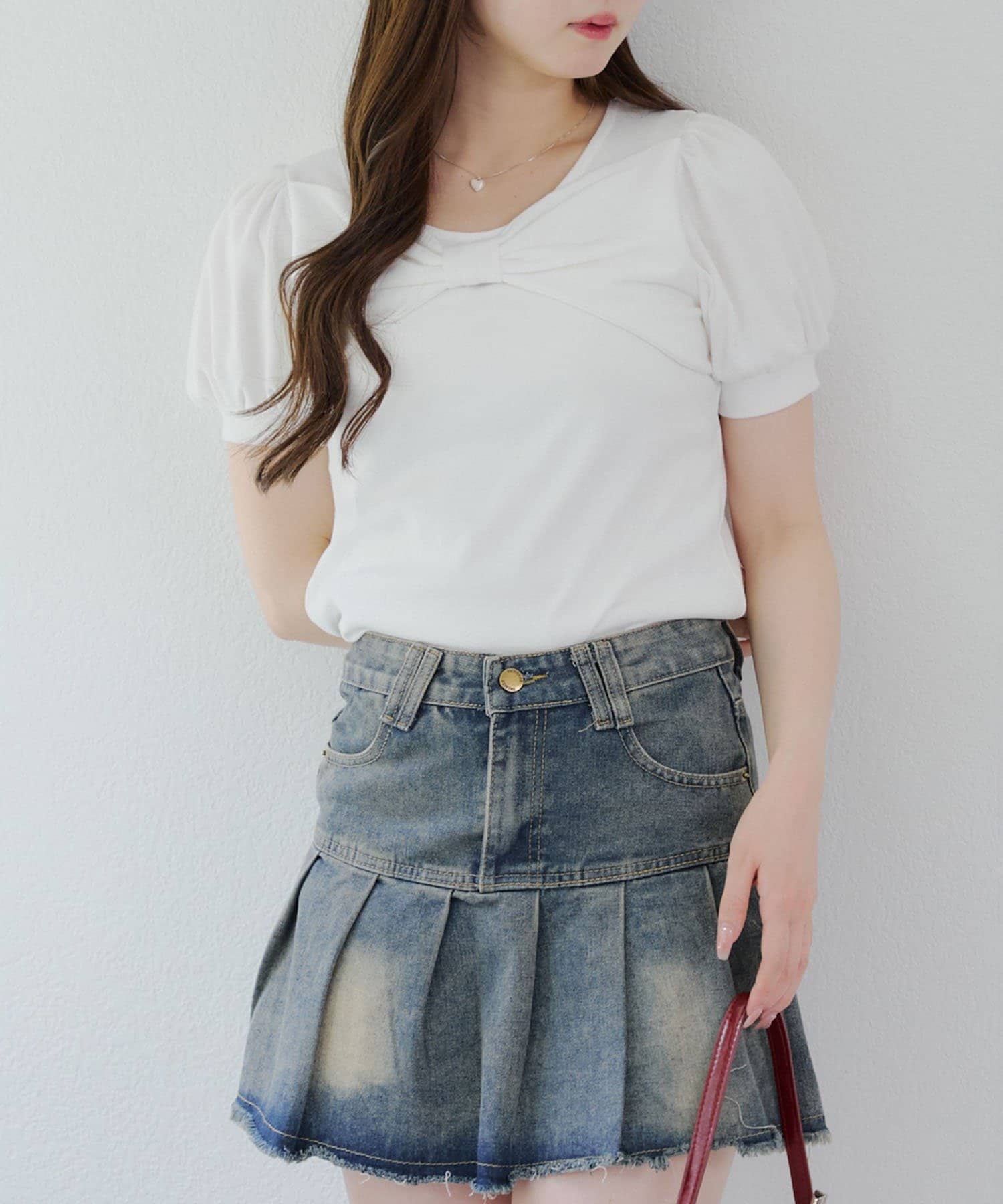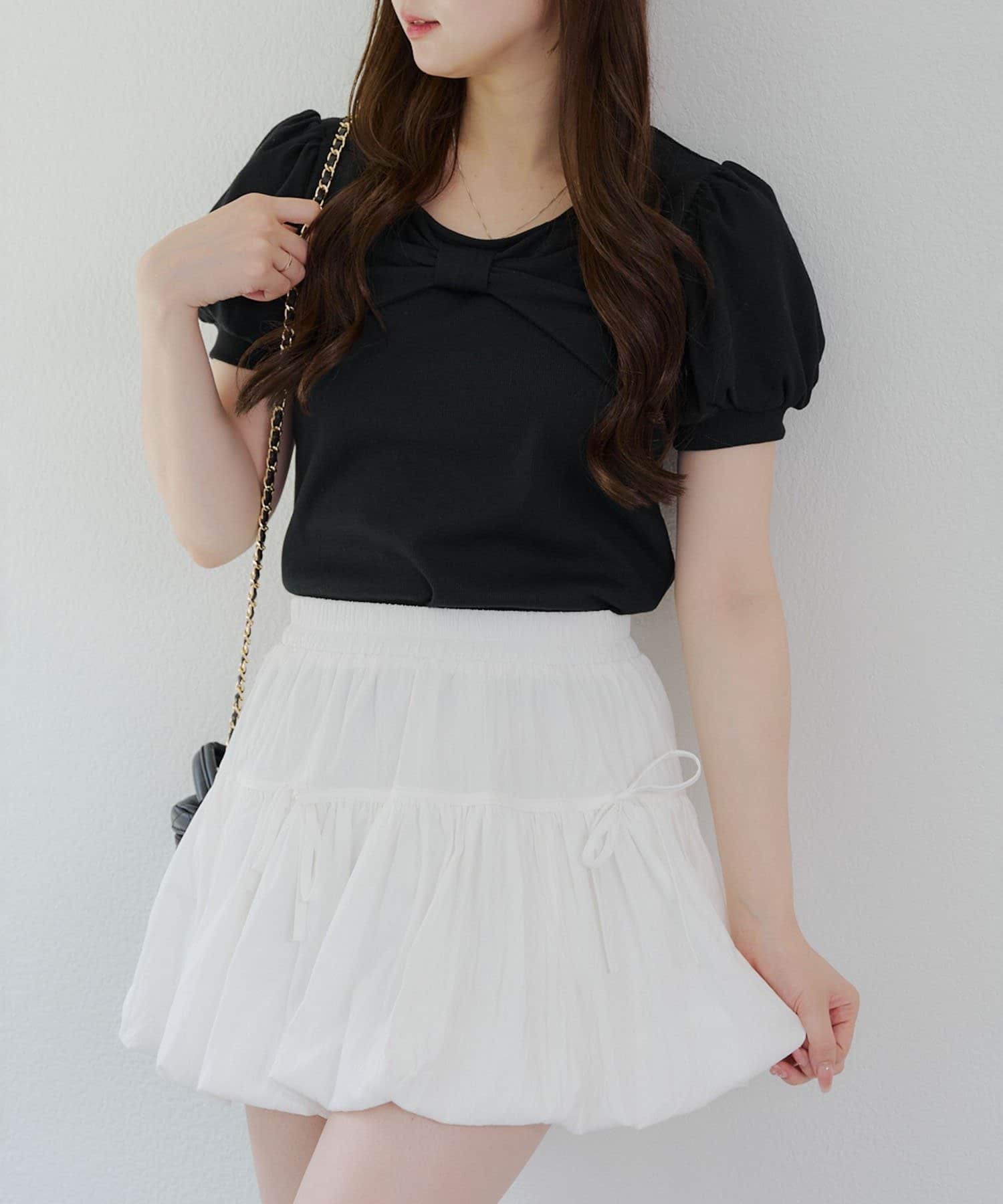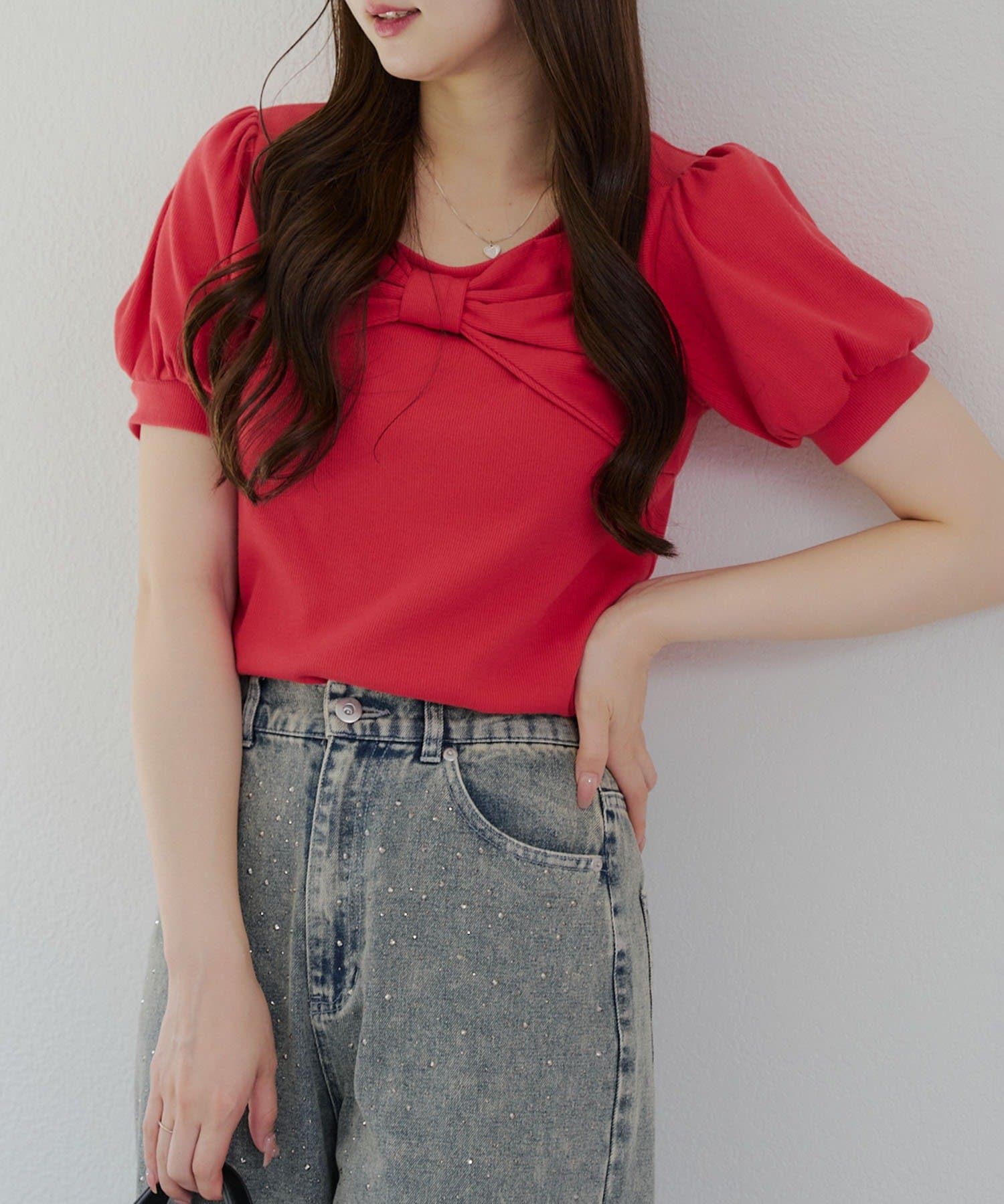 ・胸元の大きなリボンデザインがコーデの主役になる一枚♪