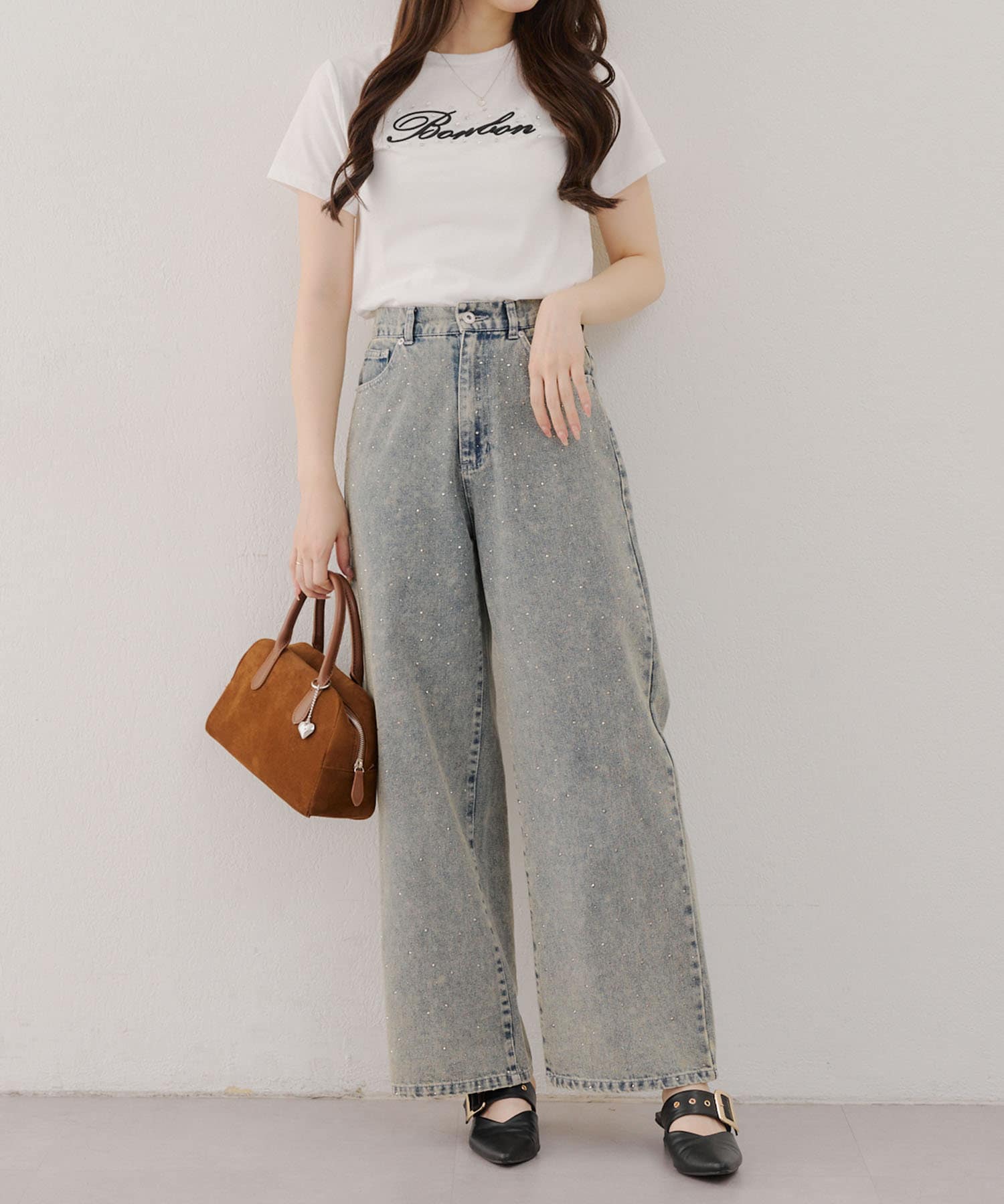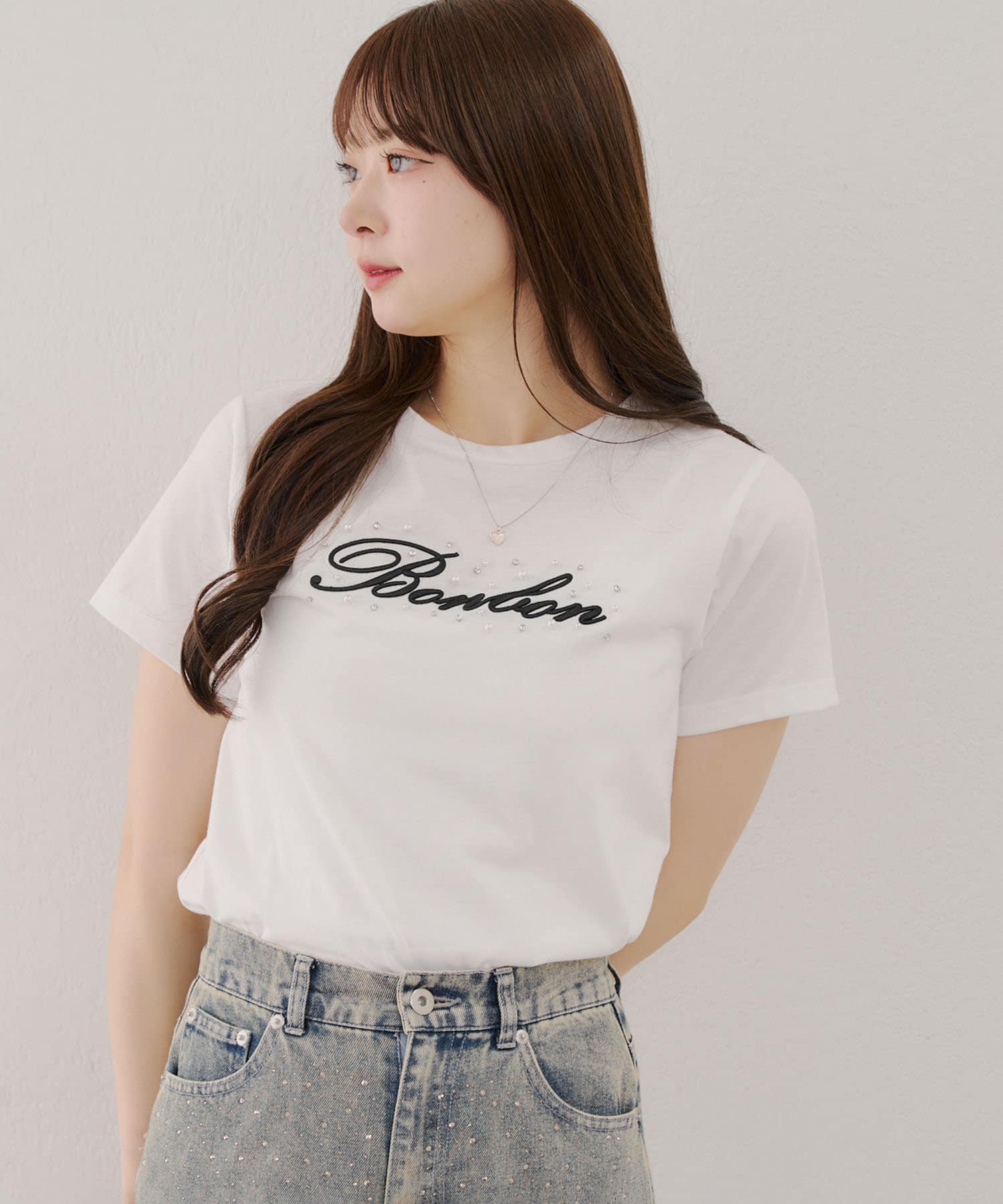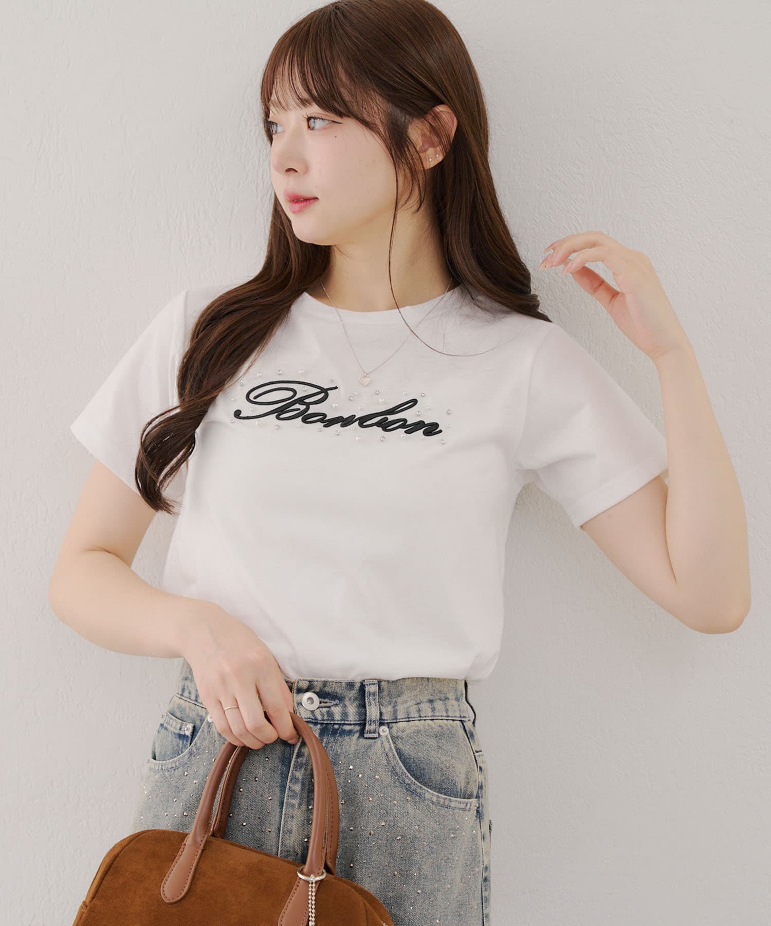 TOP > NICE CLAUP / OLIVE des OLIVE OUTLET > レディース > トップス > Tシャツ/カットソー > 【RMAF】ロゴ+パールT