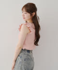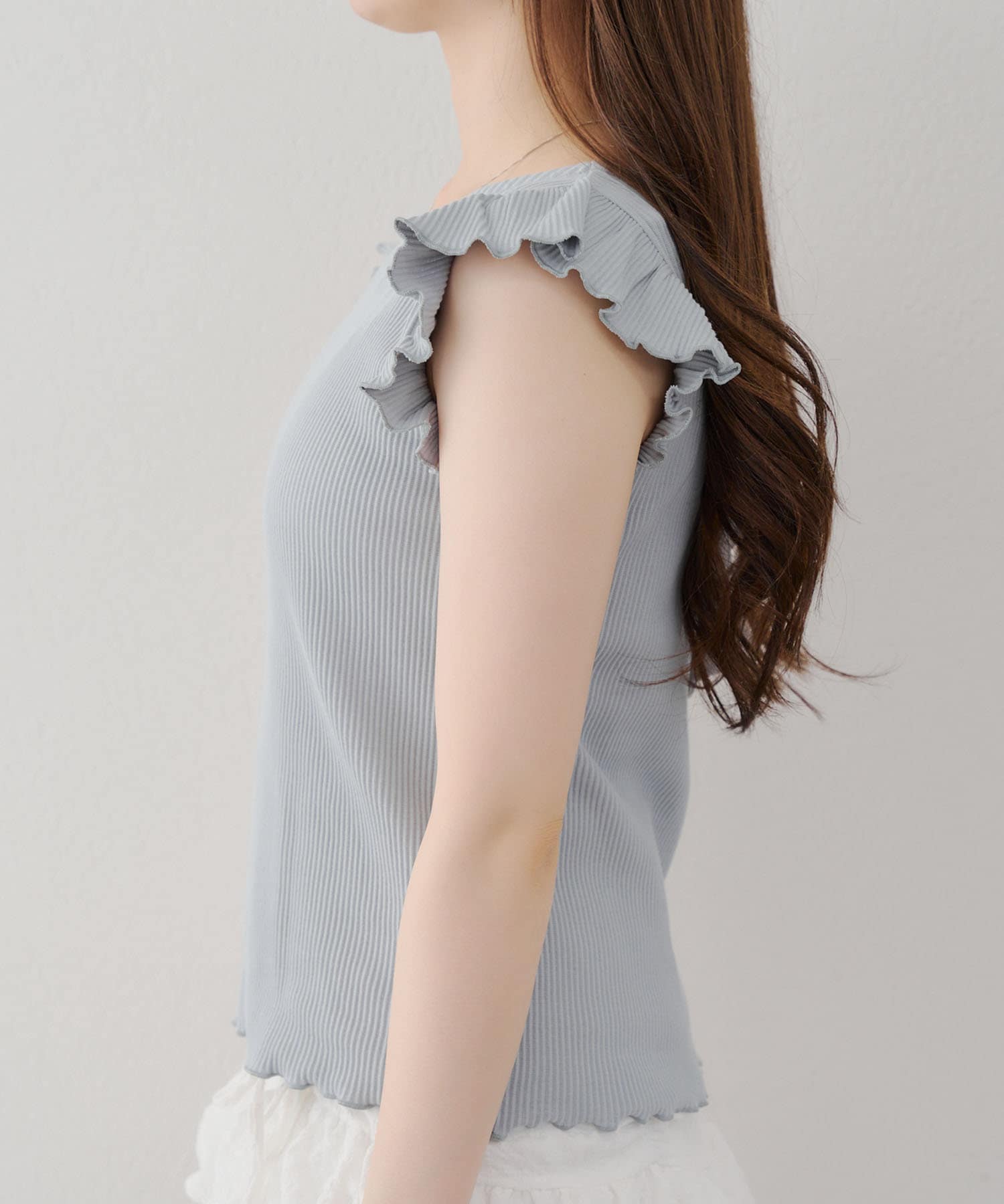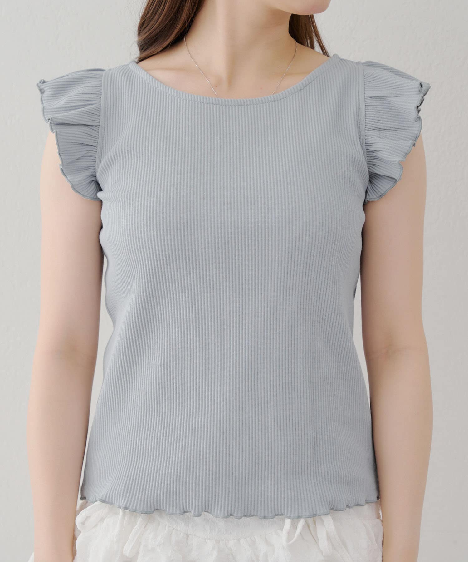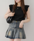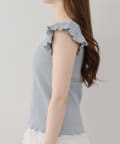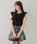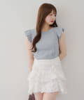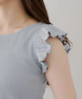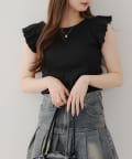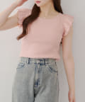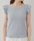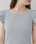 ・袖フリルがかわいい印象のテレコ素材のカットソー。