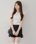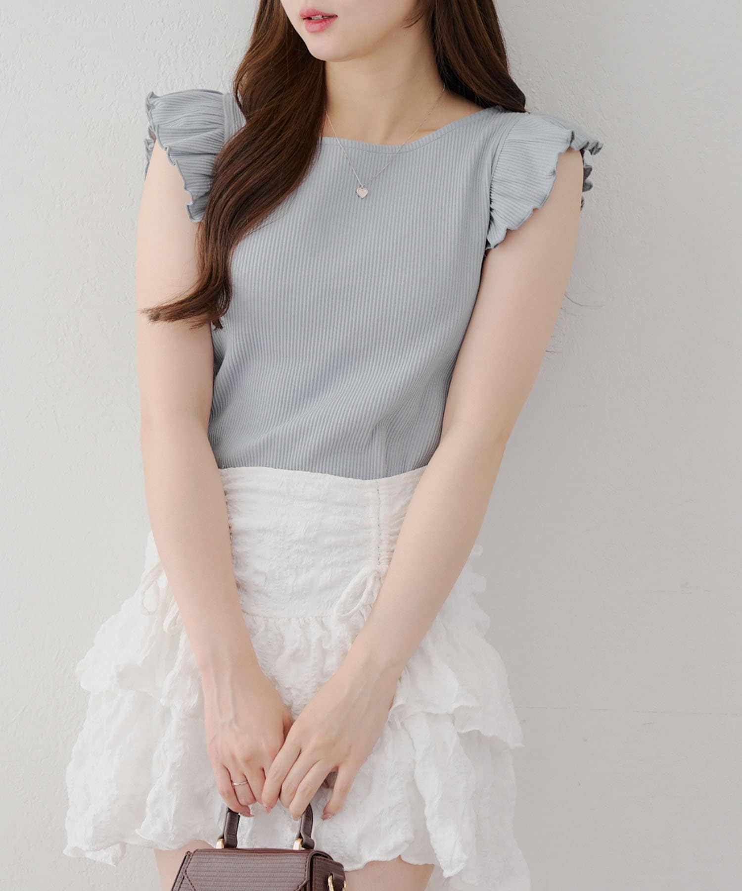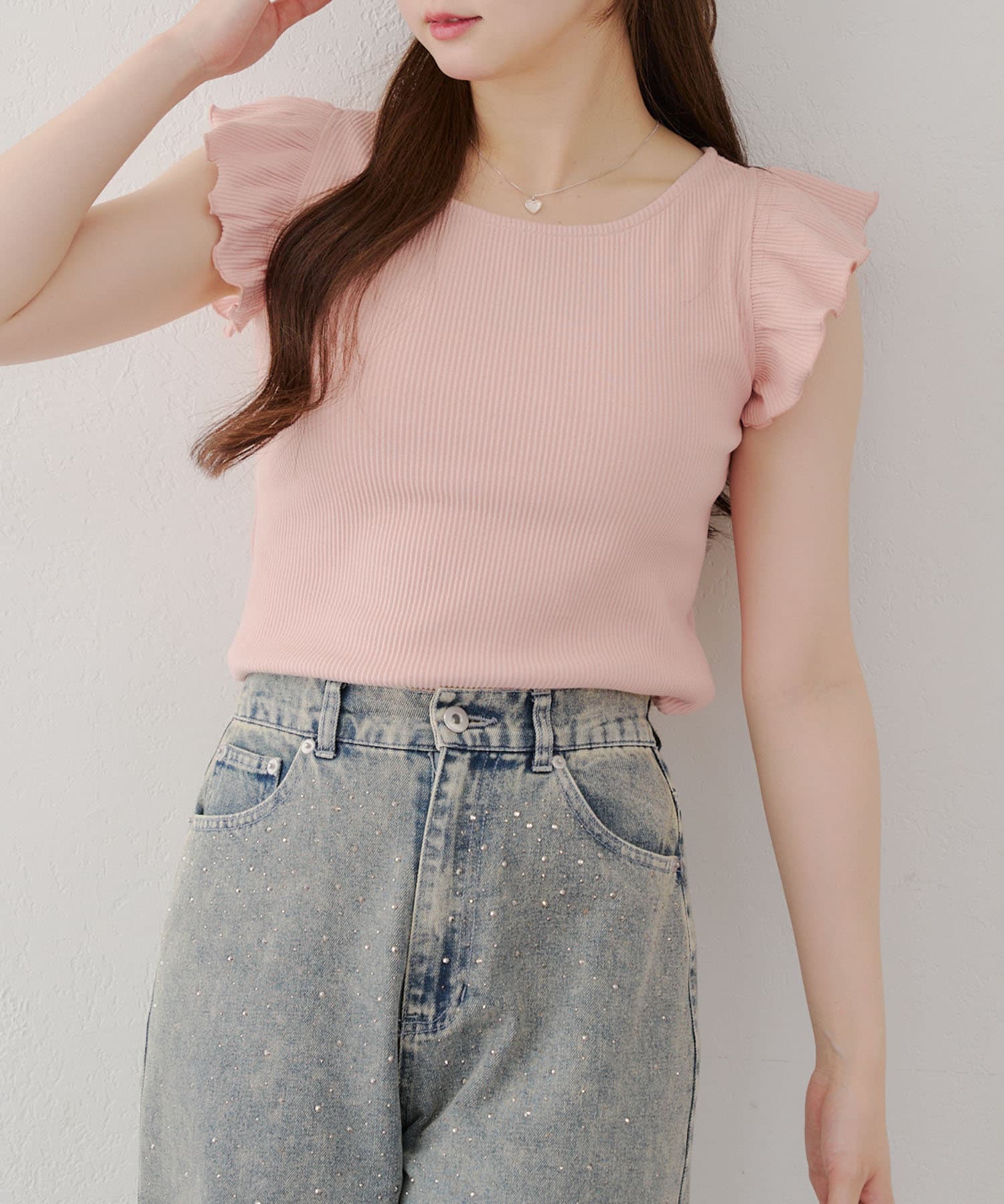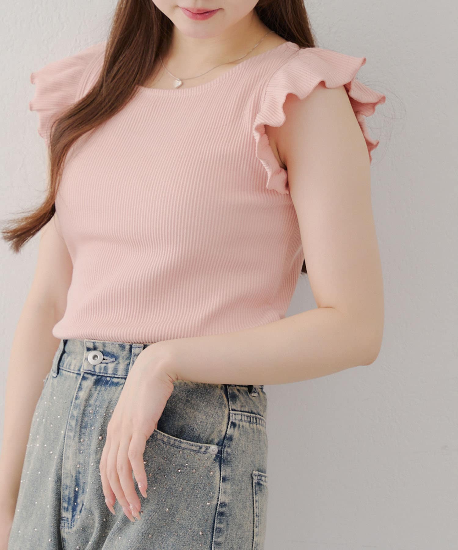 ・袖フリルがかわいい印象のテレコ素材のカットソー。