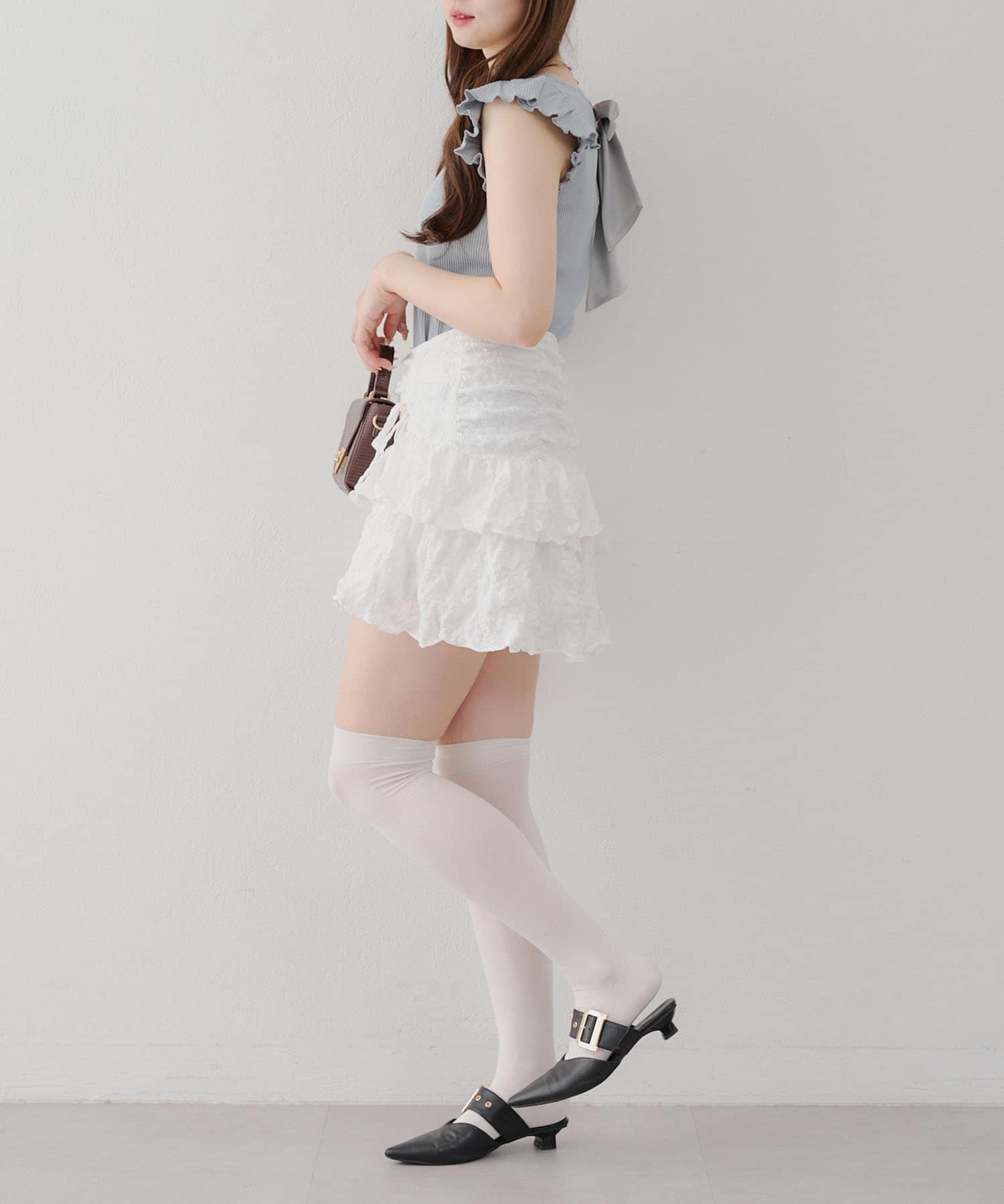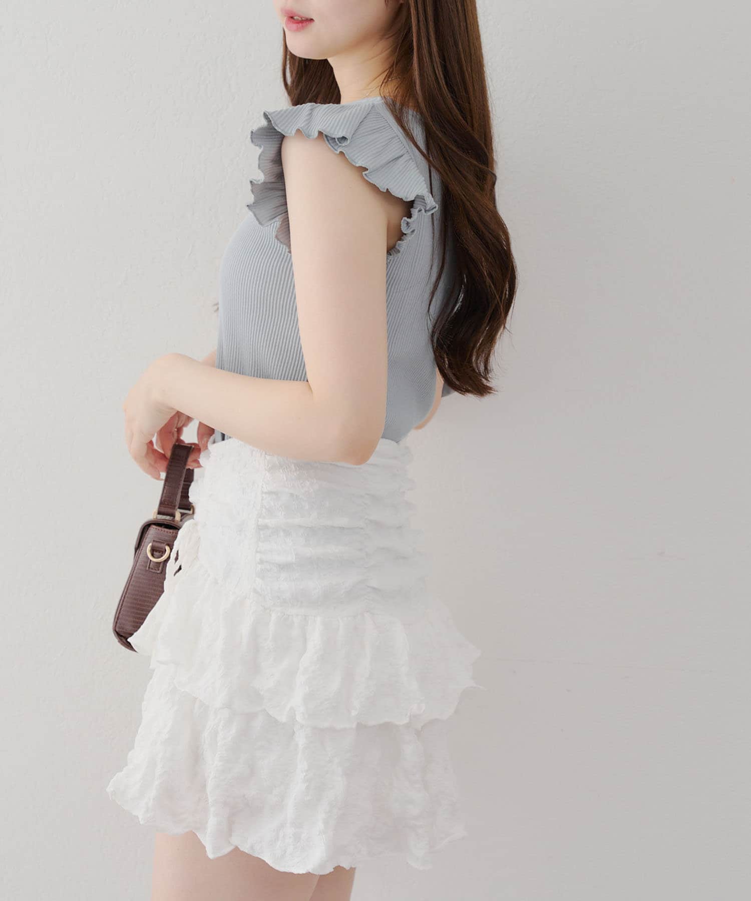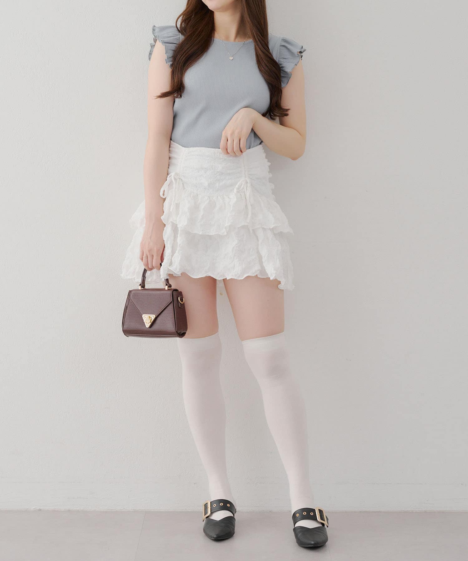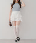 ・フレアスカートと合わせてフェミニンなコーデがおすすめです。