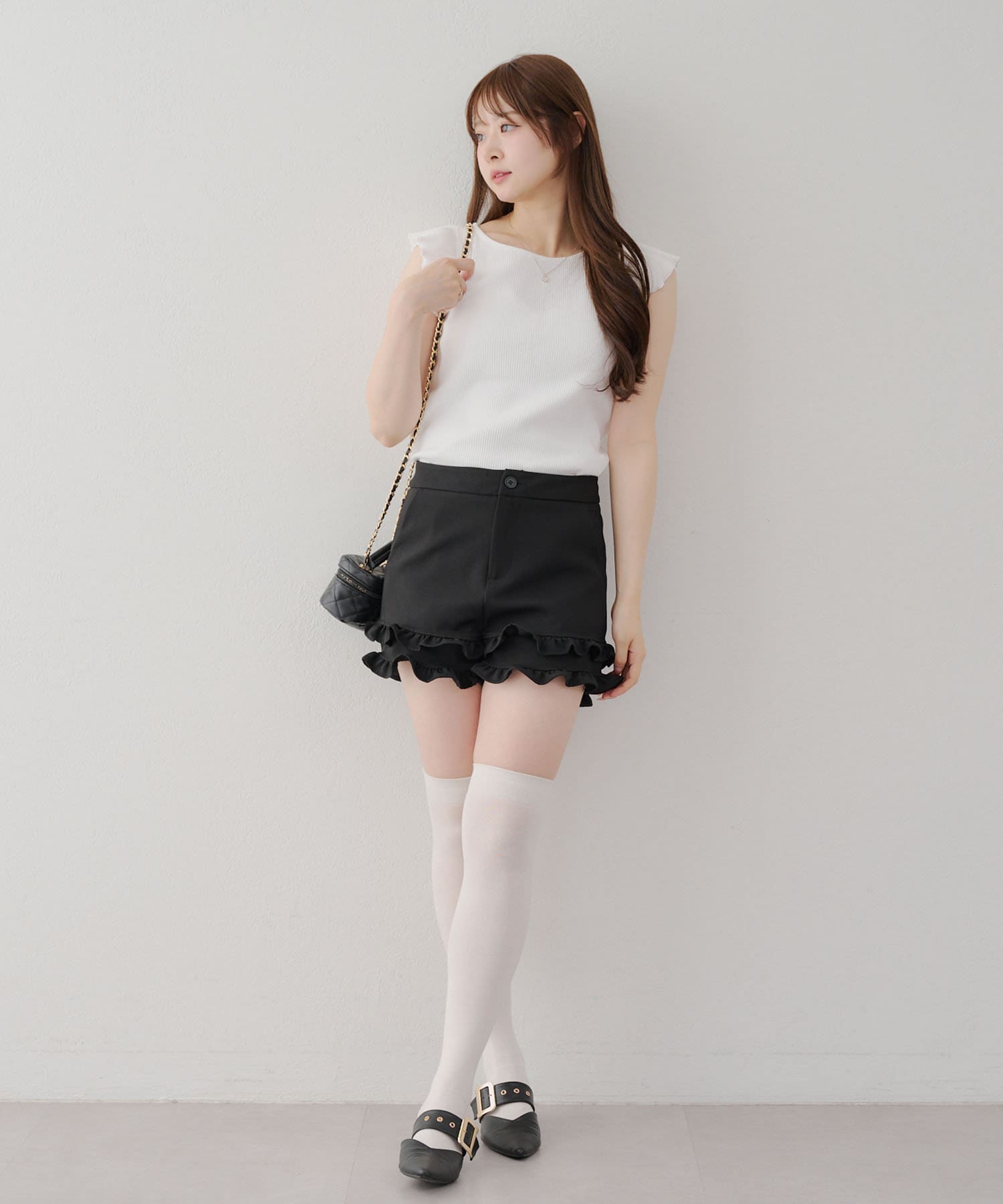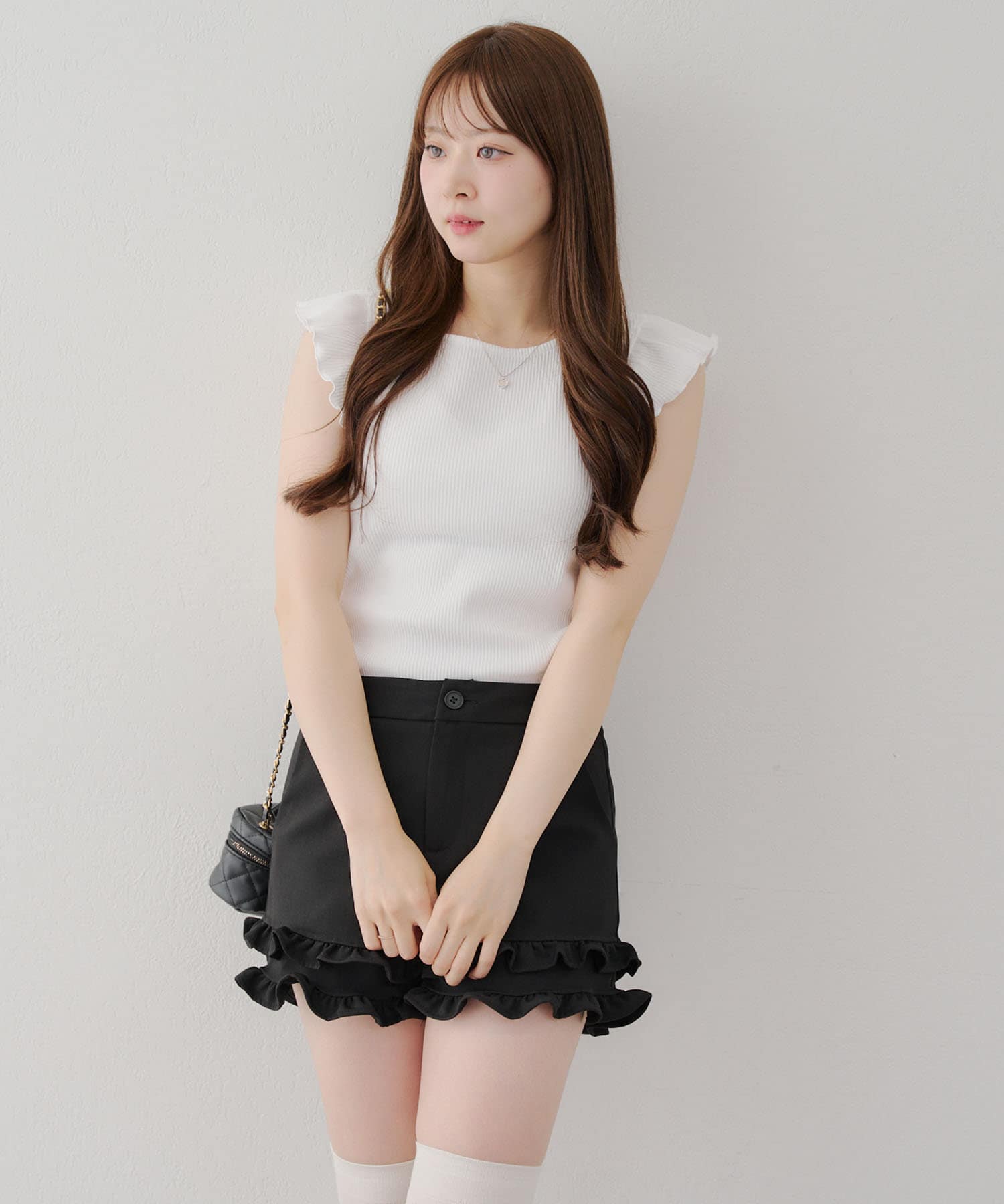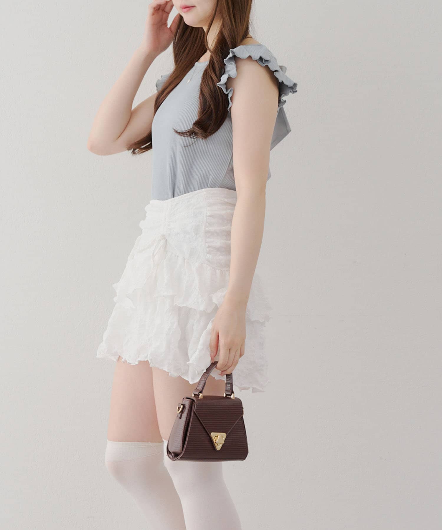 ・フレアスカートと合わせてフェミニンなコーデがおすすめです。