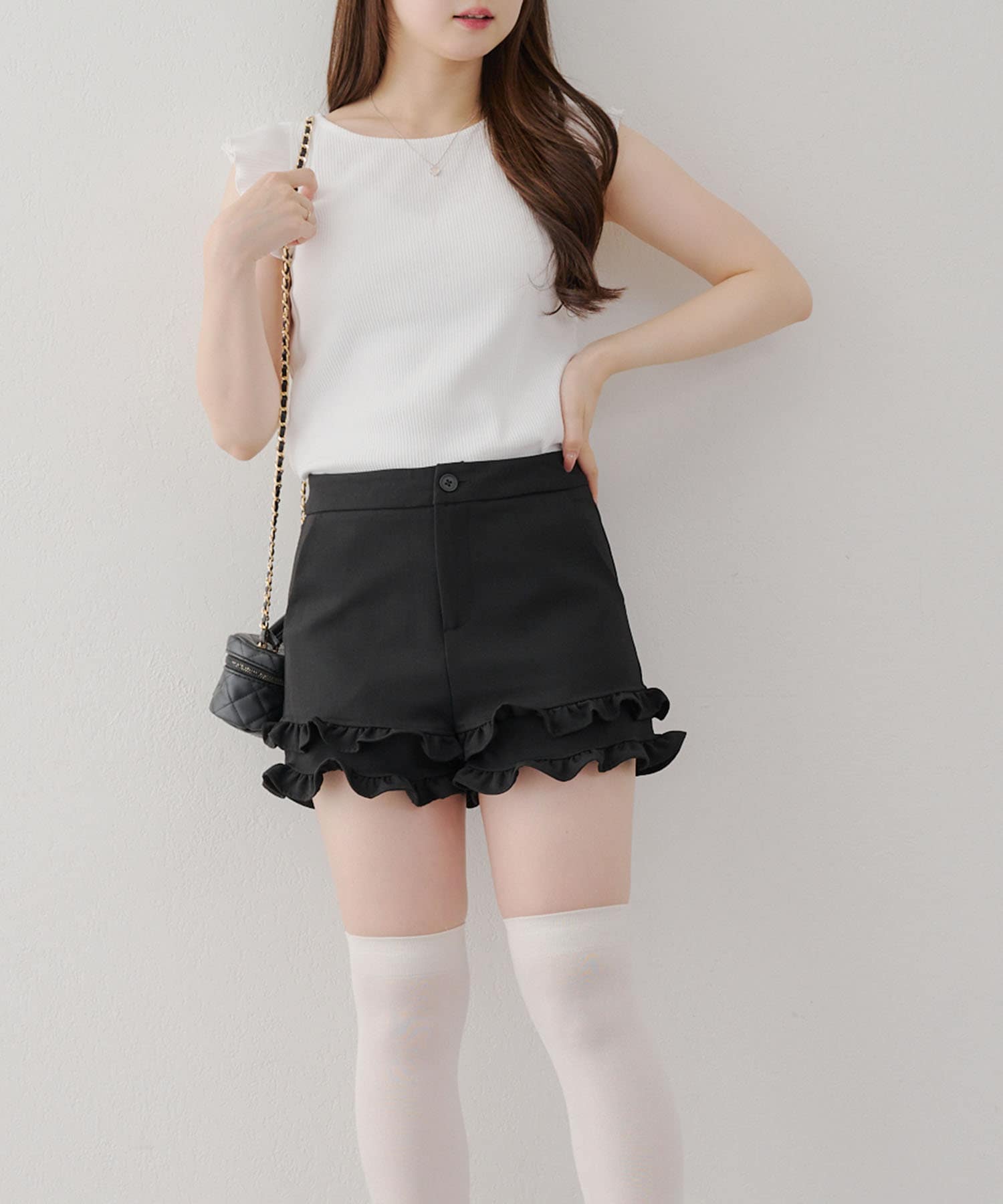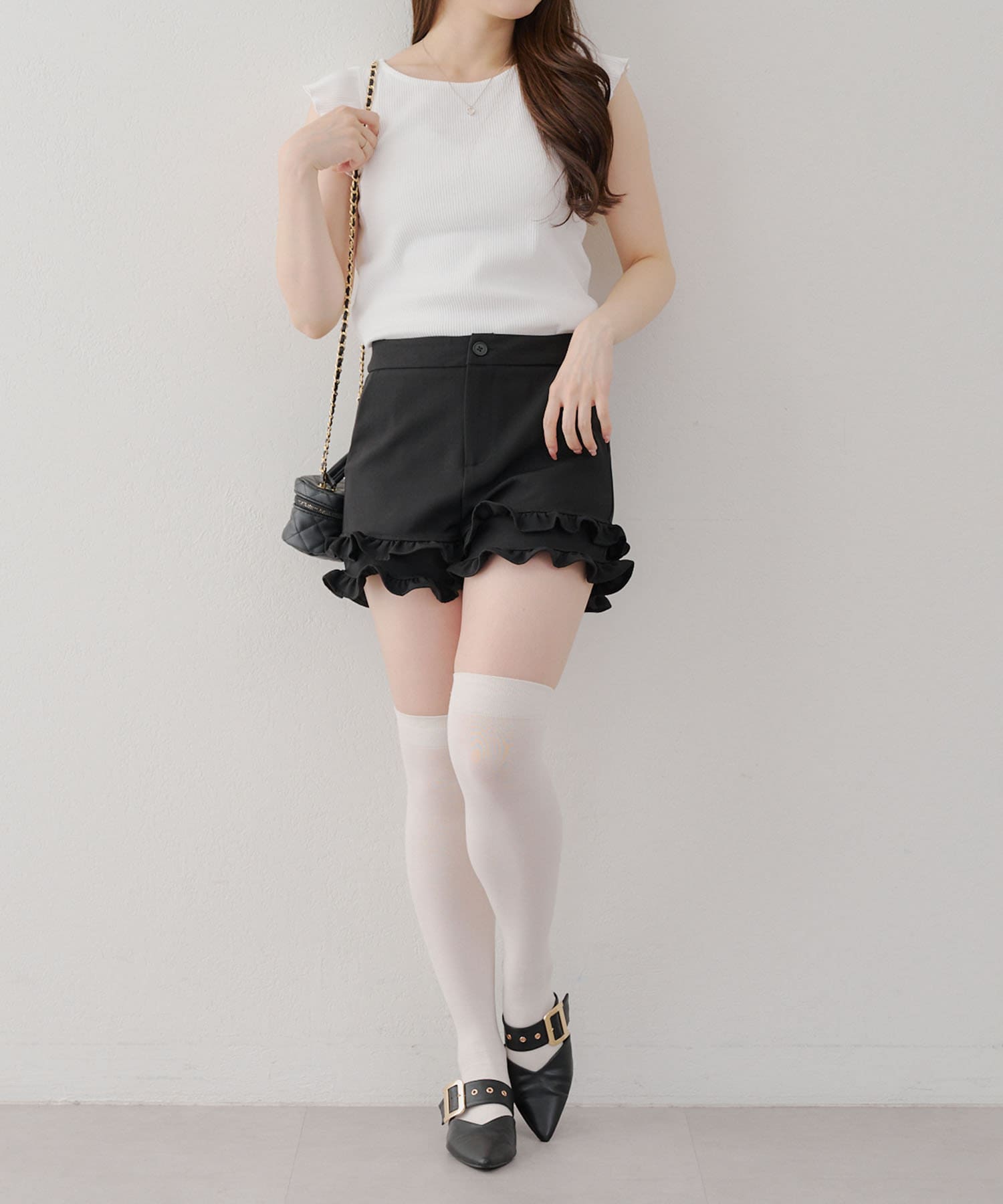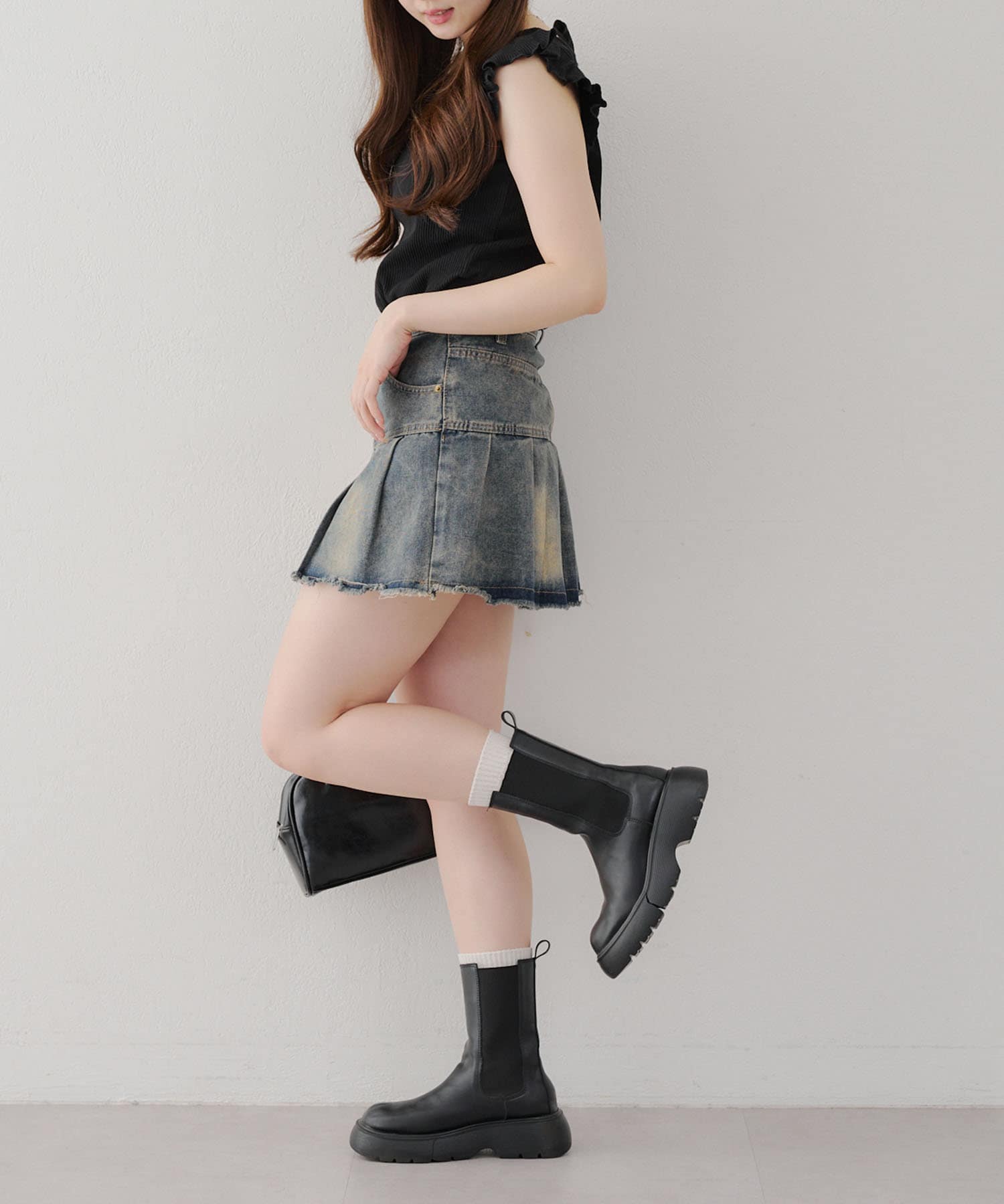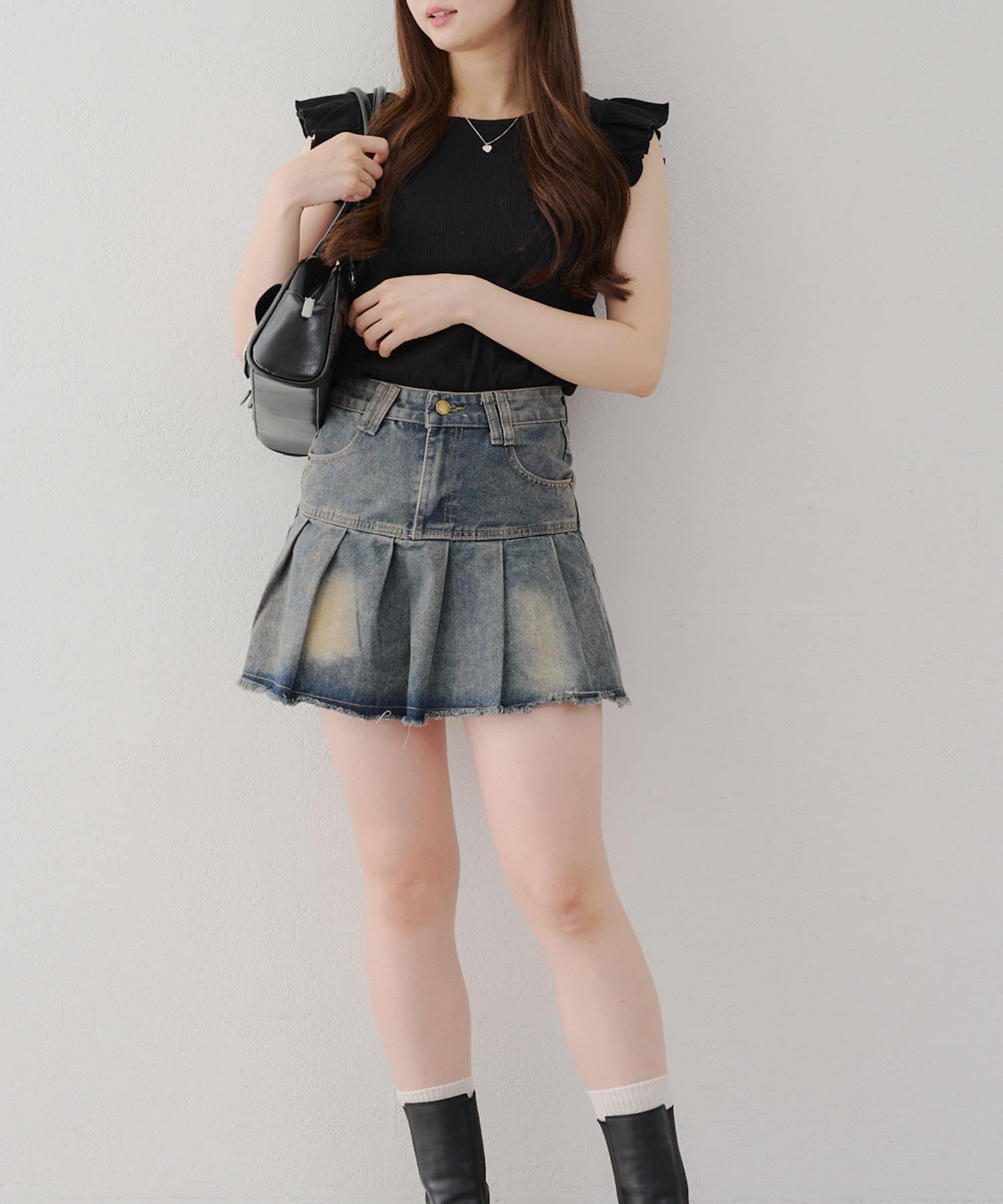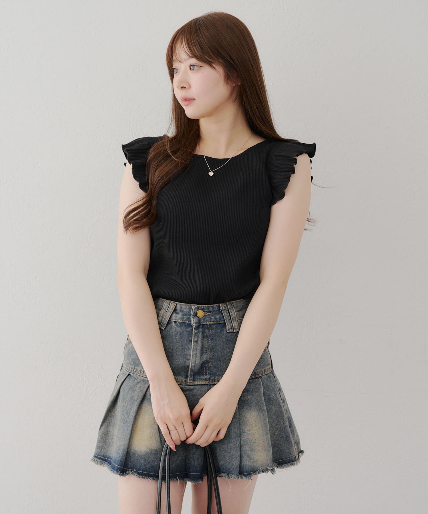 ・トップスが女性らしい印象なので敢えてデニムパンツやダメージの入った加工デニムとも相性〇