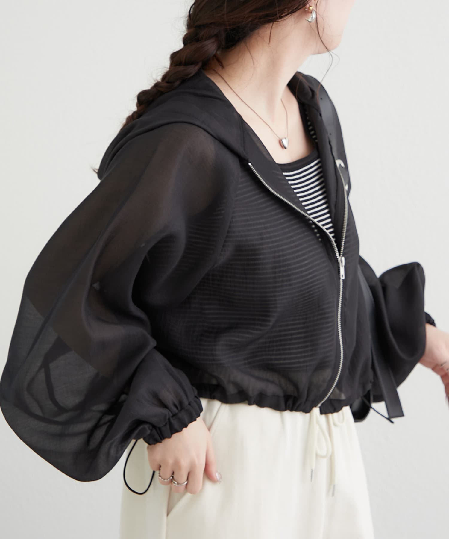 ・春に取り入れたいシアー感が可愛いマウンテンパーカー