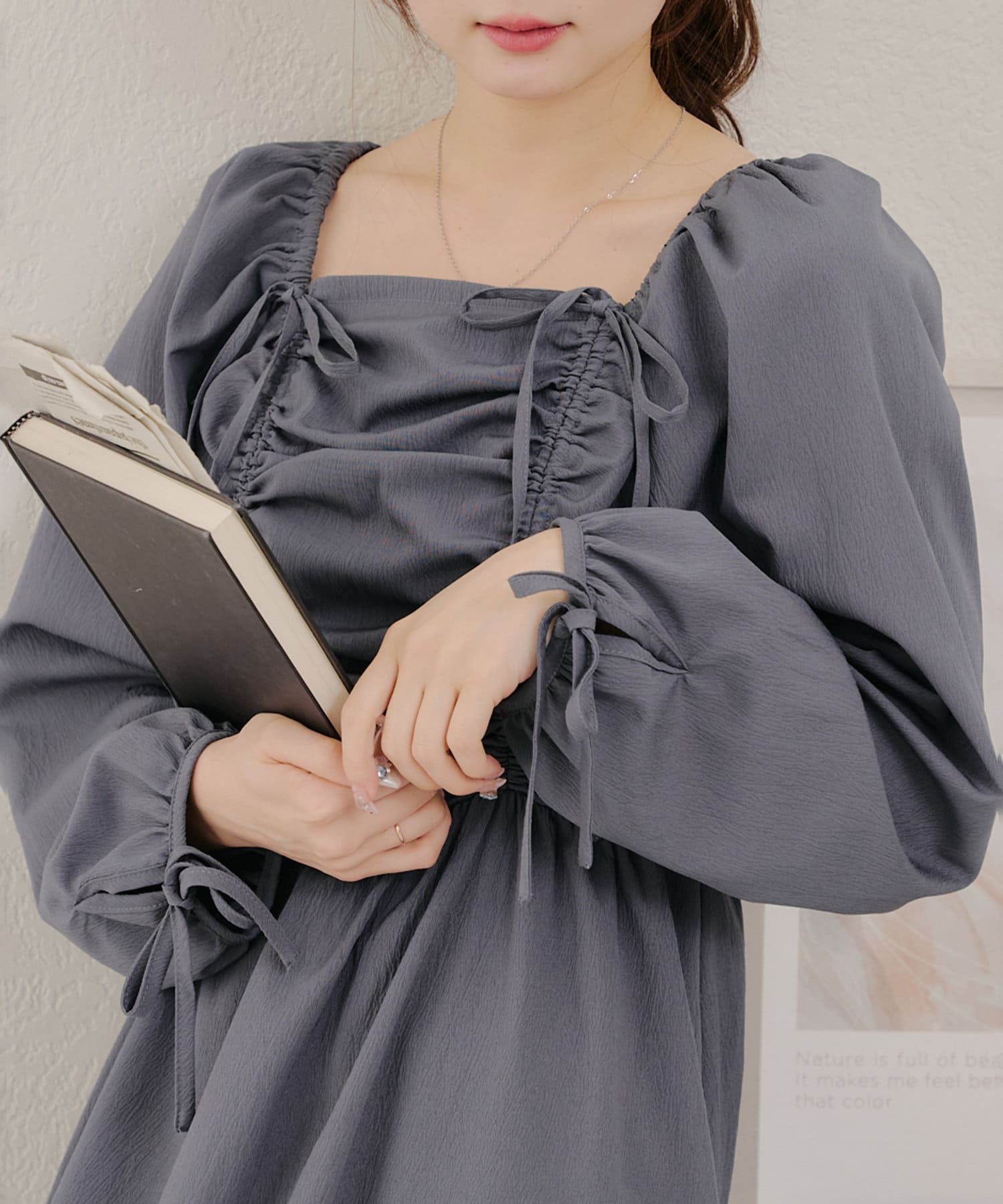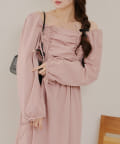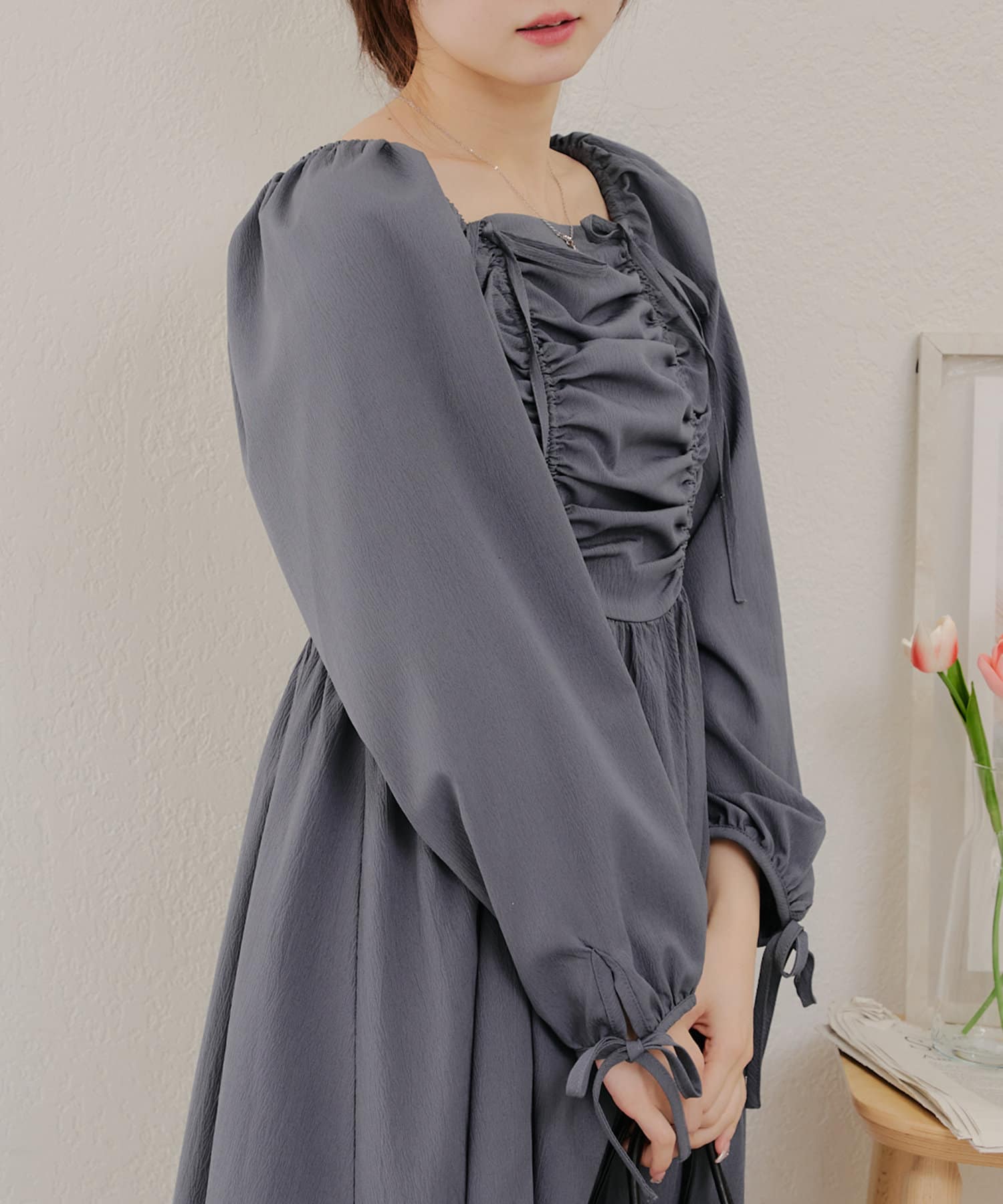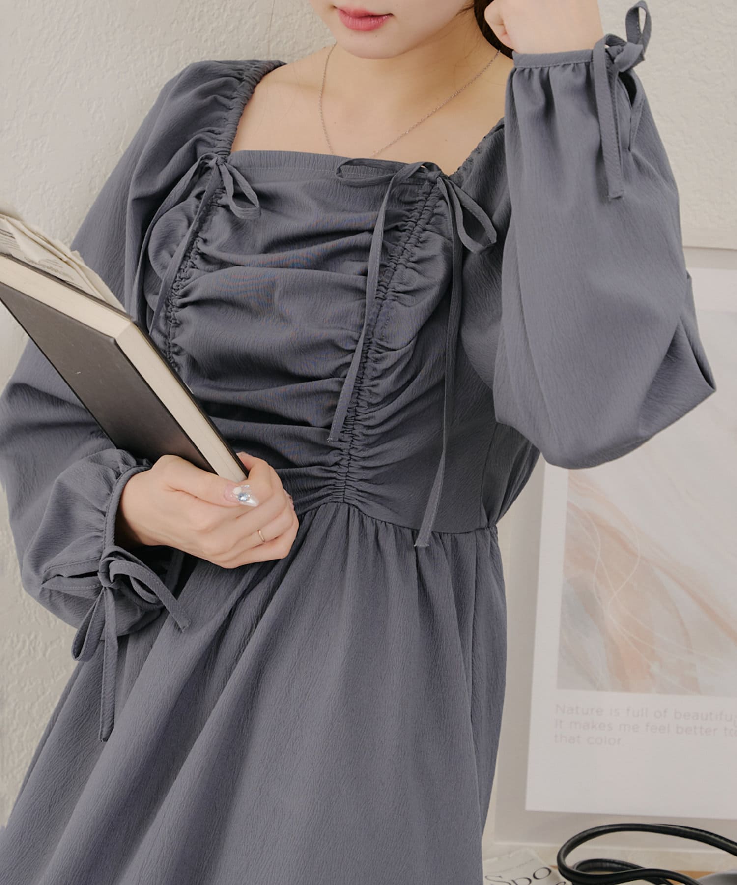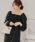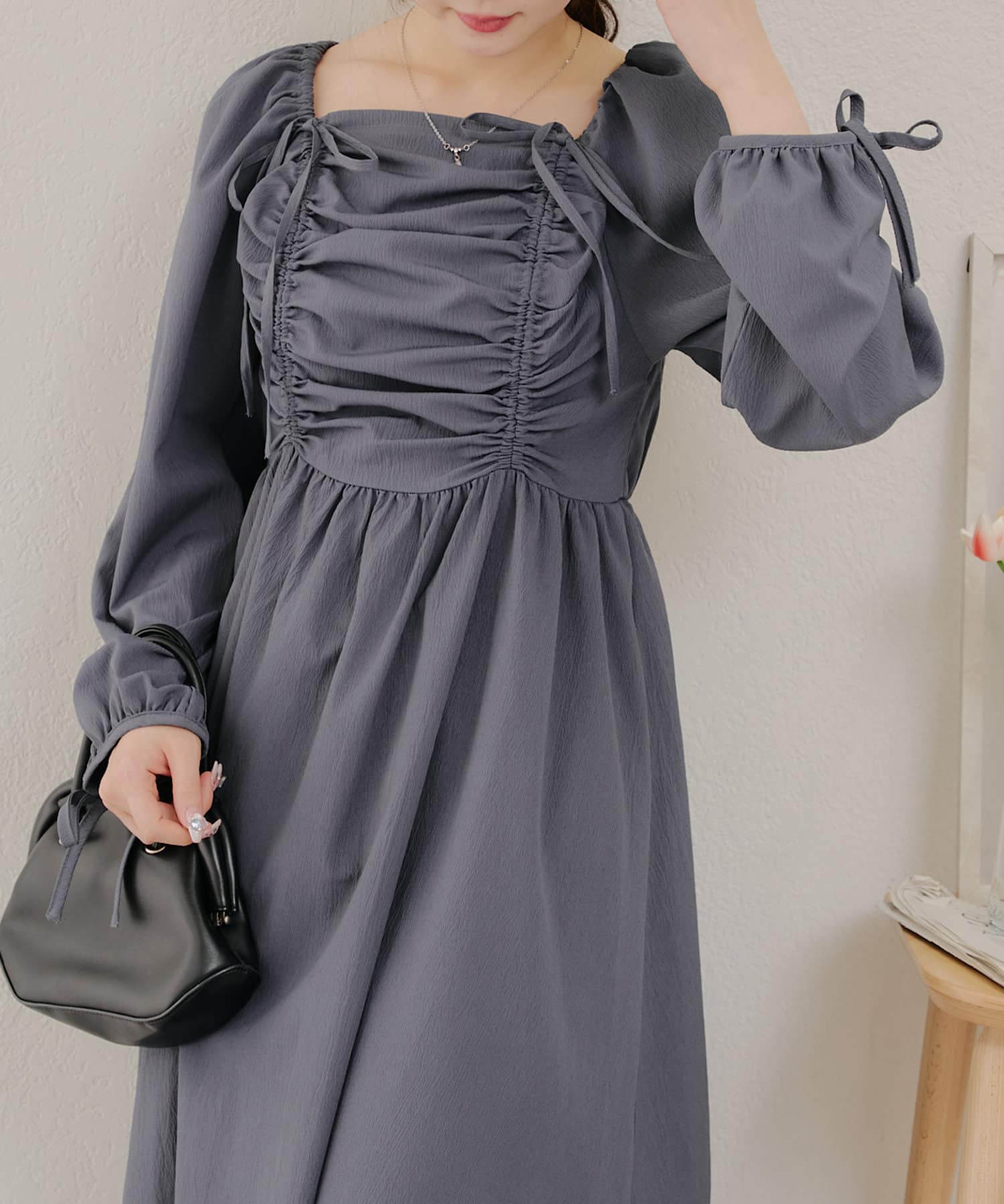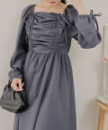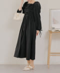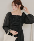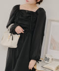 ・胸元のドロストデザインがトレンド感満載のワンピース
