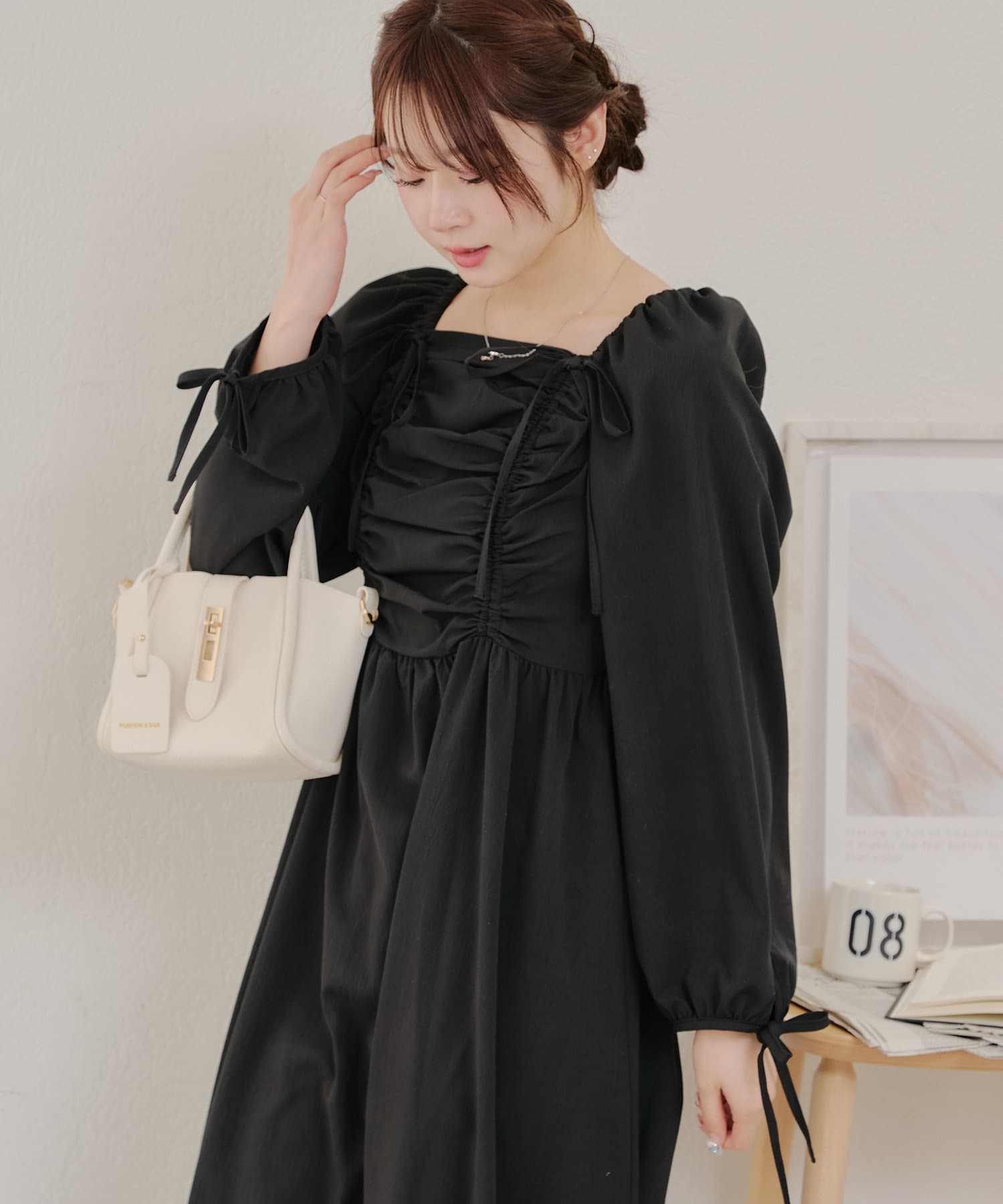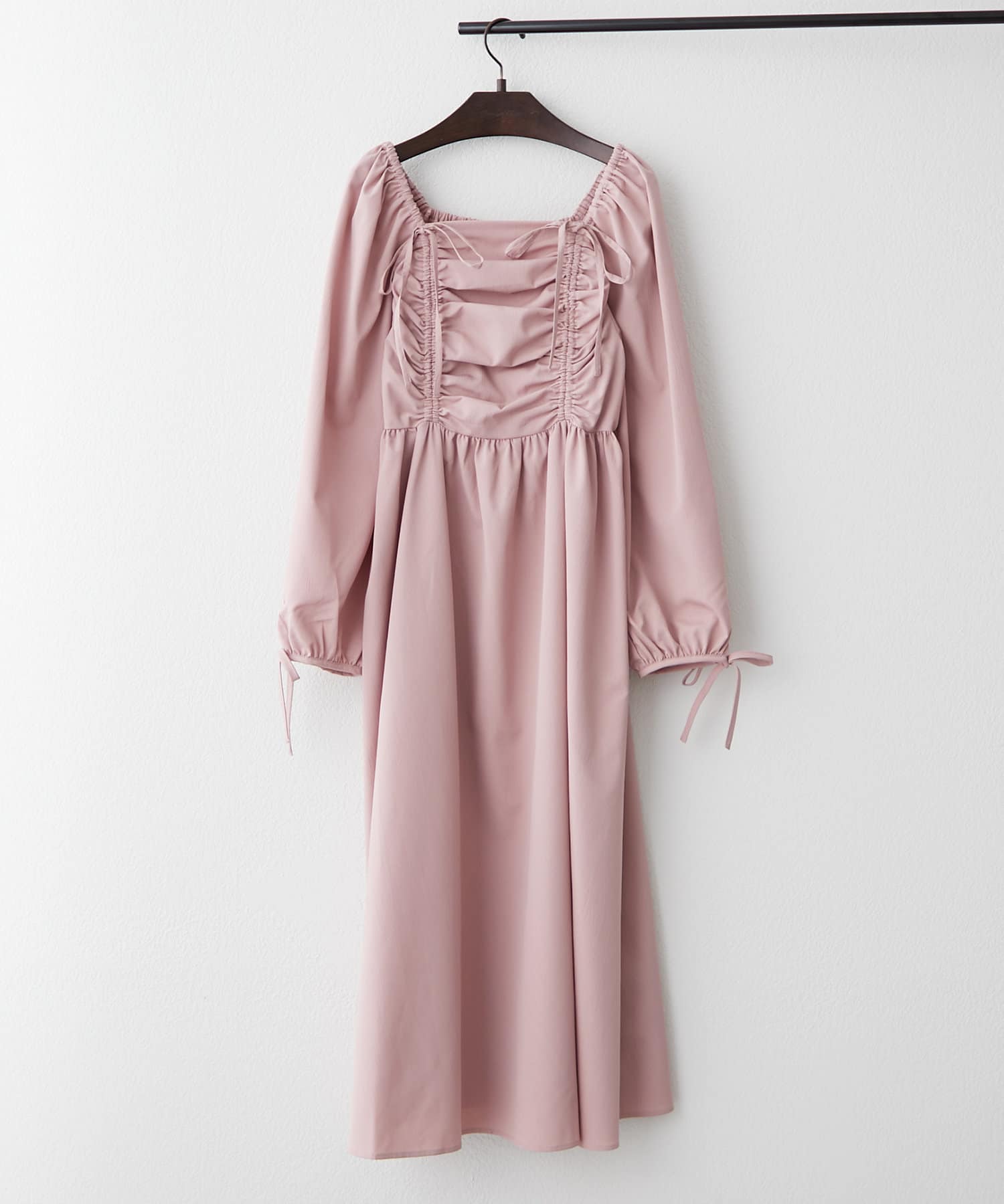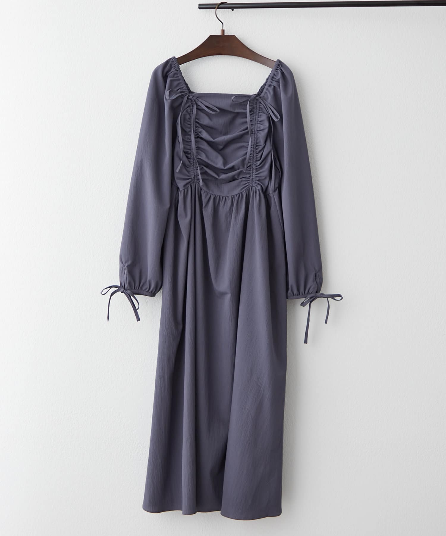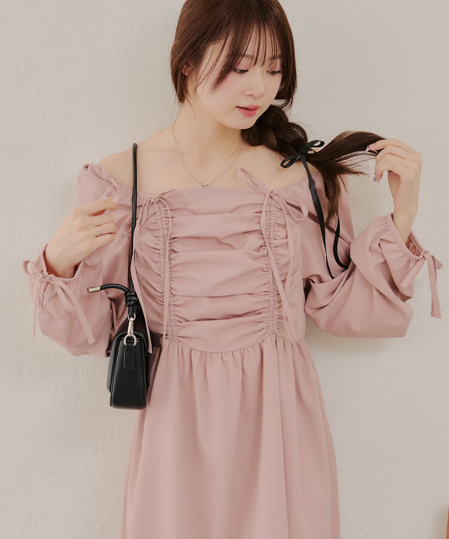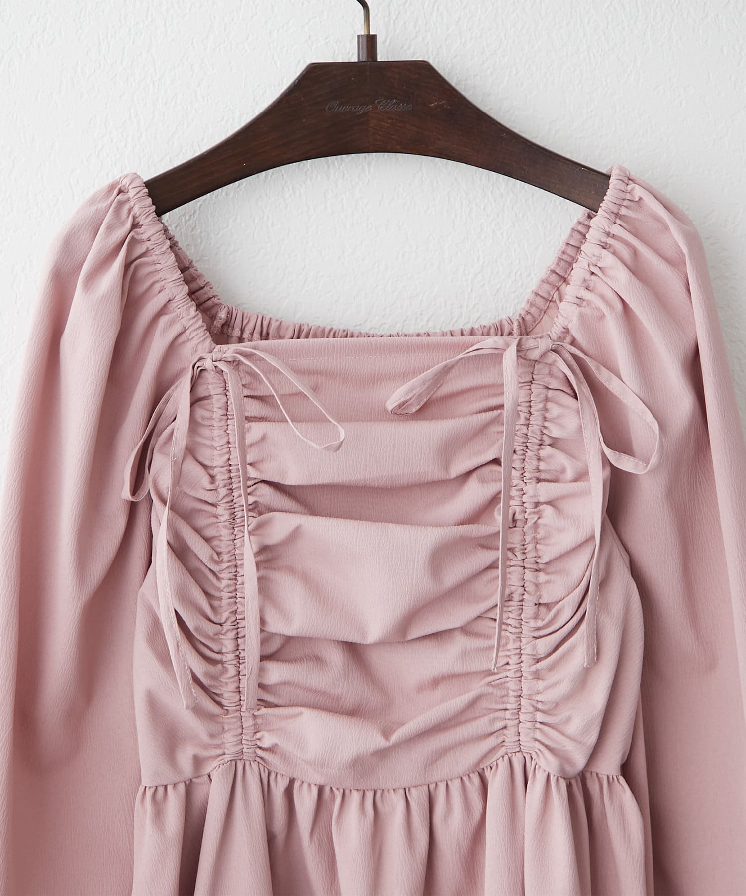 ・胸元のドロストデザインがトレンド感満載のワンピース