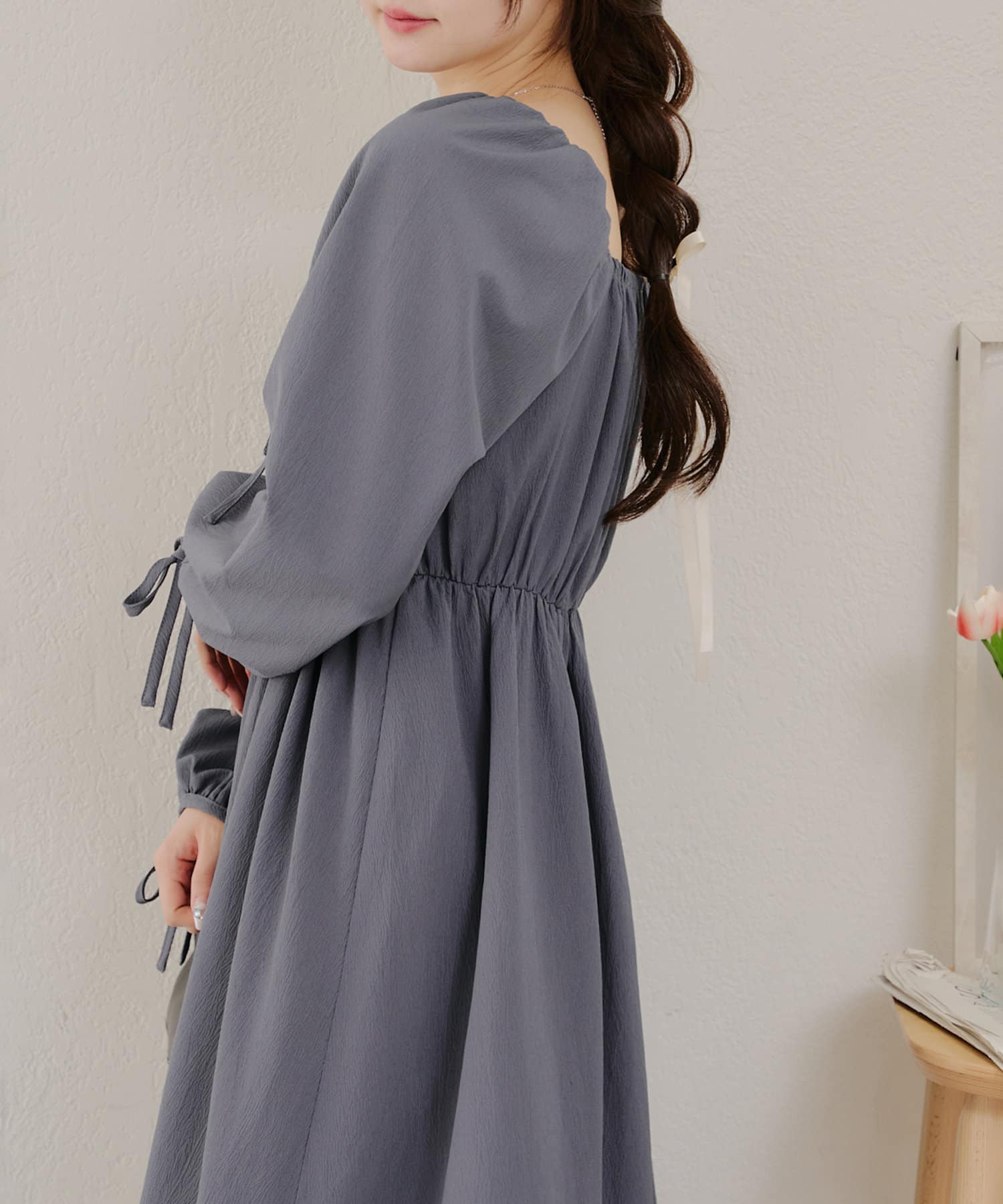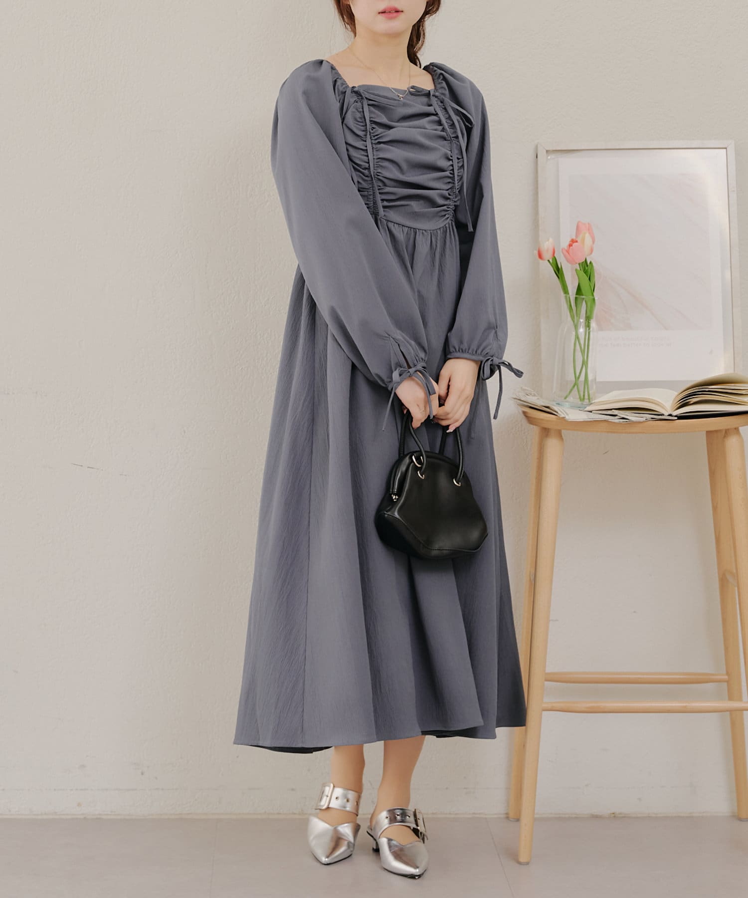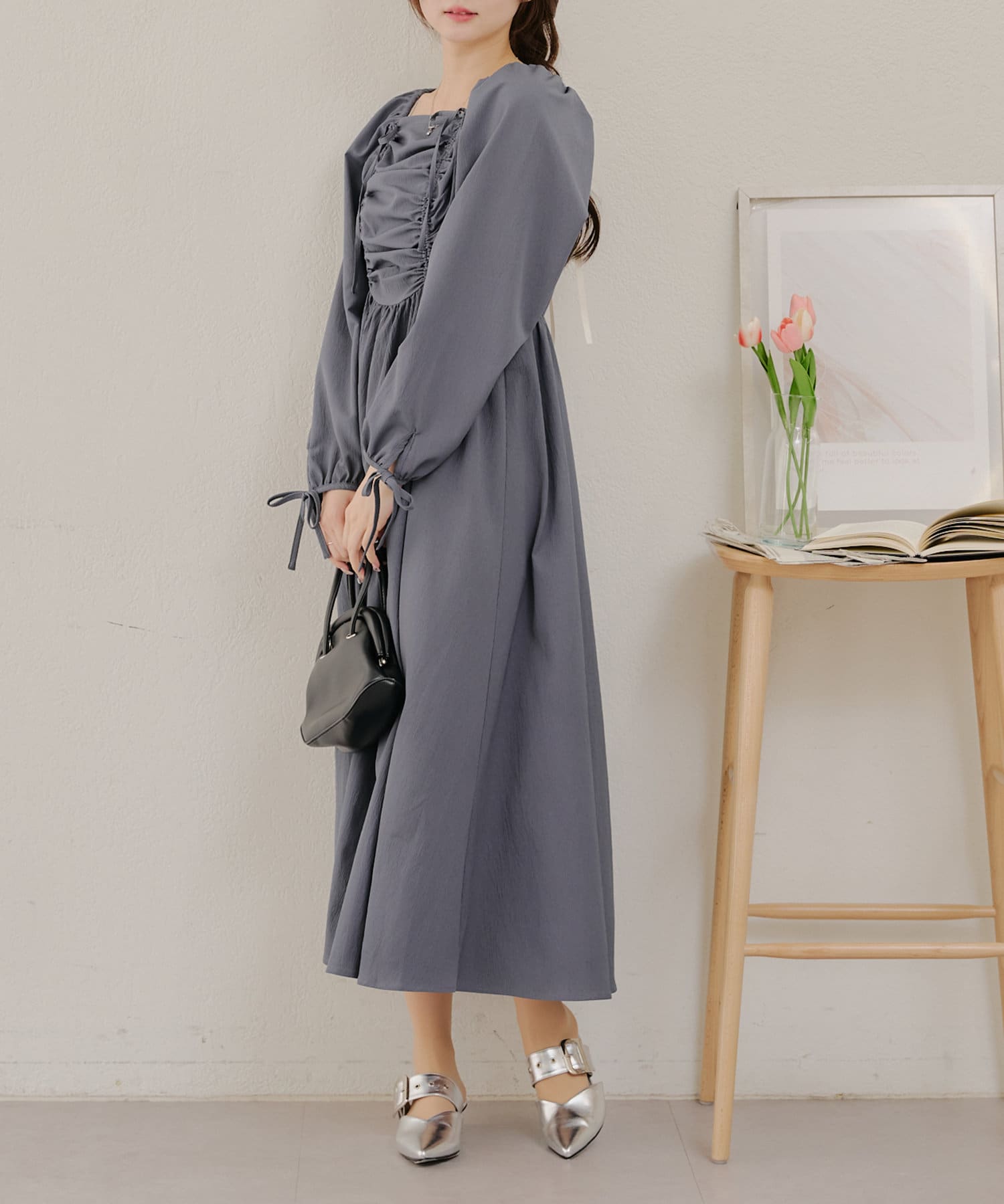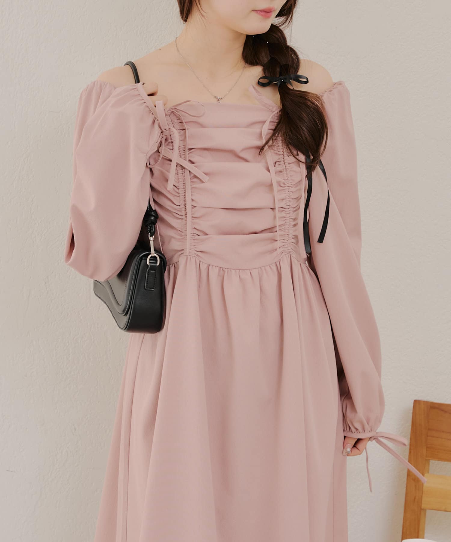 ・胸元のドロストデザインがトレンド感満載のワンピース