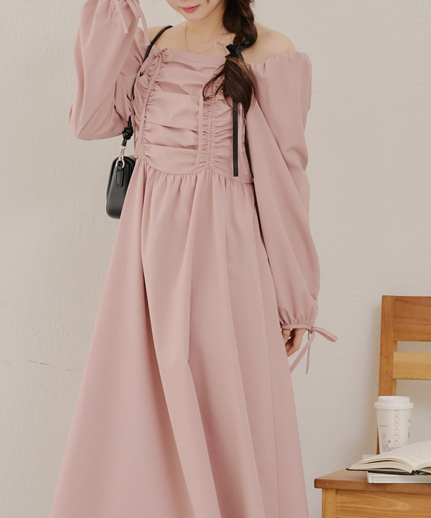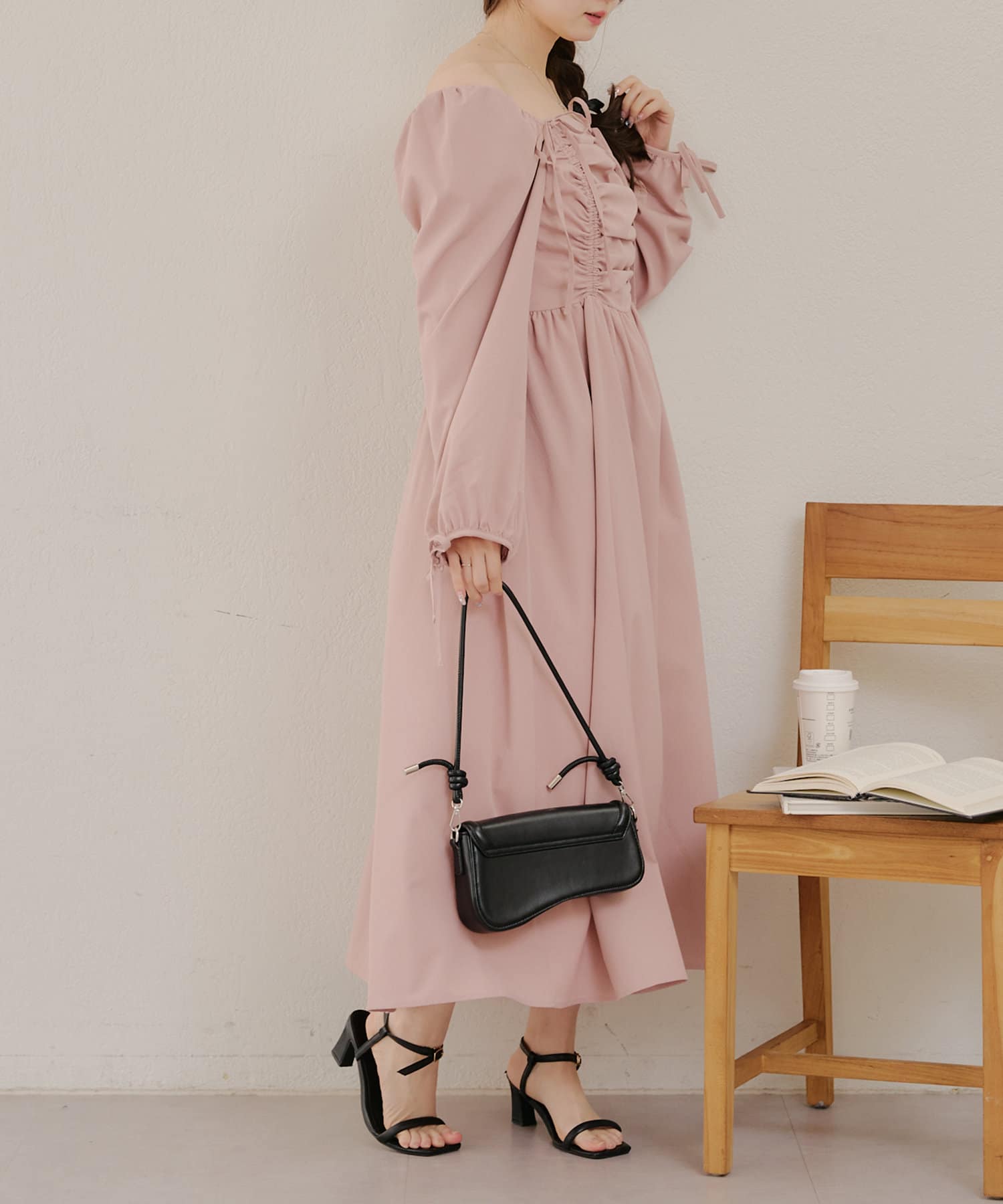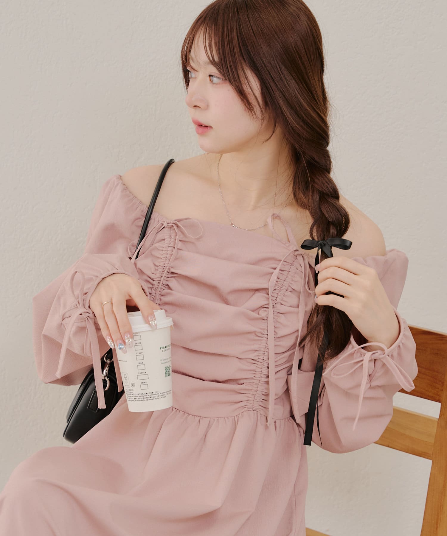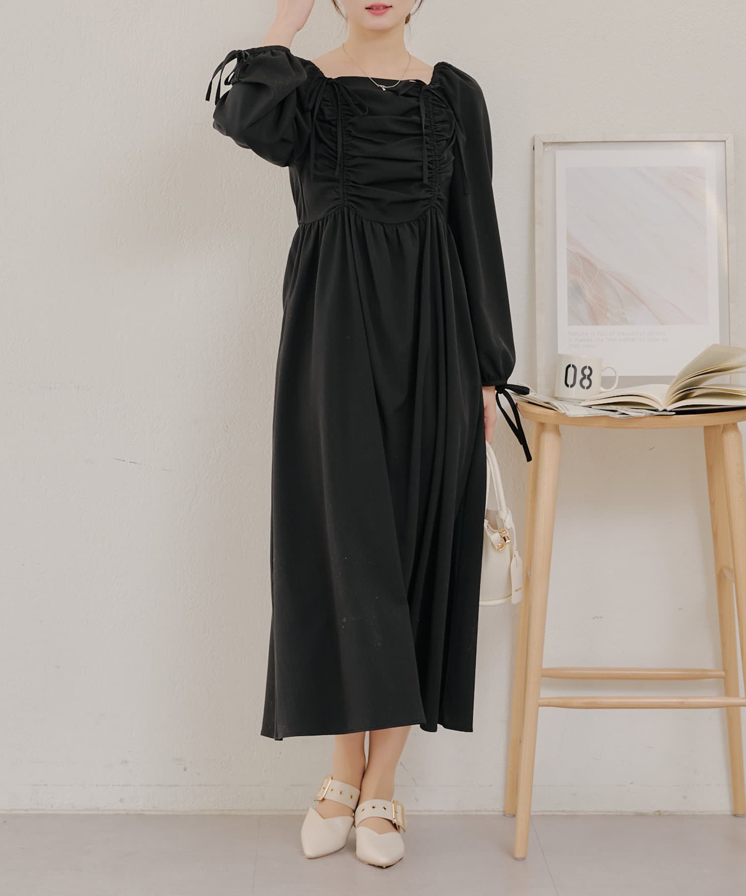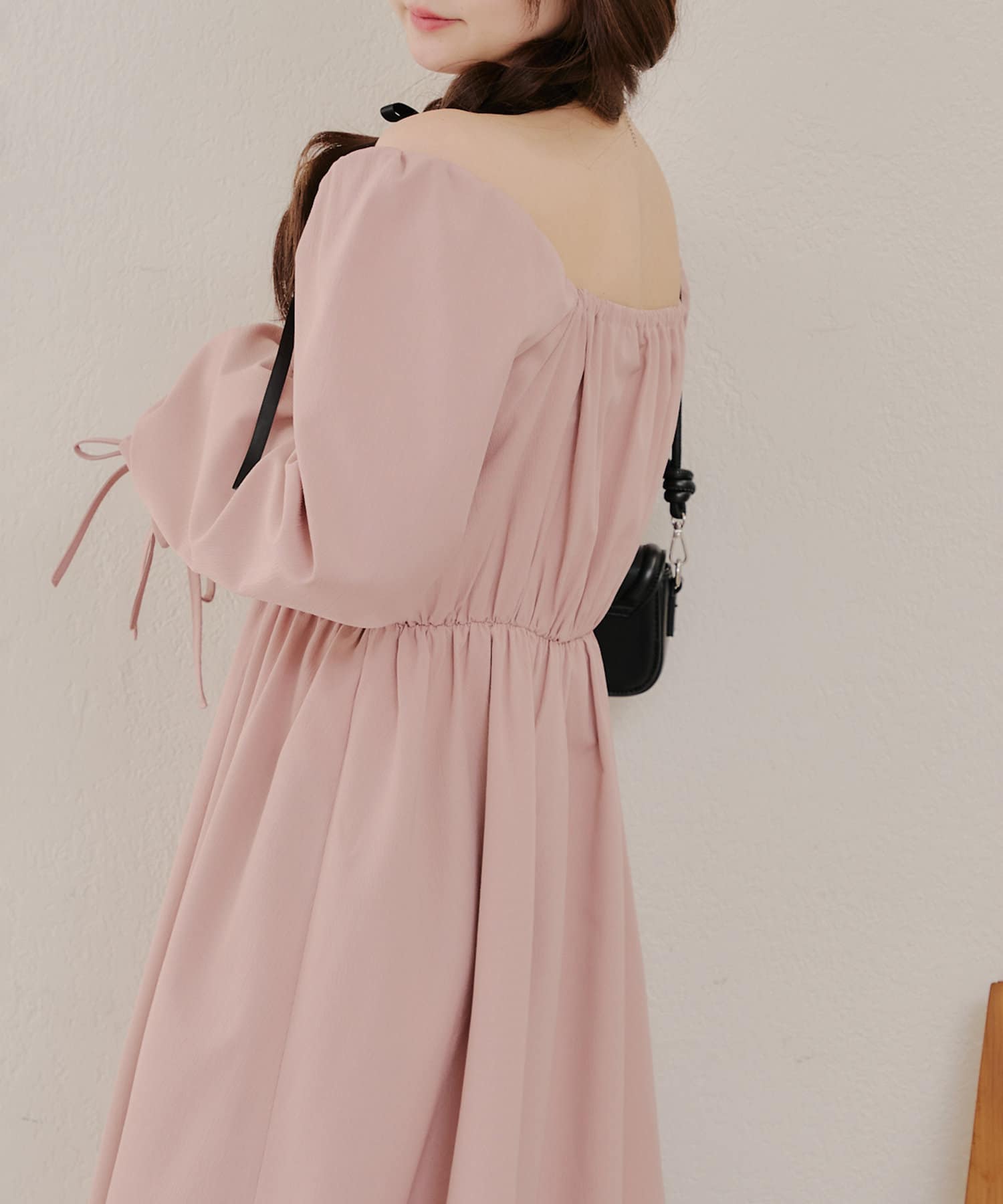 ・胸元のドロストデザインがトレンド感満載のワンピース