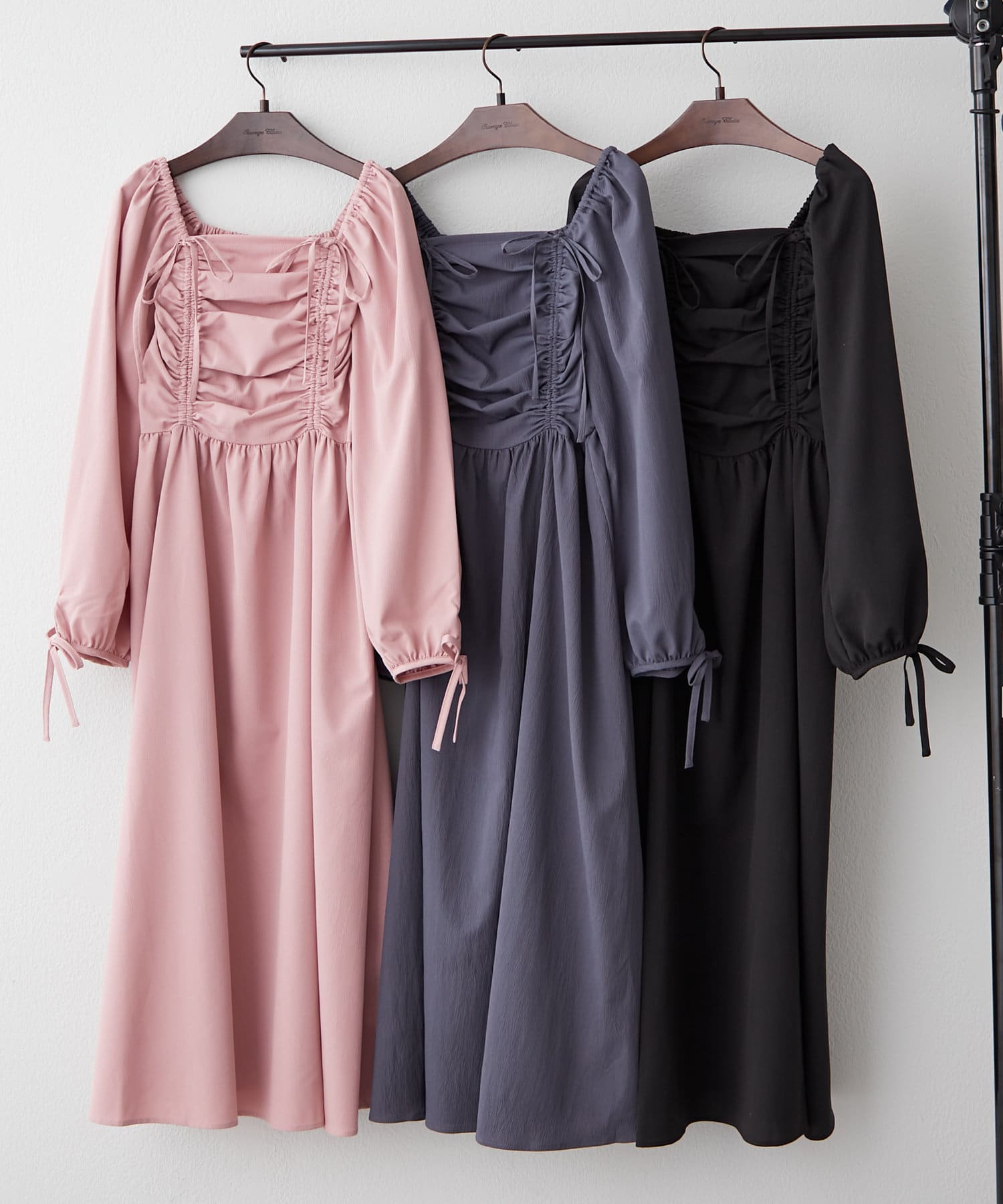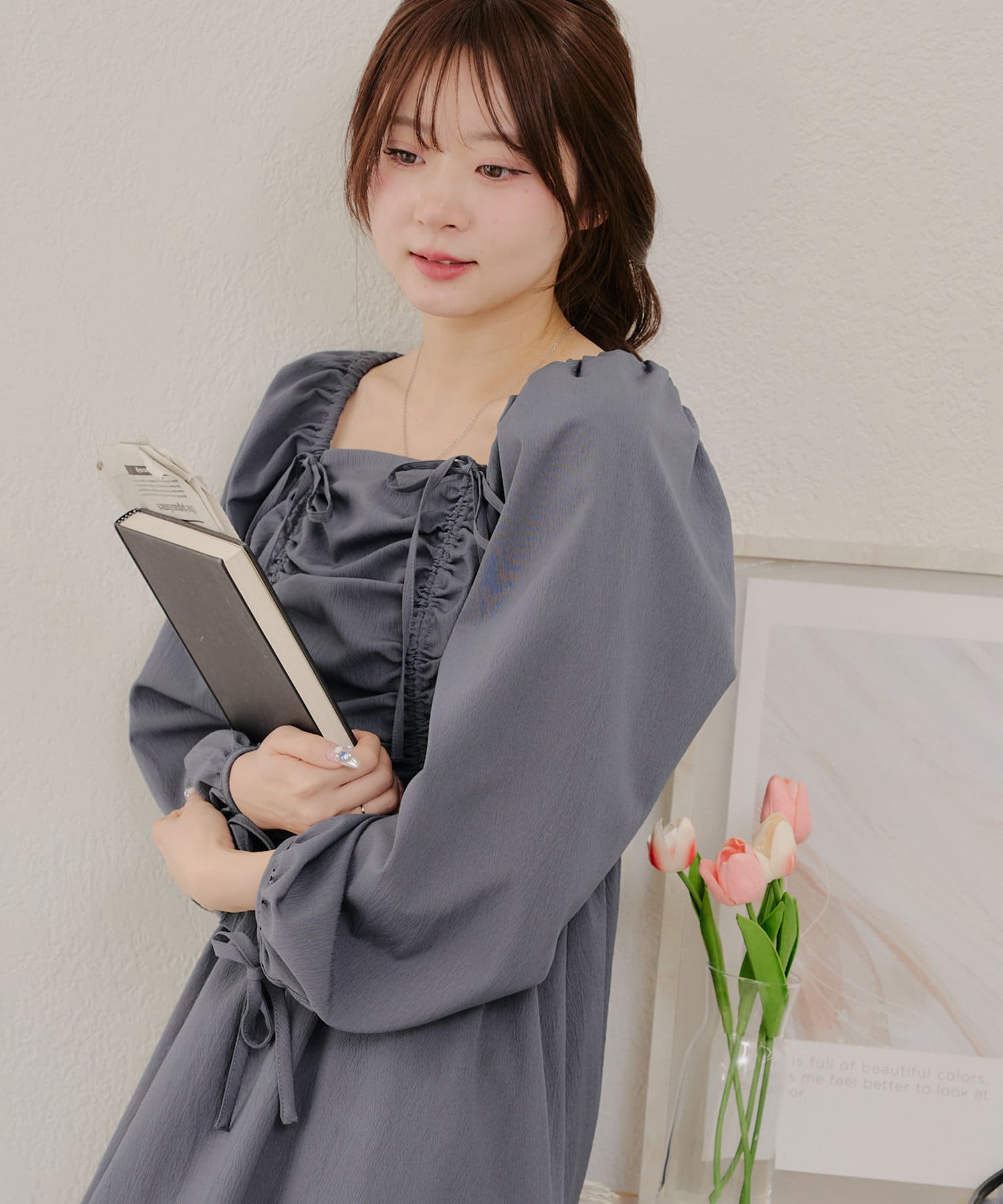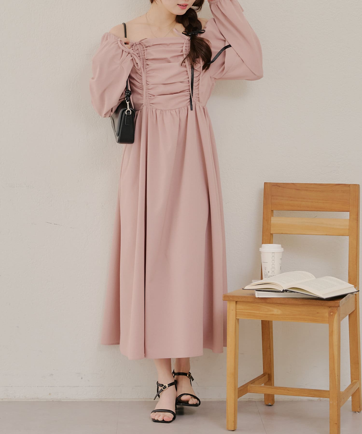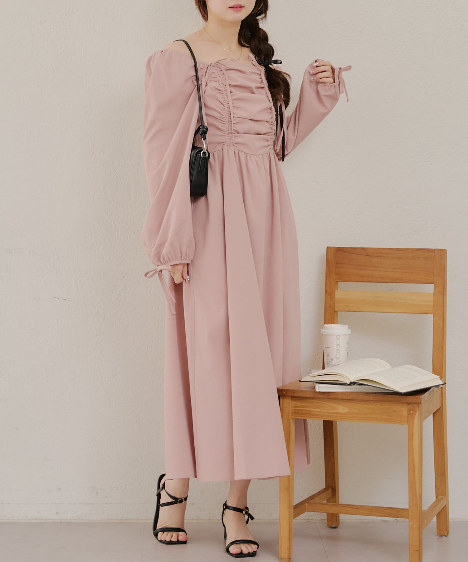 ・胸元のドロストデザインがトレンド感満載のワンピース
