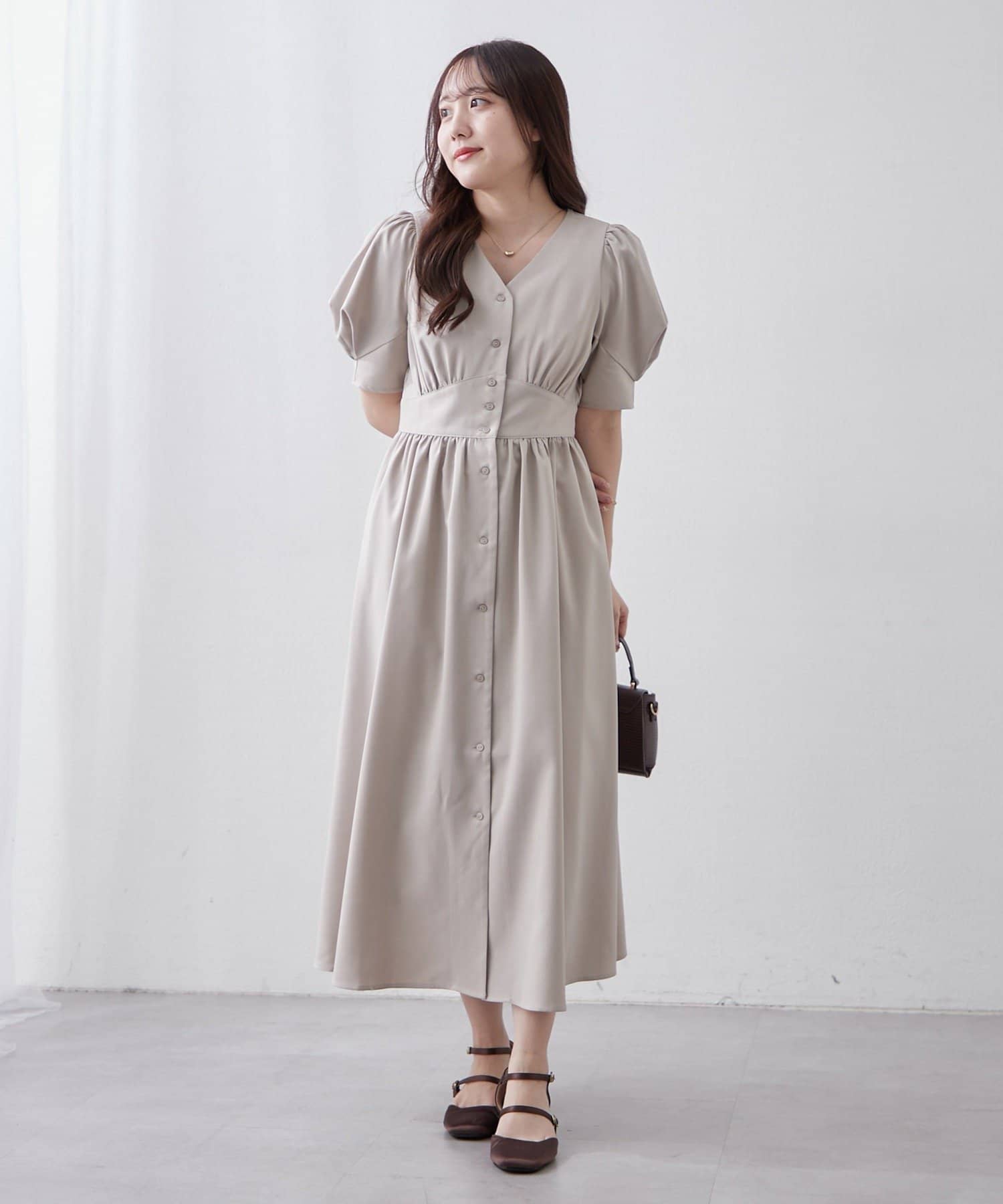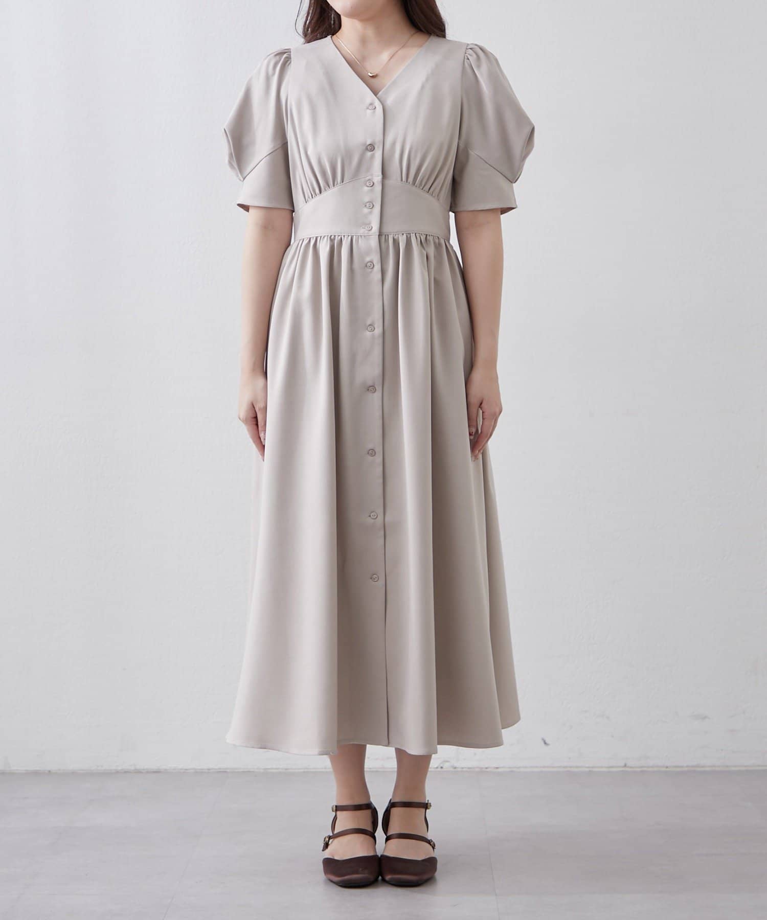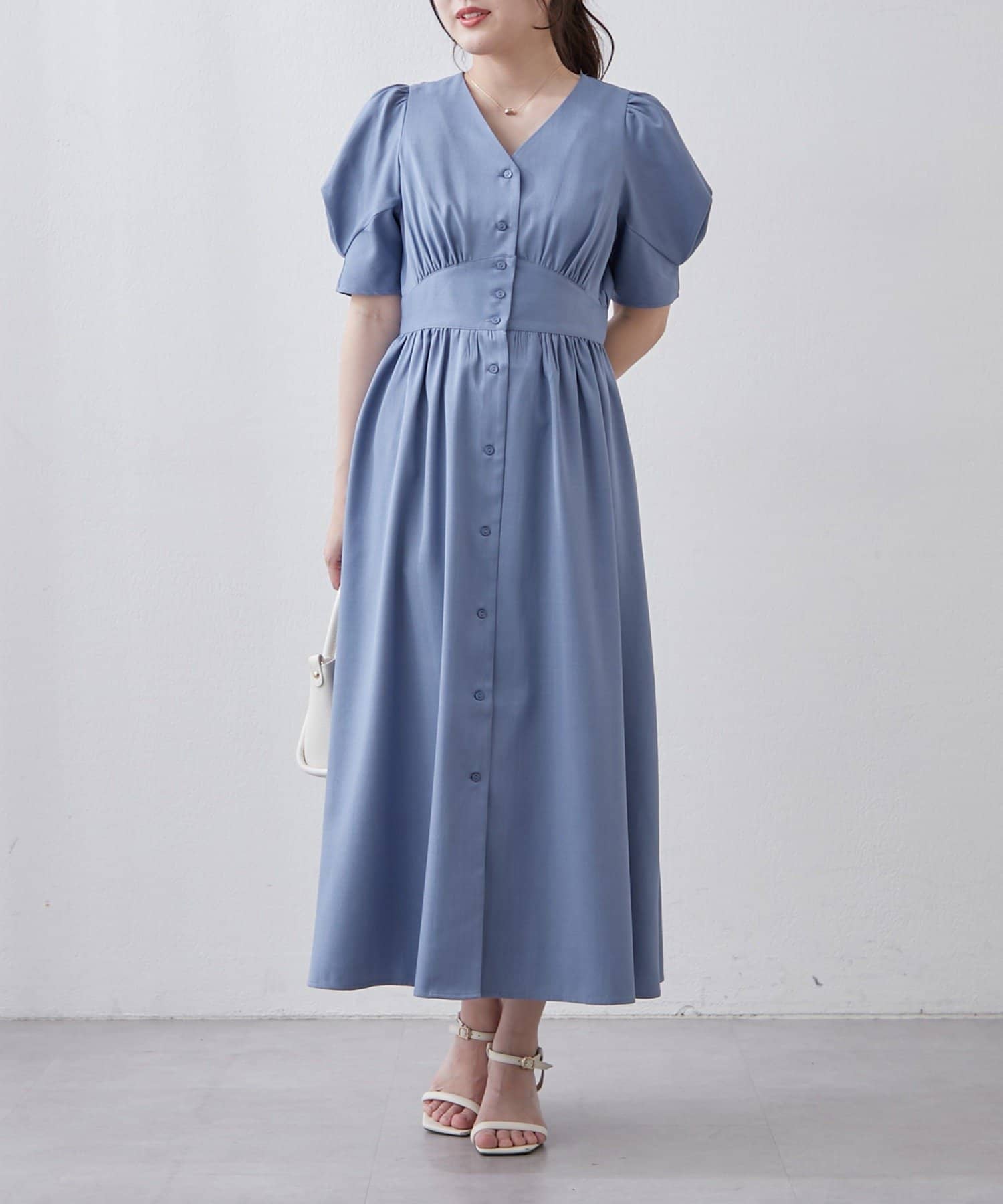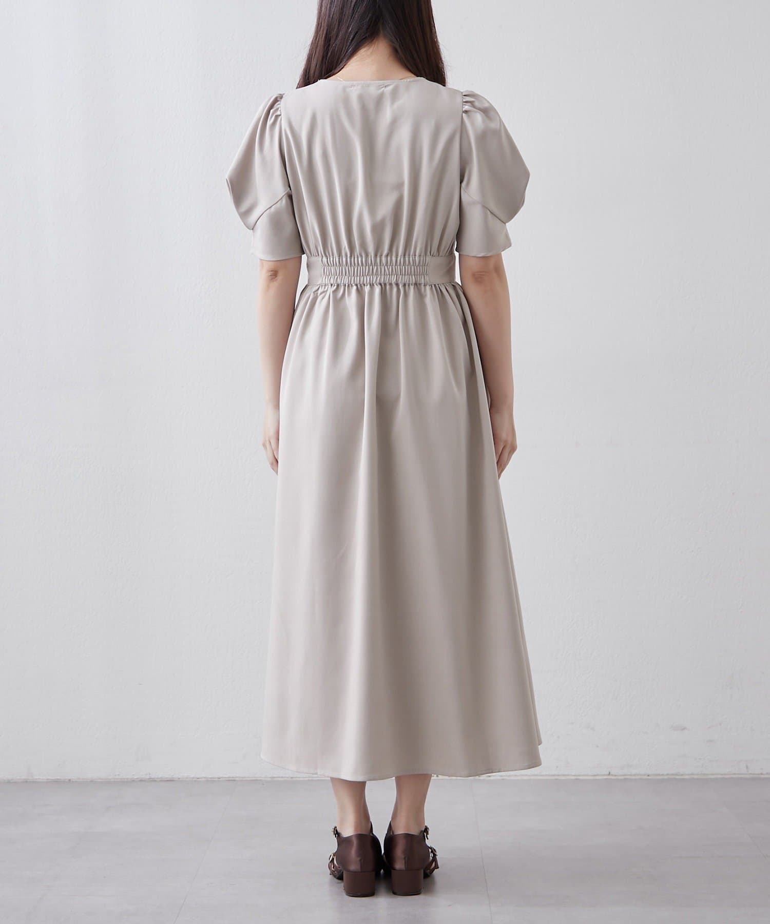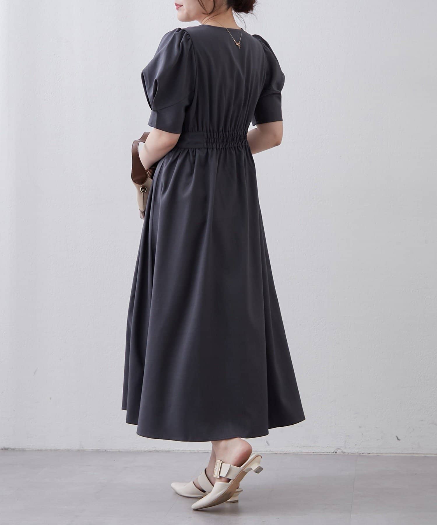 ・広がるオリガミ袖が二の腕を華奢に見せてくれるロングワンピース