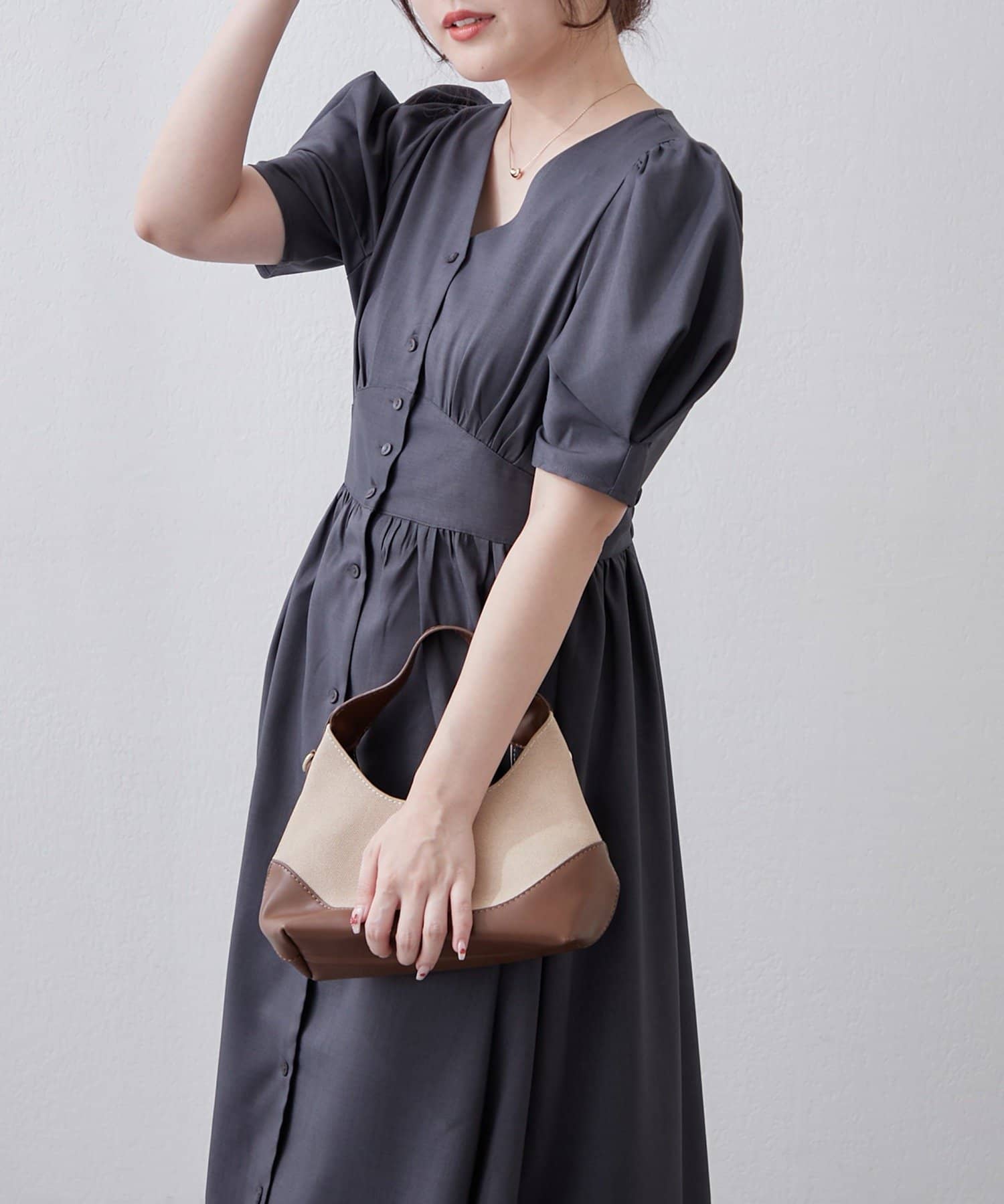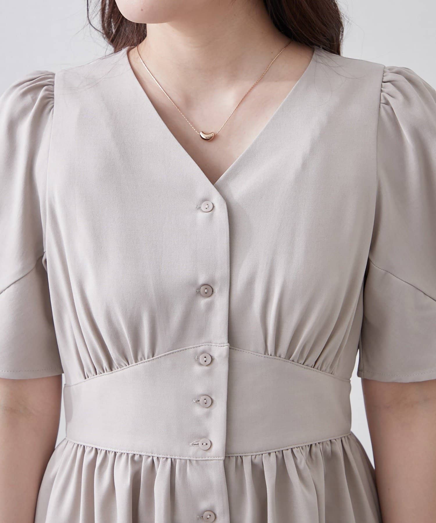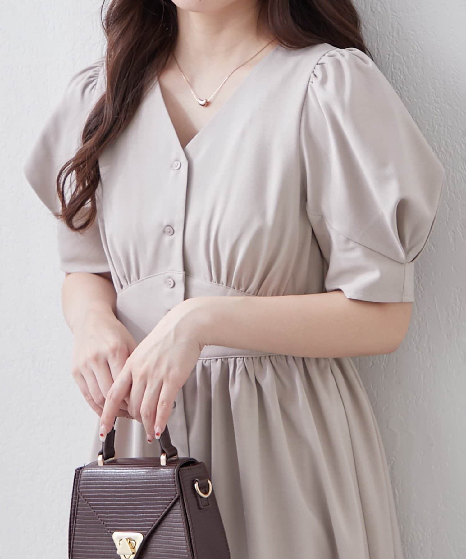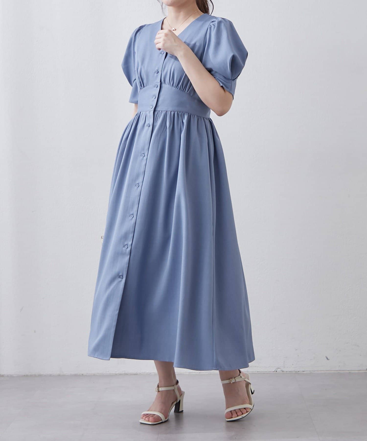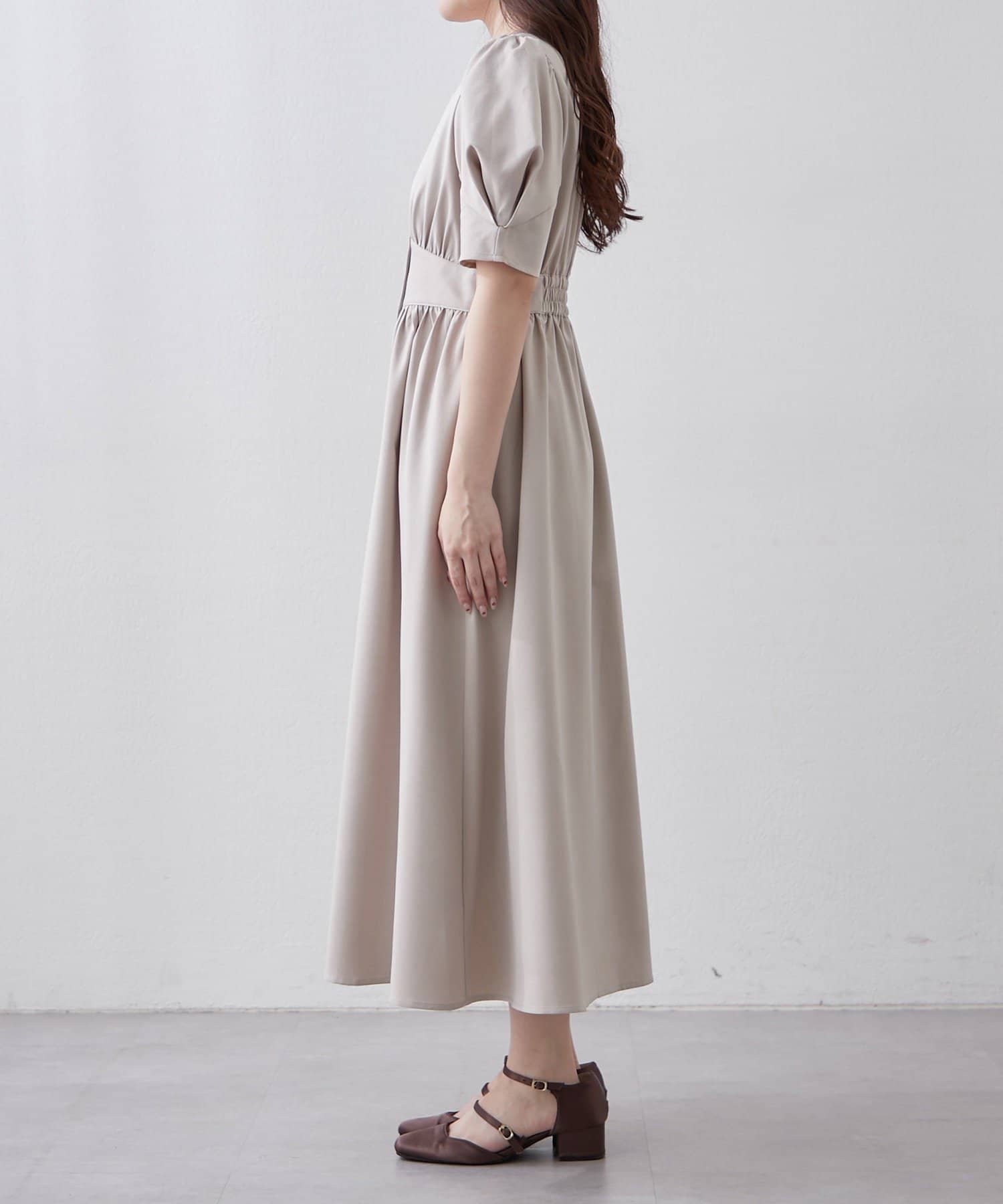 ・広がるオリガミ袖が二の腕を華奢に見せてくれるロングワンピース