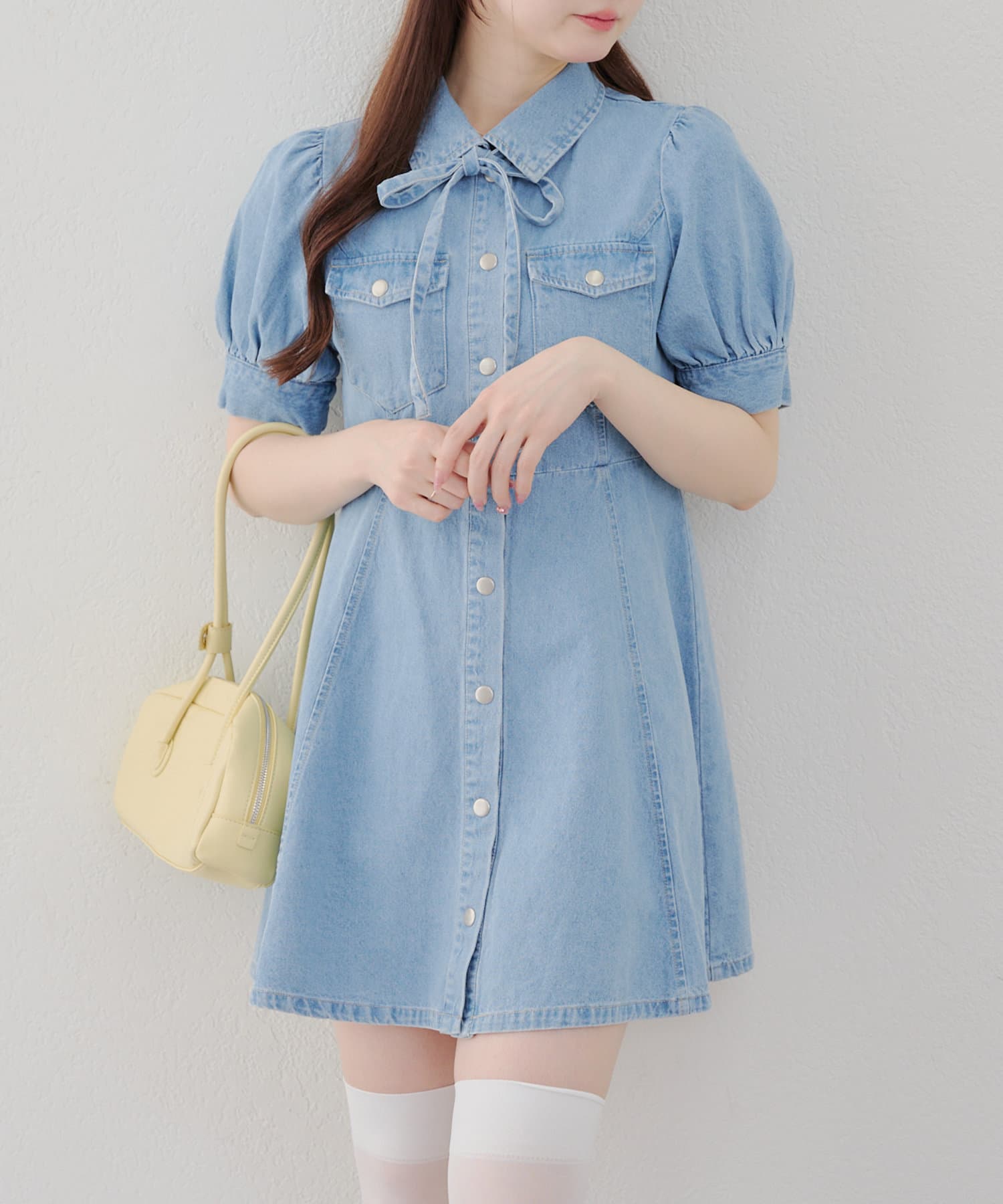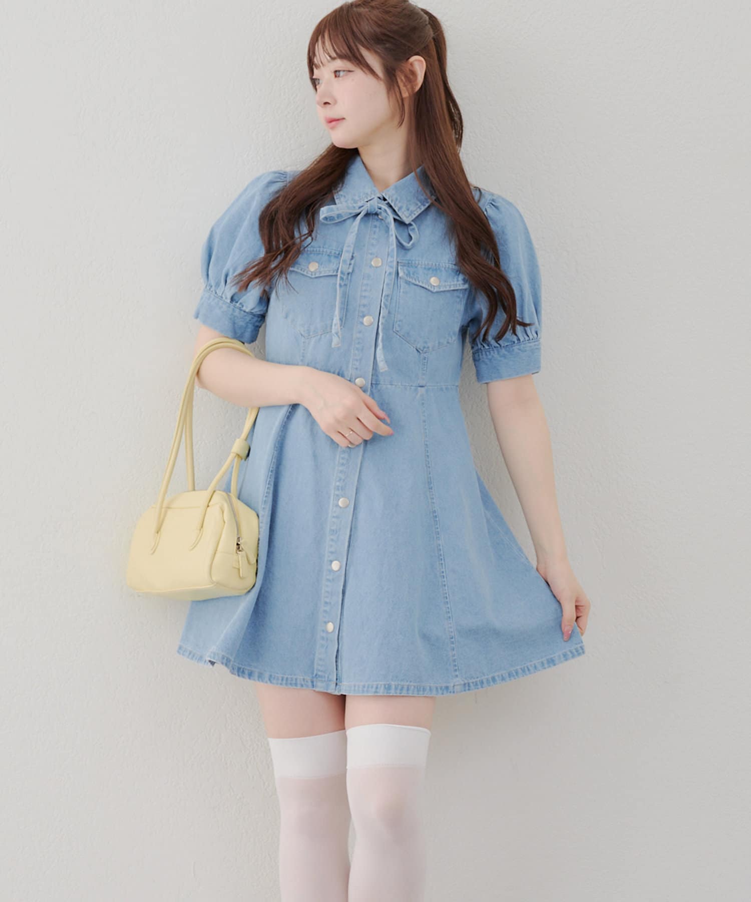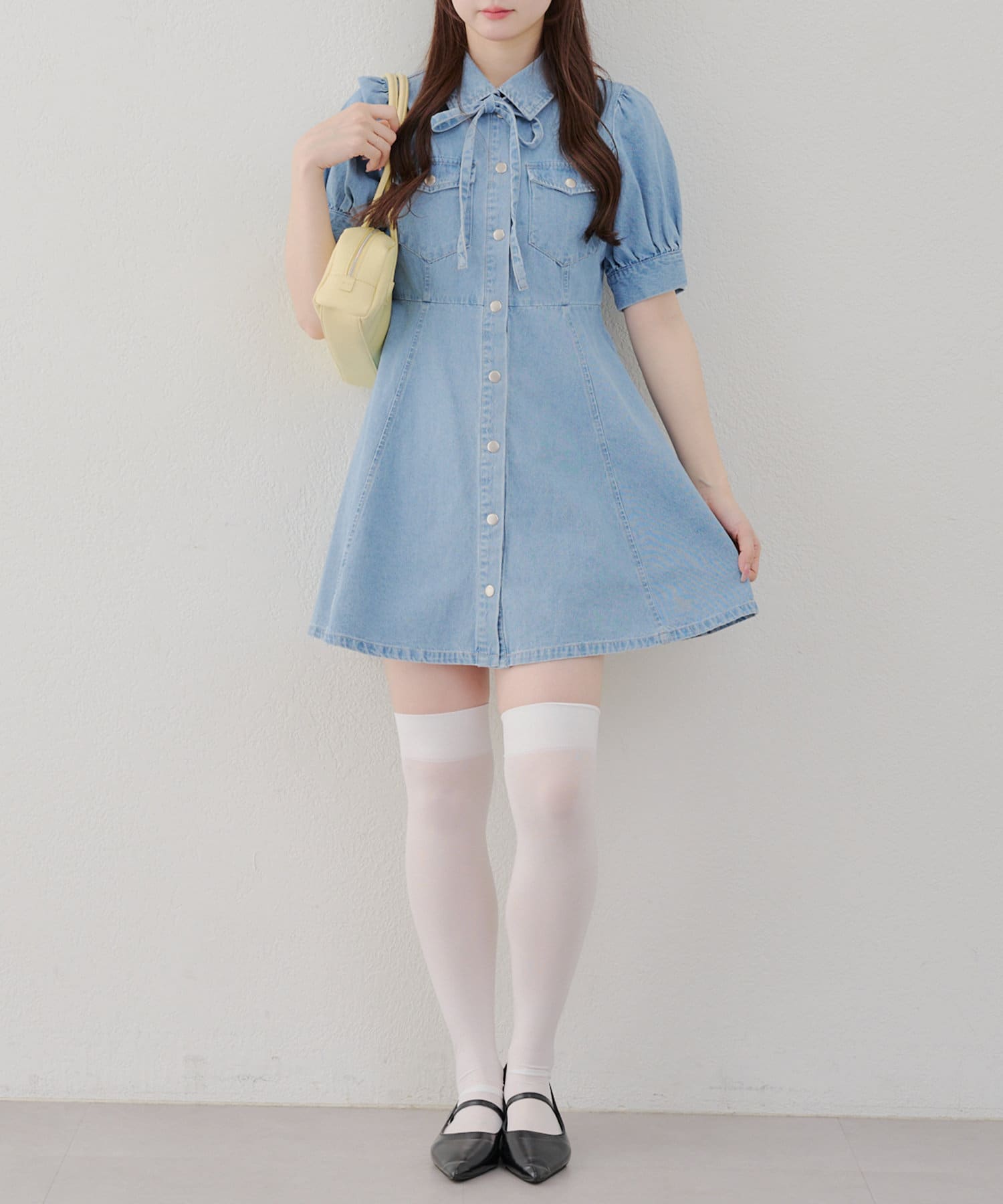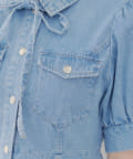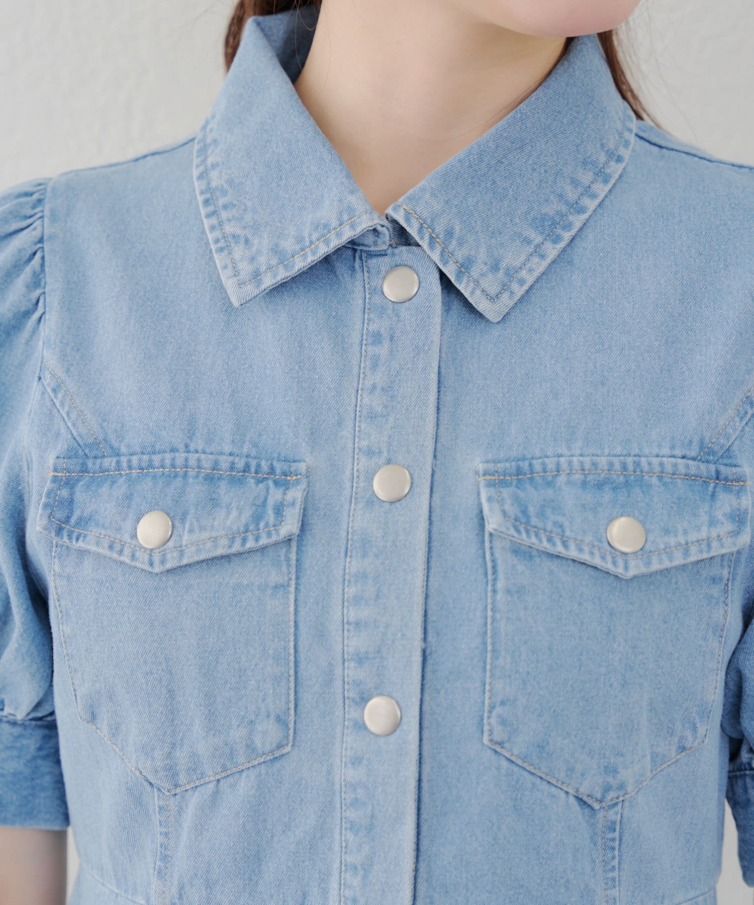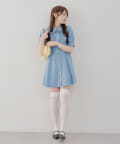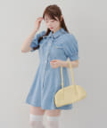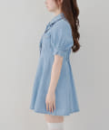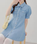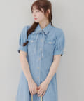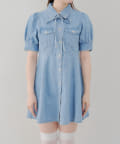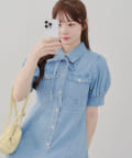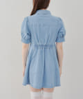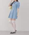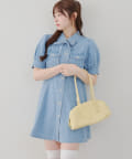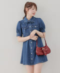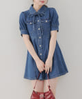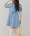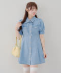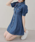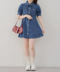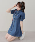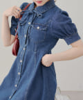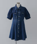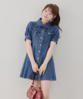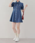 ・ボリュームスリーブと裾フレアデザインがかわいい今季トレンドのデニムワンピース。