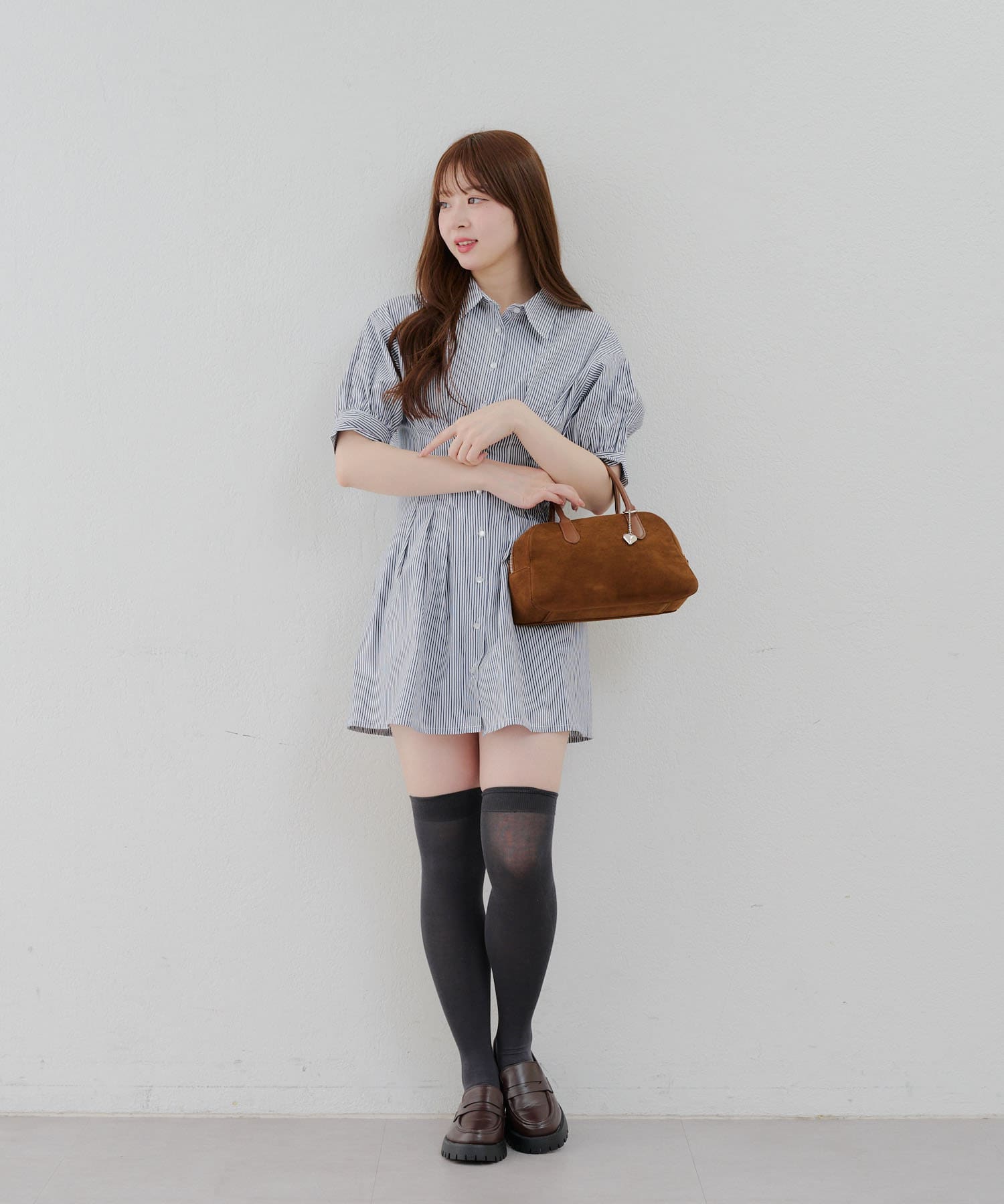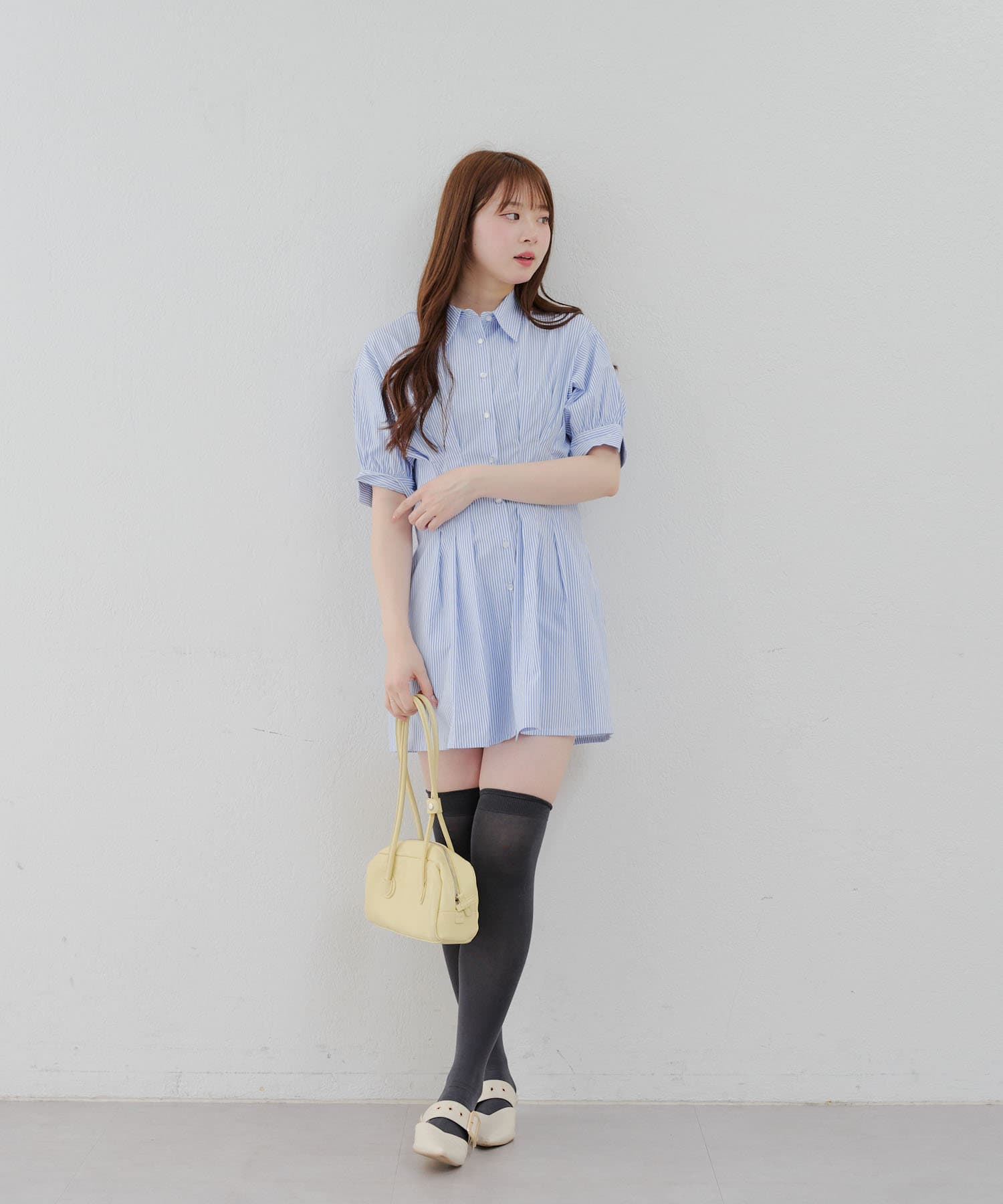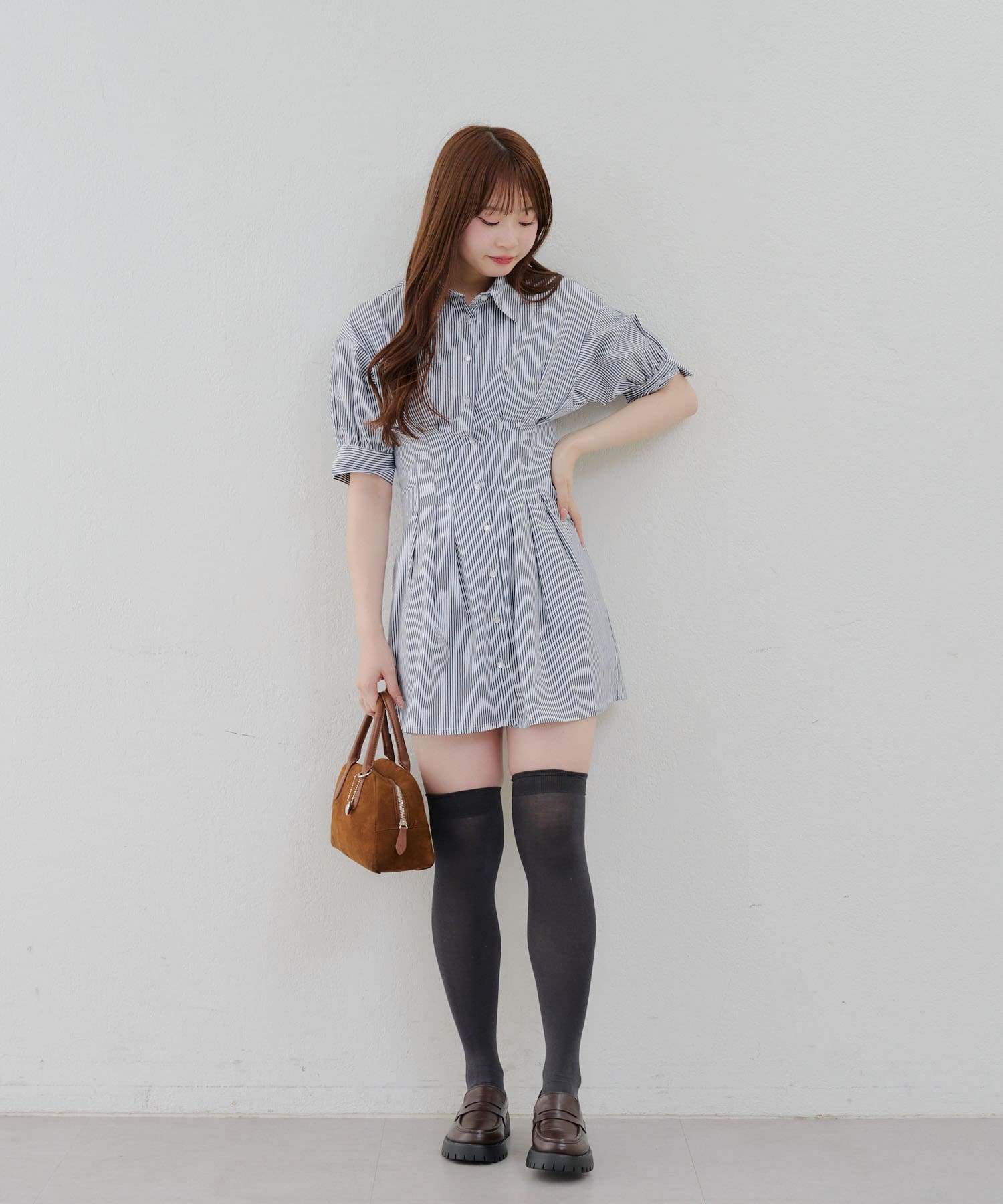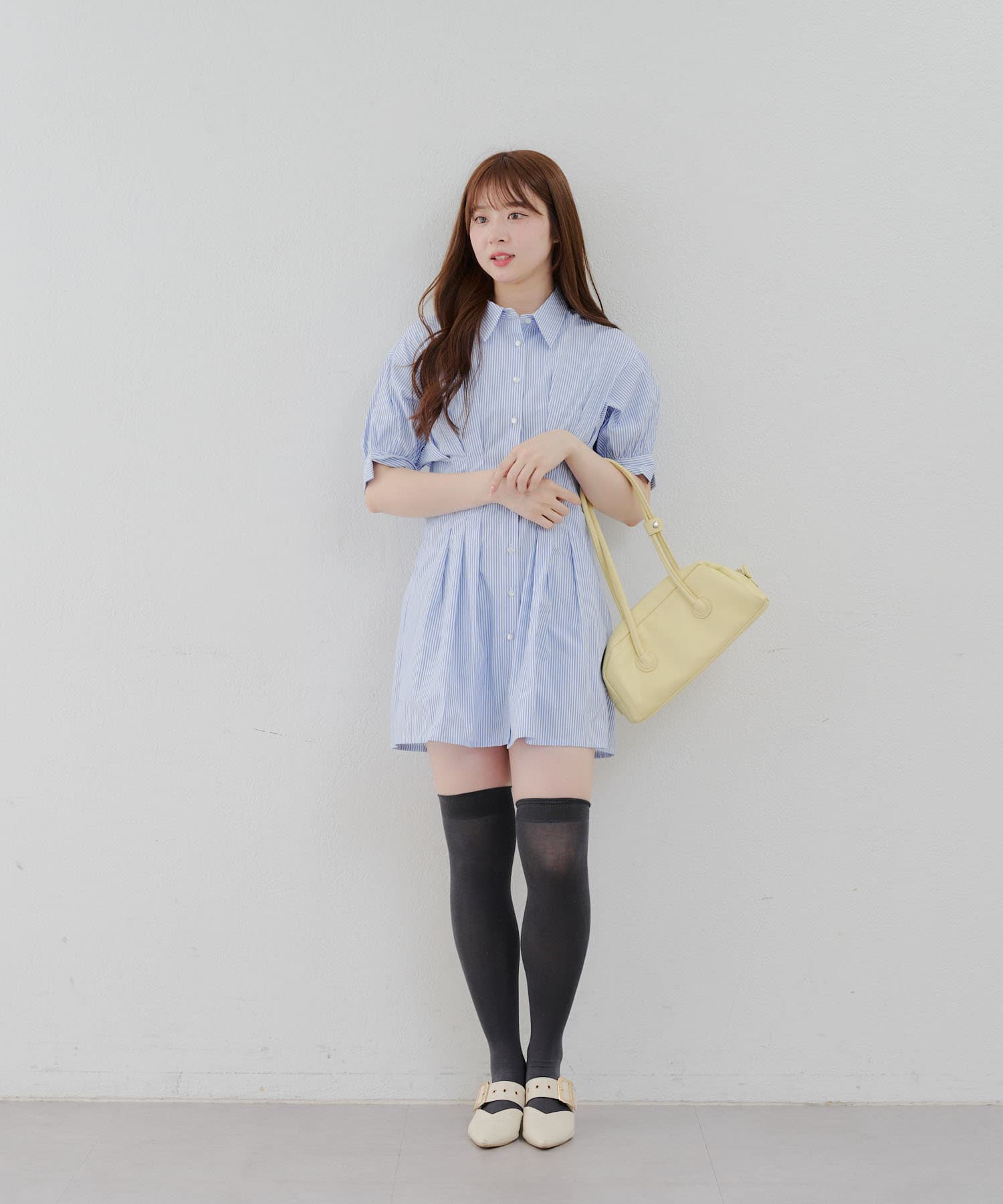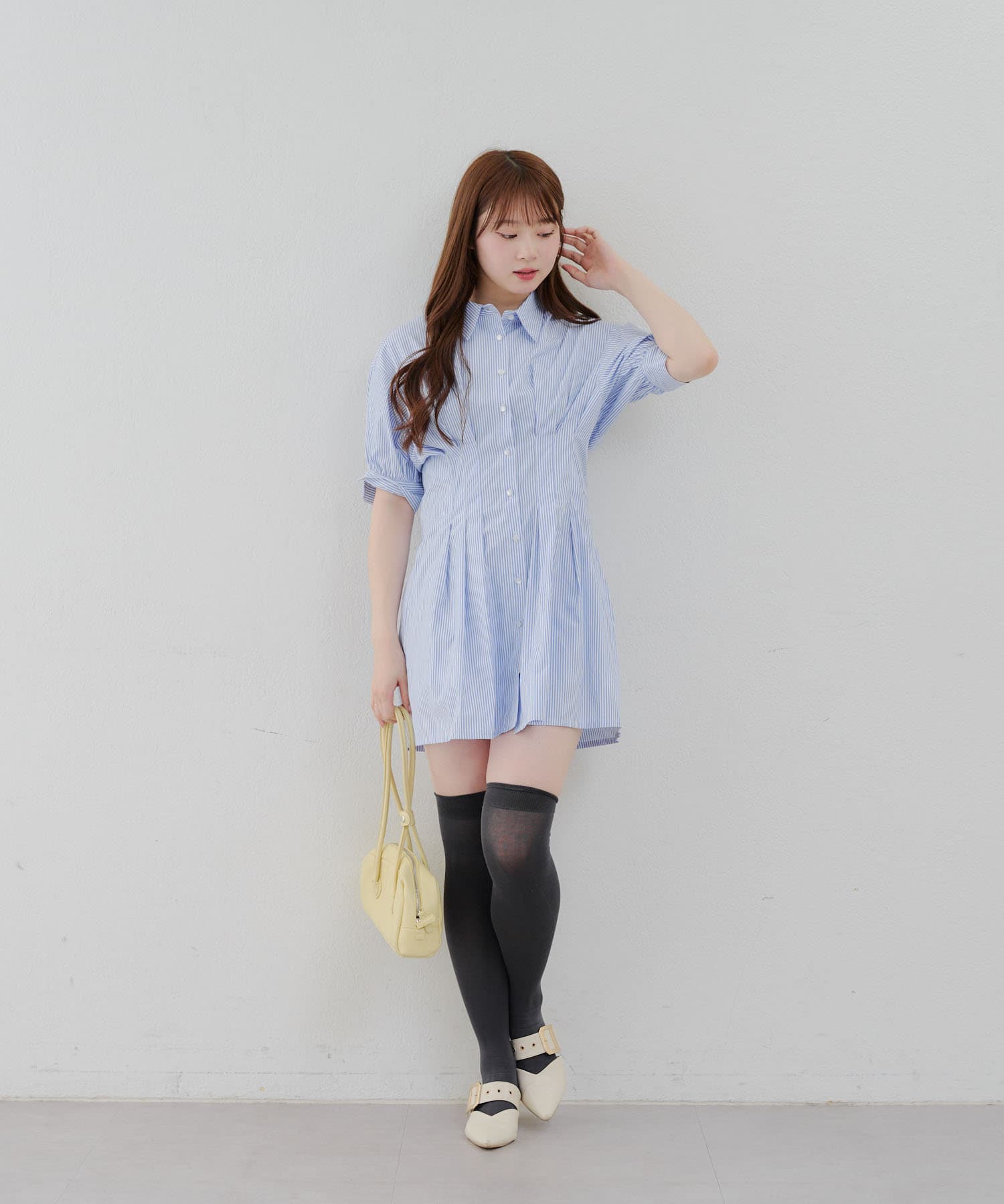 ・ニーハイソックスにパンプス合わせでガーリーなルックがオススメ