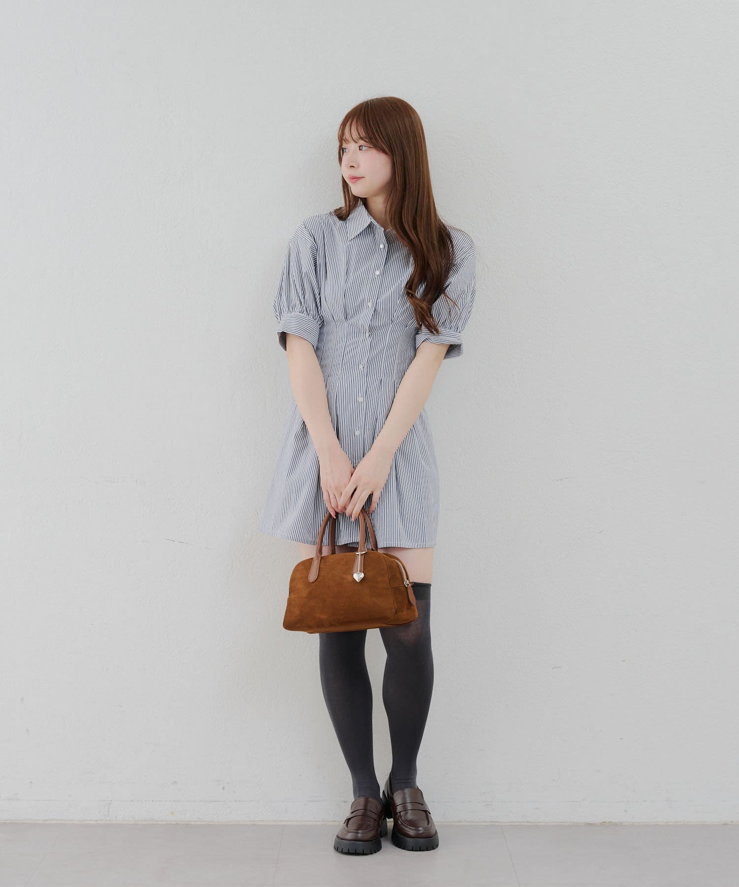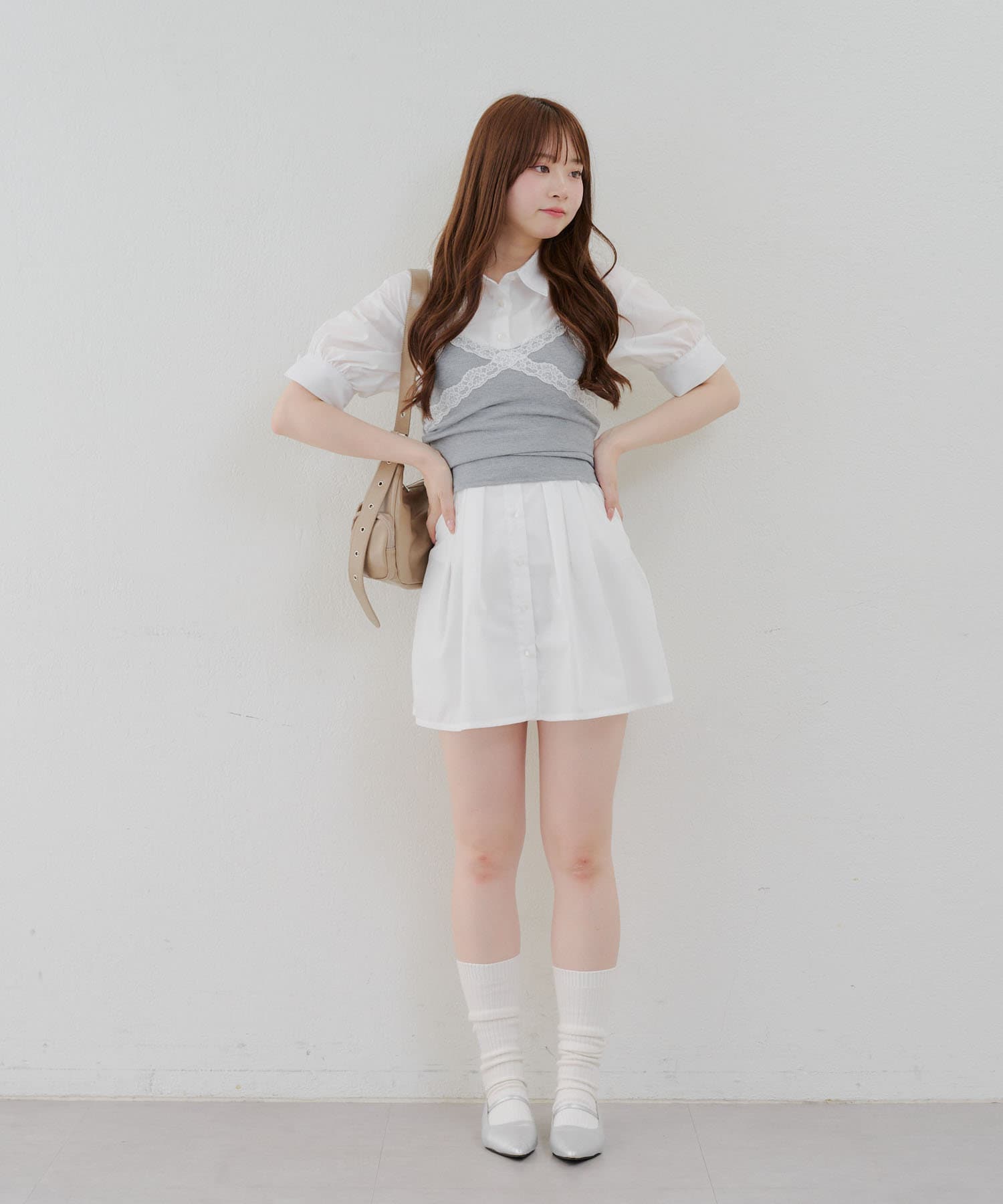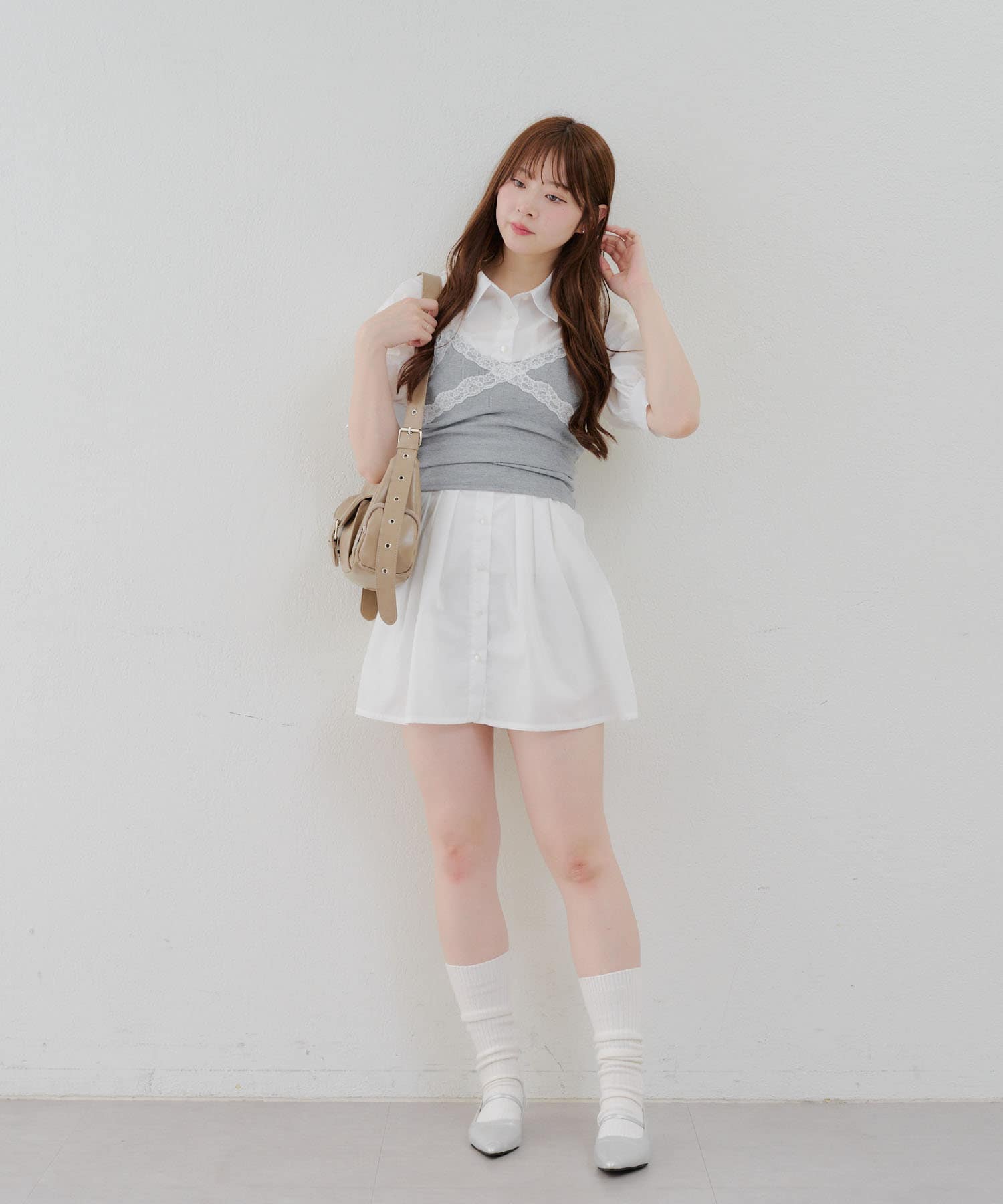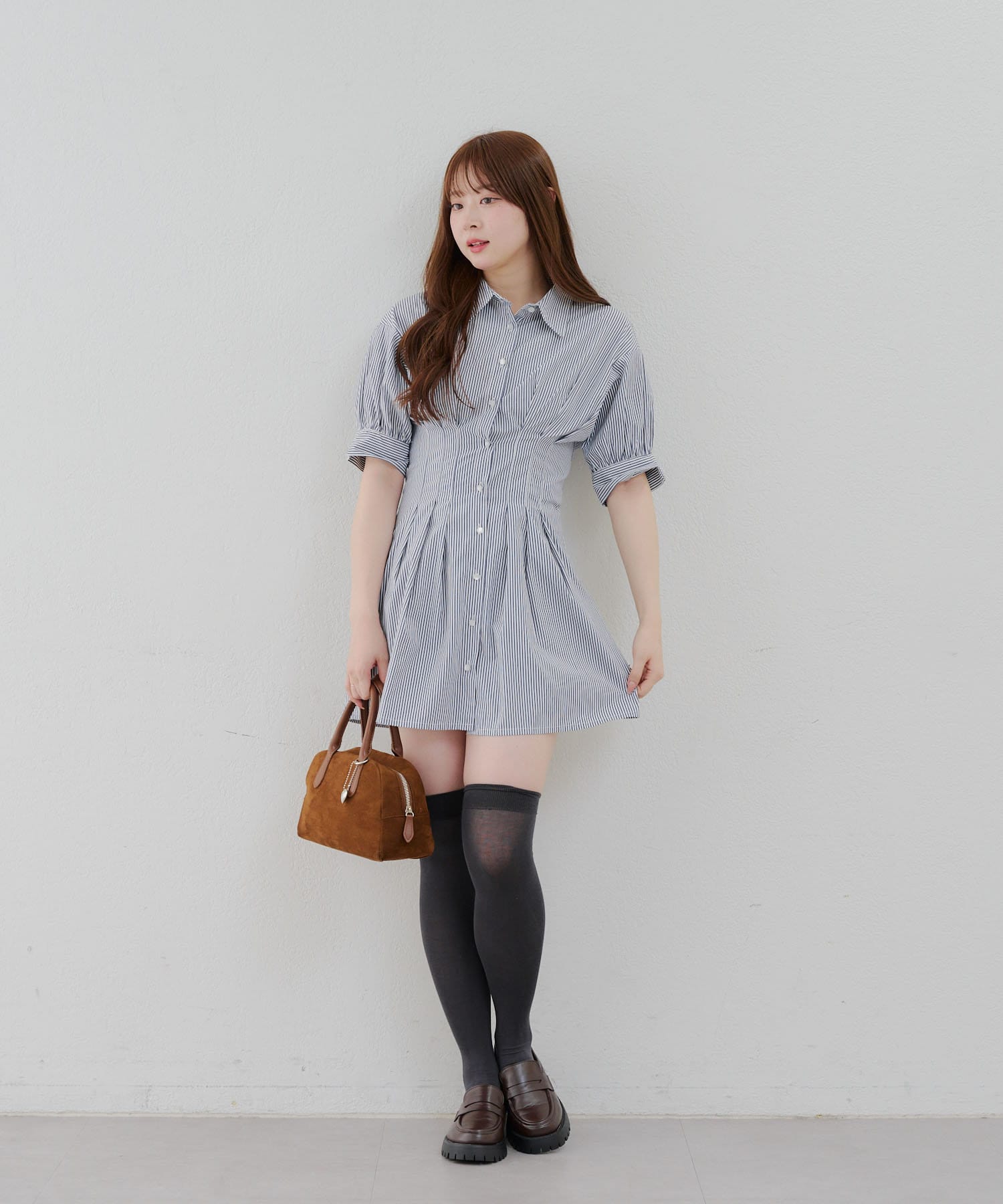 ・ニーハイソックスにパンプス合わせでガーリーなルックがオススメ