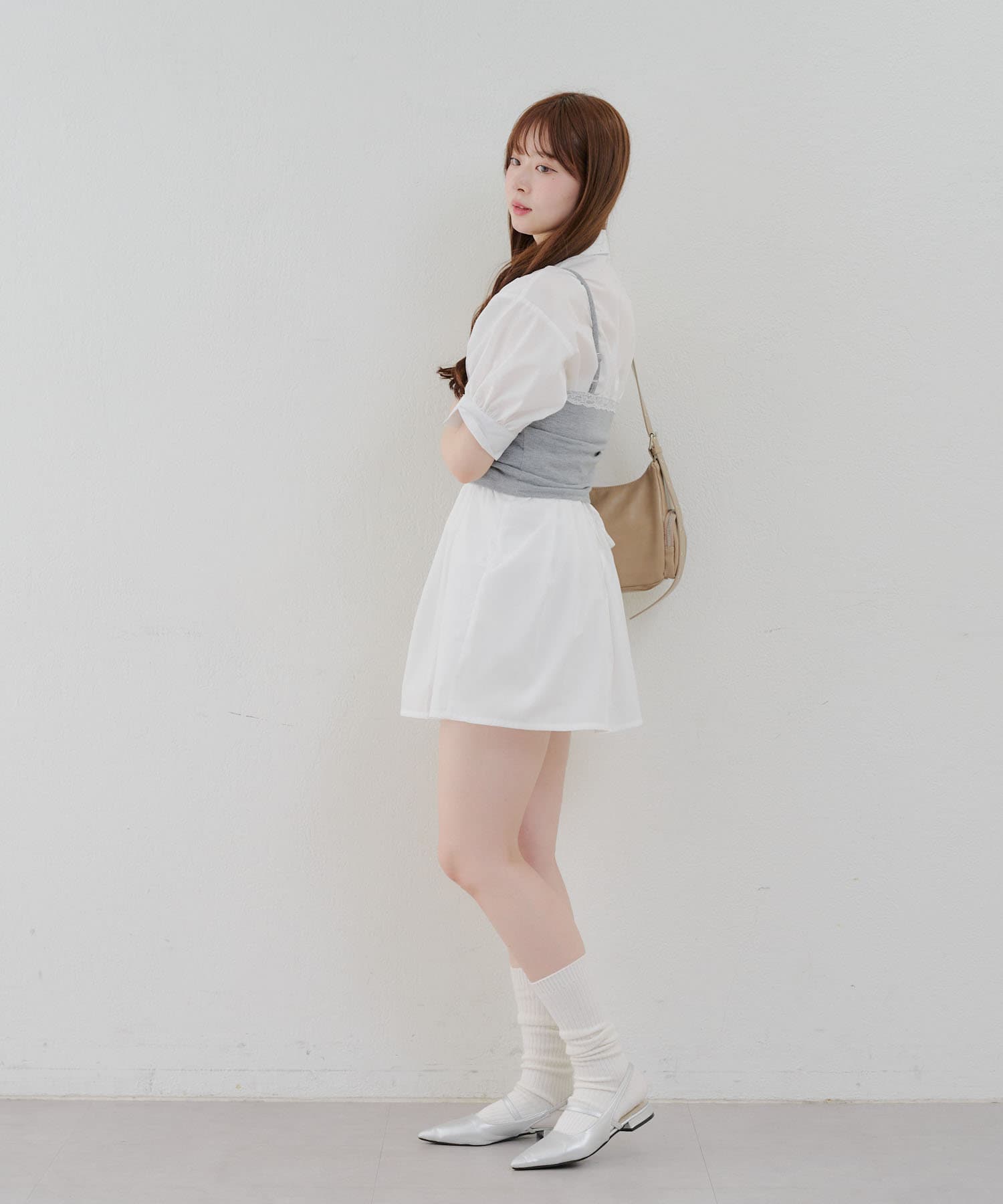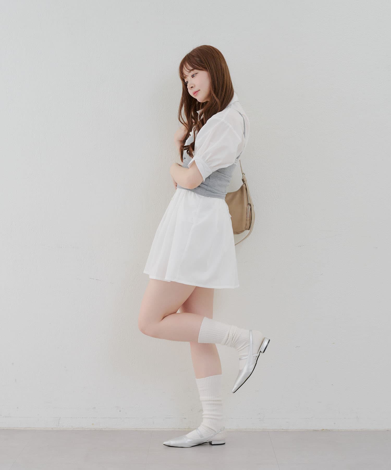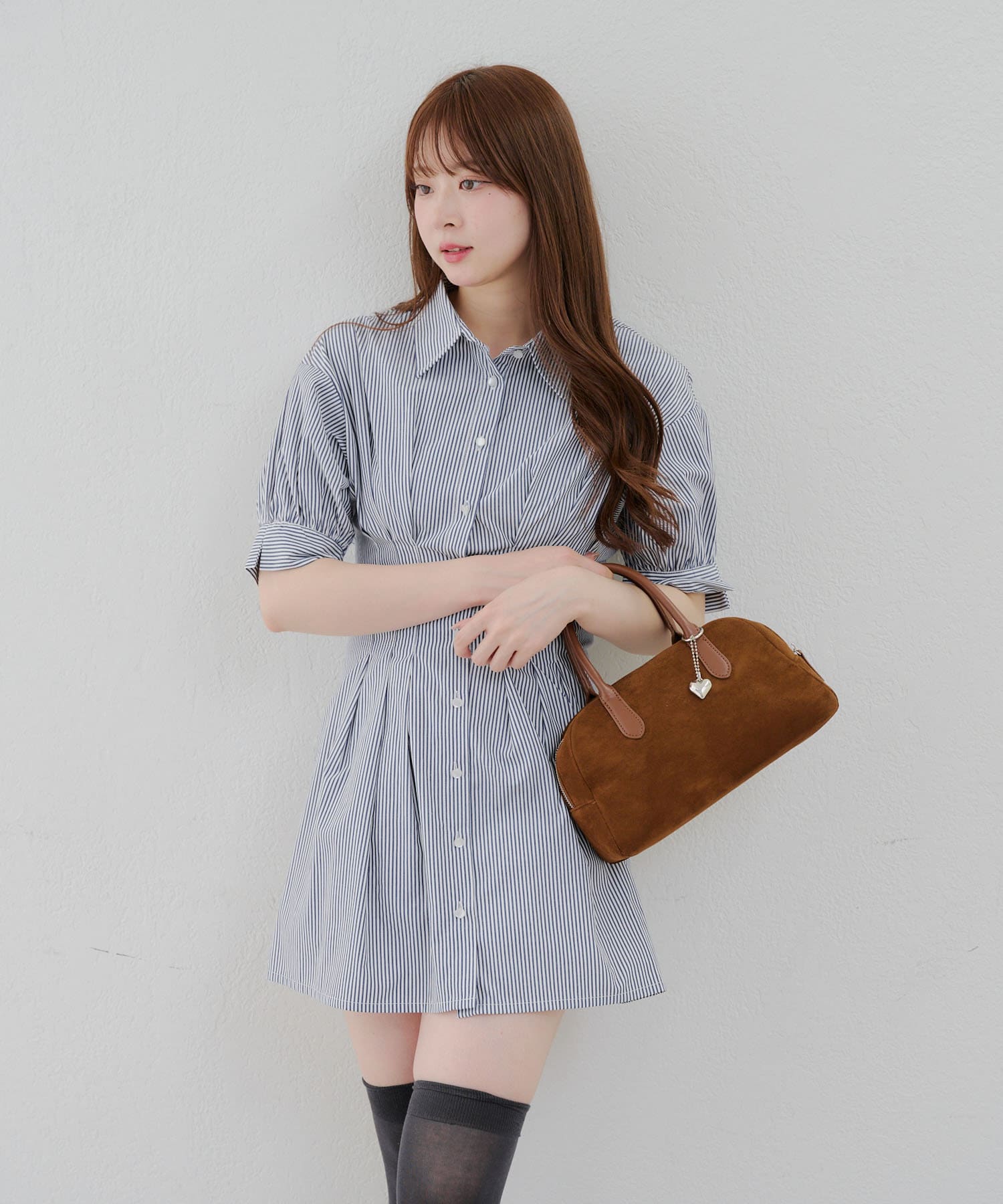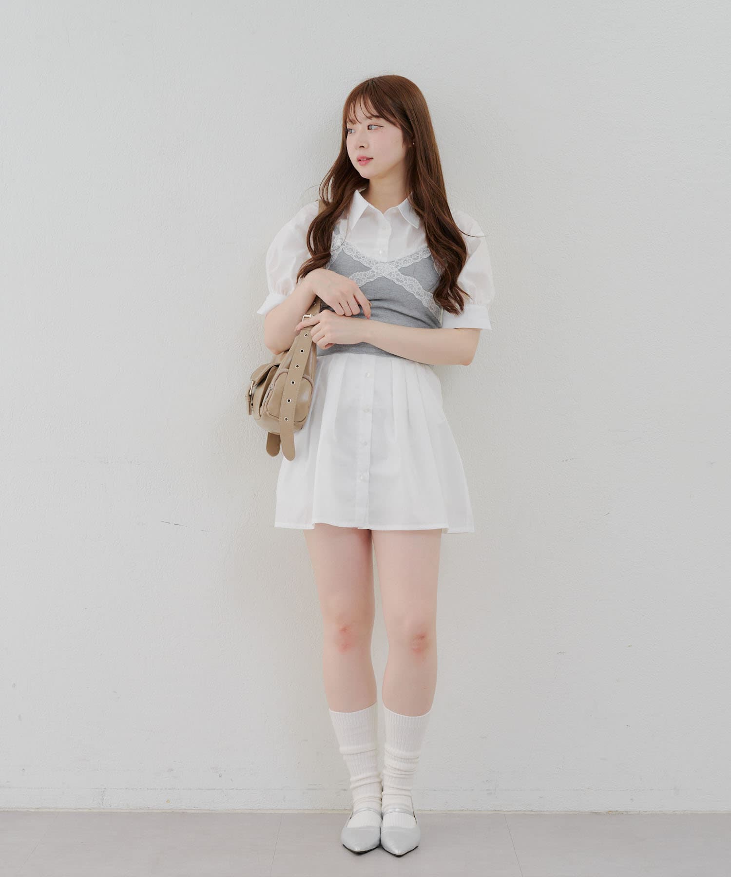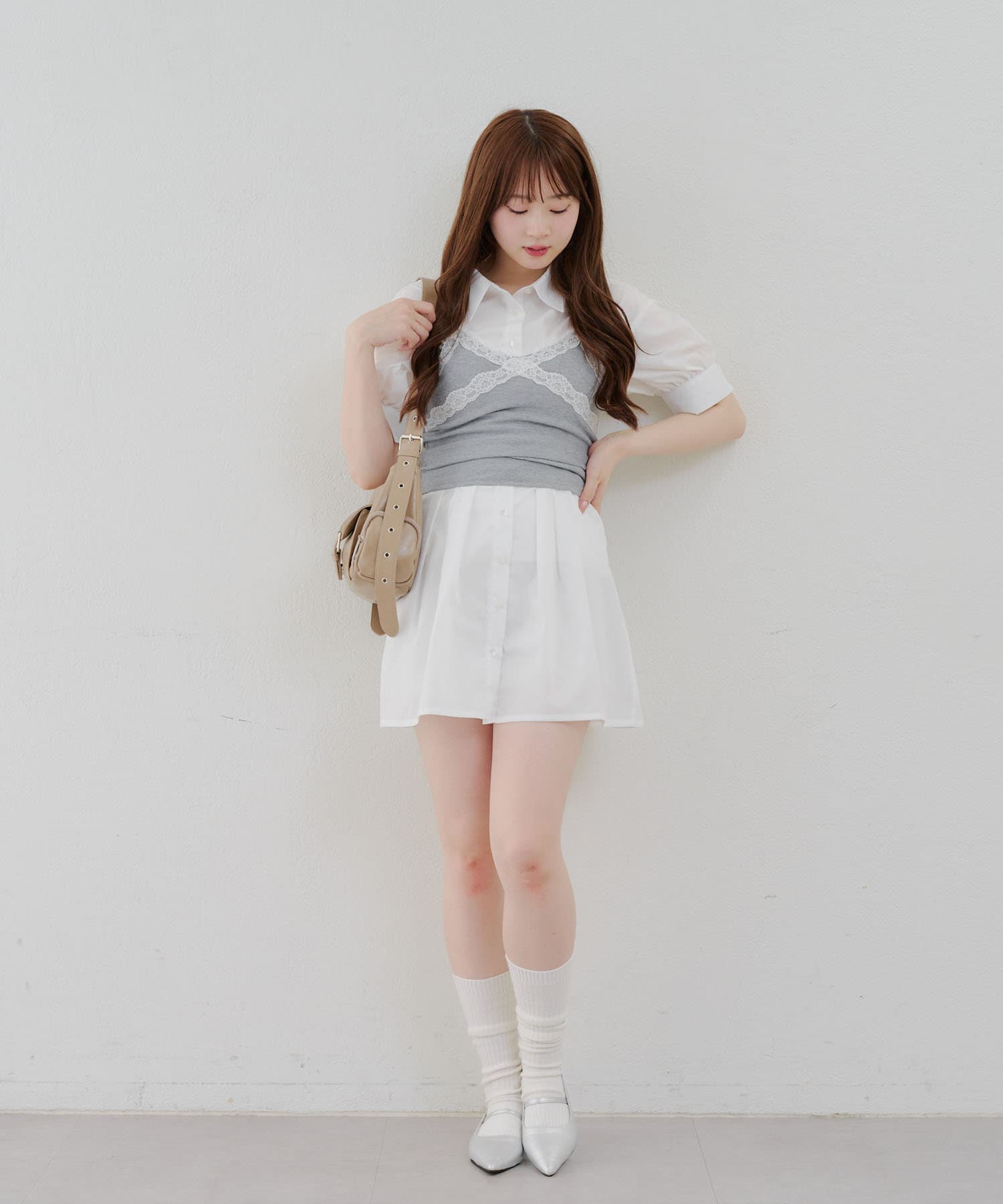 ・ニーハイソックスにパンプス合わせでガーリーなルックがオススメ