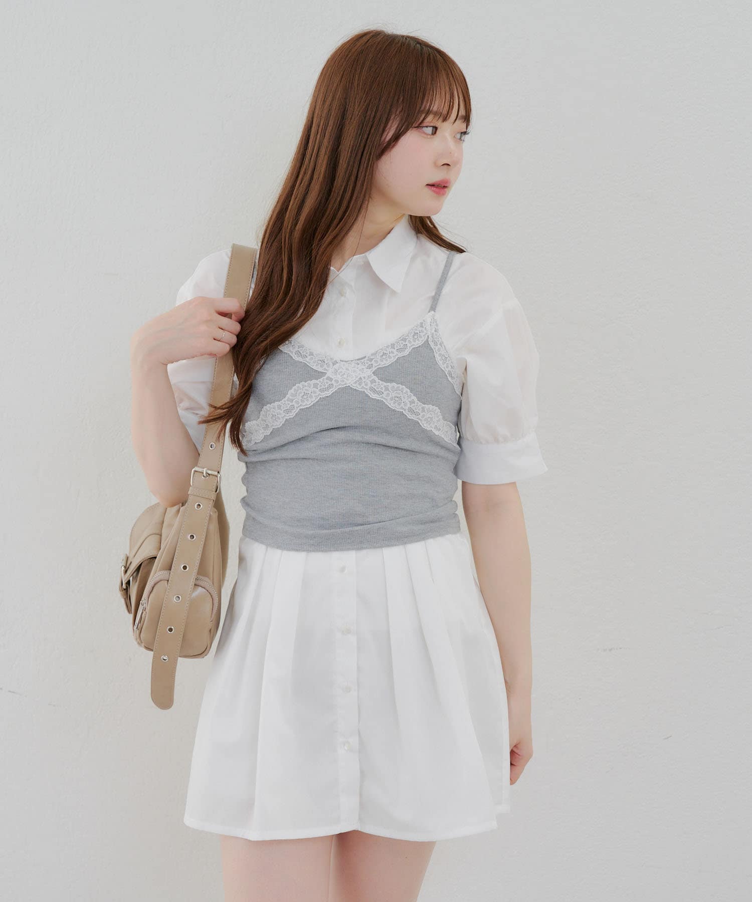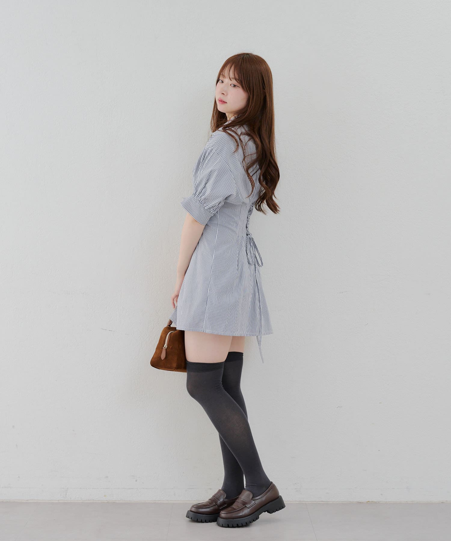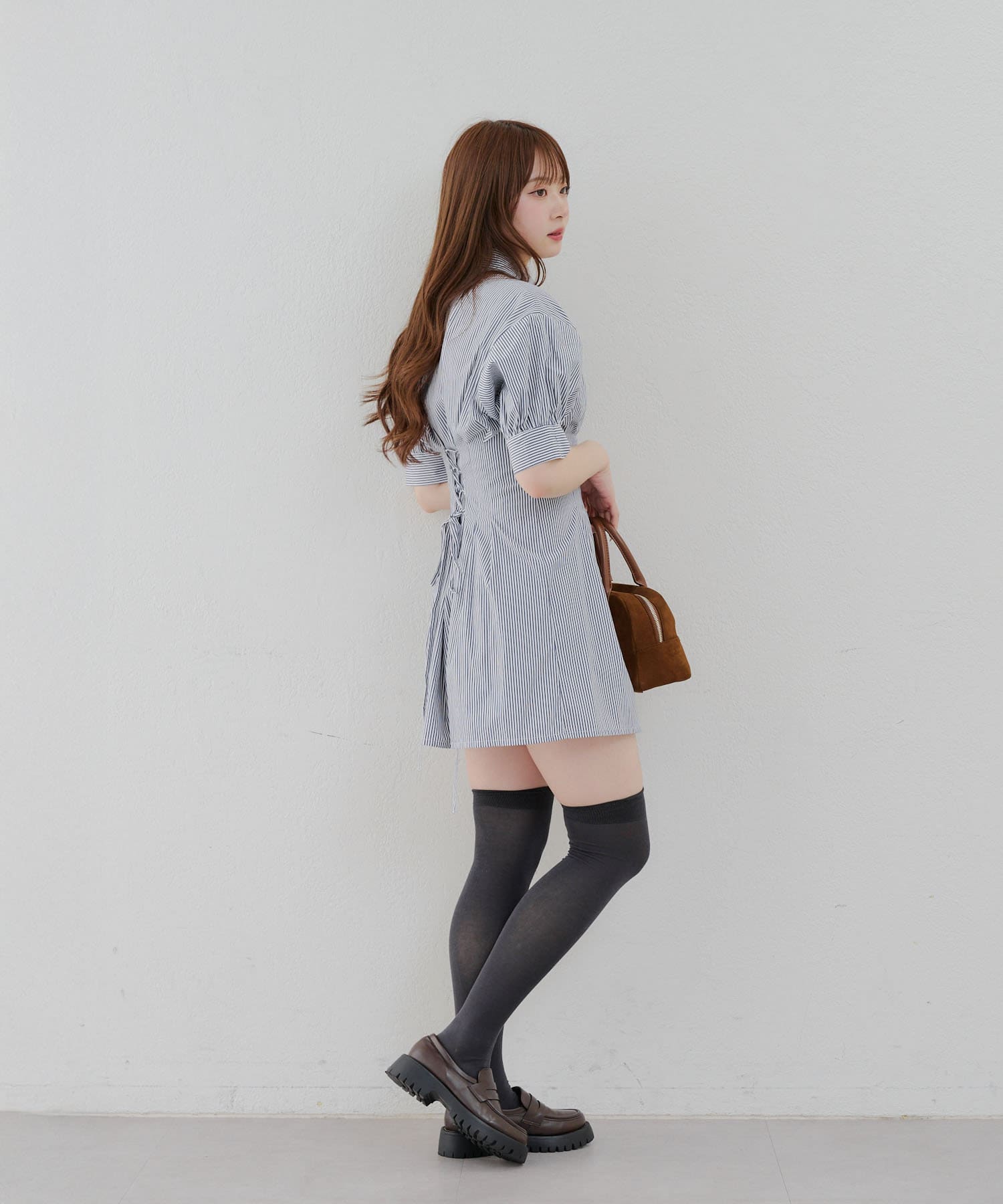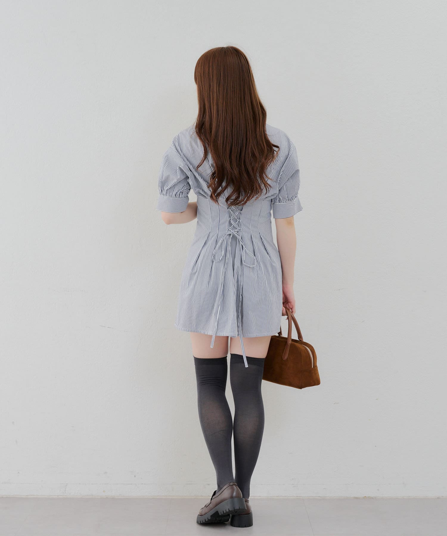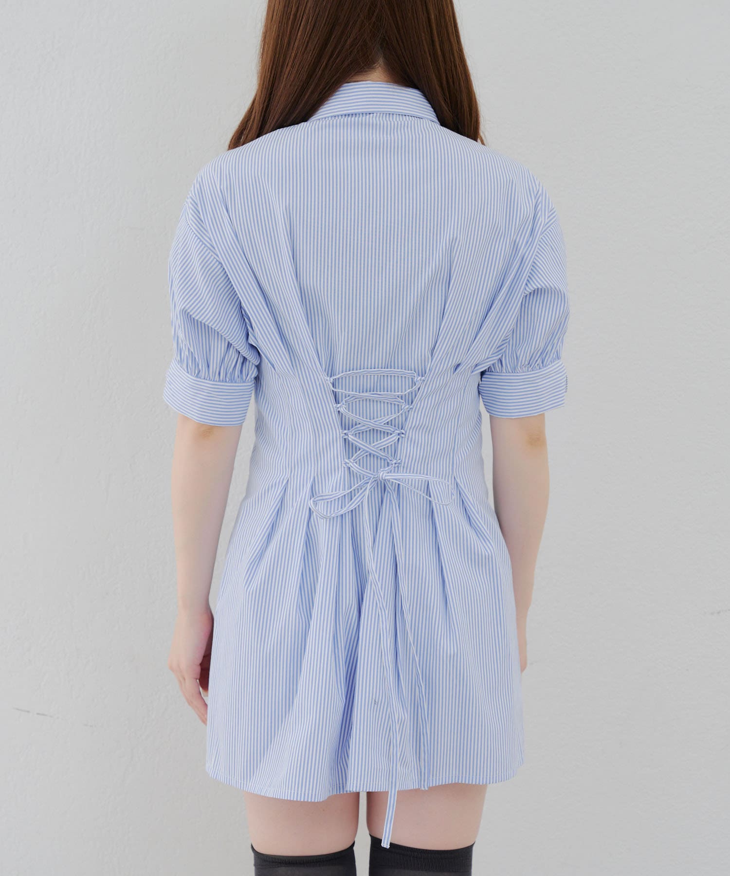 後ろレースアップミニワンピース