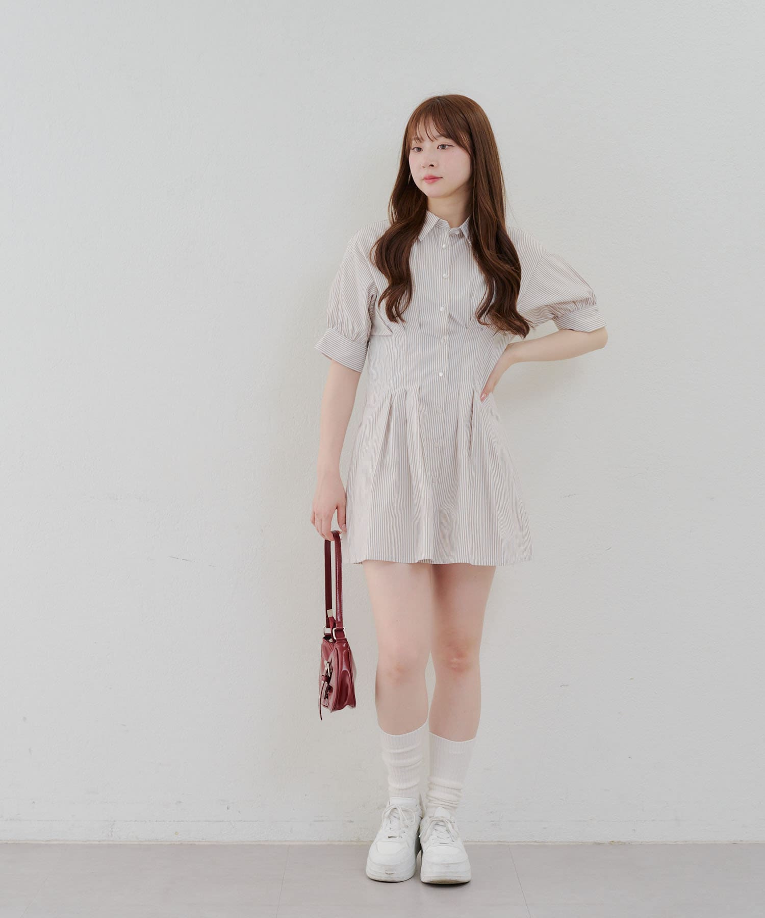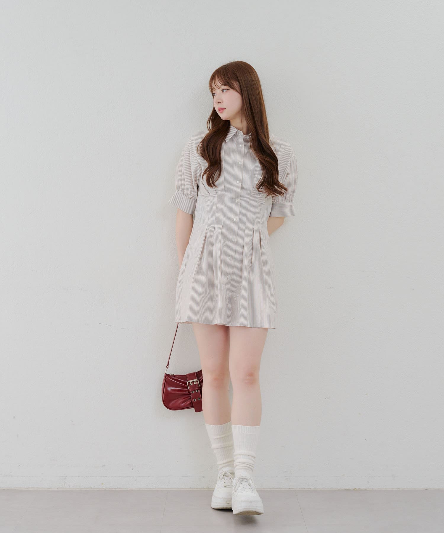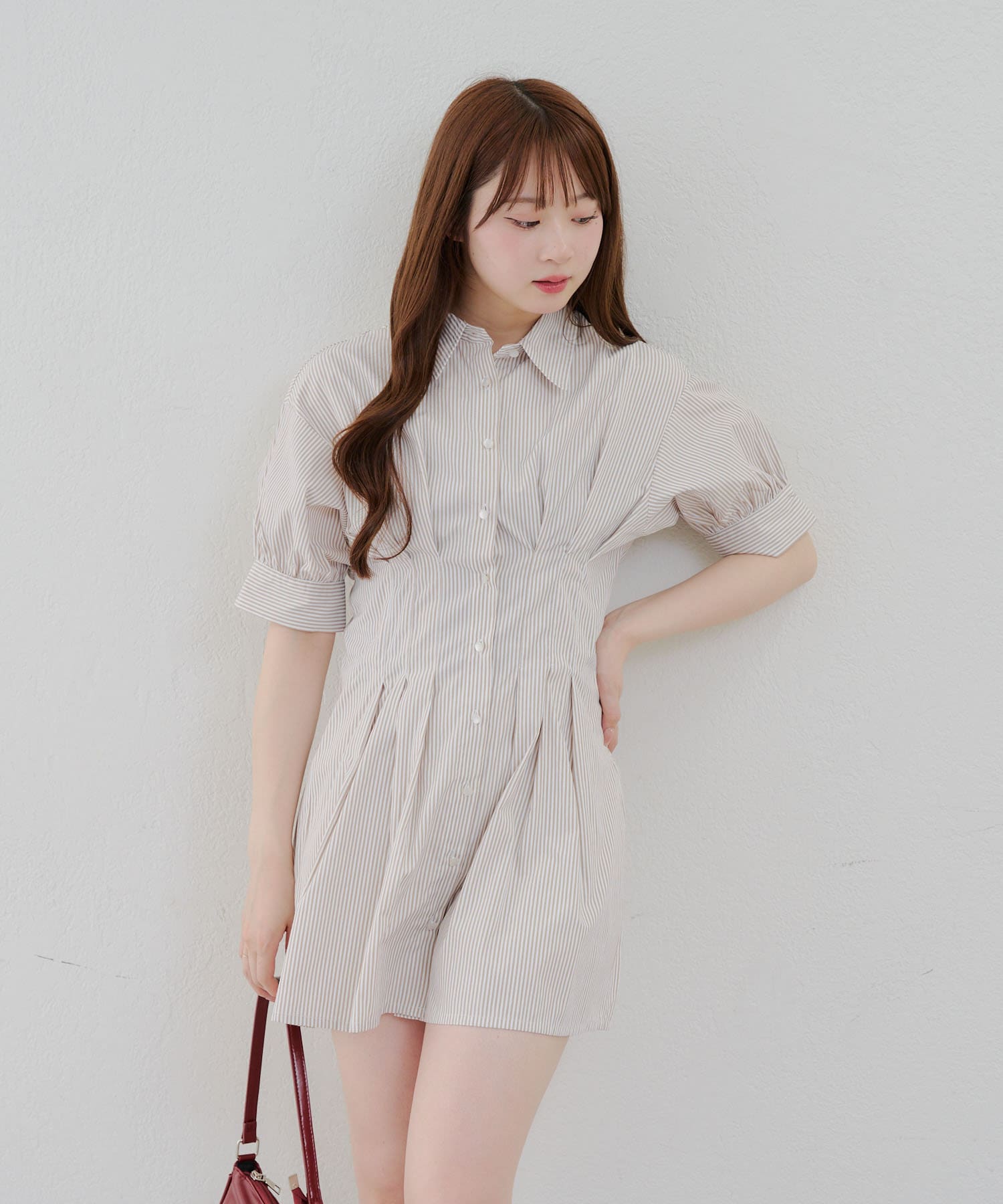 ・タックデザインで脚長効果抜群♪盛れること間違いなしのミニワンピース