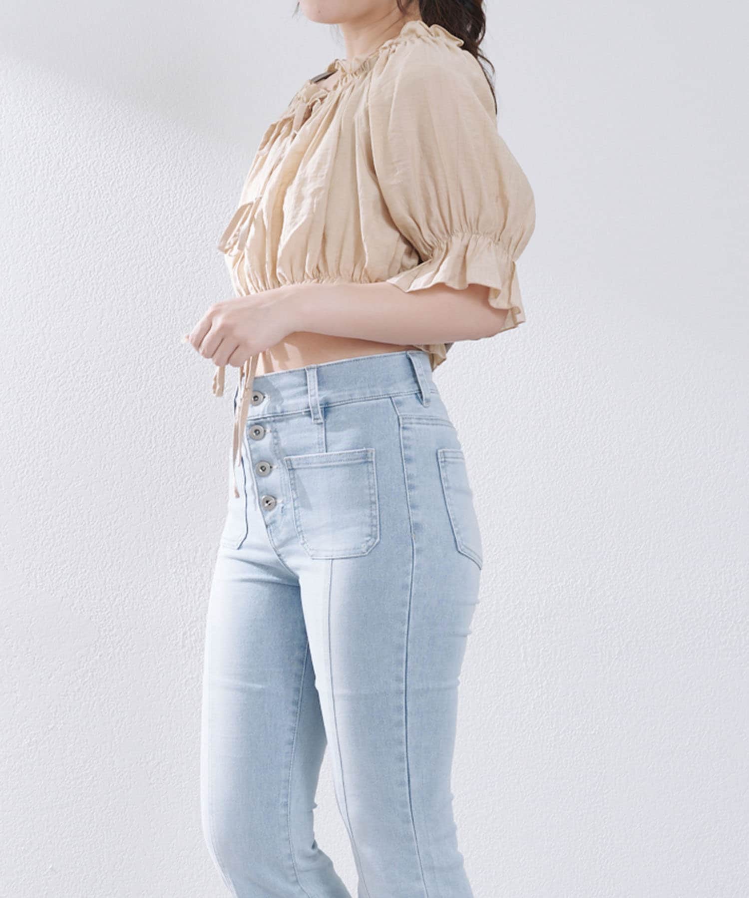 伸縮性:トップス裾ゴム入り