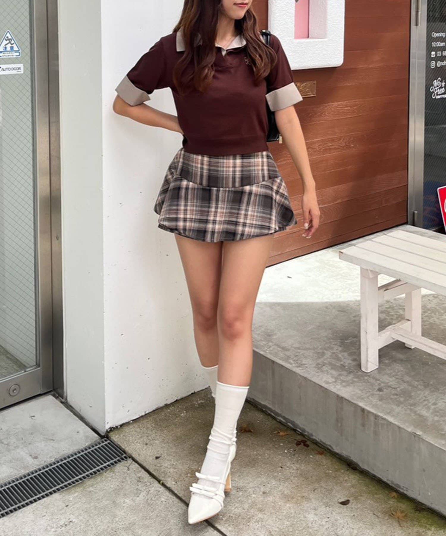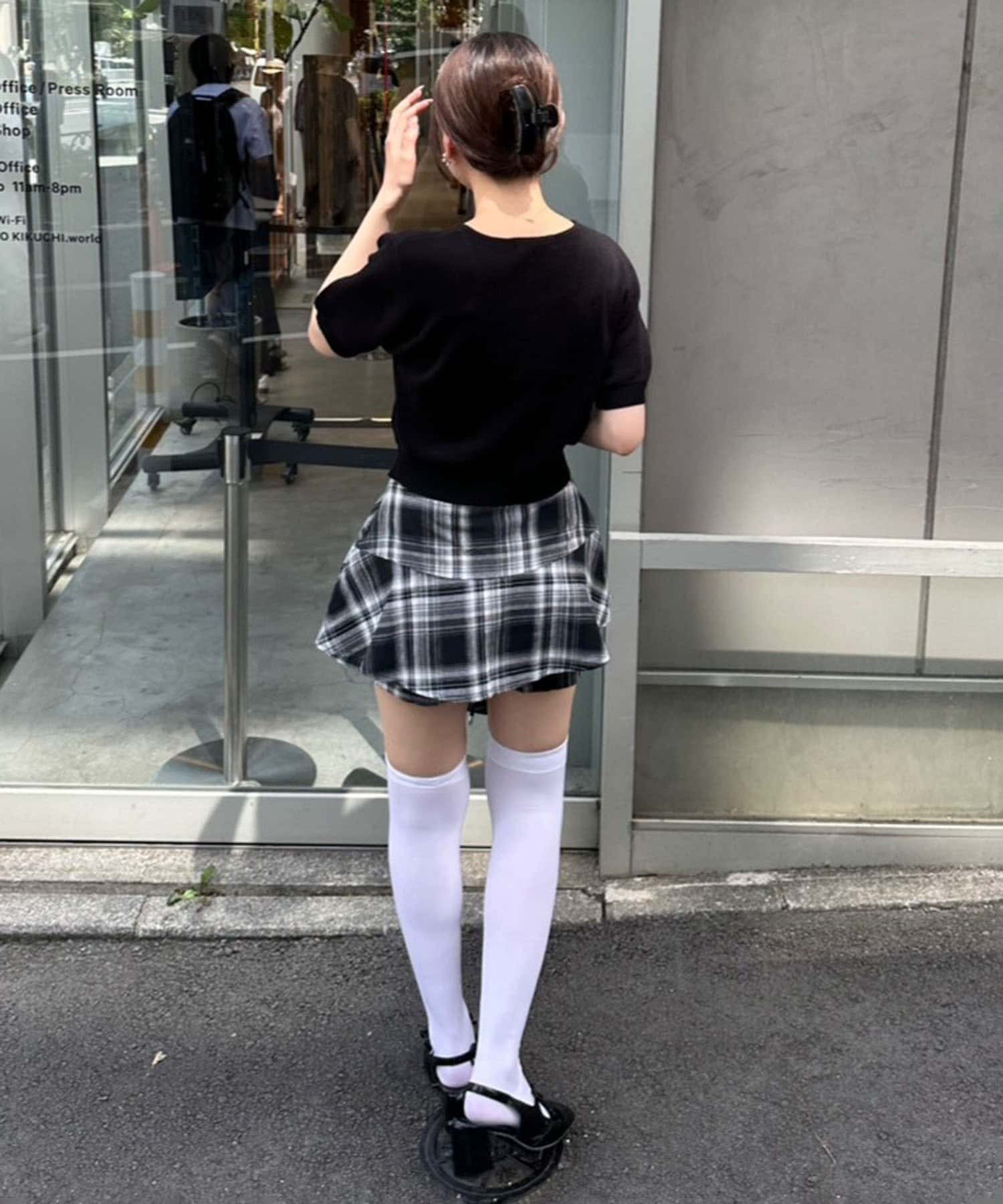 ・人気のチェック柄をあしらった、短め丈のミニスカパンツ♪