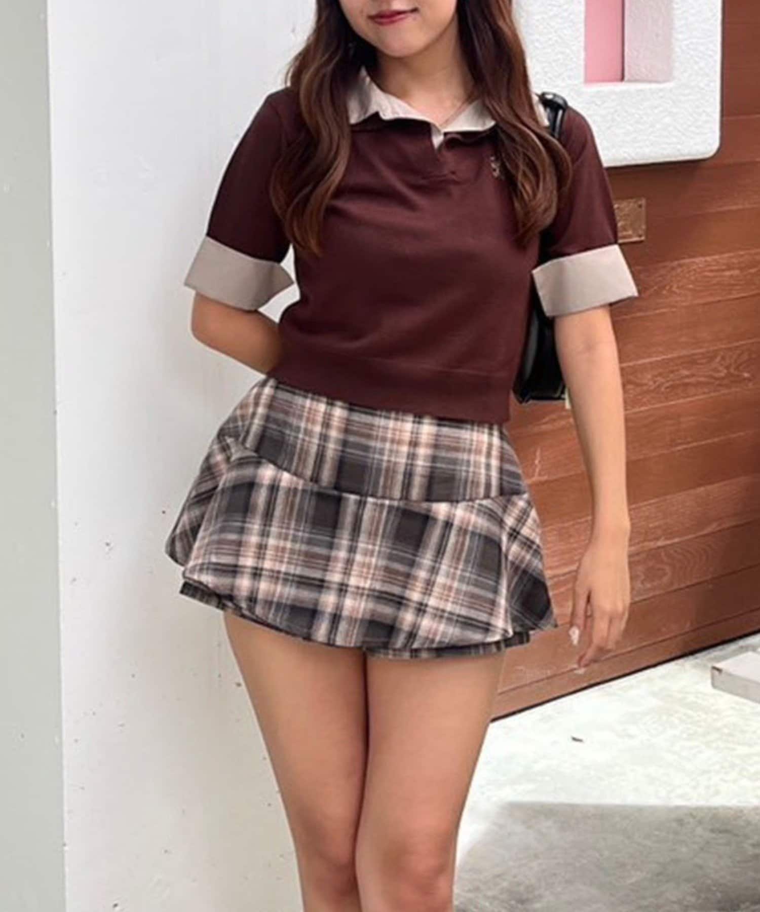 ・人気のチェック柄をあしらった、短め丈のミニスカパンツ♪
