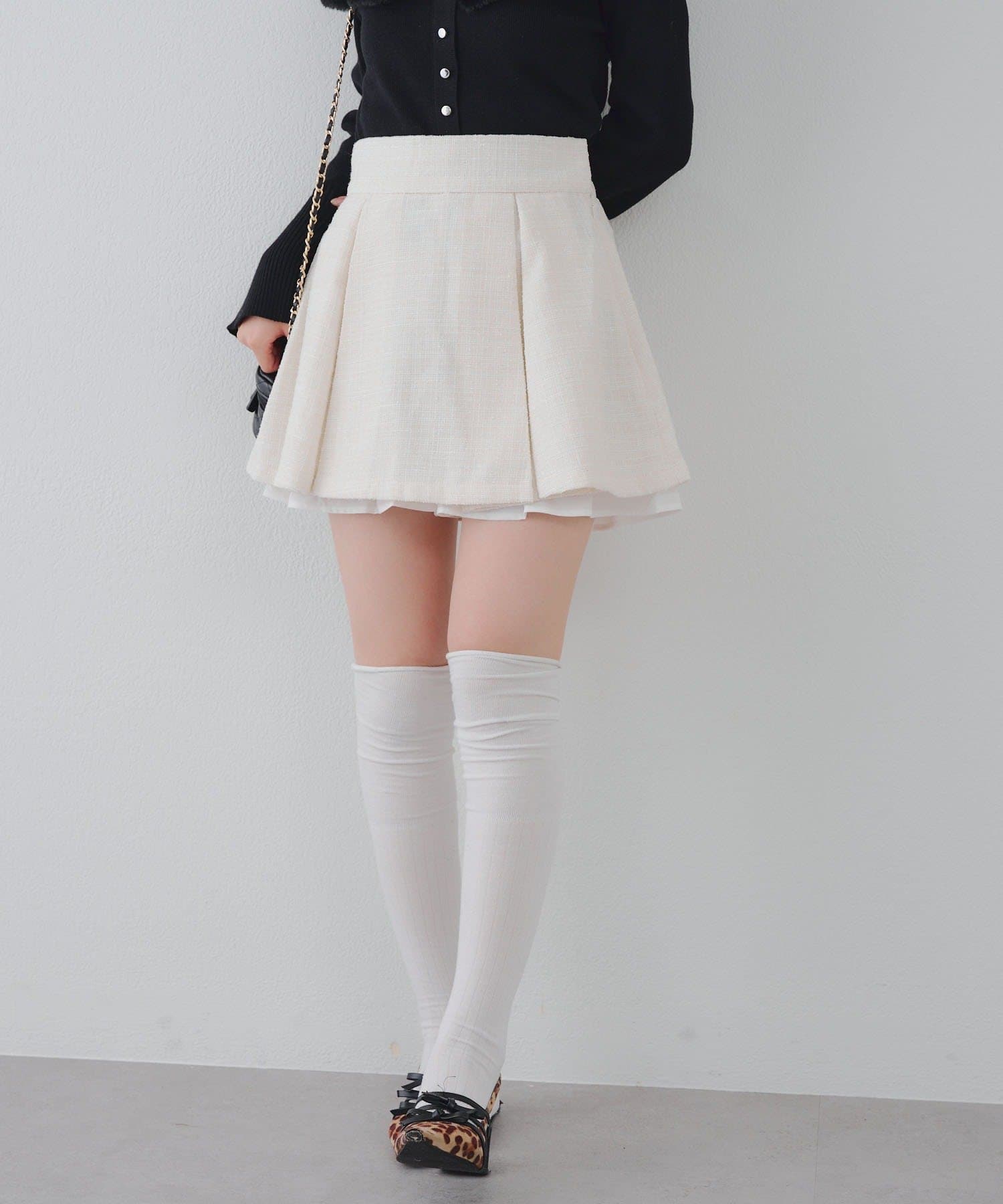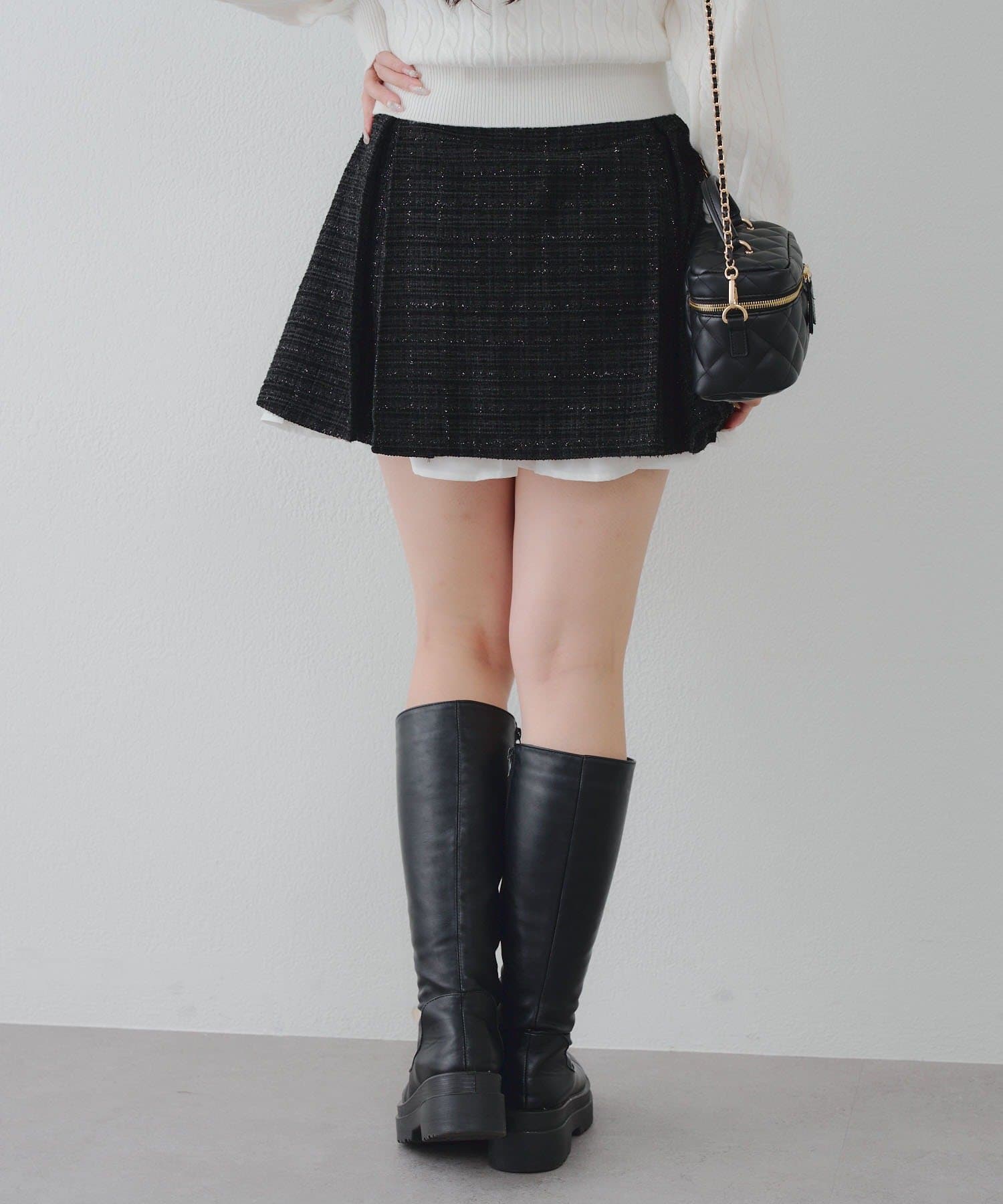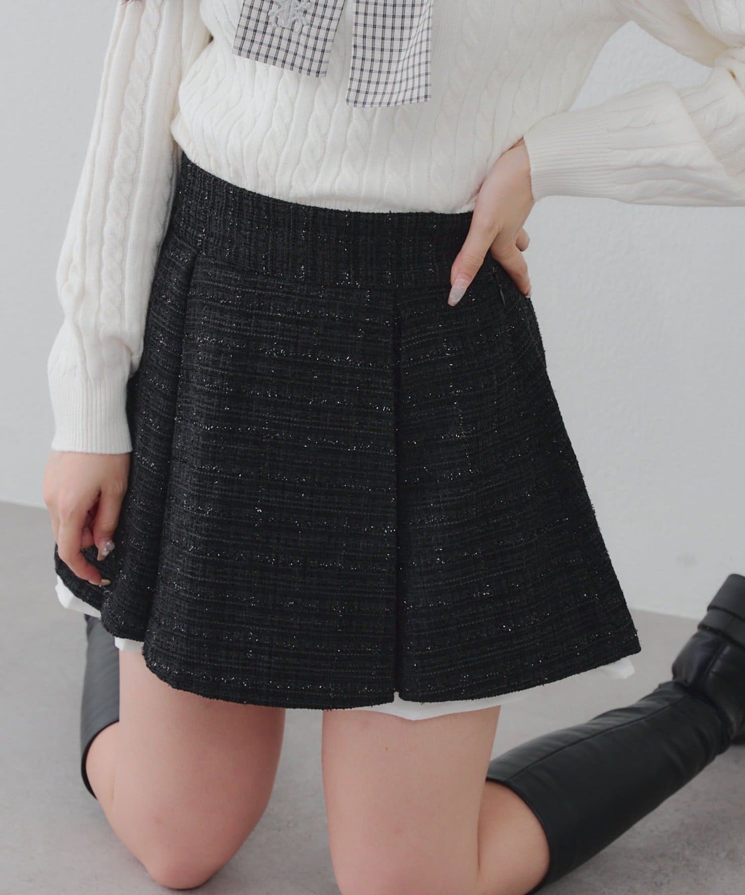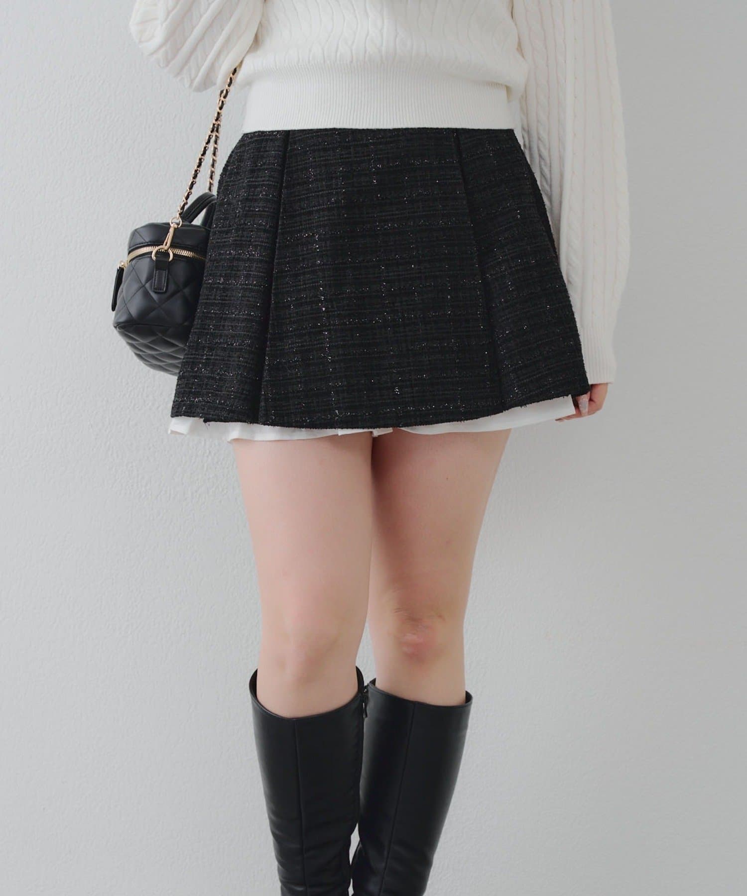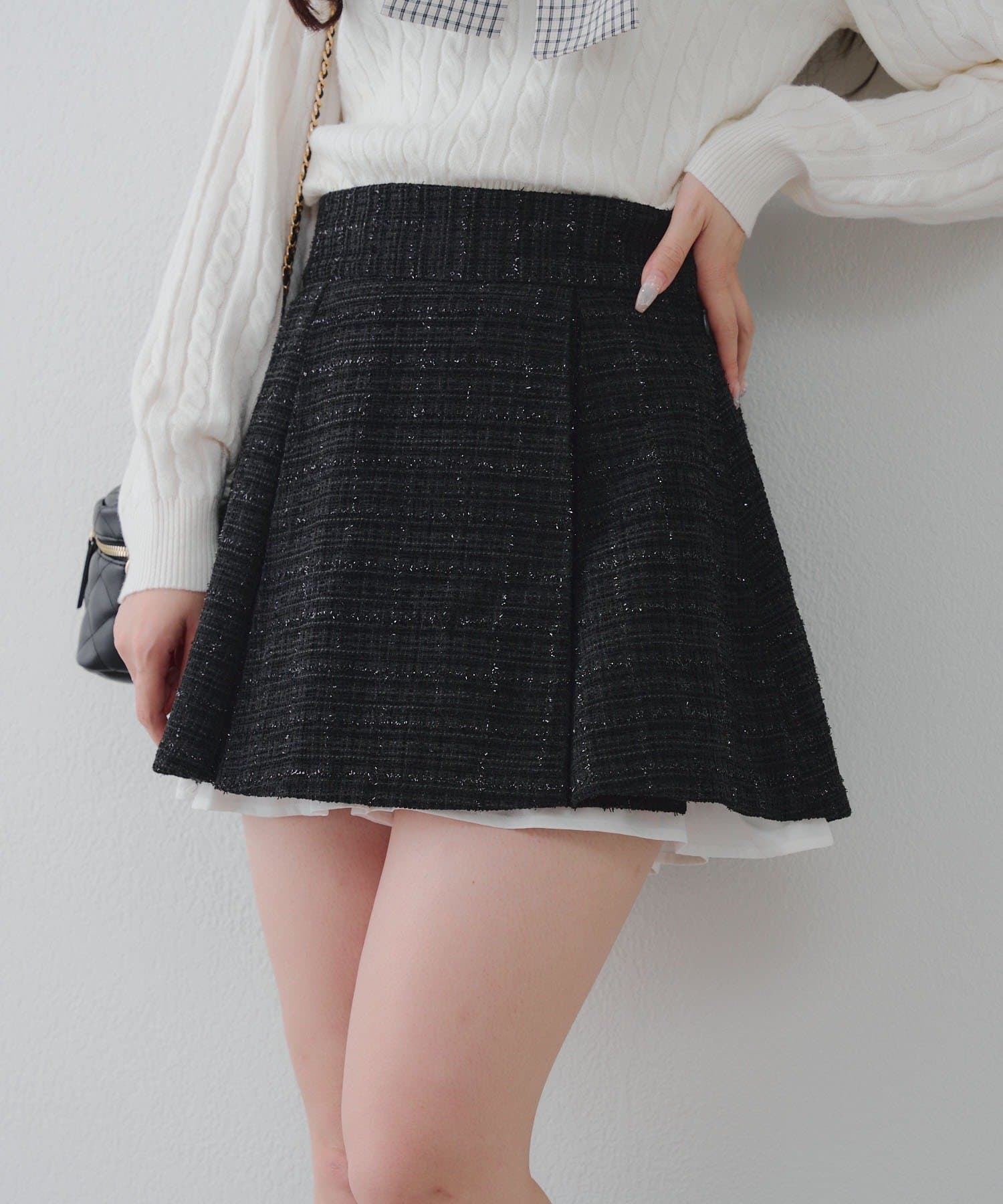 【セットアップ対応】ツイード裾チラリミニスカート