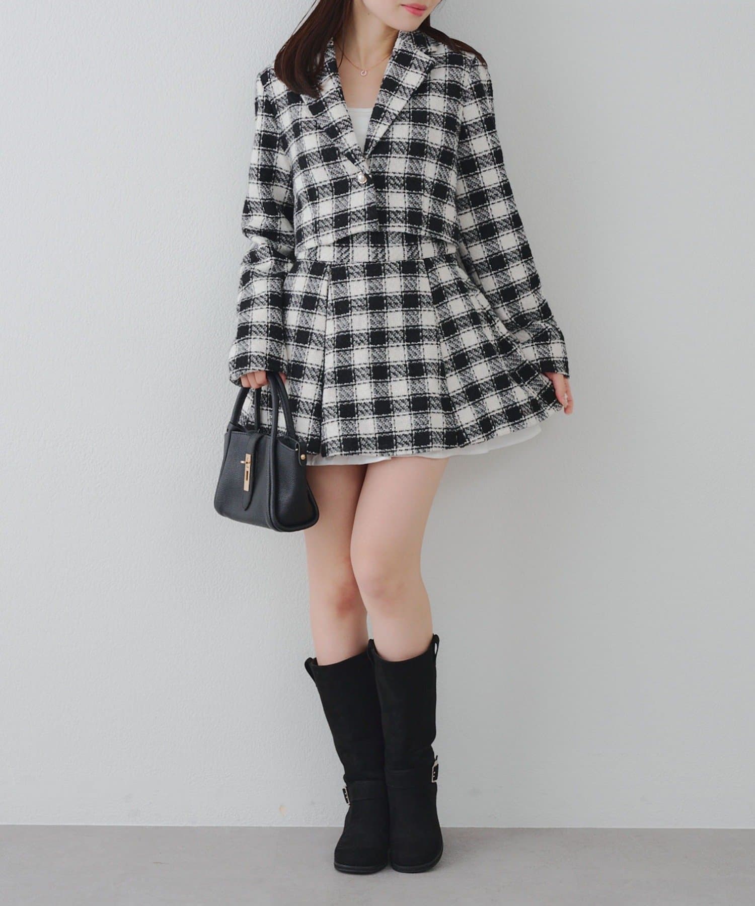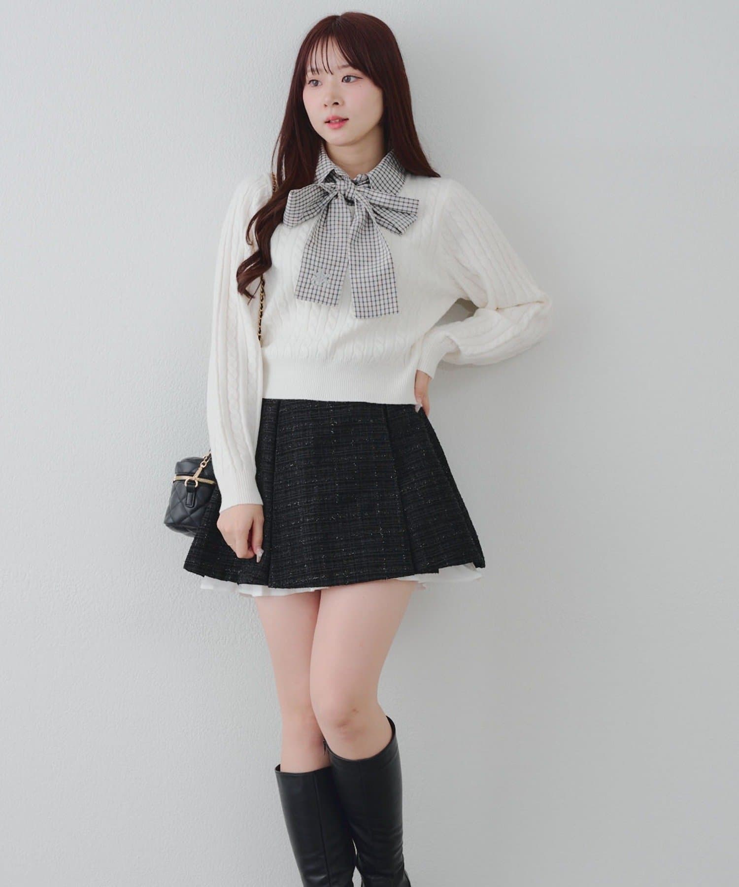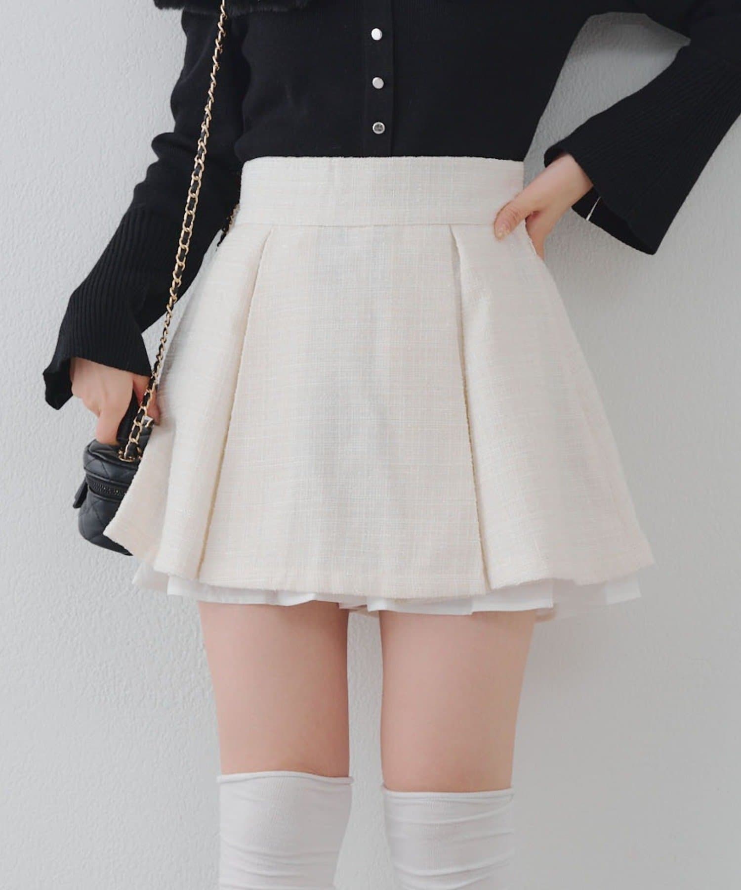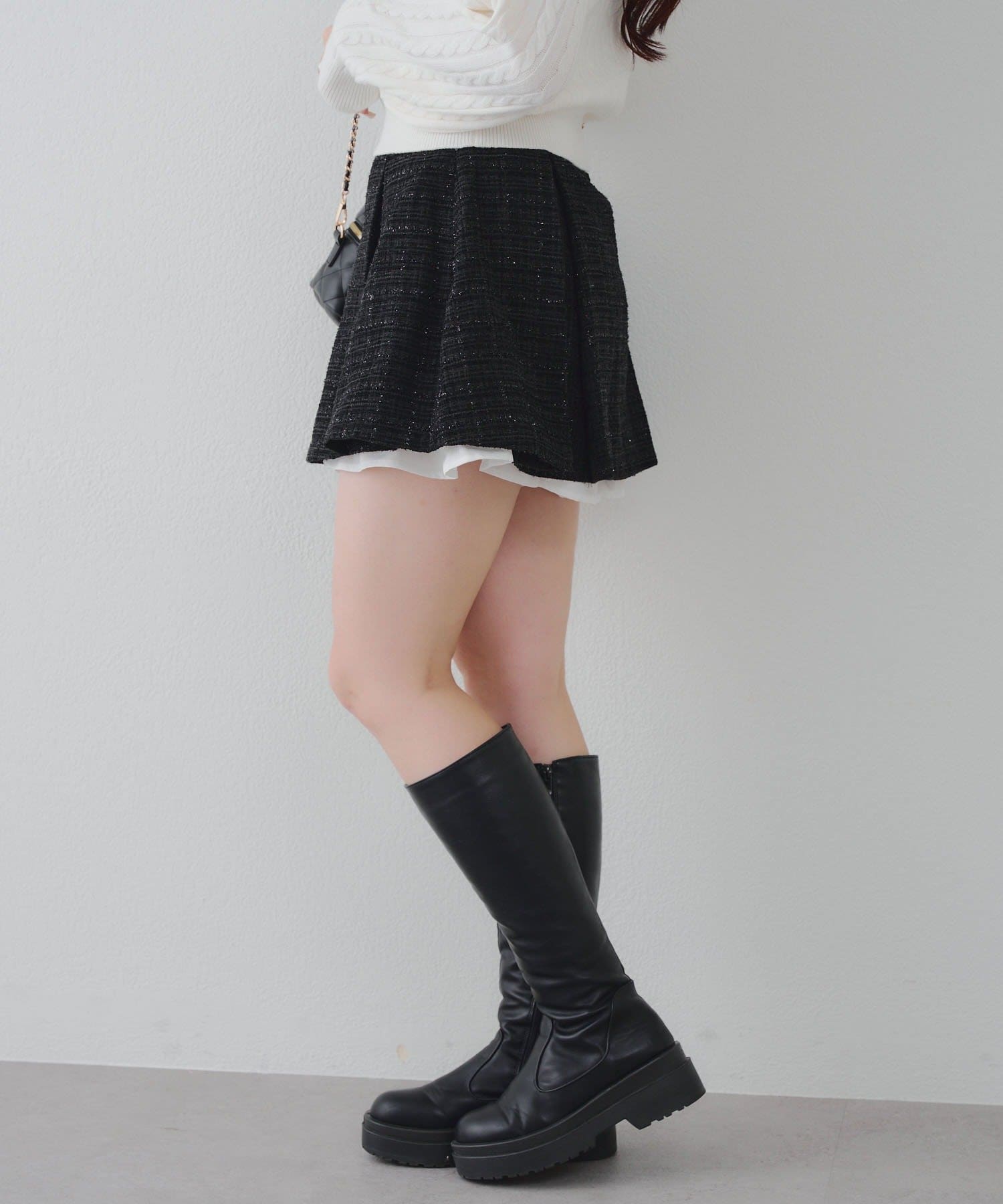 【セットアップ対応】ツイード裾チラリミニスカート