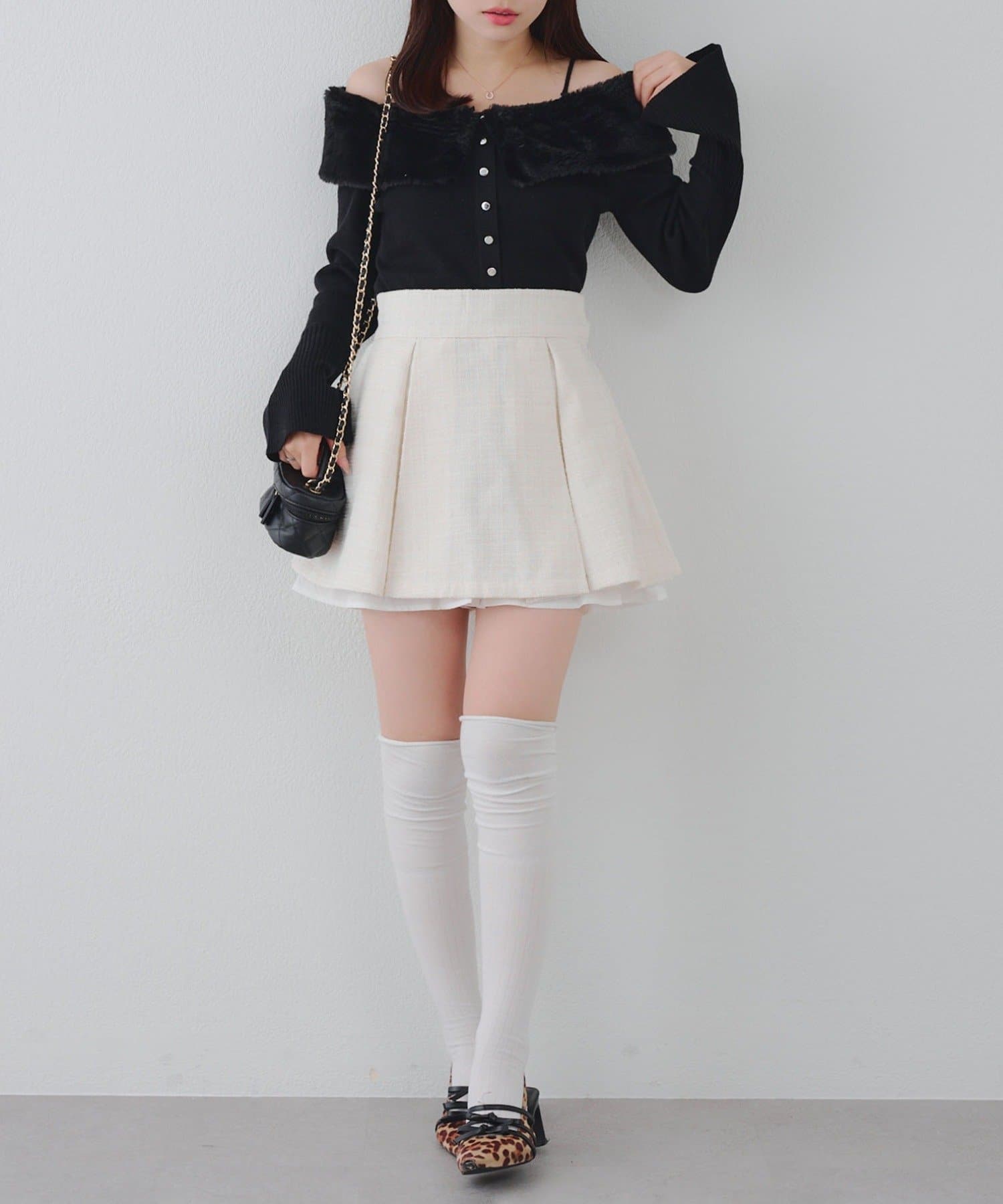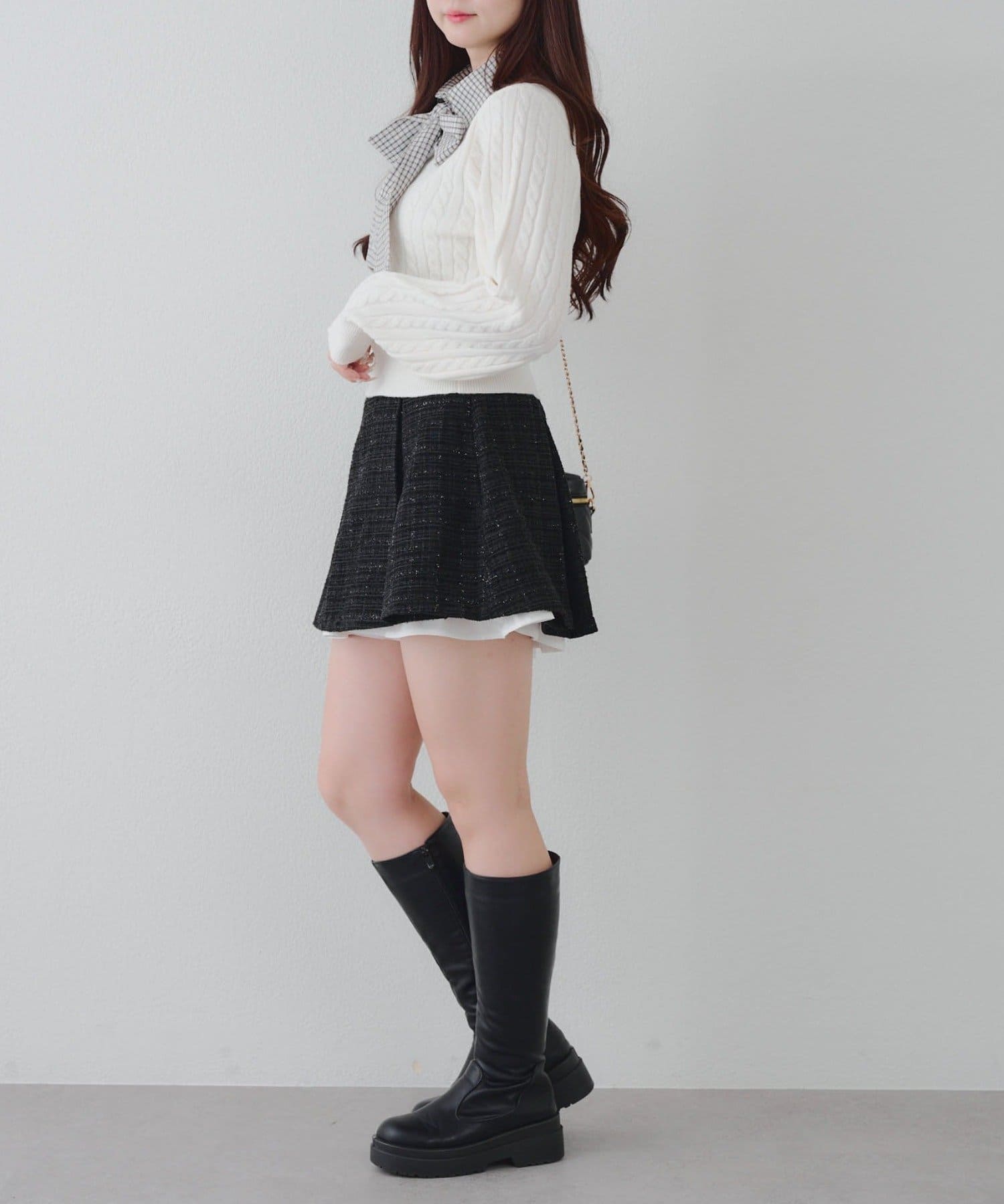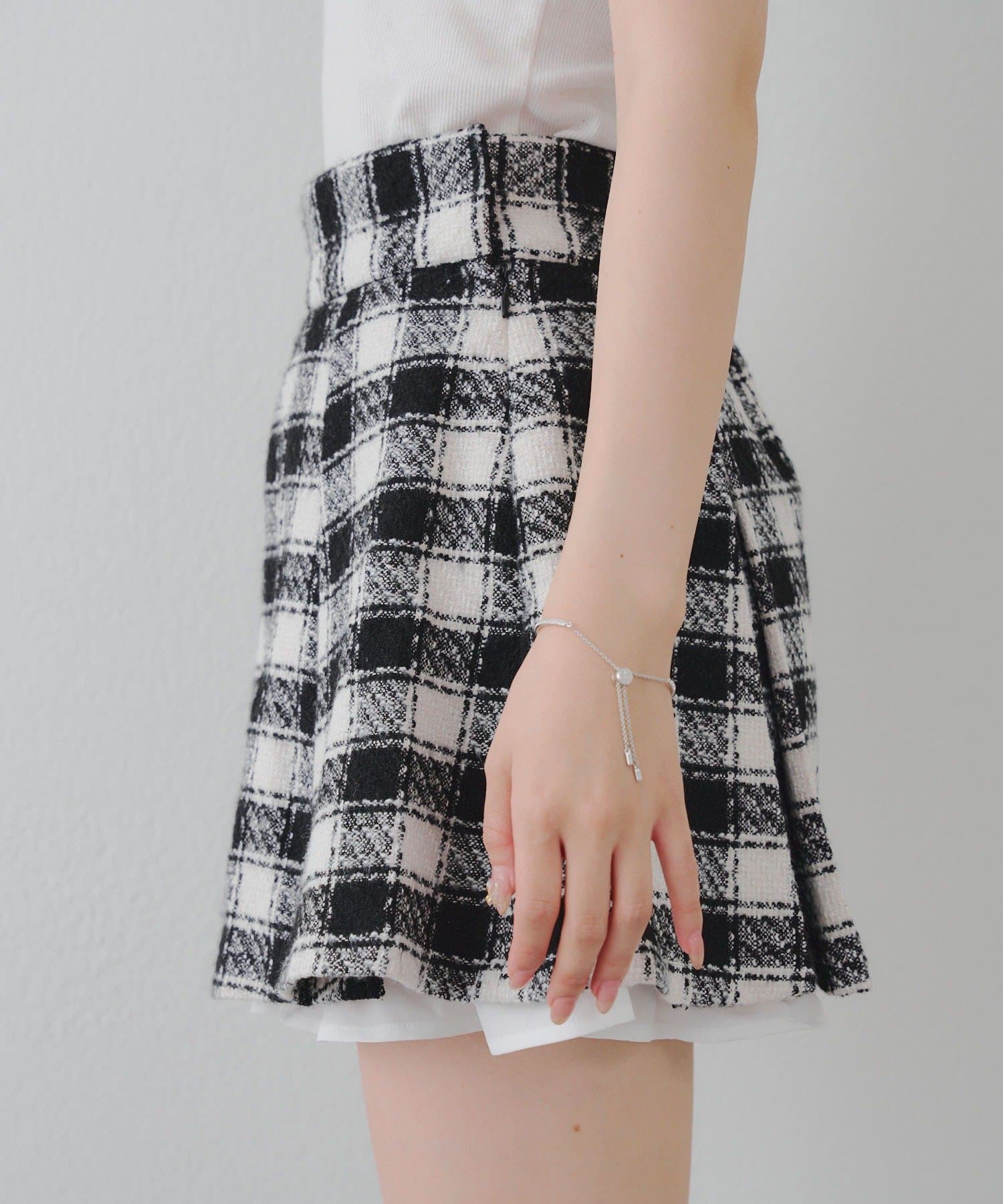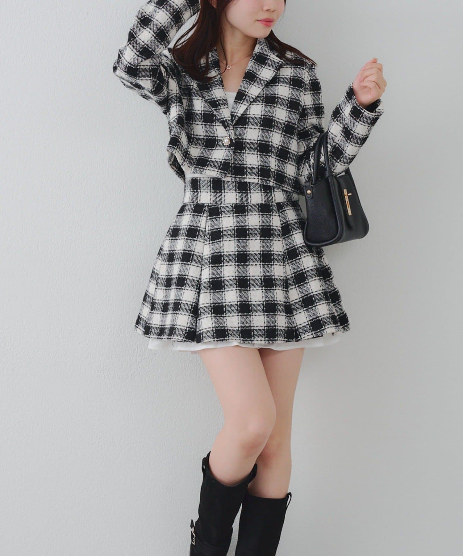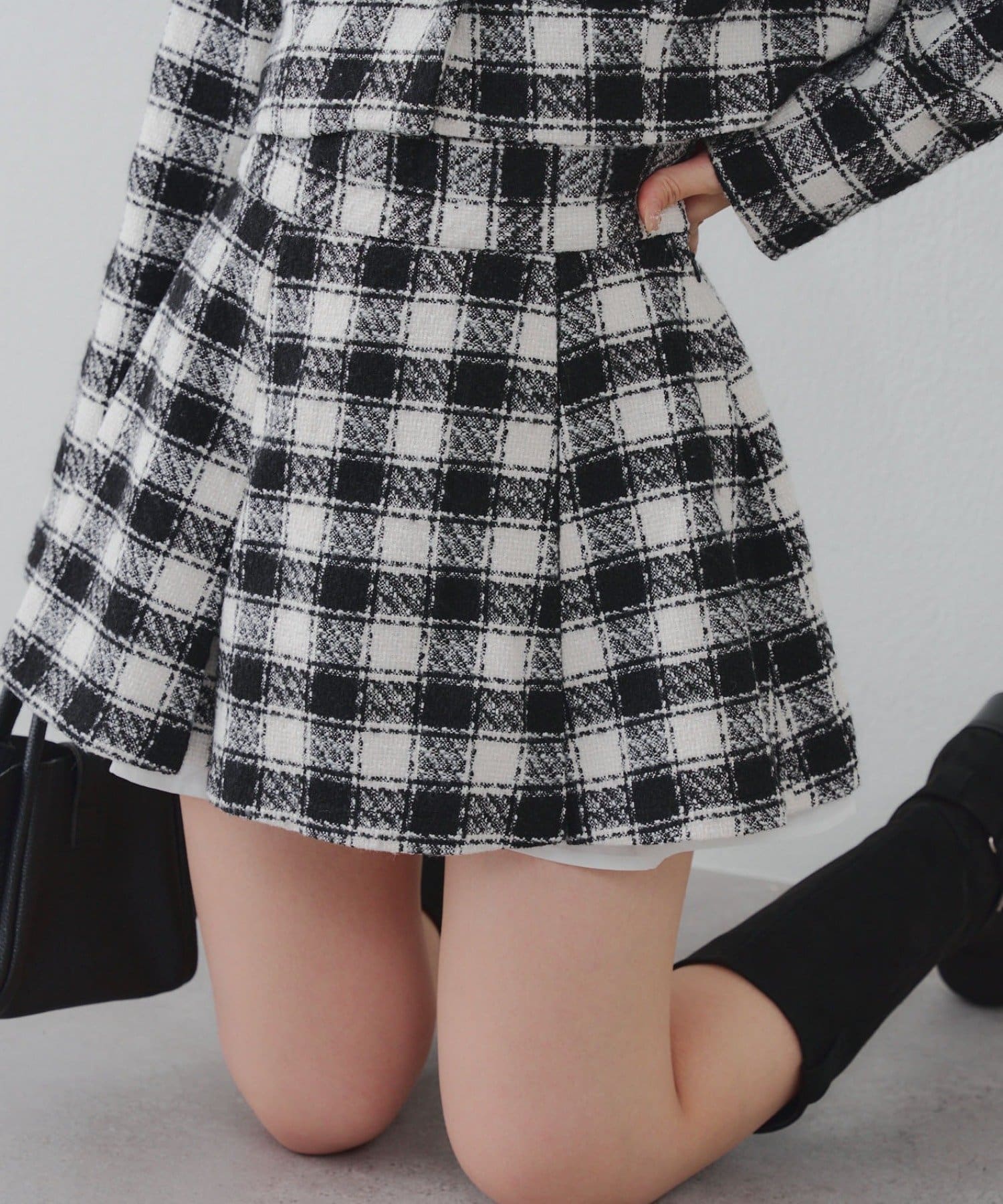 【セットアップ対応】ツイード裾チラリミニスカート