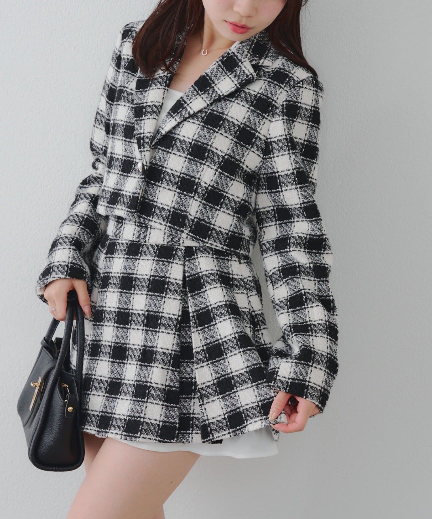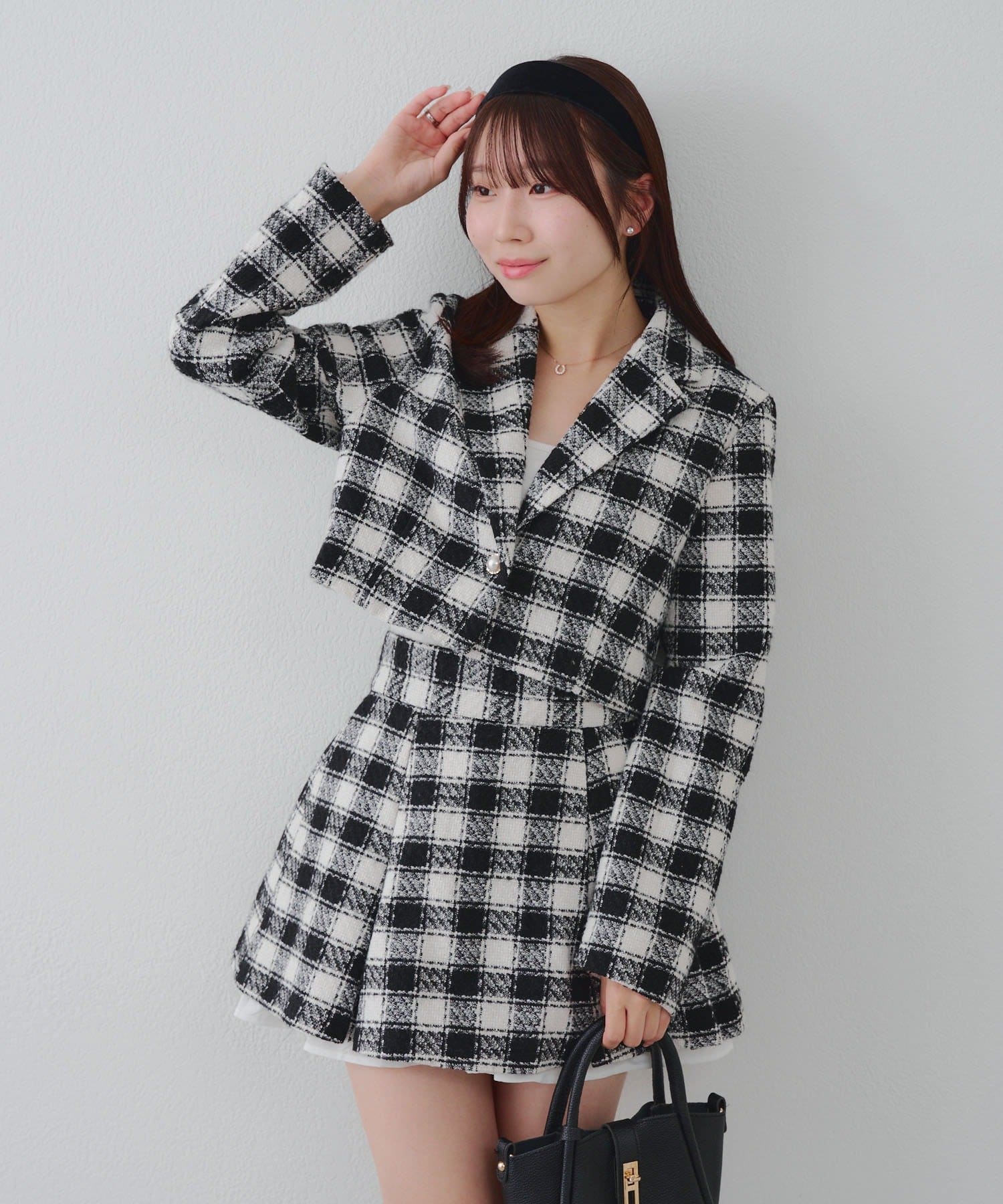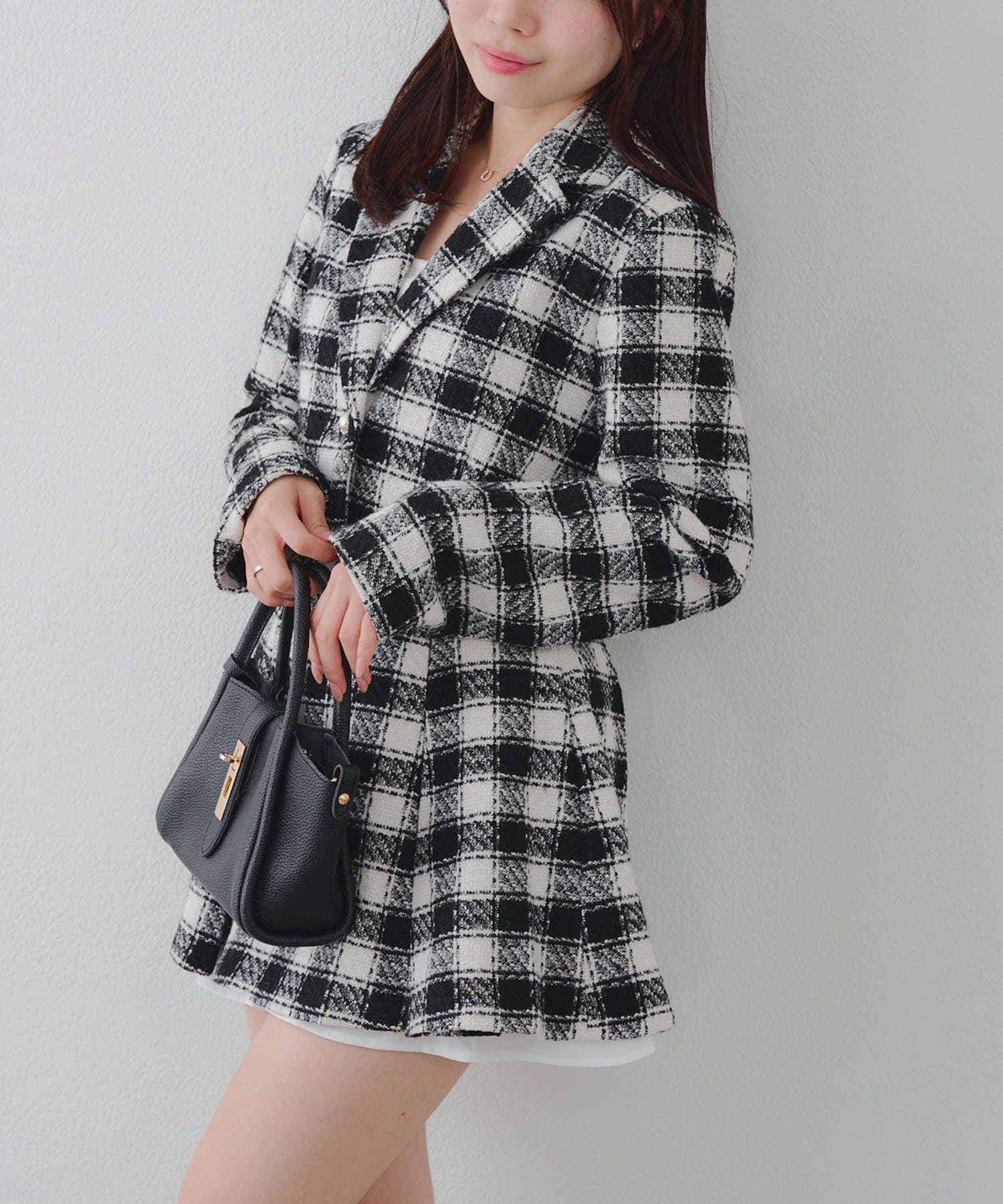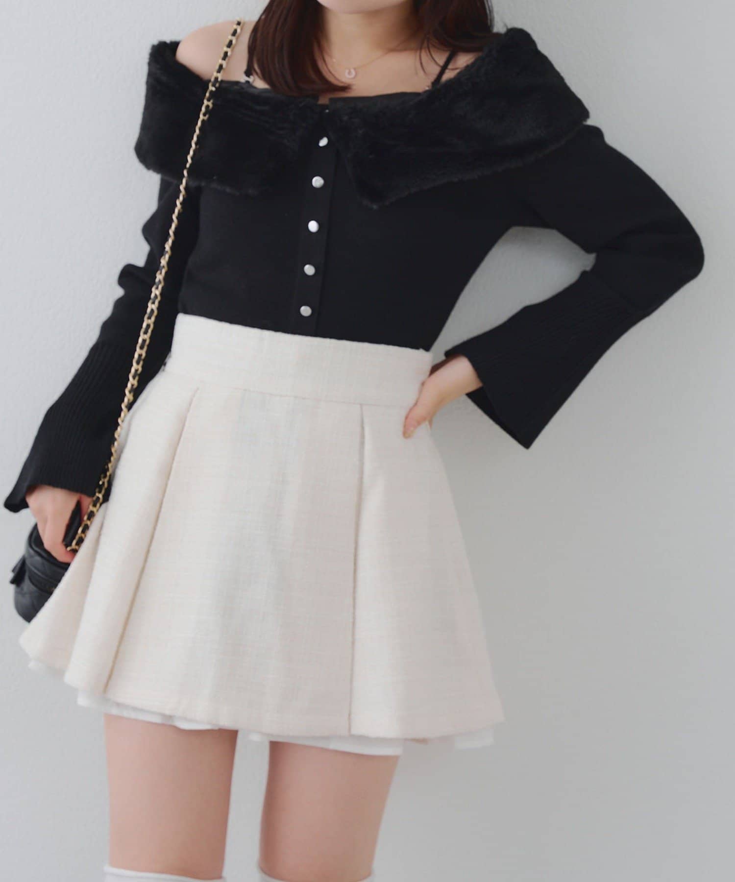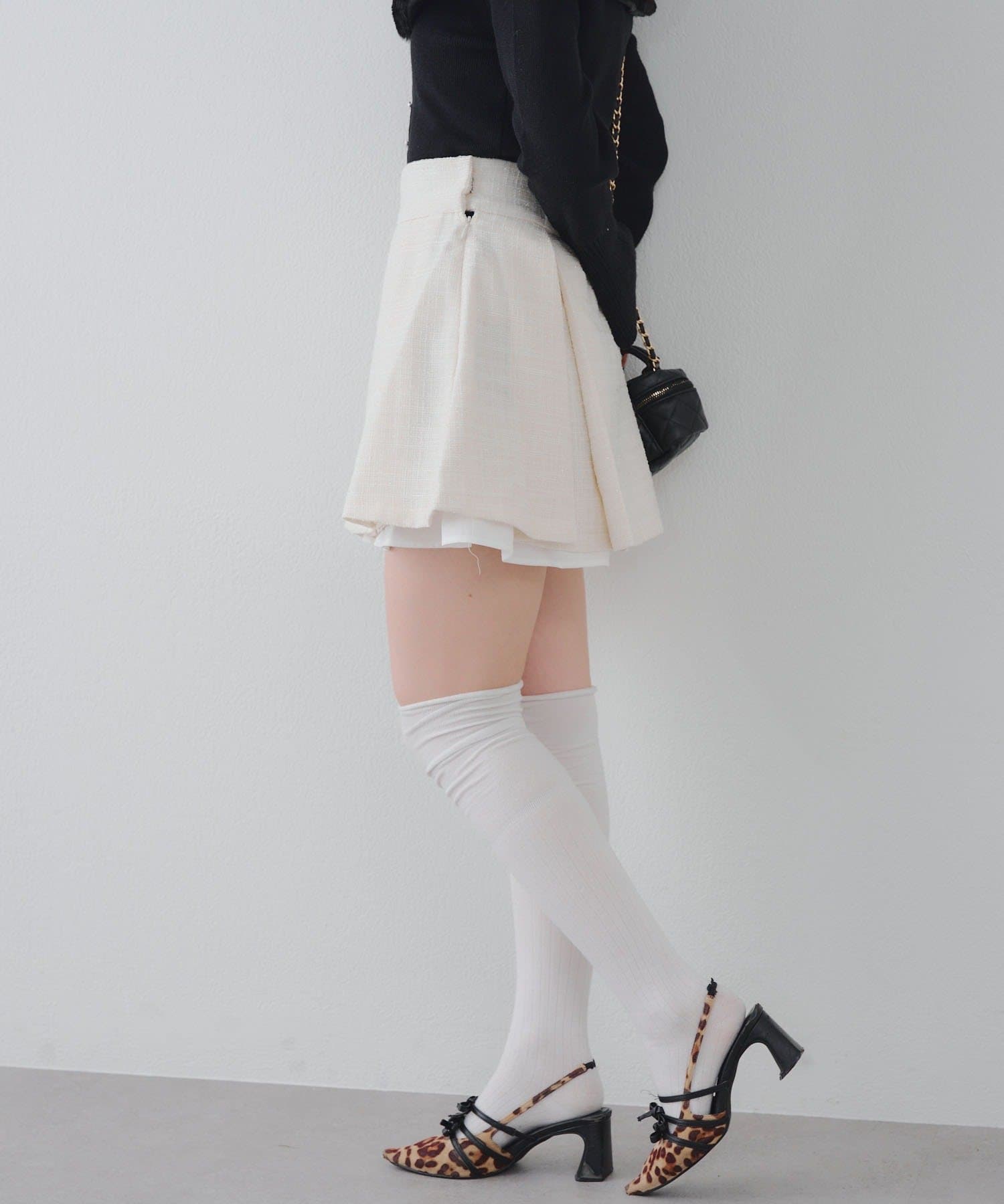 【セットアップ対応】ツイード裾チラリミニスカート
