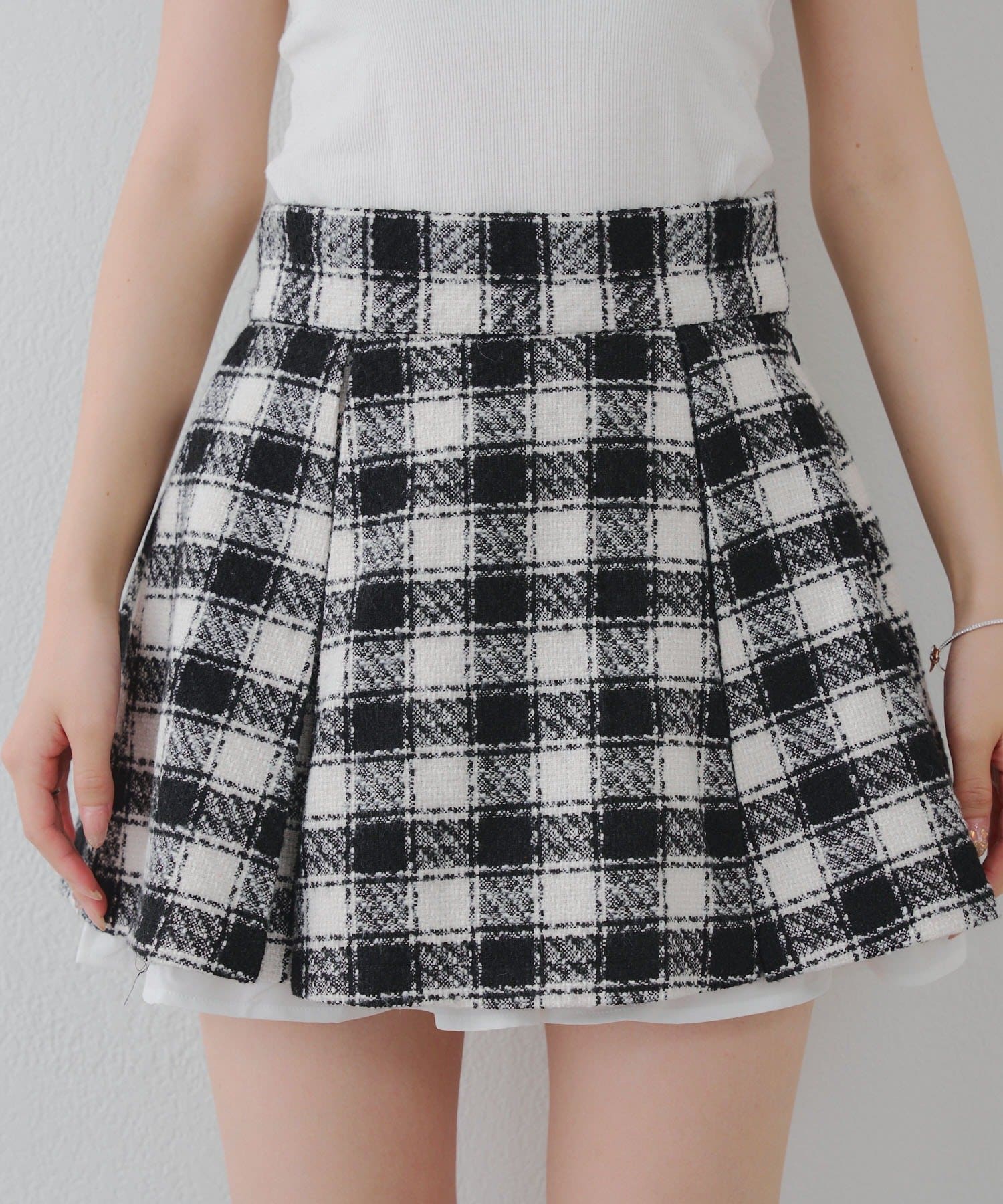 ・冬のマスト素材、ツイード生地のミニスカート